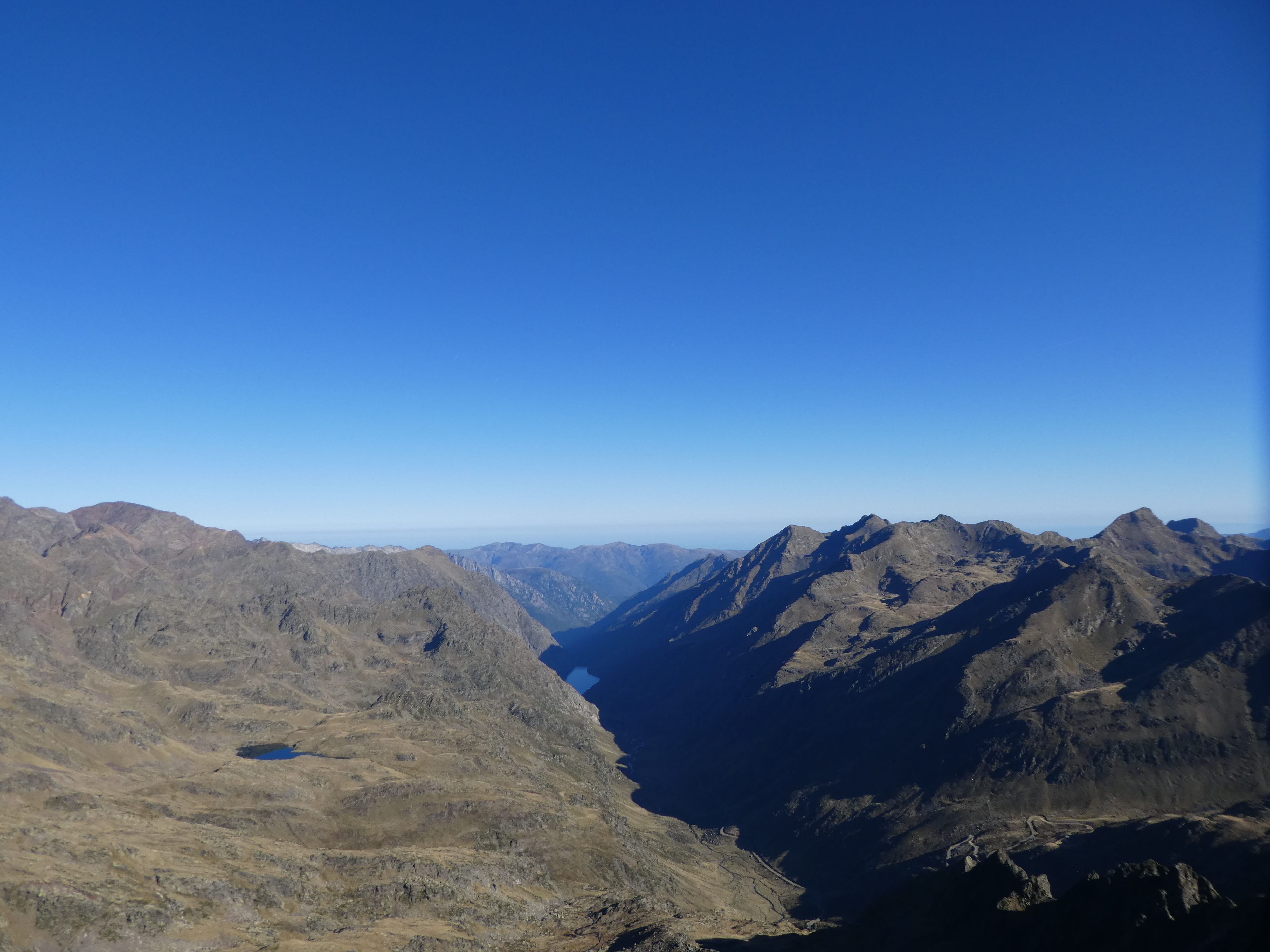 Vue sur la Vallée de Soulcem côté ariégois, point de départ pour l'ascension du Pic de Médécourbe côté français (parcours de crête aérien et technique selon certains topos)