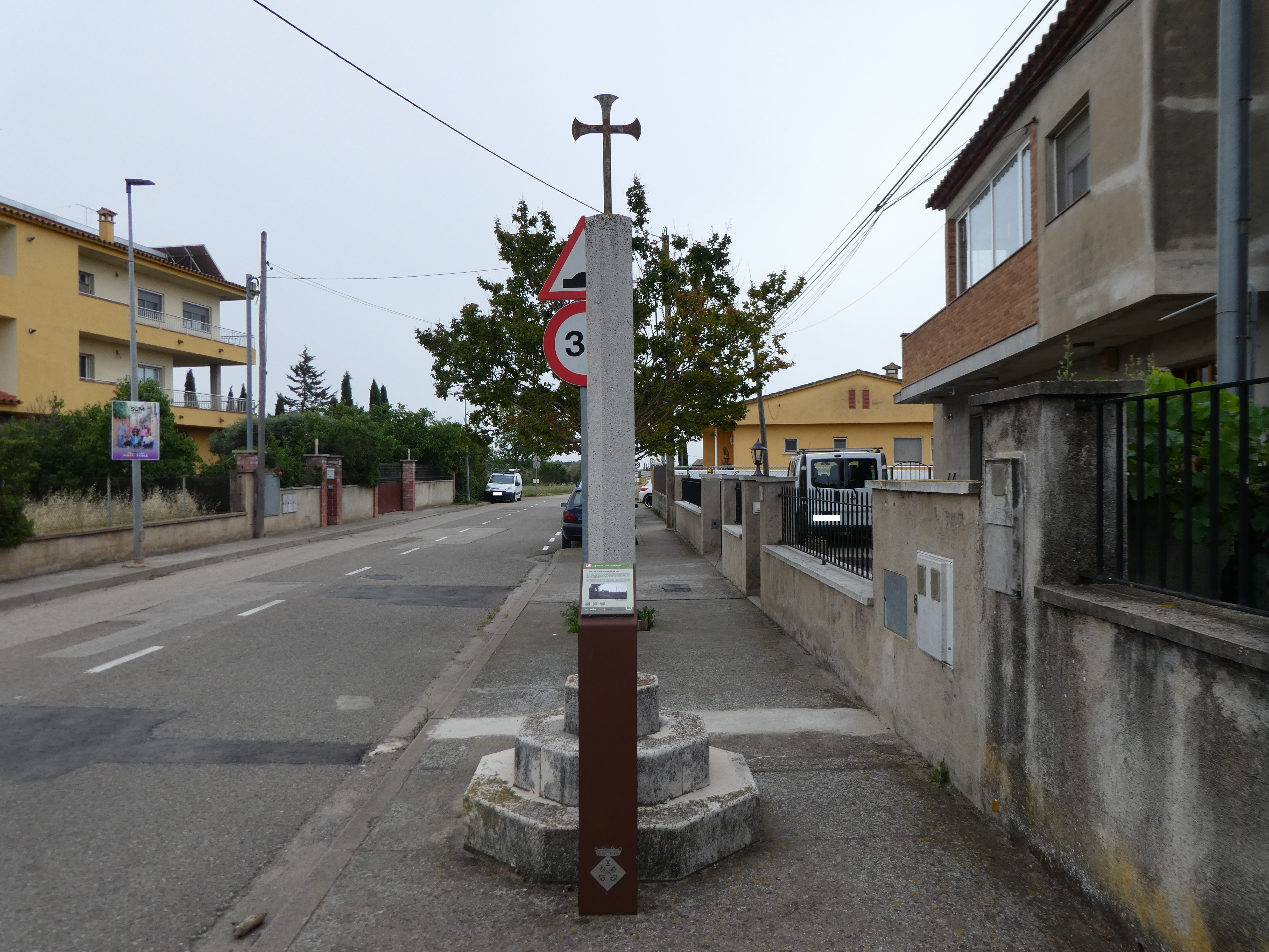 Vue sur la Creu de Terme d'Ordis datant du XXe siècle ; elle servait à matérialiser les limites de paroisses ou de propriétées privées