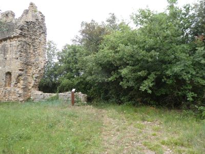 Vue sur les ruines du Mas Costa de Pagès ; repartir du site par le même chemin que celui de l'aller direction Espinavessa