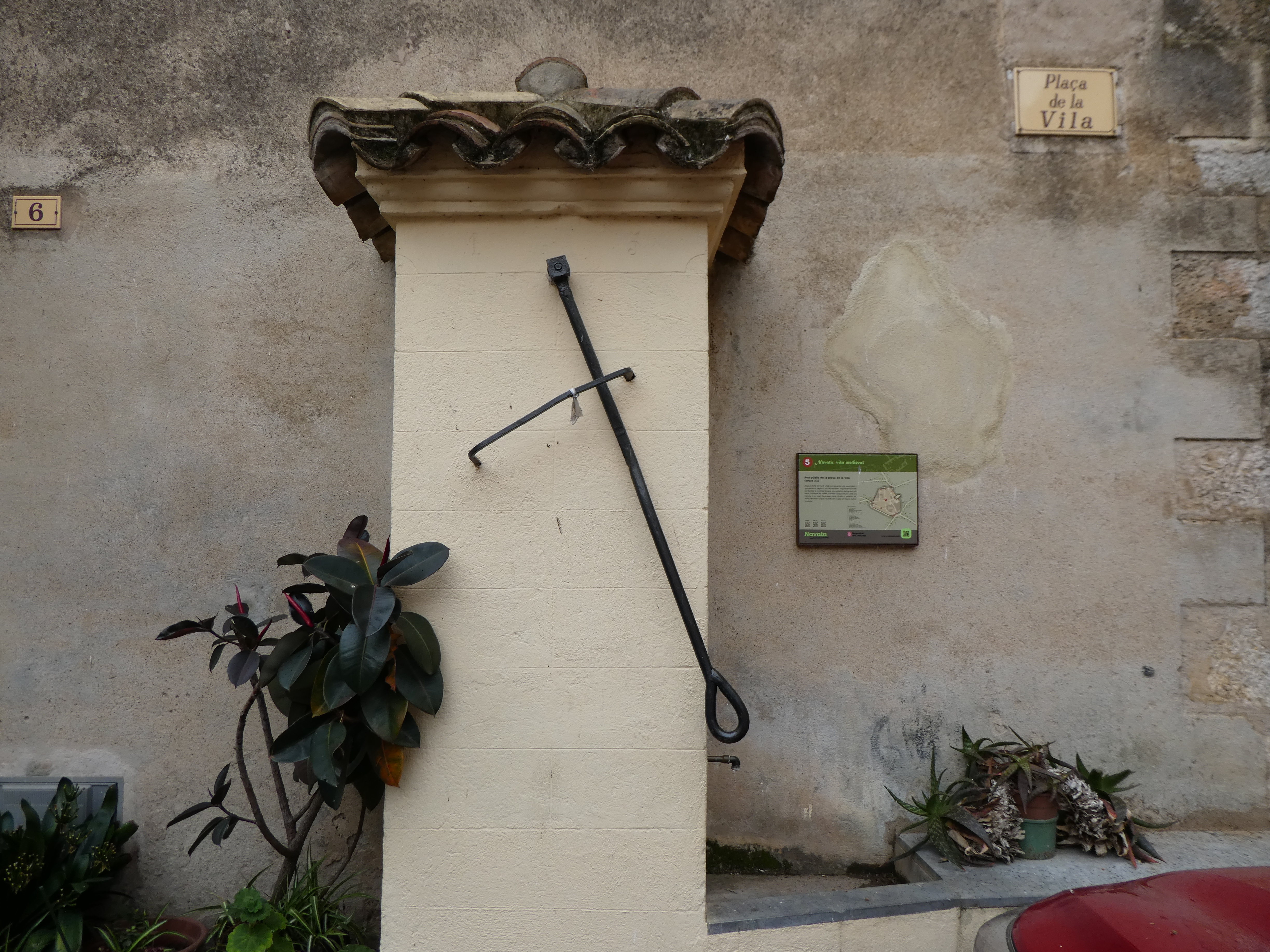 A cette intersection située au niveau du Banc del Portal del Batlle (200 mètres après la précédente), suivre la ruelle partant sur la gauche direction Navata - Aparcament del Carrer del Mont (ne pas hésiter à visiter les différents sites remarquables du centre médiéval de Navata)