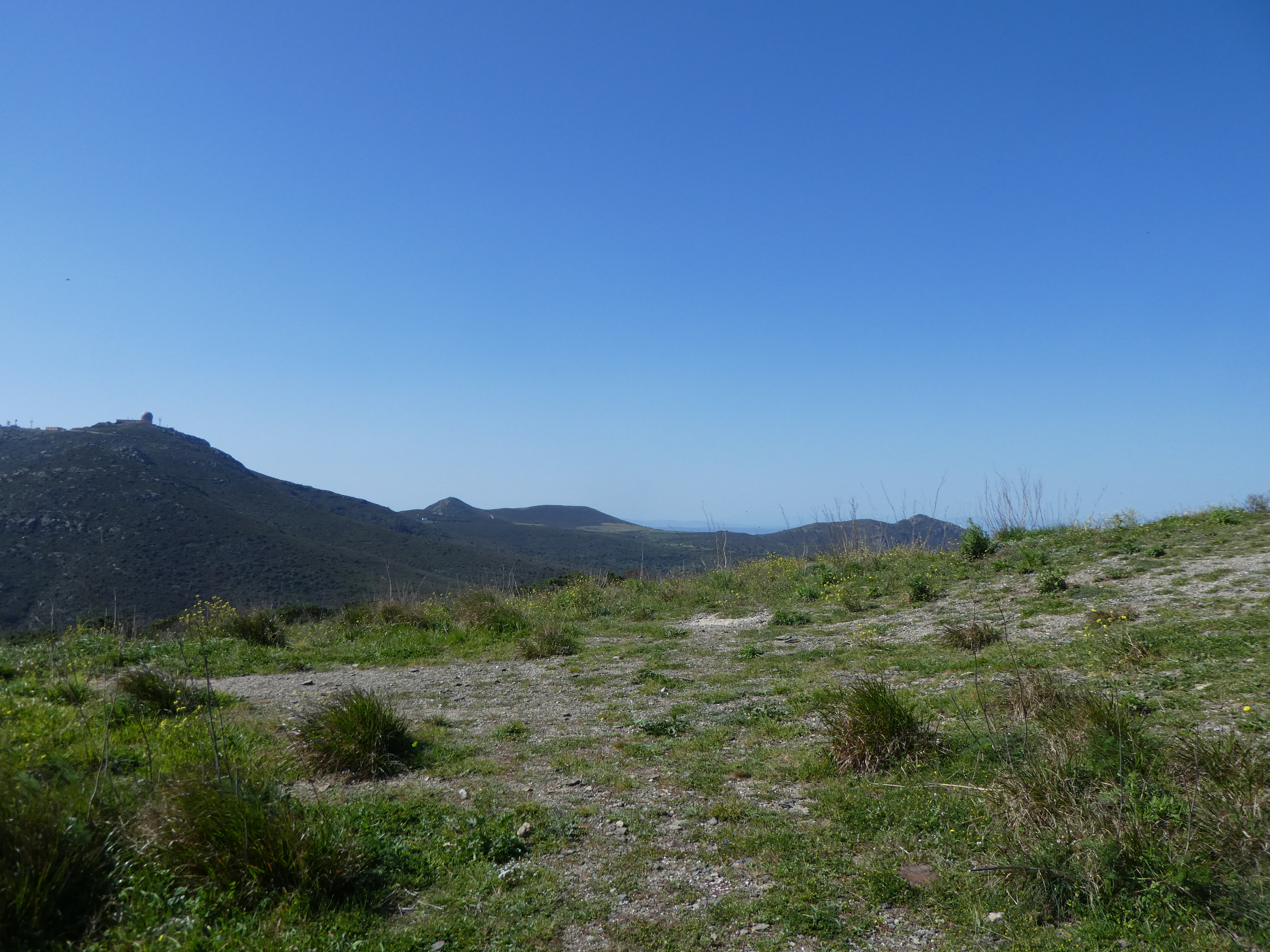 Arrivée au sommet du Puig dels Bufadors (432 m) : beau panorama sur les sommets du Parc Natural de Cap de Creus, de l'Alt Empordà, du massif des Albères ainsi que sur la partie septentrionale de la Costa Brava