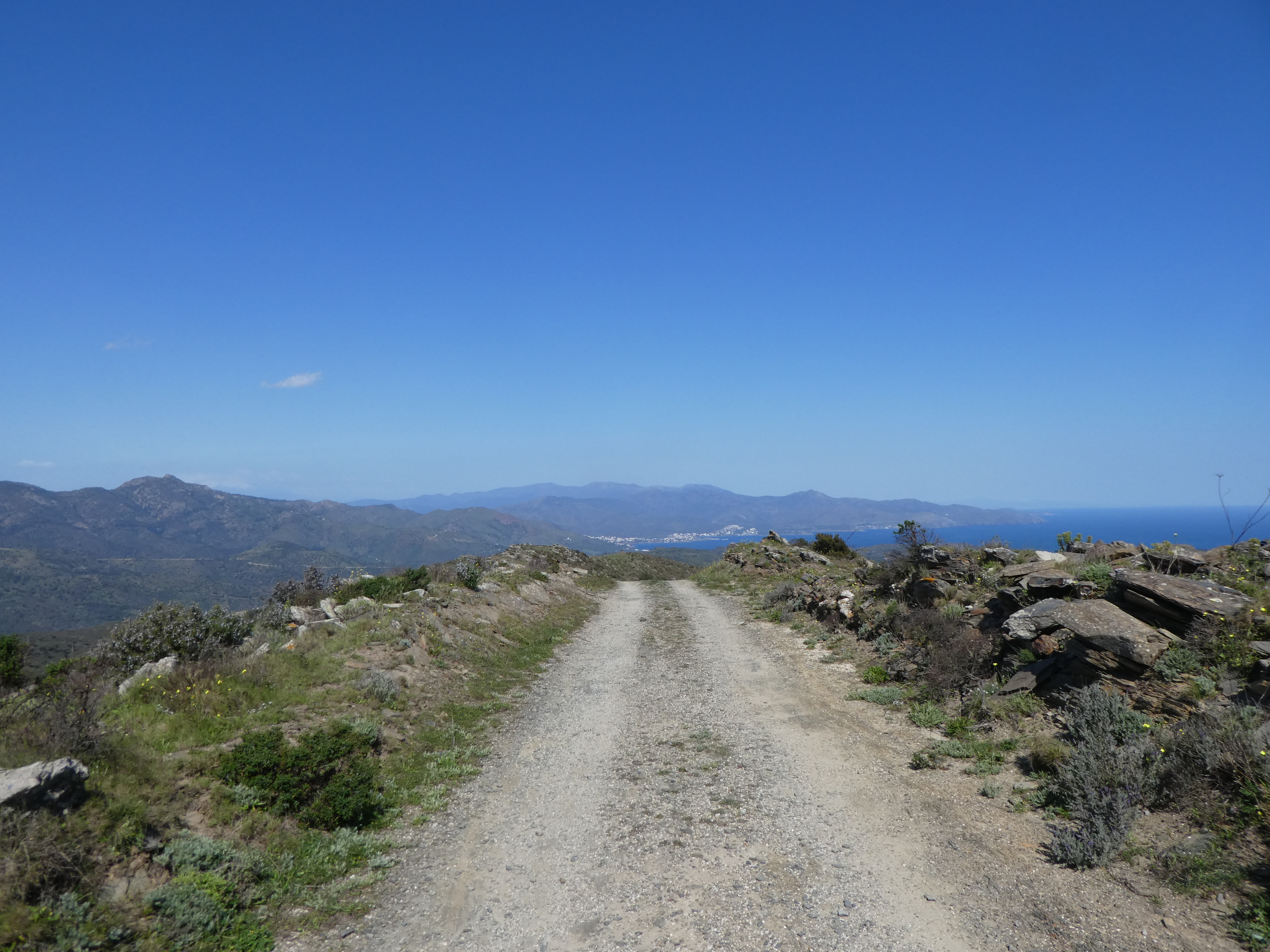 A cette intersection marquée par la présence d'un panneau directionnel (950 mètres après le lieu-dit "la Degollada"), suivre le GR11 partant tout droit direction Cadaqués (per Sant Baldiri), balisé en rouge et blanc, et en jaune