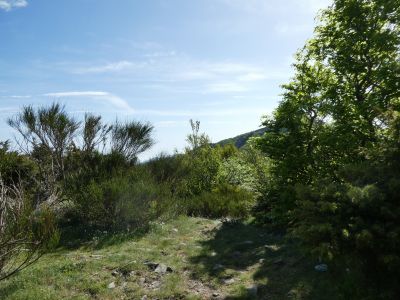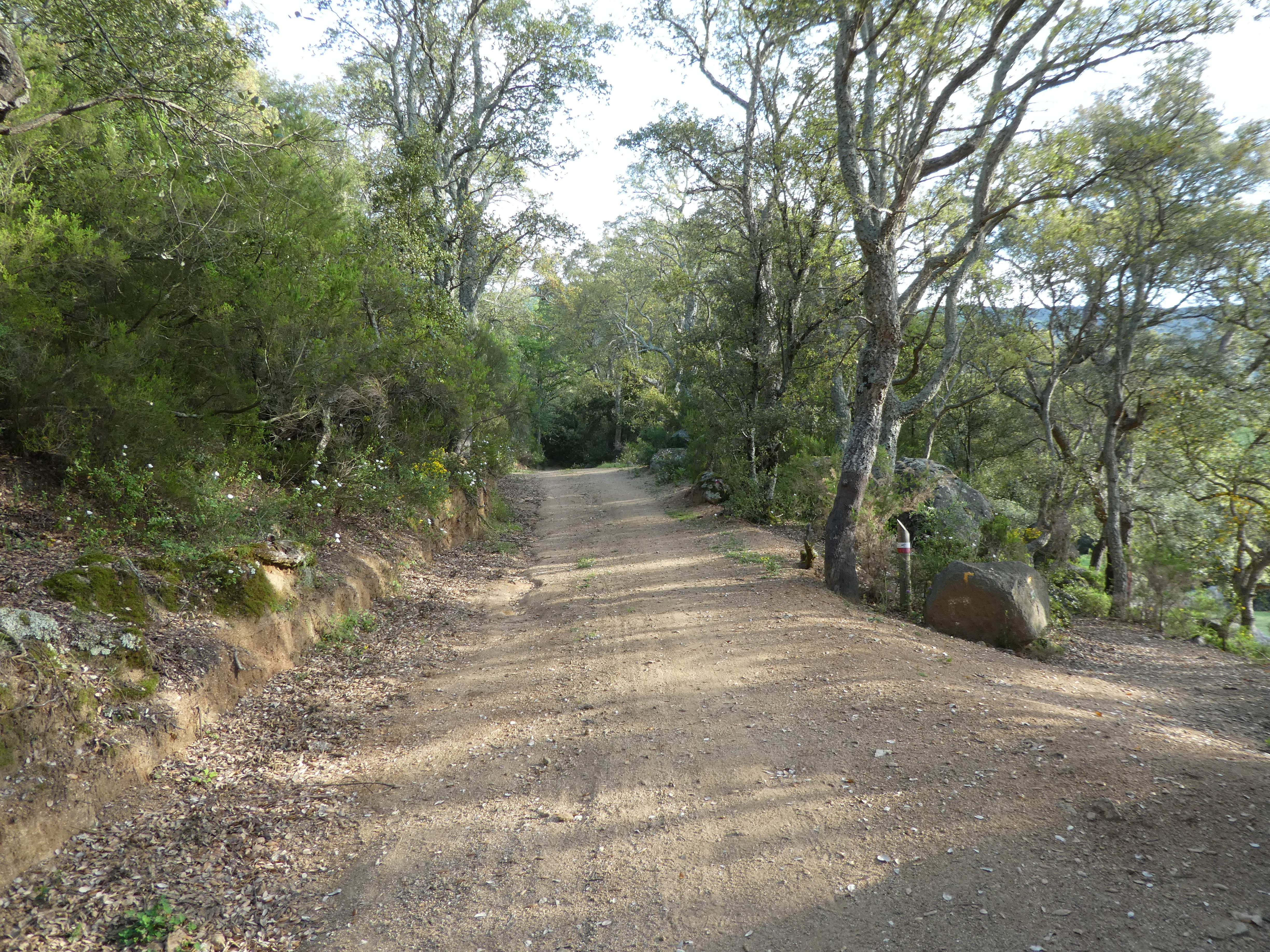 A ce croisement avec le chemin arrivant du Castell de Cabrera (1600 mètres après le Coll de les Cordes), suivre le chemin partant sur tout droit direction Maçanet de Cabrenys, balisé en rouge et blanc, et en jaune, et en vert et blanc dorénavant