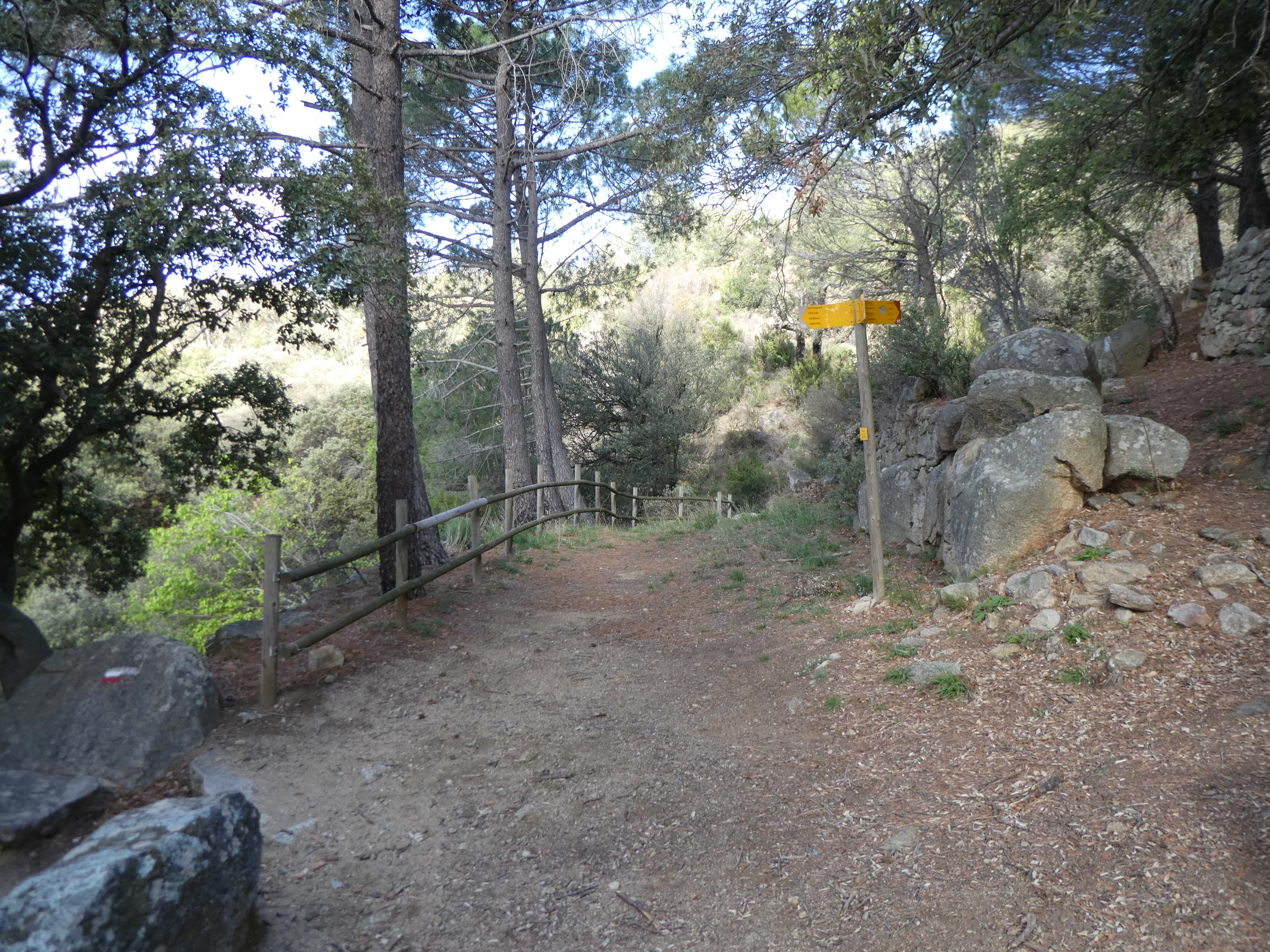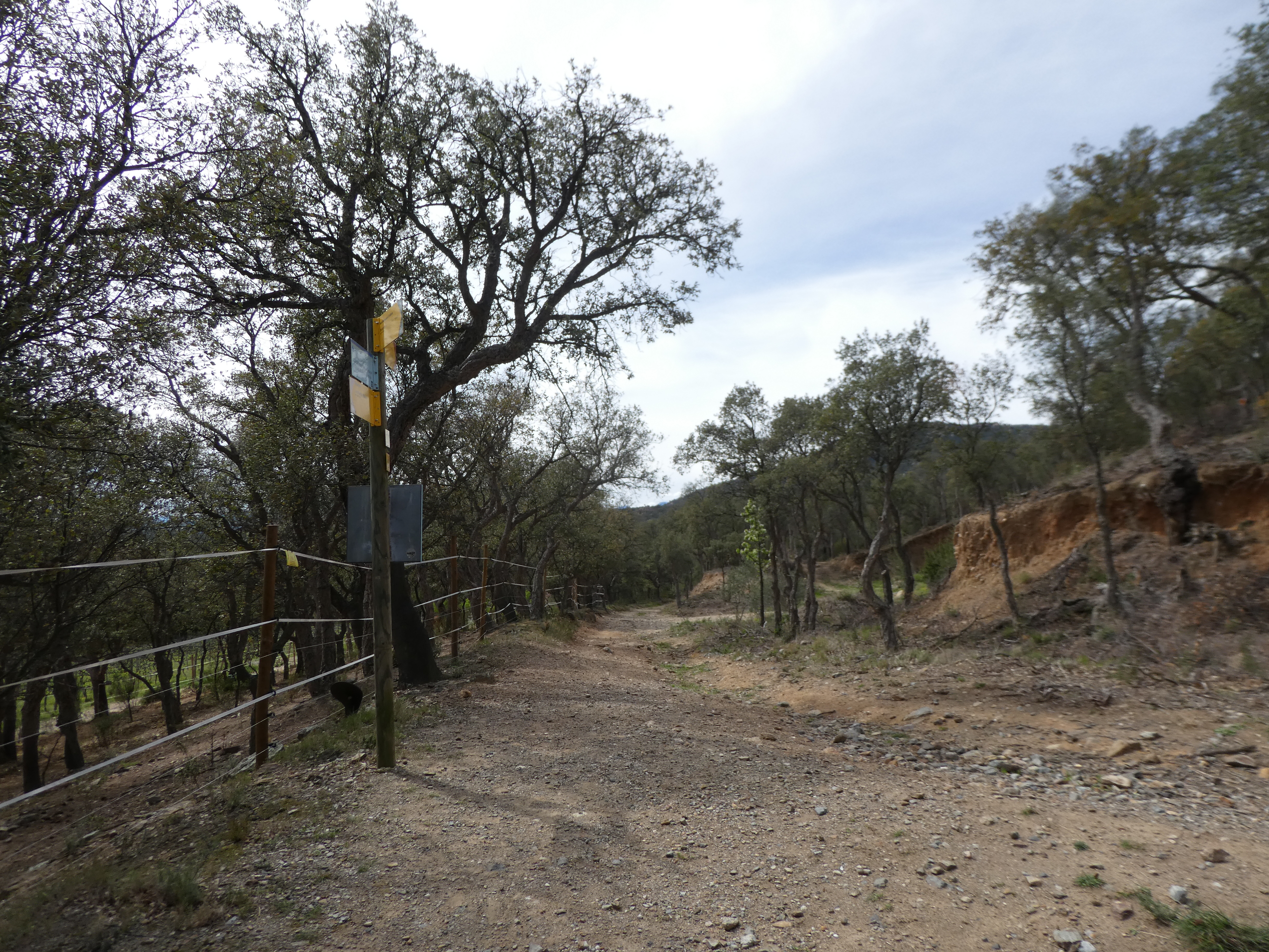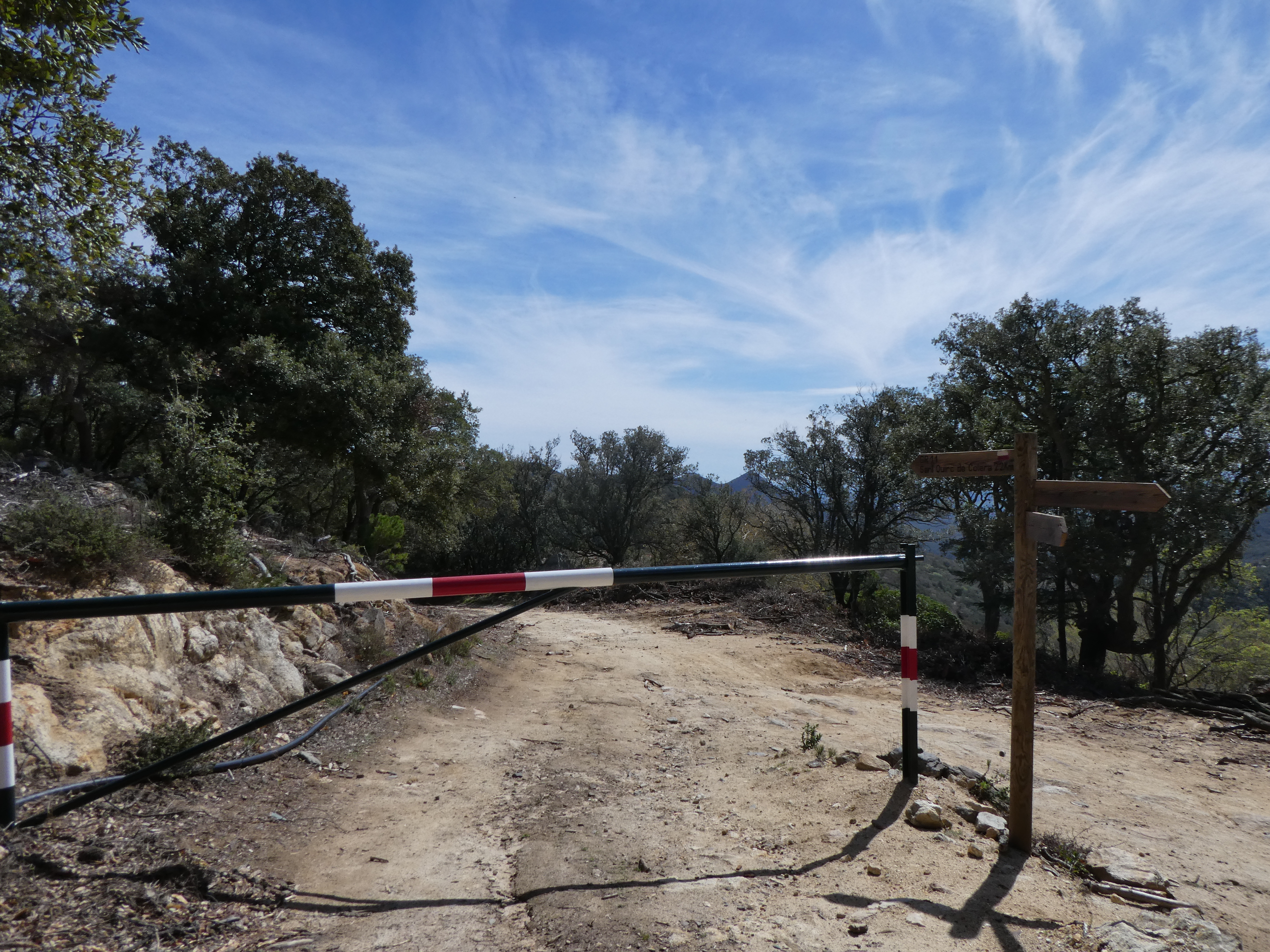 A ce croisement marqué par la présence d'un panneau directionnel (200 mètres après le précédent), suivre la piste partant en quasi demi-tour sur la gauche direction la Jonquera, balisé sporadiquement en jaune