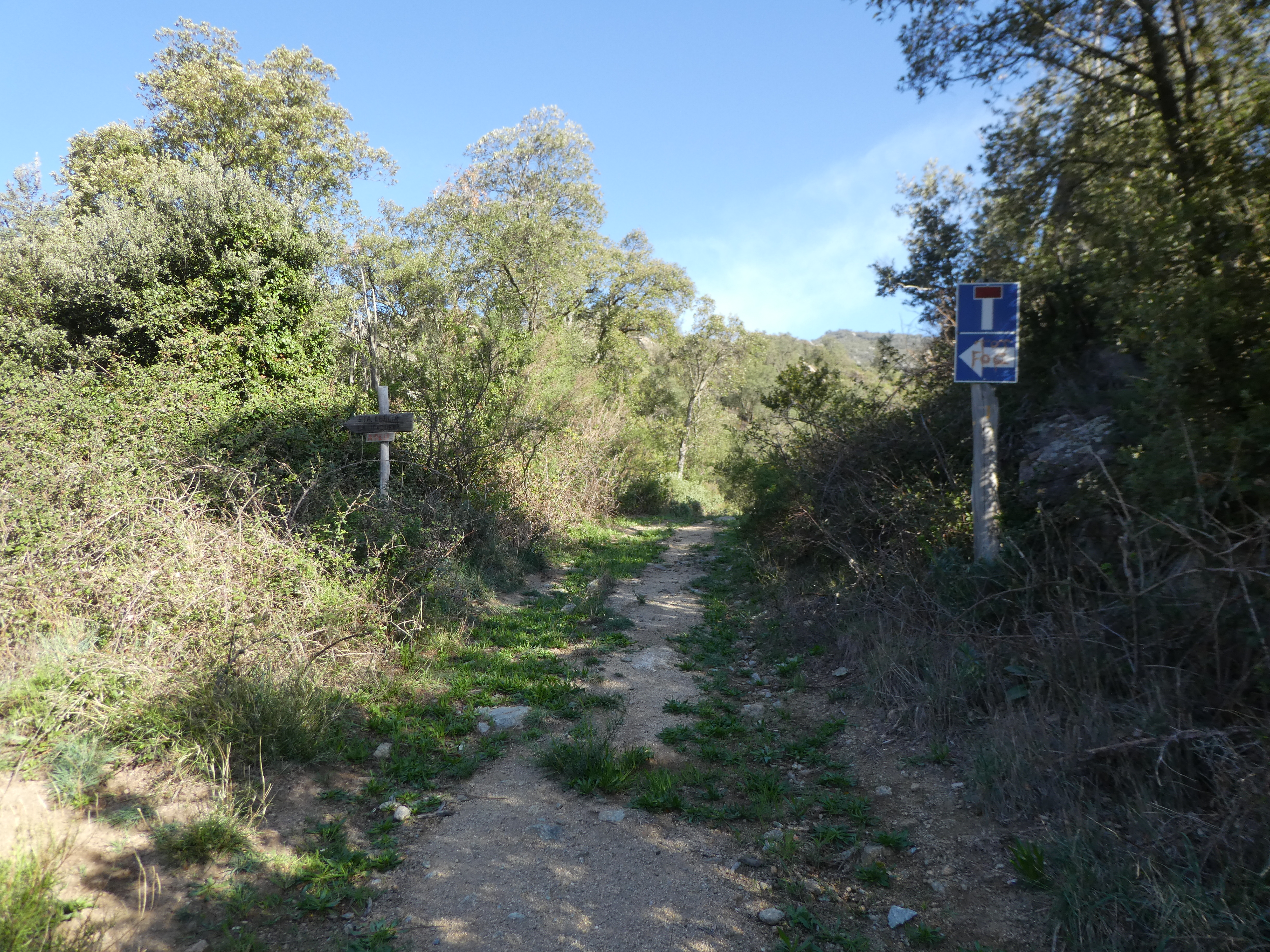Santa Llúcia (435 m) : suivre le chemin montant sur la droite direction el Pertús, balisé en rouge et blanc, et en jaune dorénavant