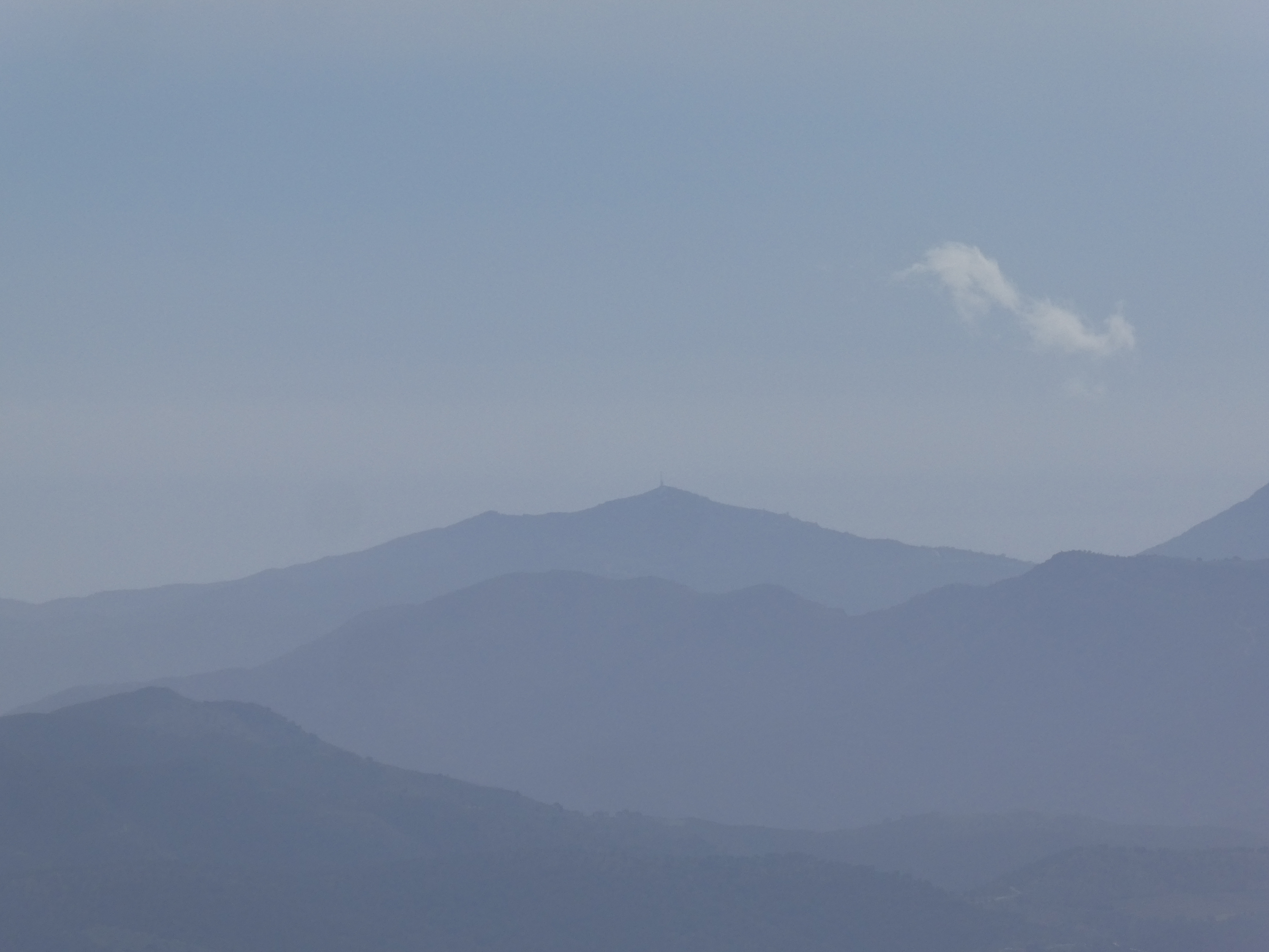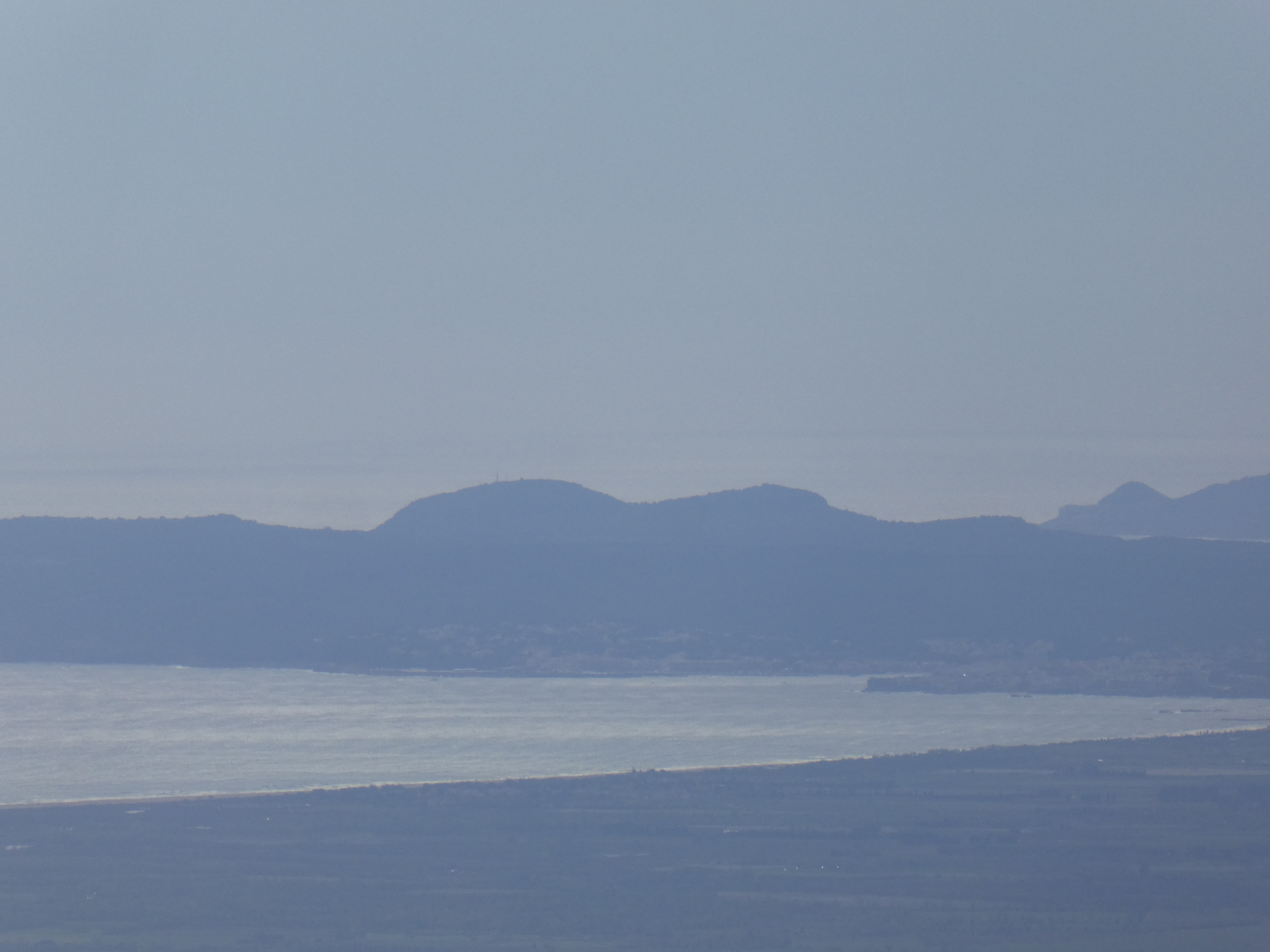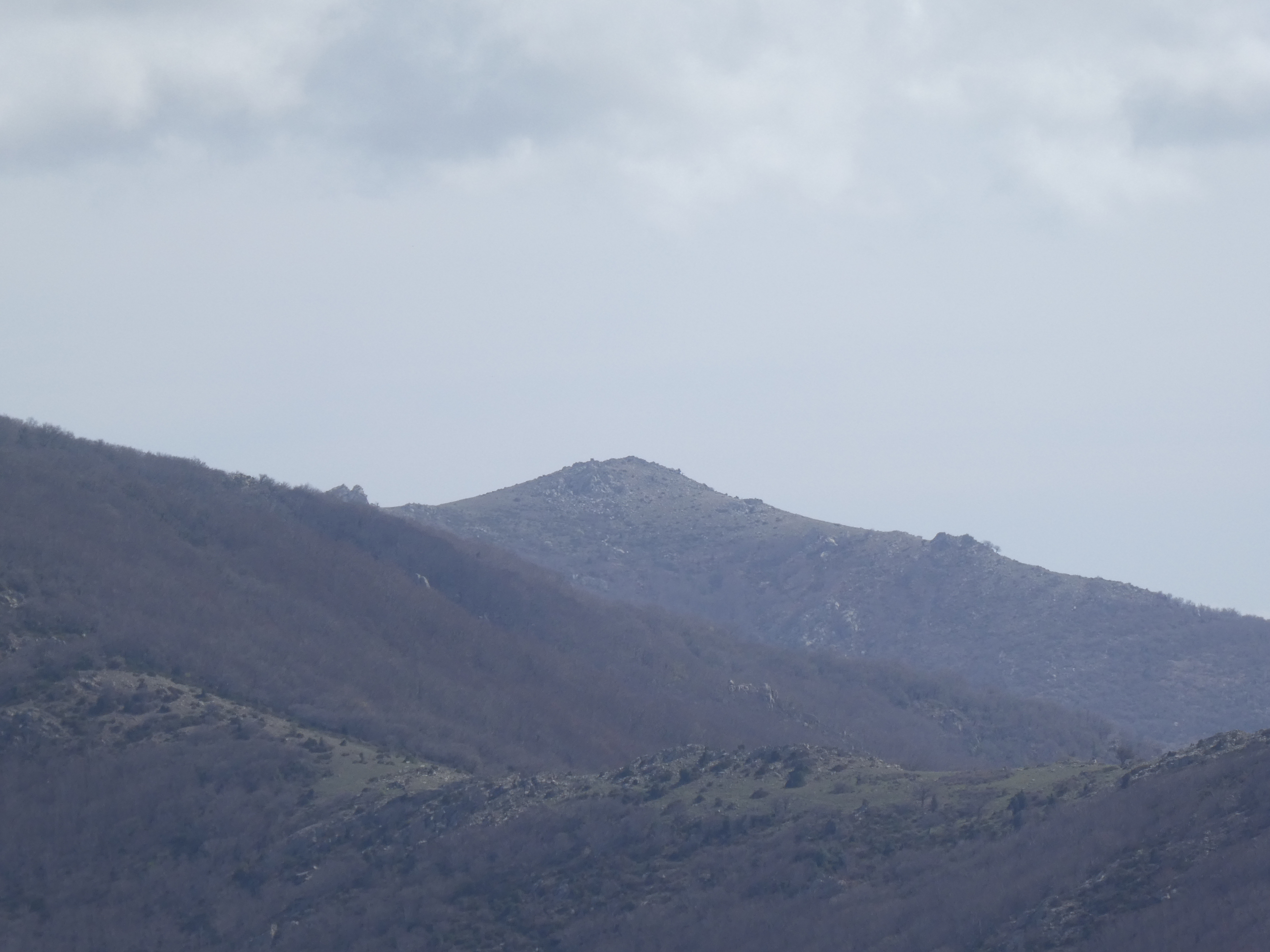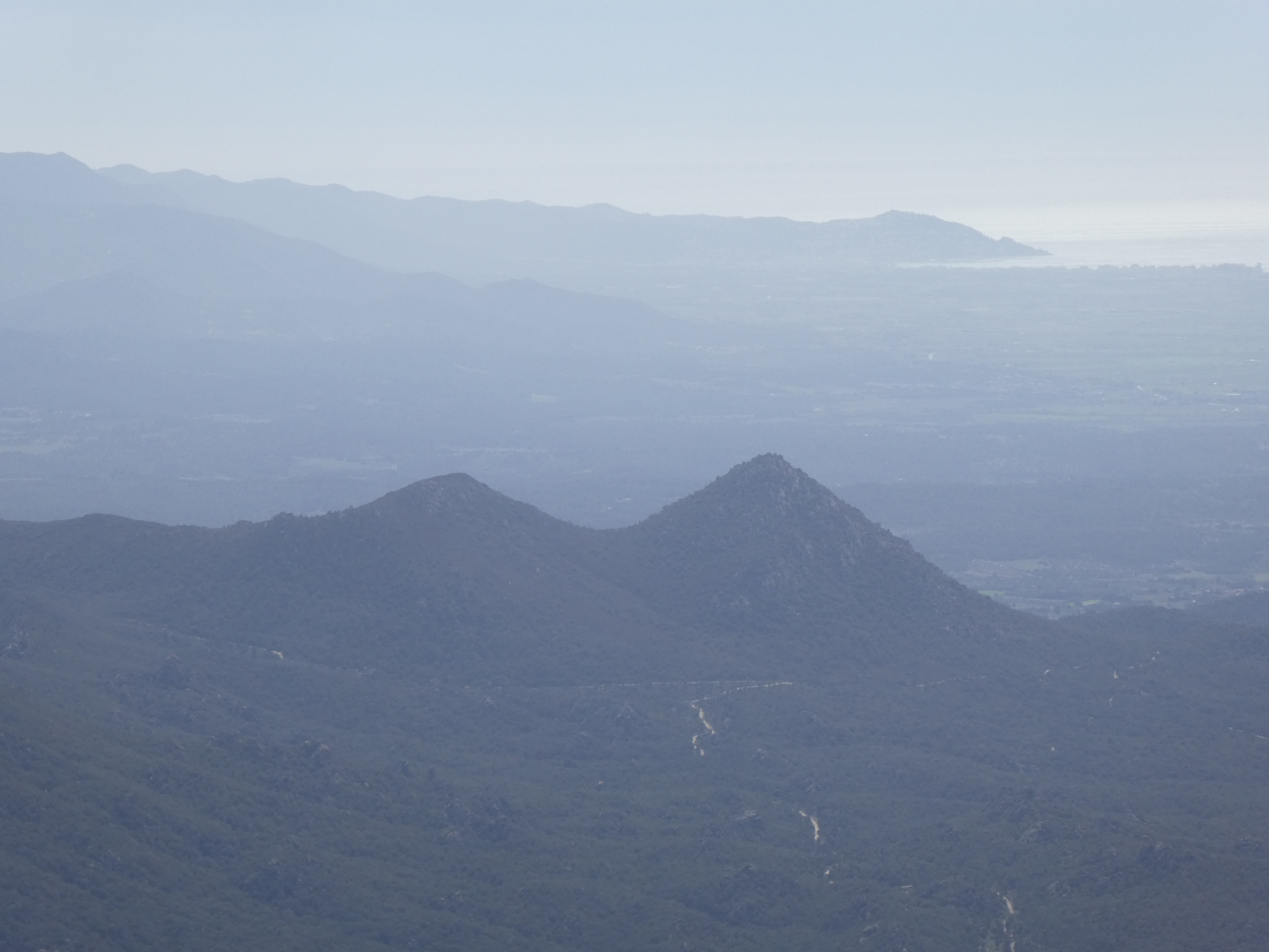 Zoom au loin sur le massif de Montseny avec les Agudes (1706 m) à gauche et Matagalls (1697 m) à droite