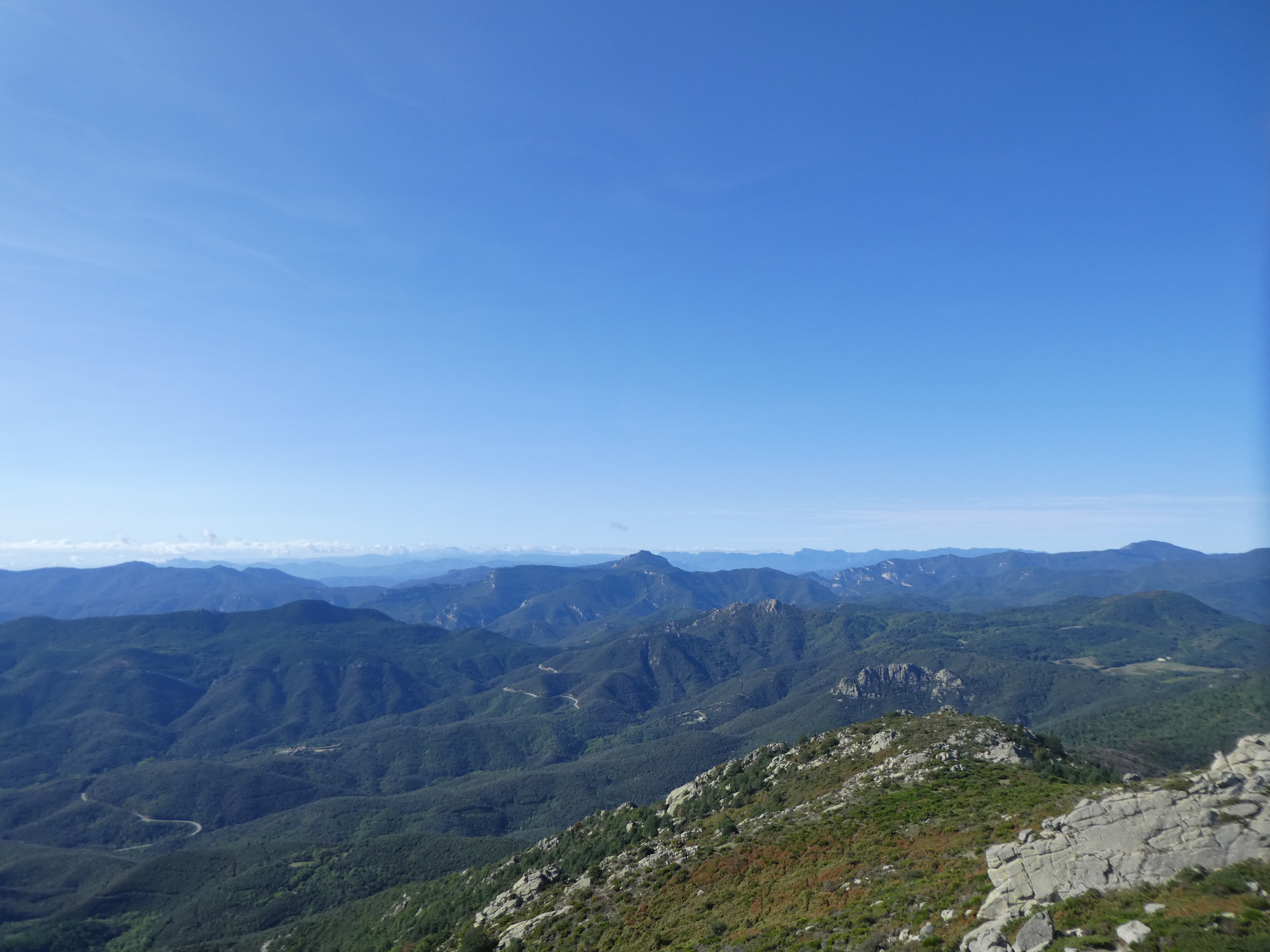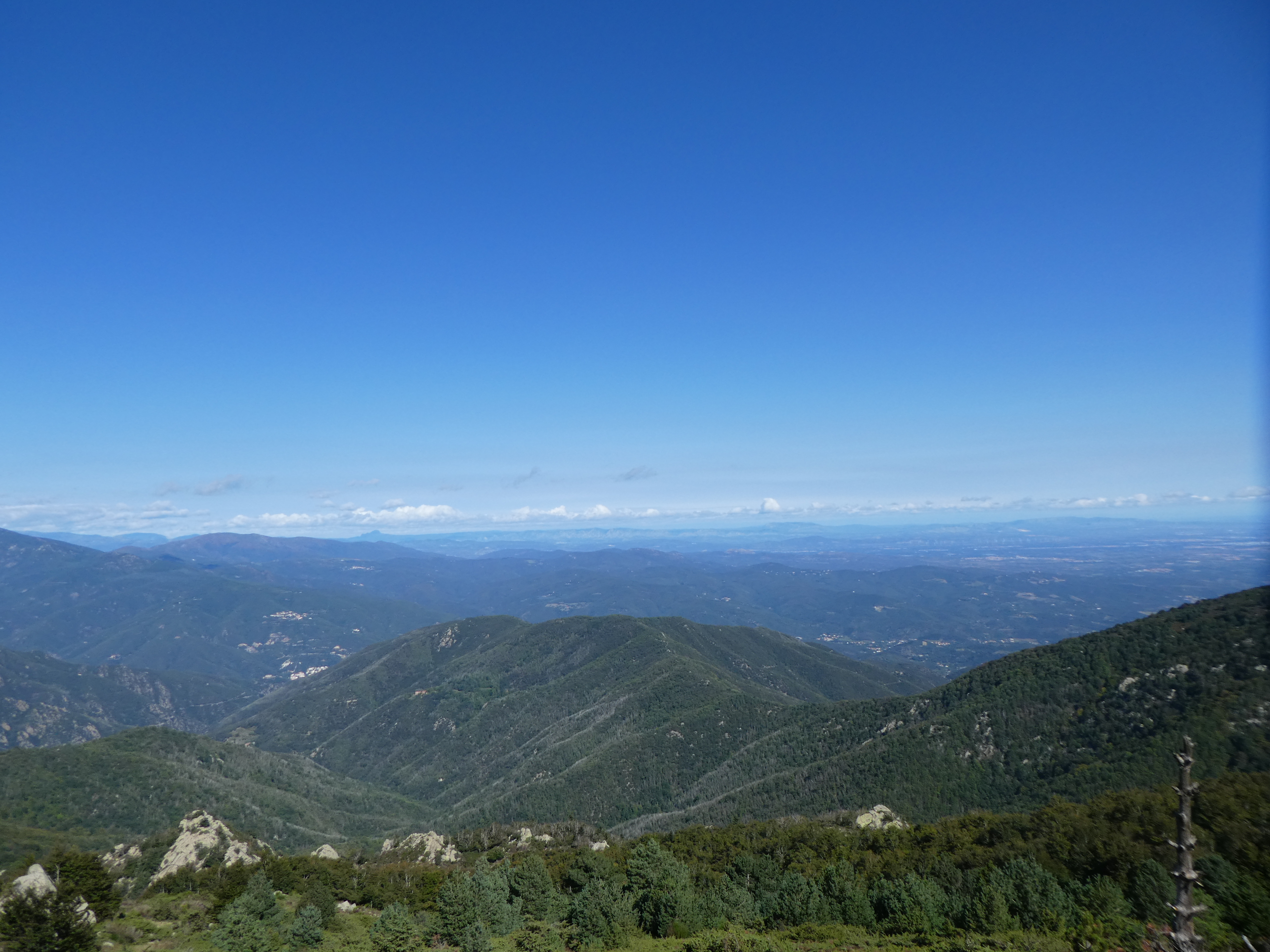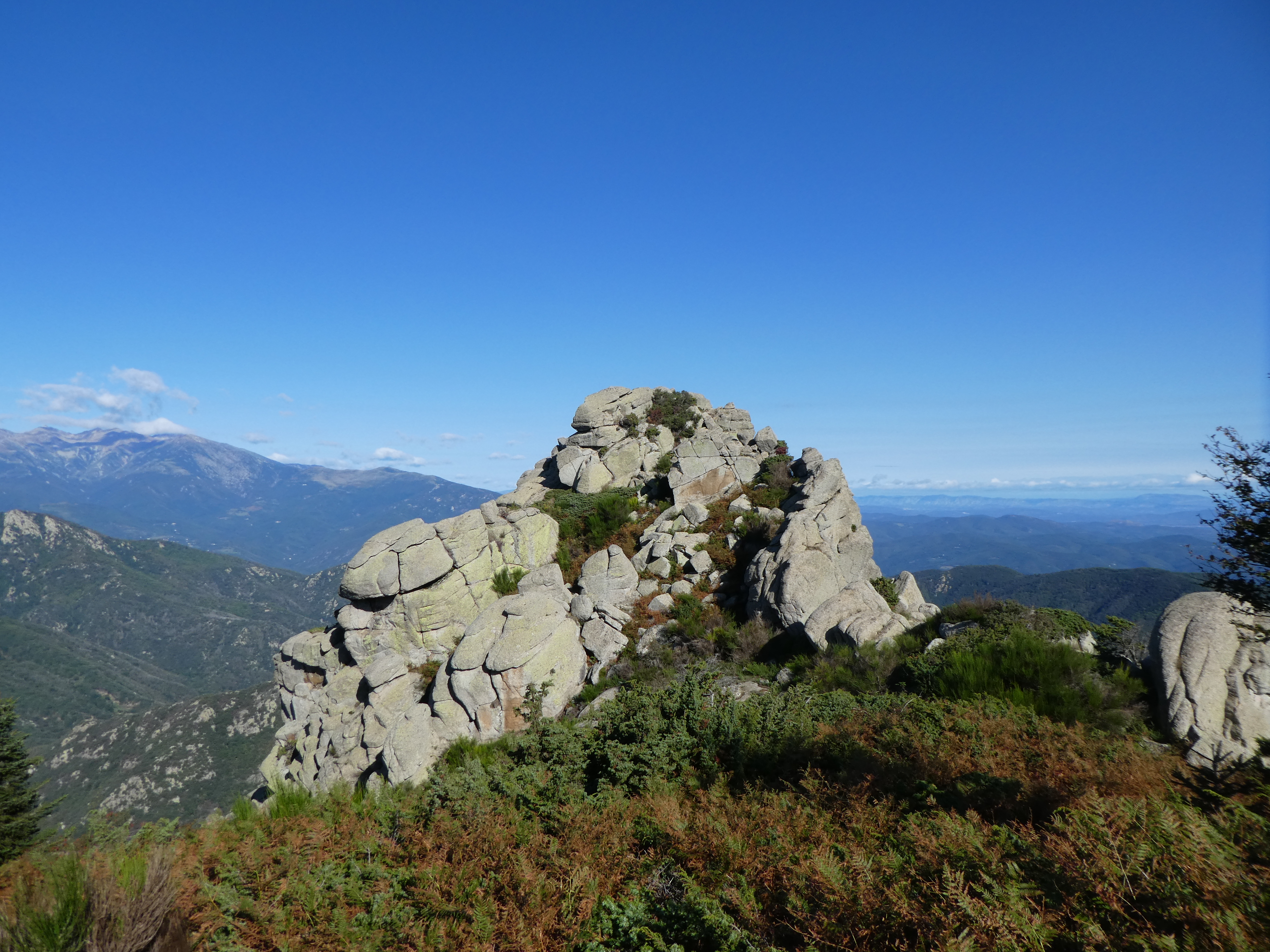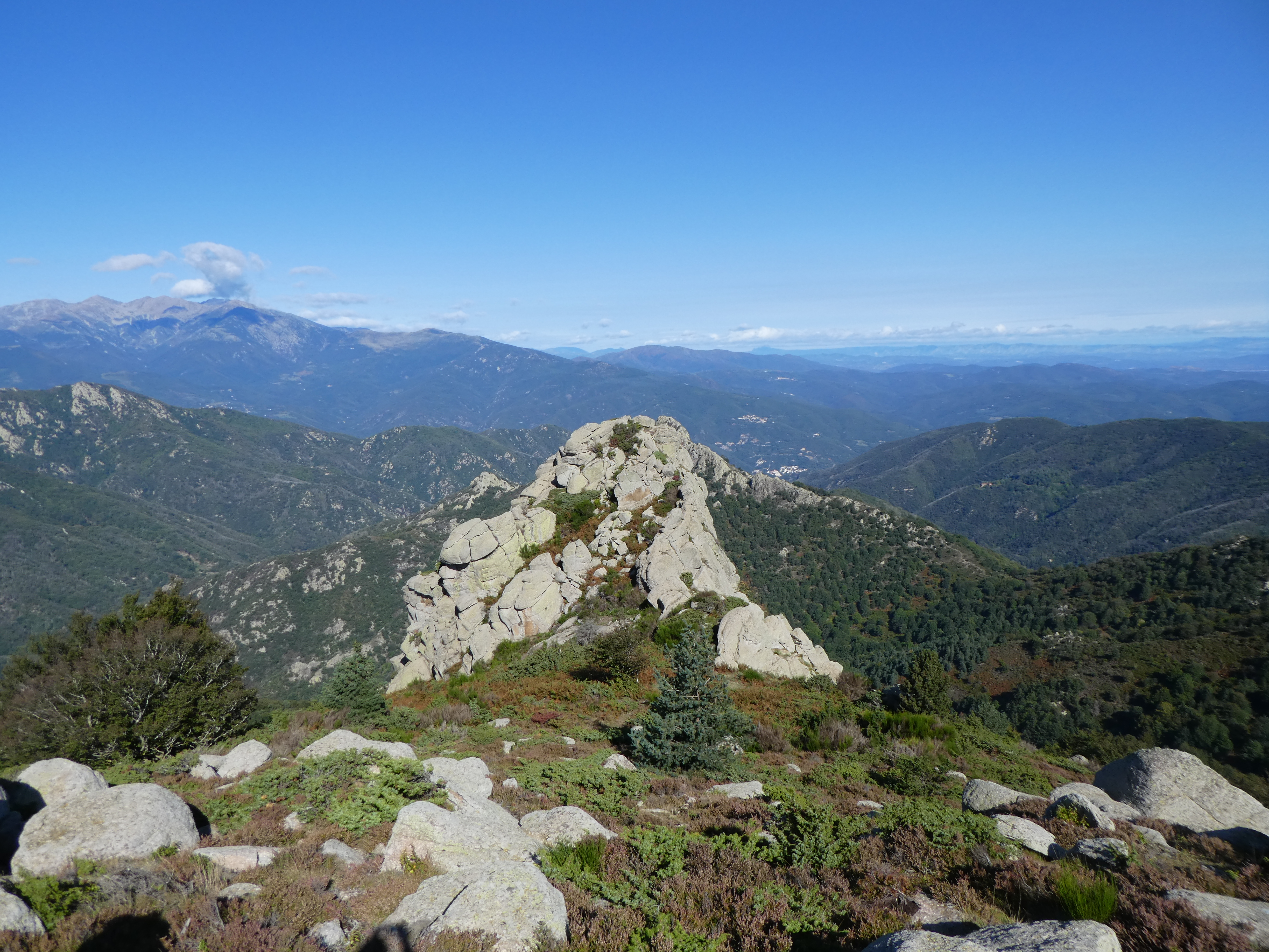 Arrivée au sommet du Roc de la Campana (1438 m) : panorama semblable à celui du Roc de la Sentinella avec vue plus étendue sur le massif du Roc de Frausa et des Albères