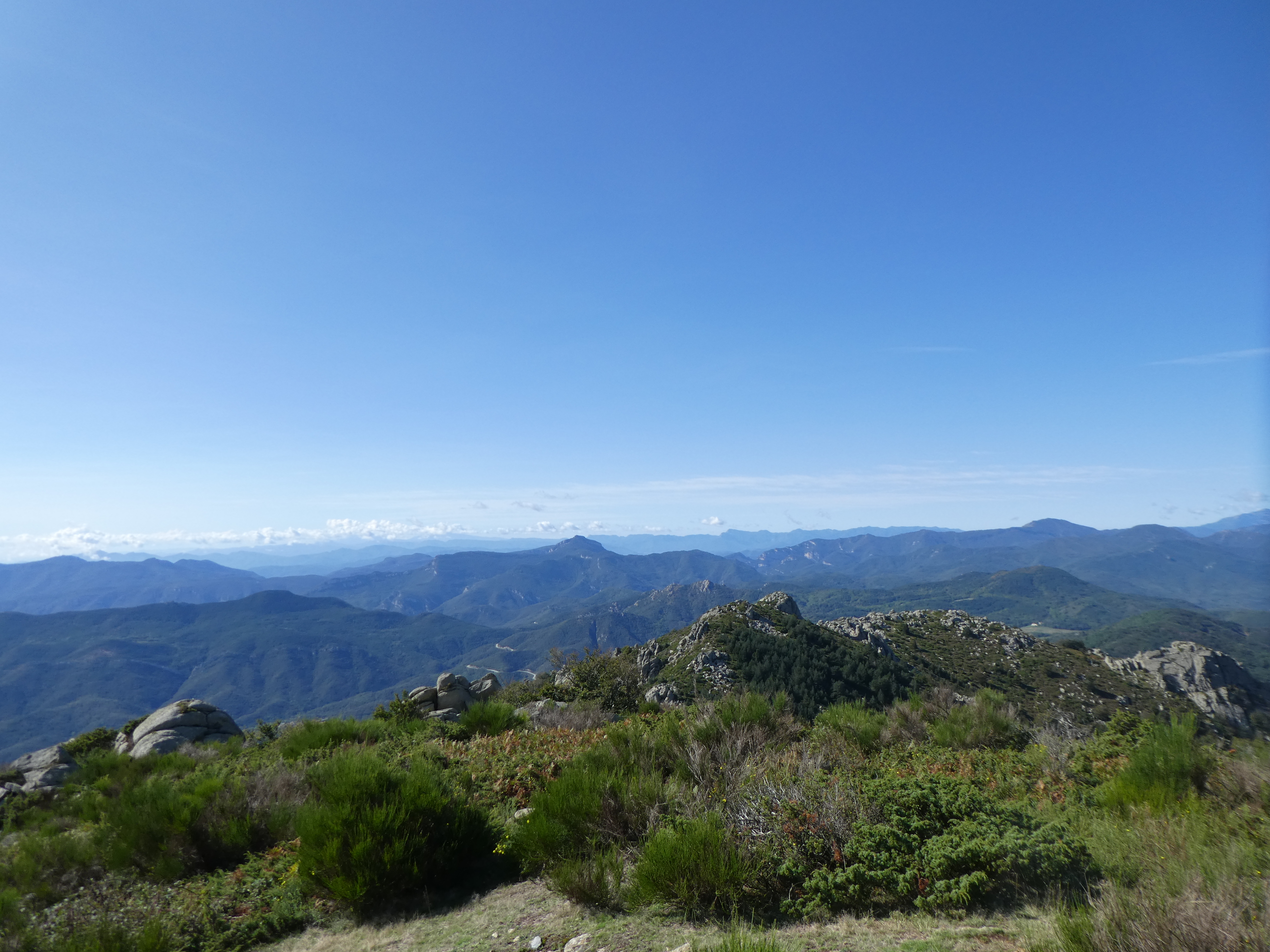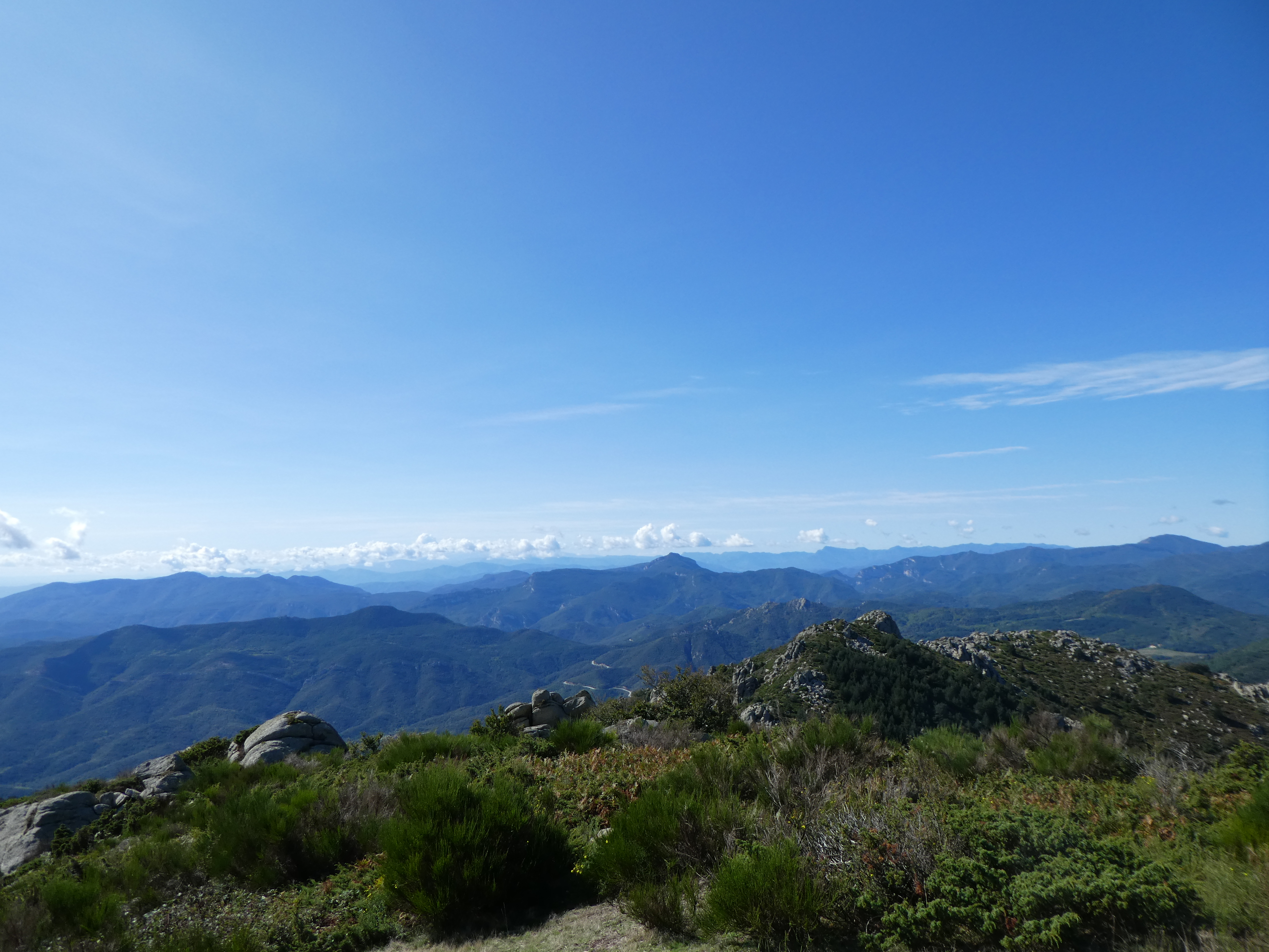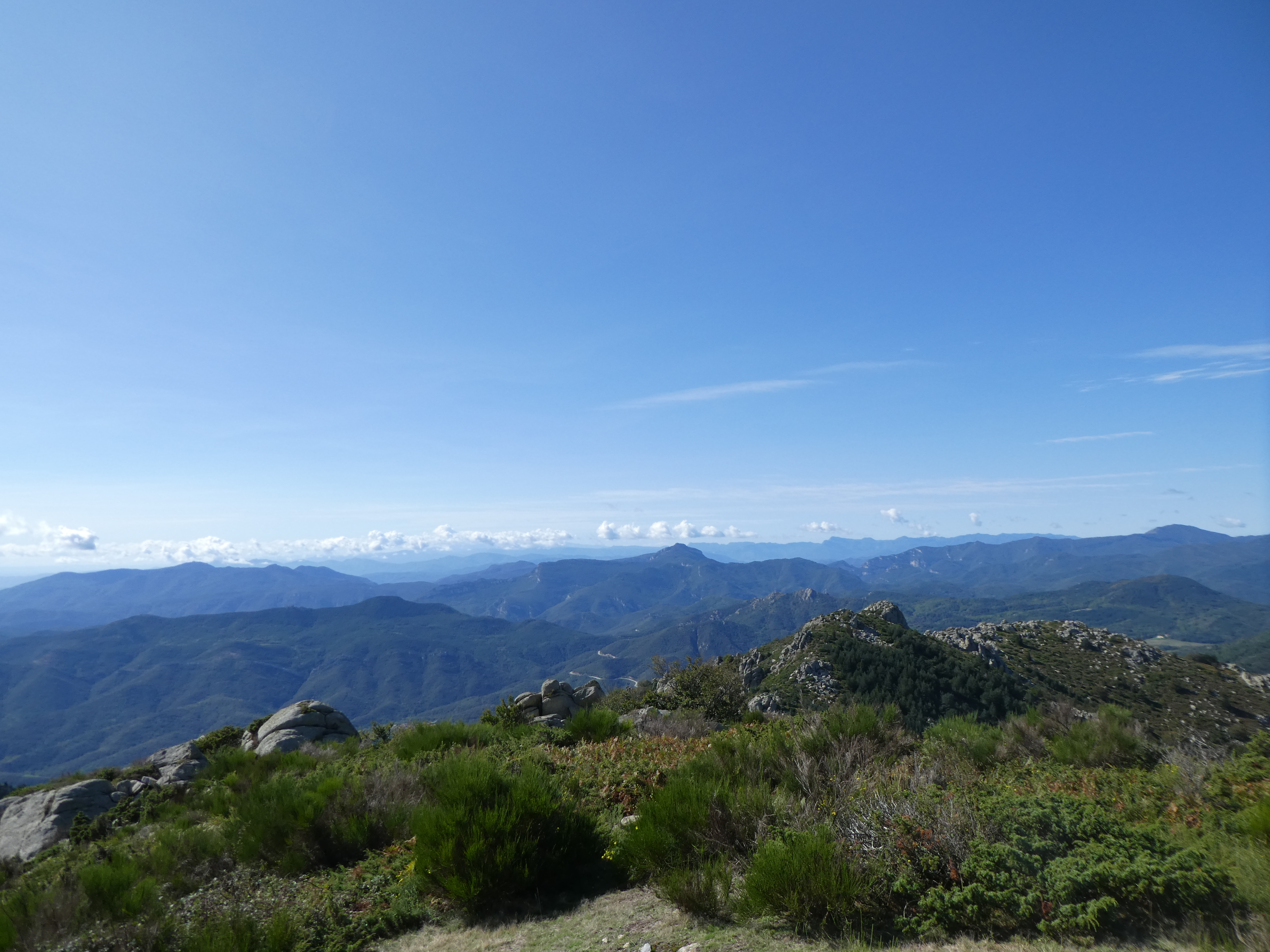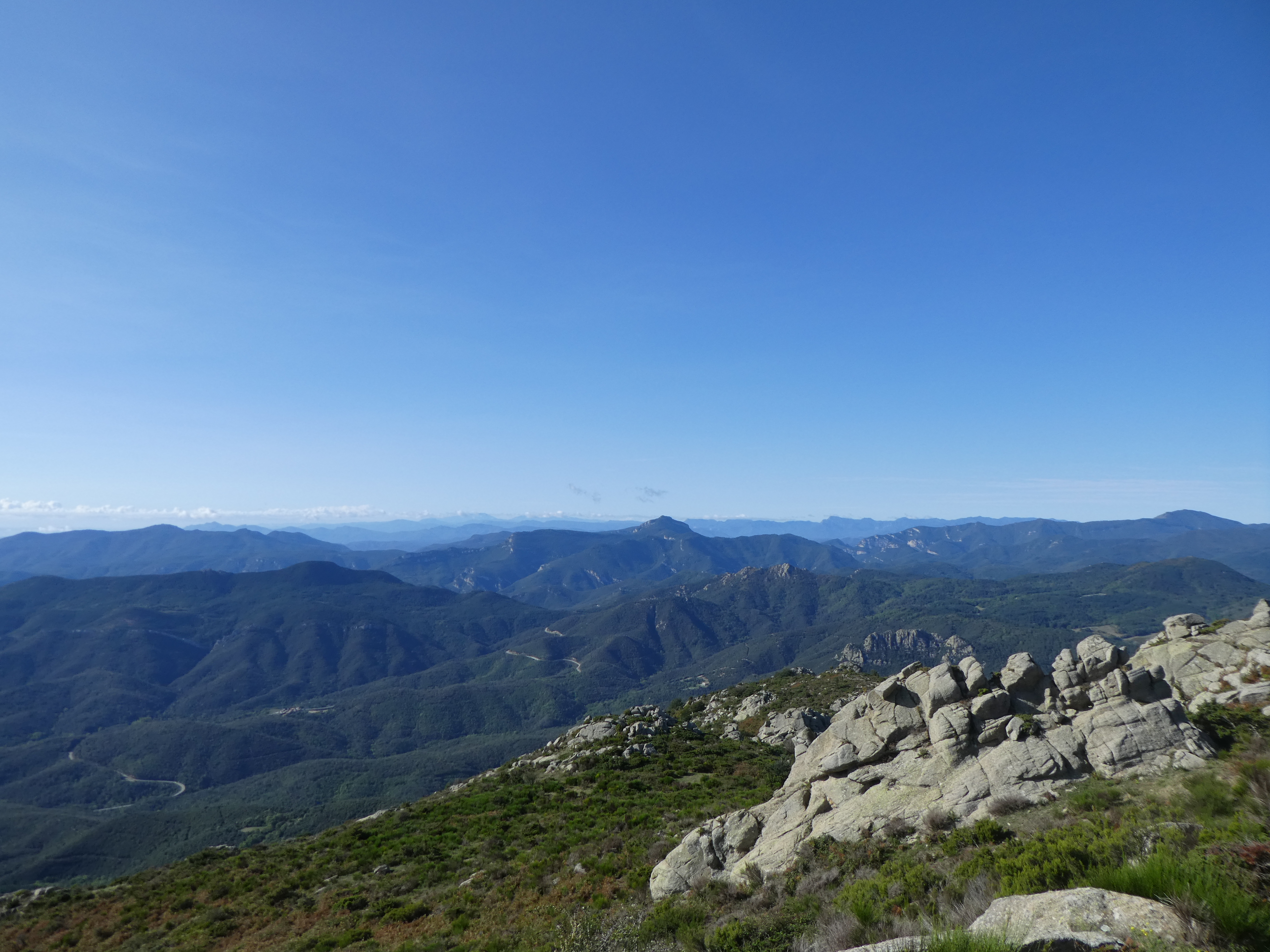 Arrivée au sommet du Roc de la Campana (1438 m) : panorama semblable à celui du Roc de la Sentinella avec vue plus étendue sur le massif du Roc de Frausa et des Albères