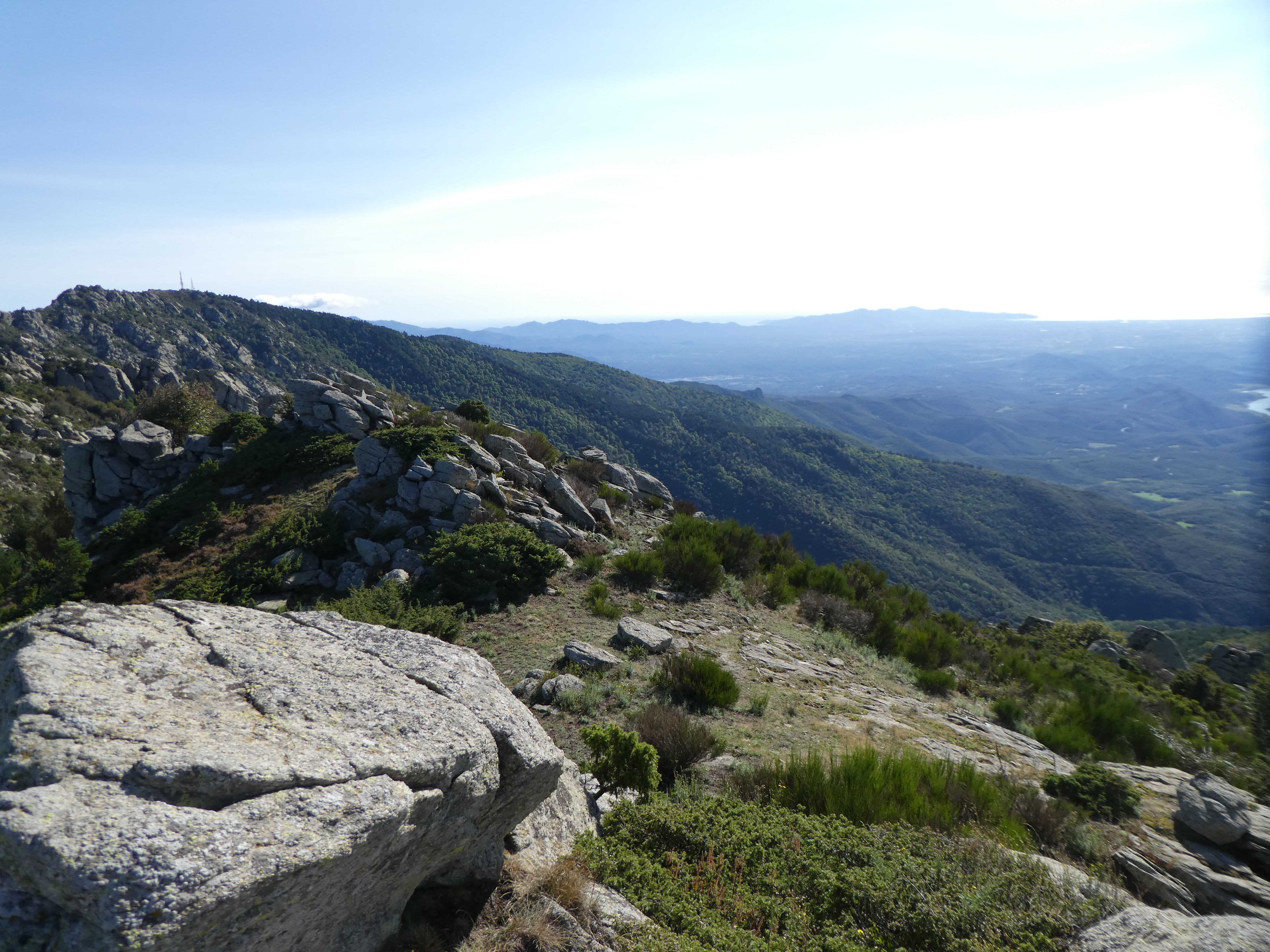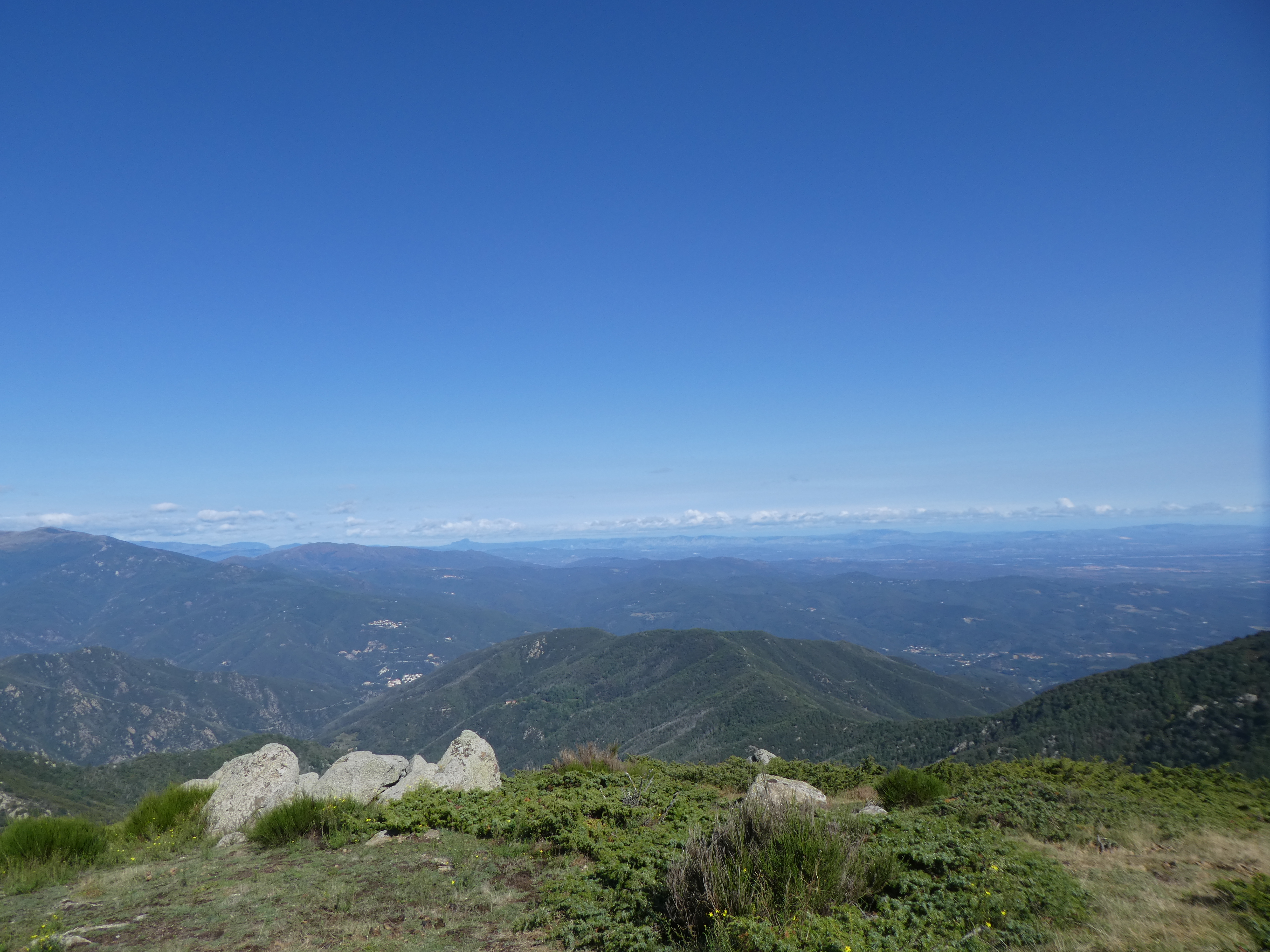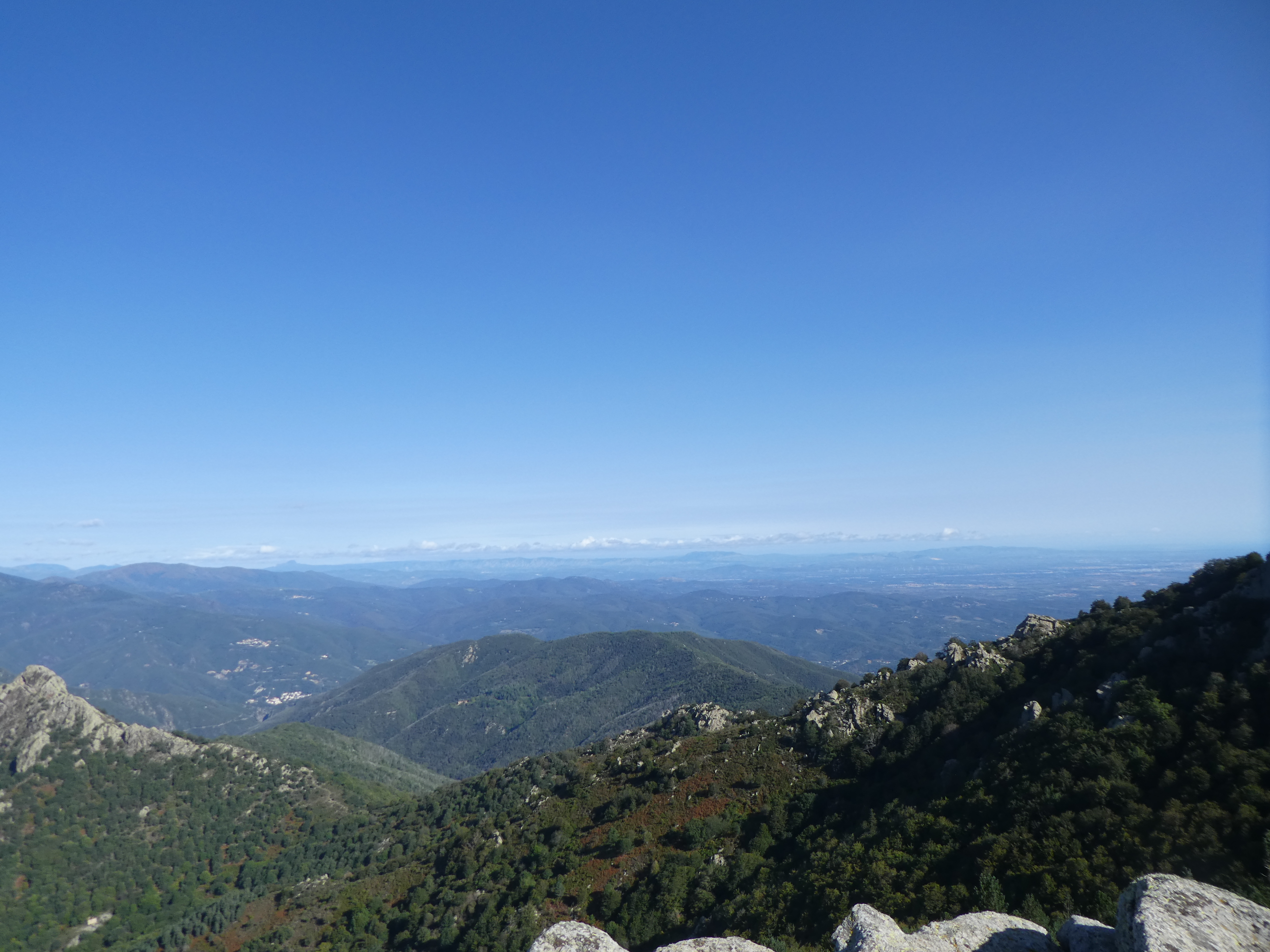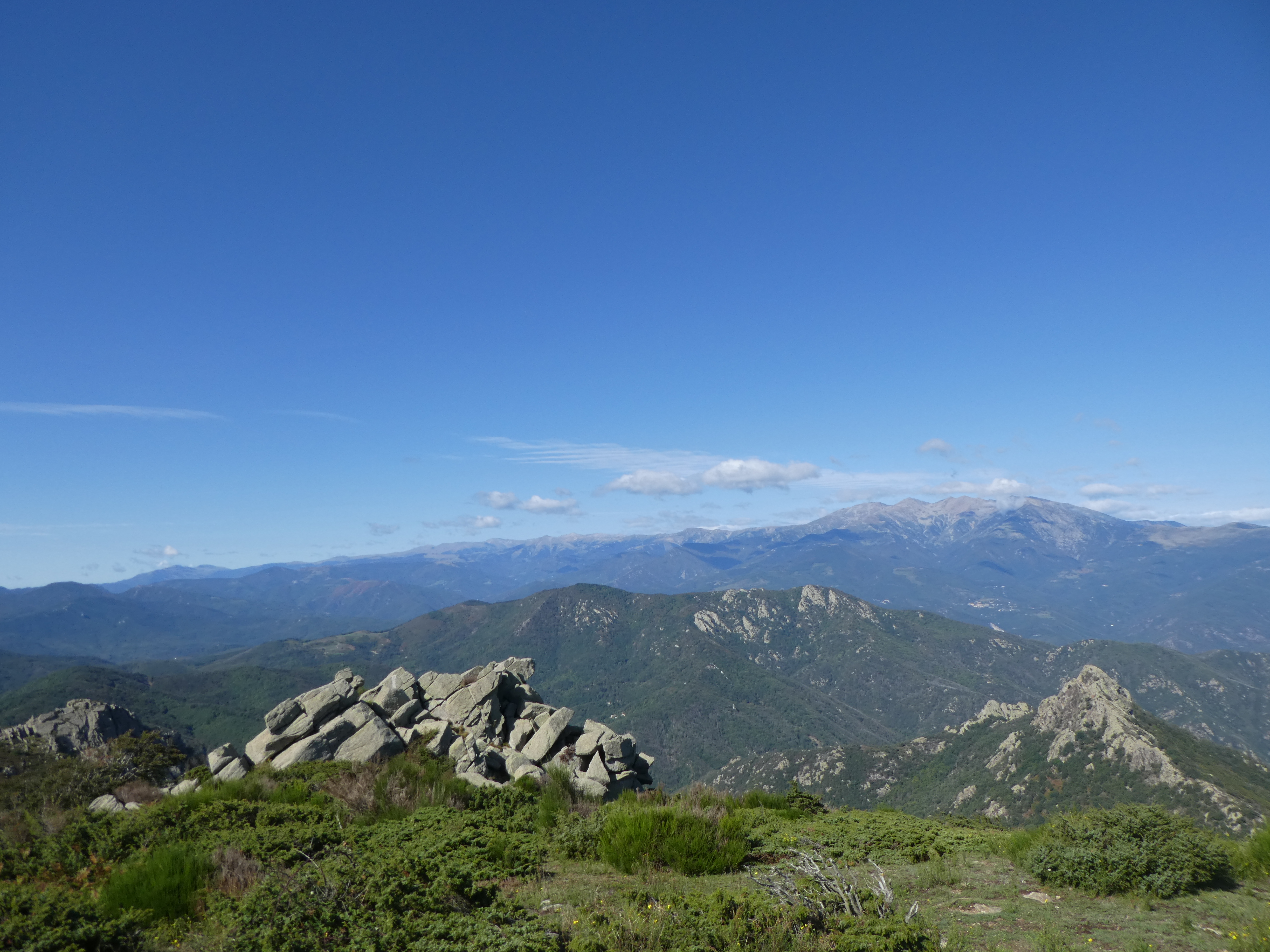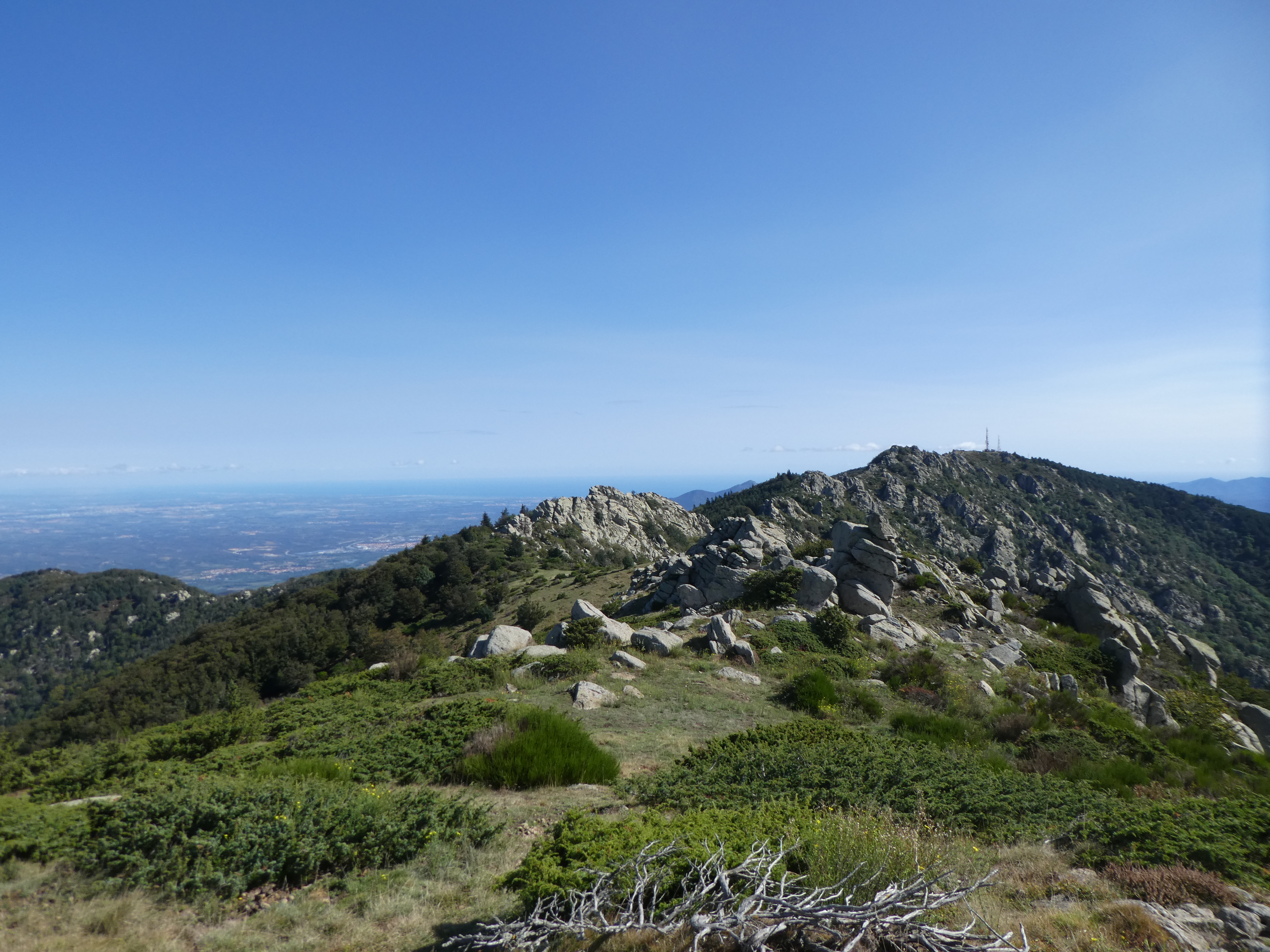 Arrivée au sommet du Roc de la Campana (1438 m) : panorama semblable à celui du Roc de la Sentinella avec vue plus étendue sur le massif du Roc de Frausa et des Albères