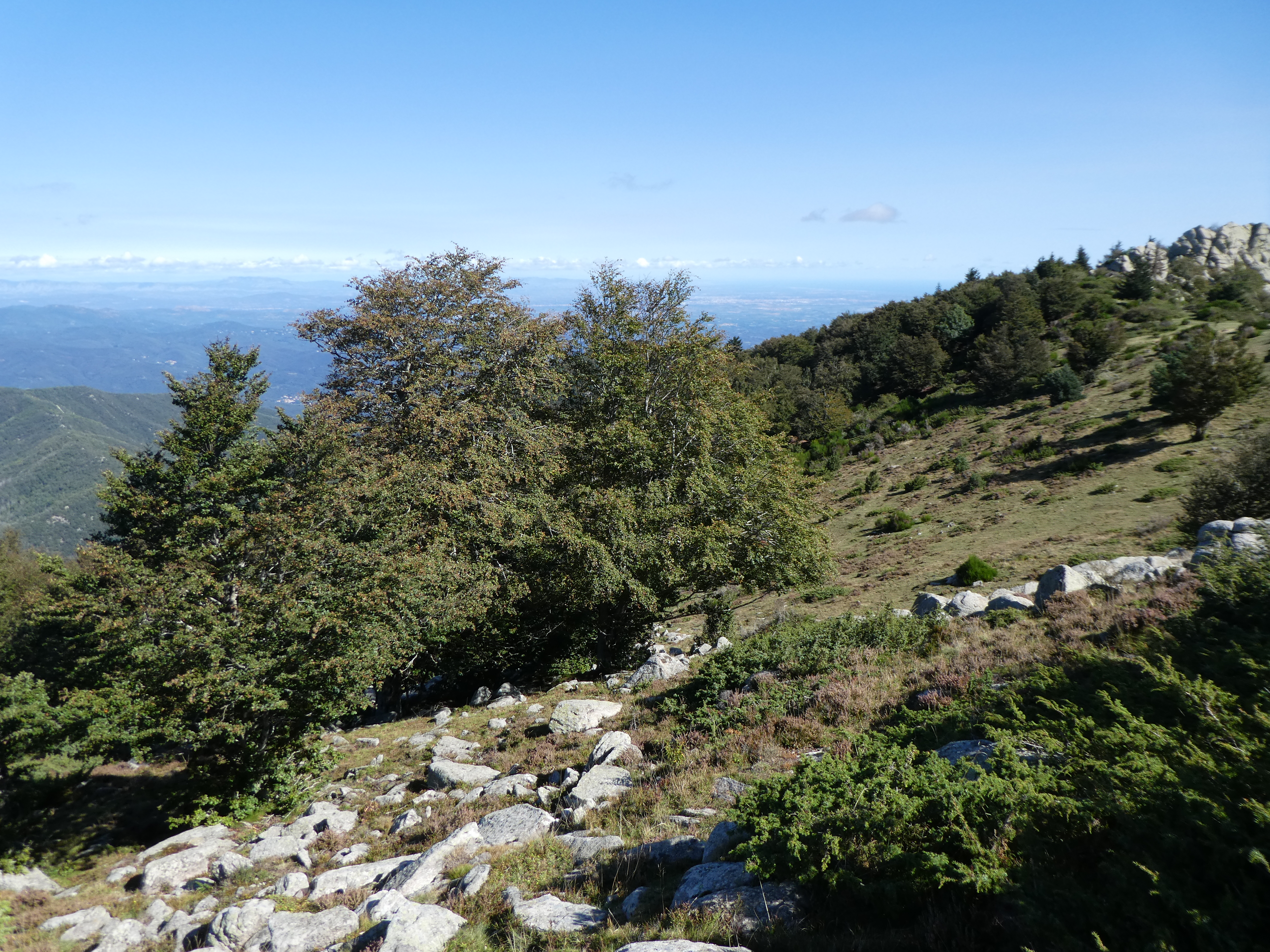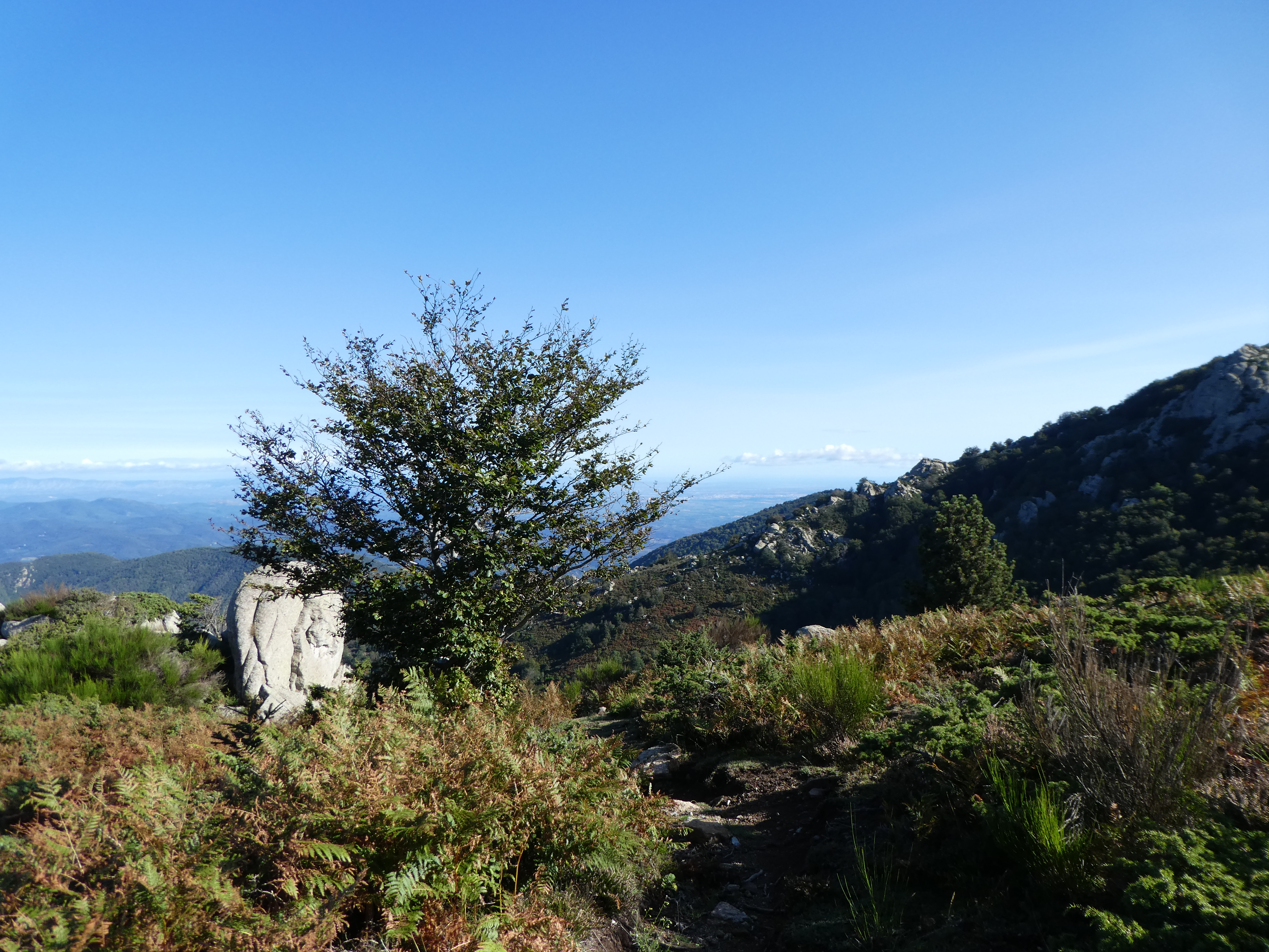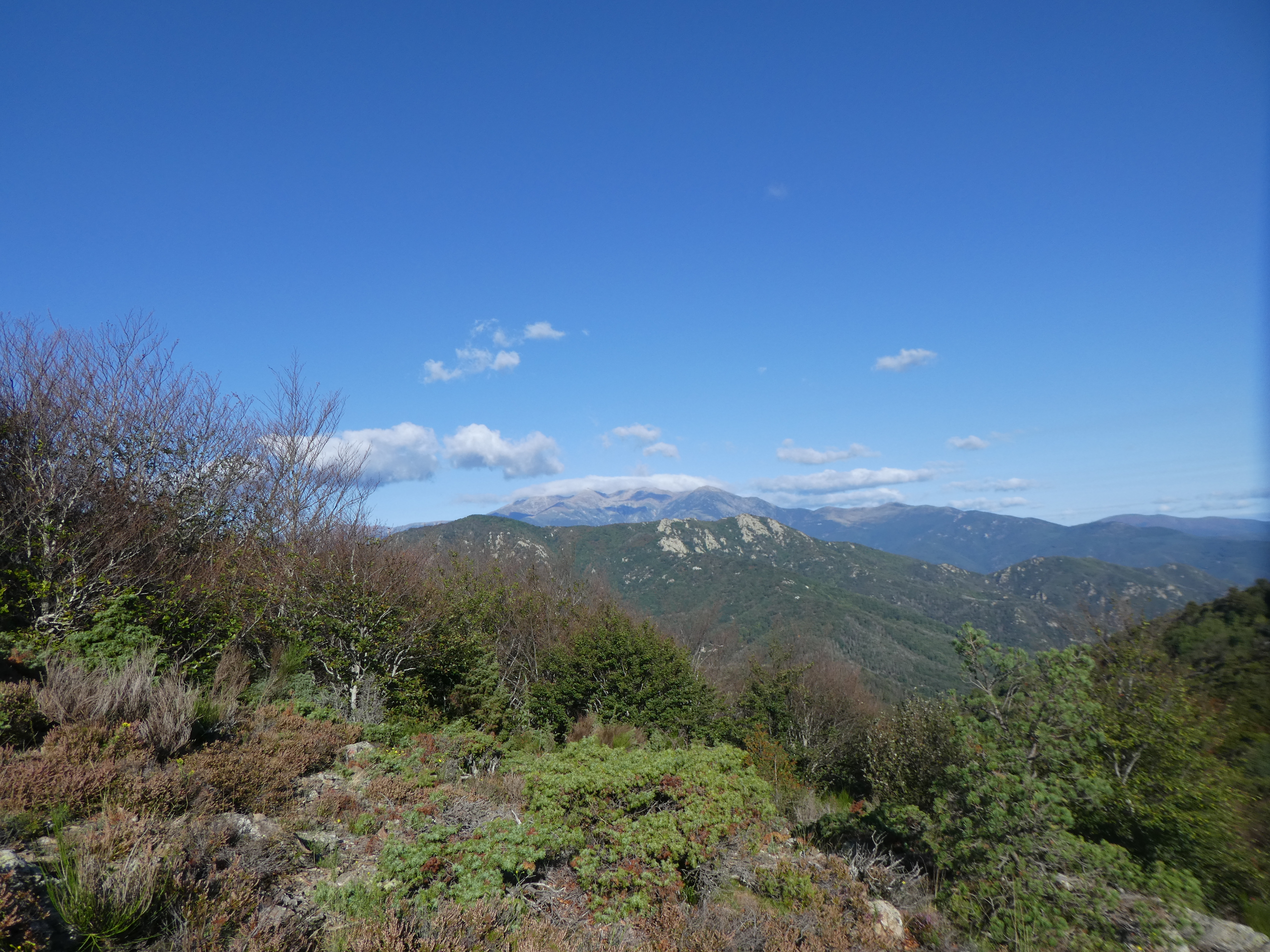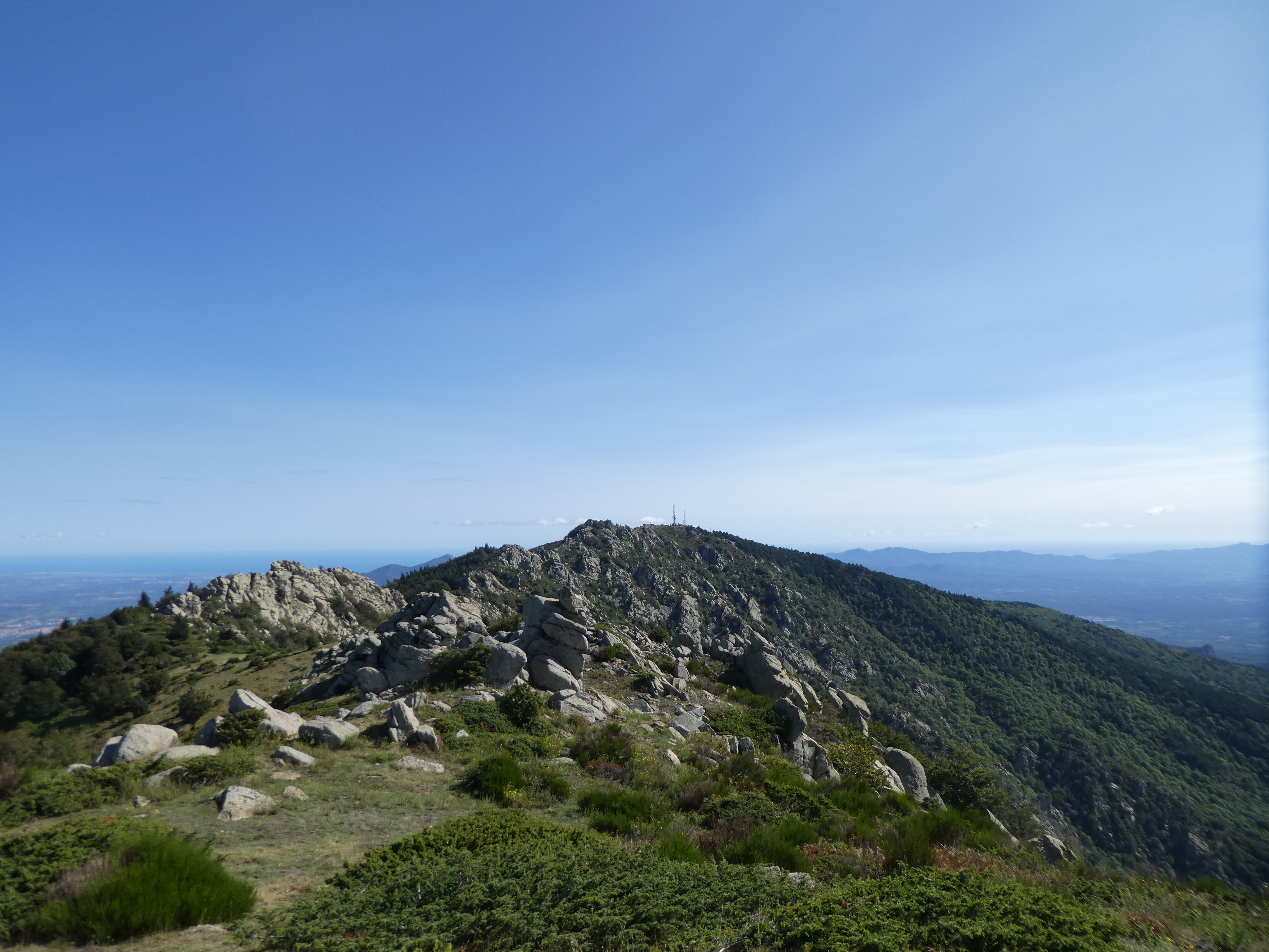 Arrivée au sommet du Roc de la Campana (1438 m) : panorama semblable à celui du Roc de la Sentinella avec vue plus étendue sur le massif du Roc de Frausa et des Albères