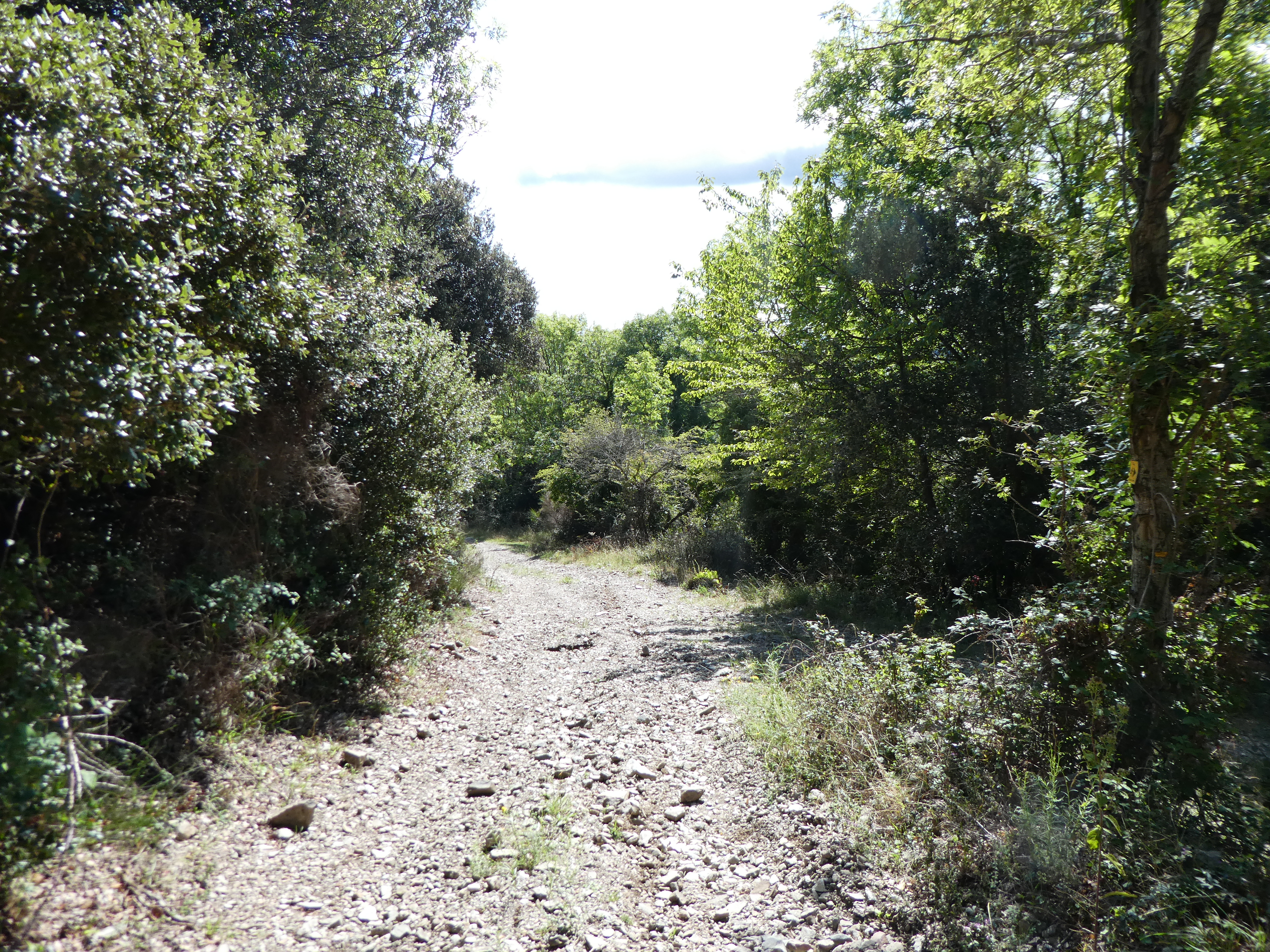 Départ Tapis (580 m) : suivre le chemin partant à droite de la GI-503 direction Coll de la Dona Morta, balisé sporadiquement en jaune et en balises "Olla de Tapis"