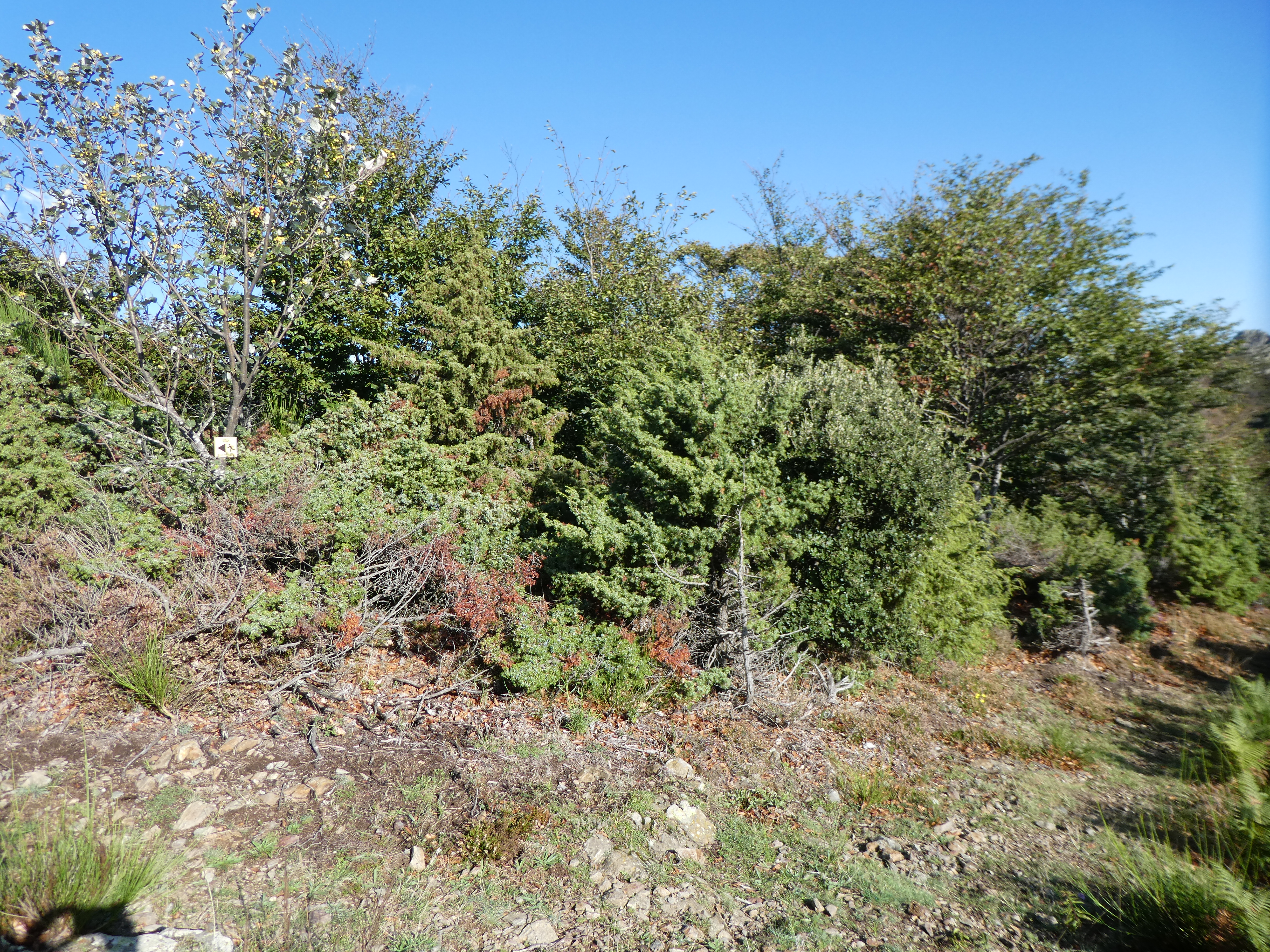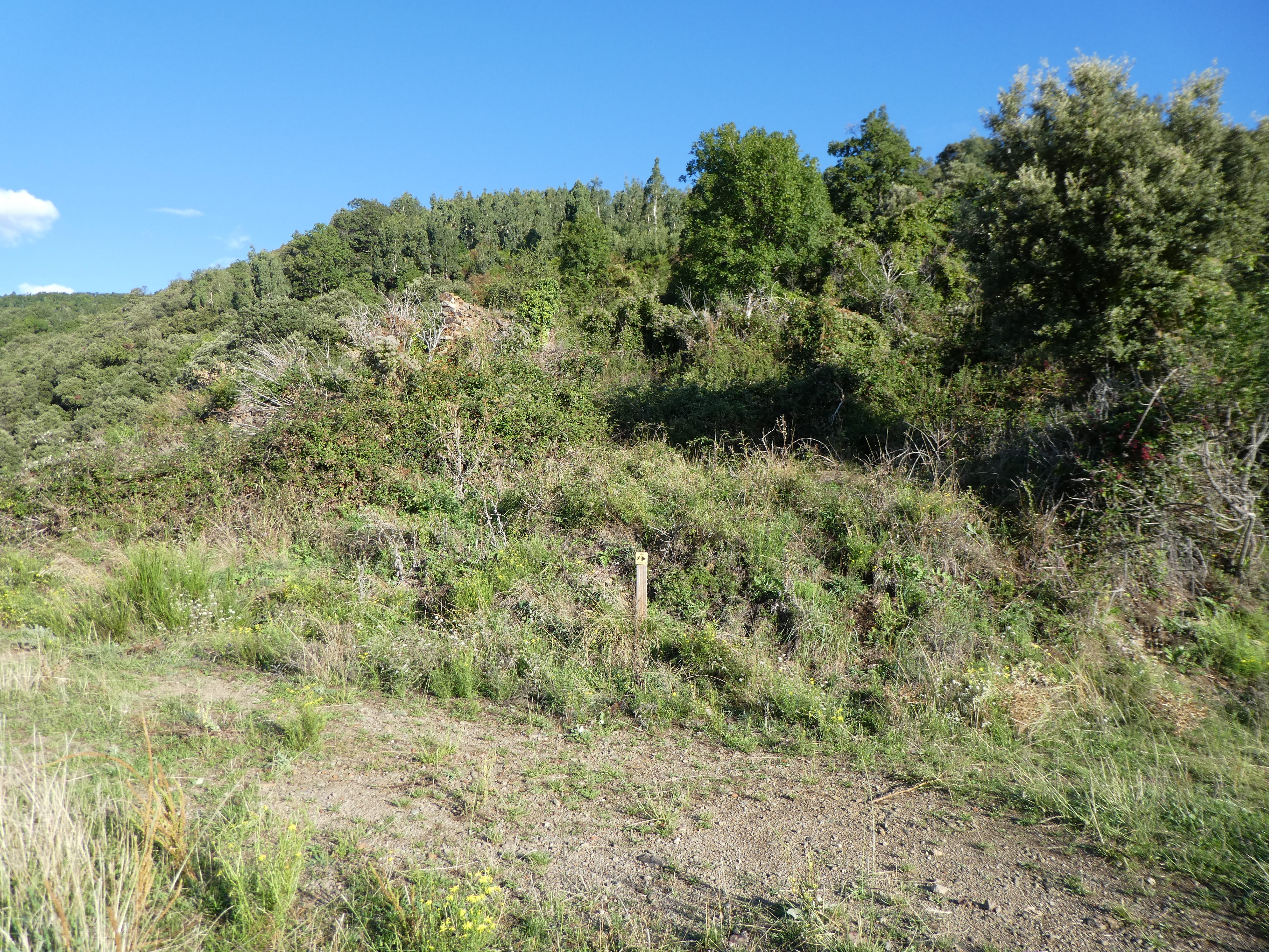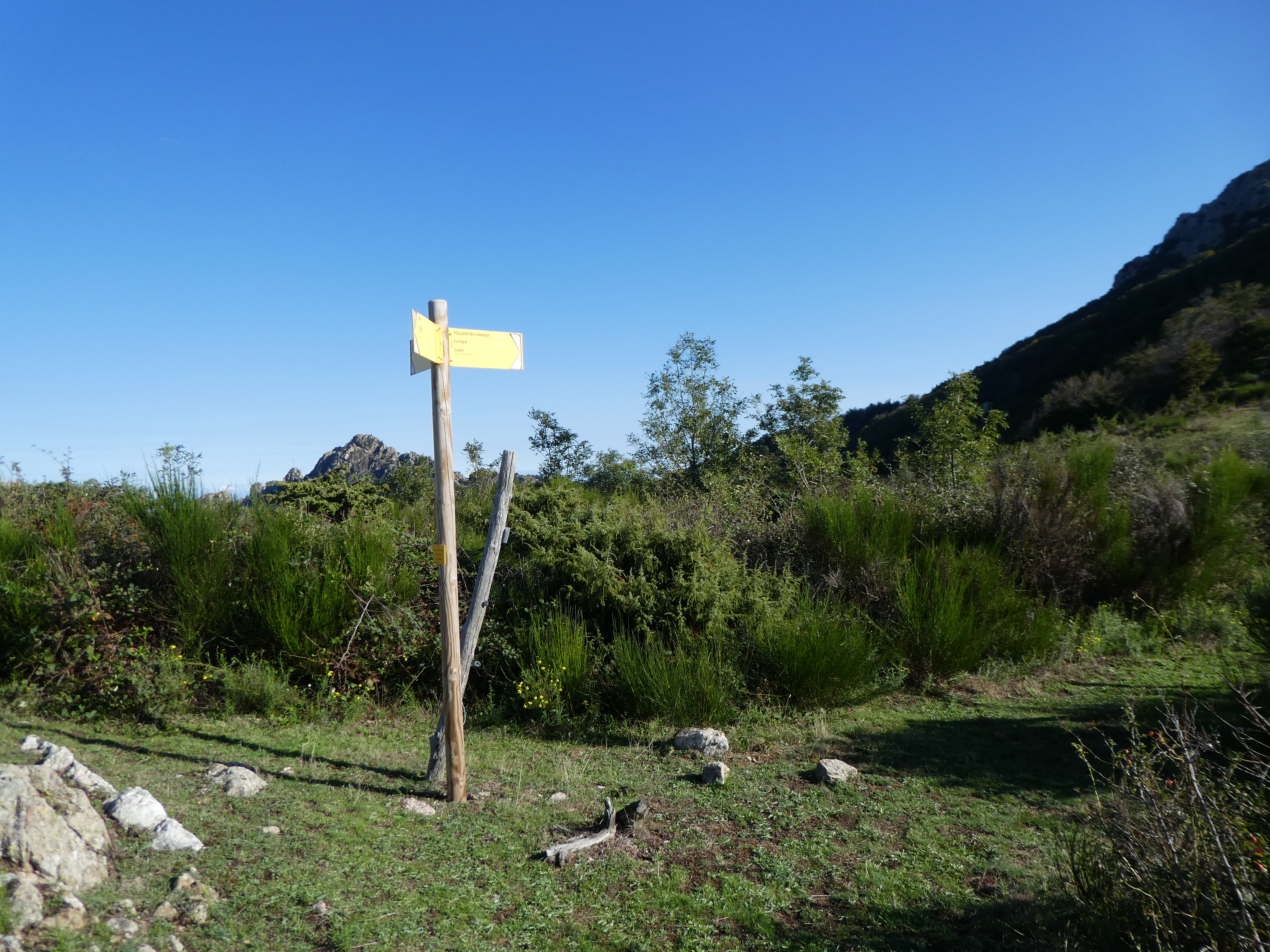 A ce croisement avec l'itinéraire de montée vers le Roc de la Campana situé à la sortie d'un petit sous-bois (600 mètres après le précédent), quitter le sentier frontalier du massif du Roc de Frausa partant tout droit pour monter à vue sur la droite direction Roc de la Campana