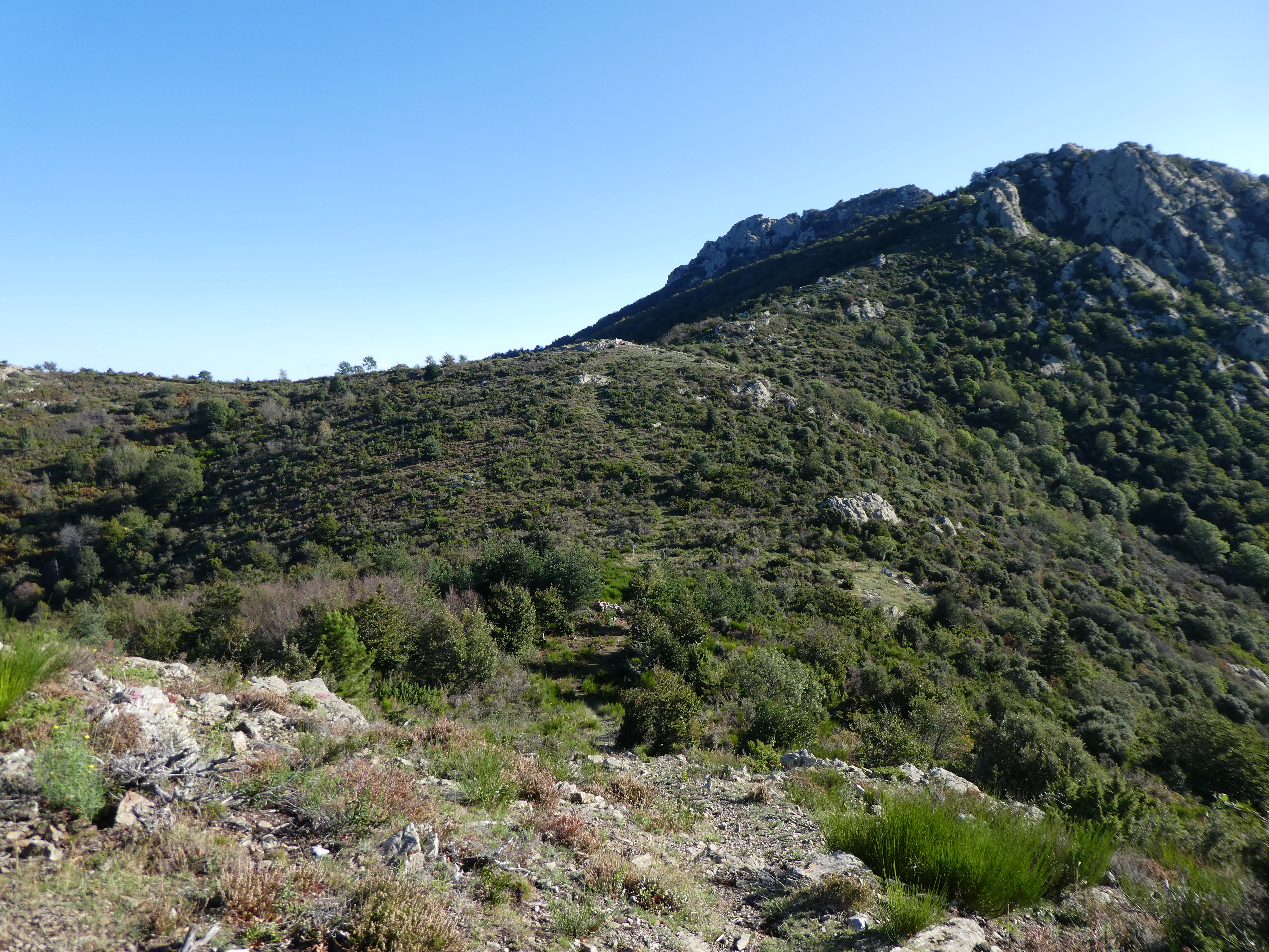 Monter à vue vers le sommet de la crête direction Roc de la Campana
