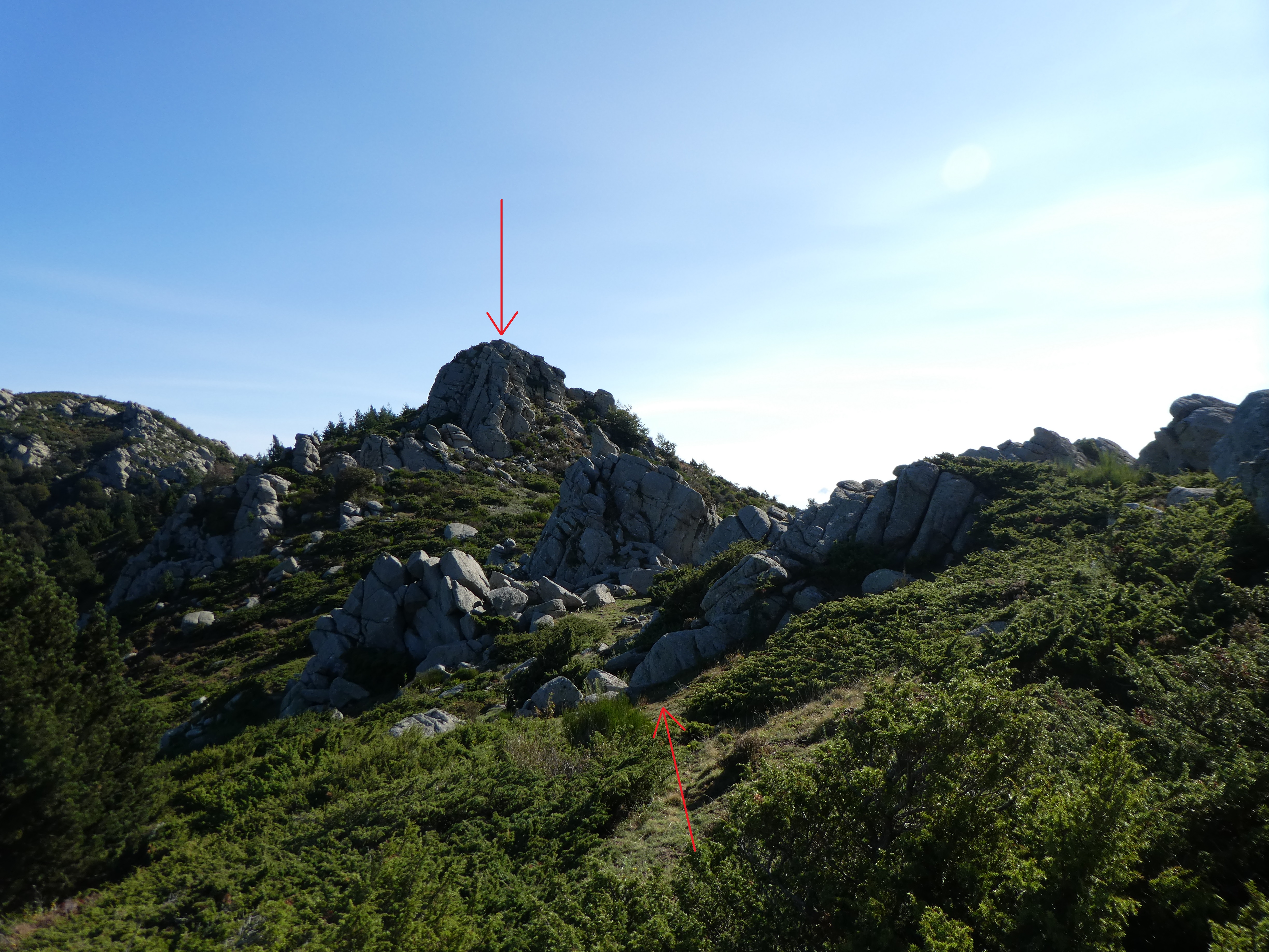 Le sentier mal tracé menant au Roc de la Sentinella qu'il faudra contourner par la gauche