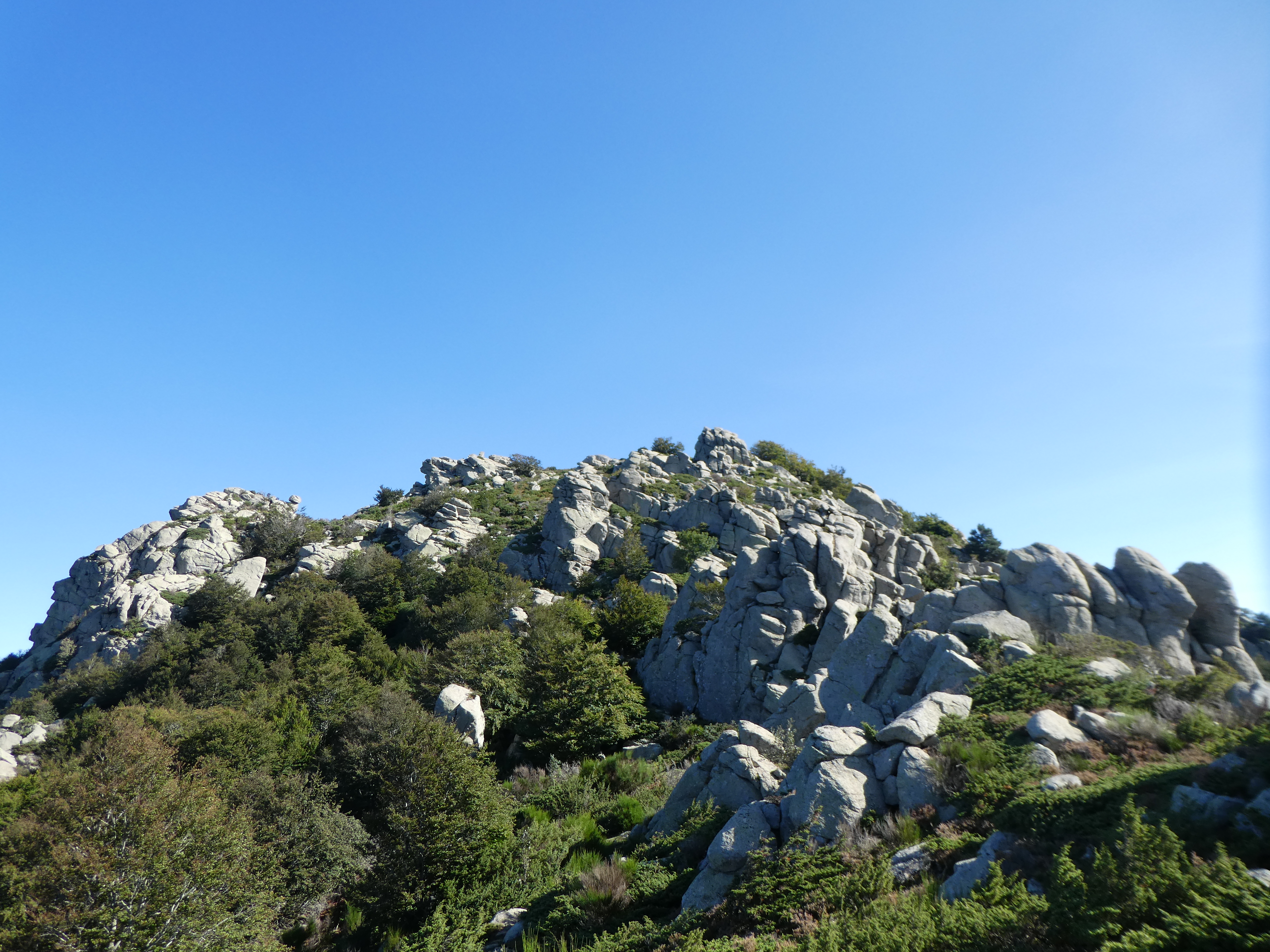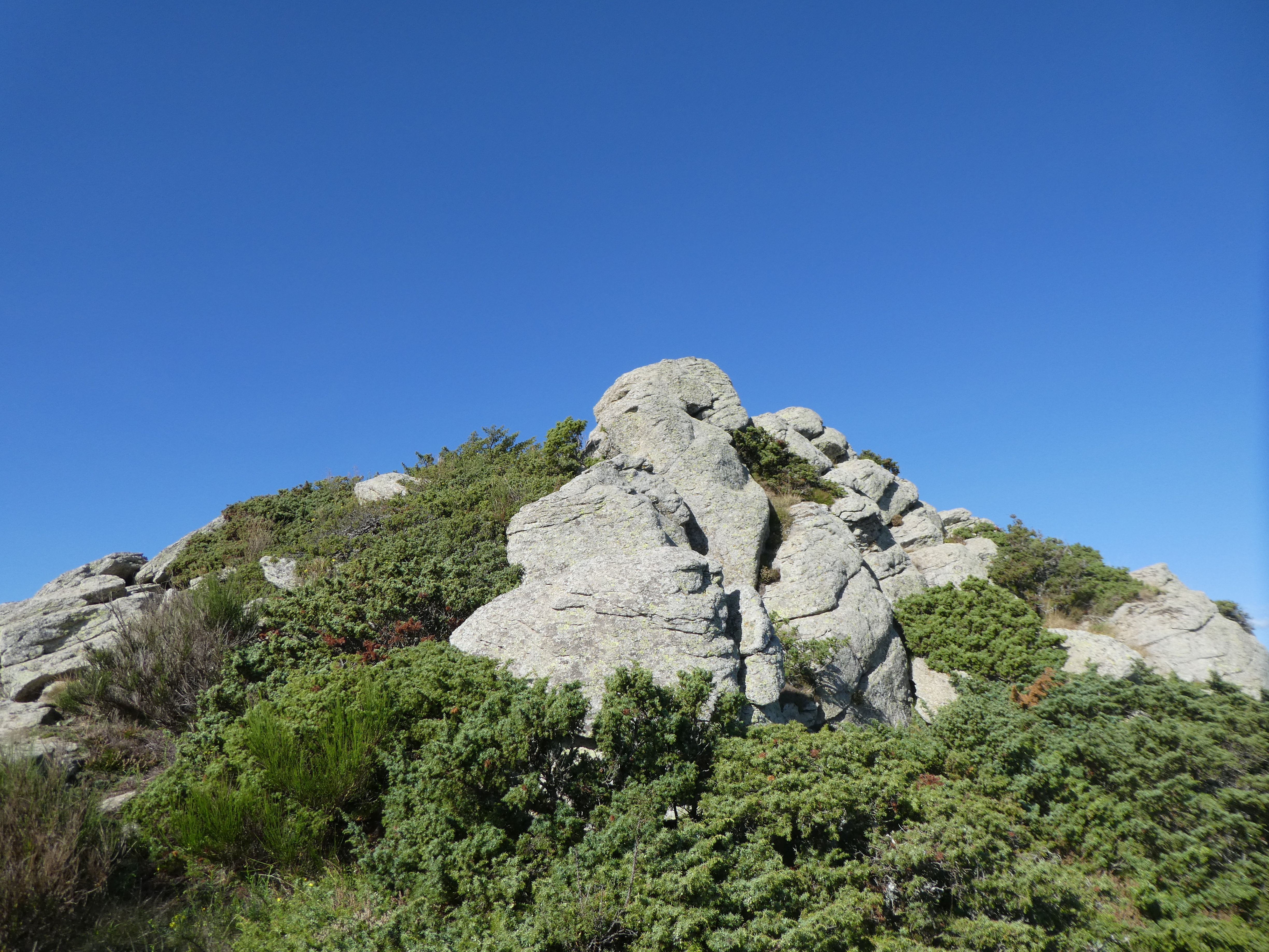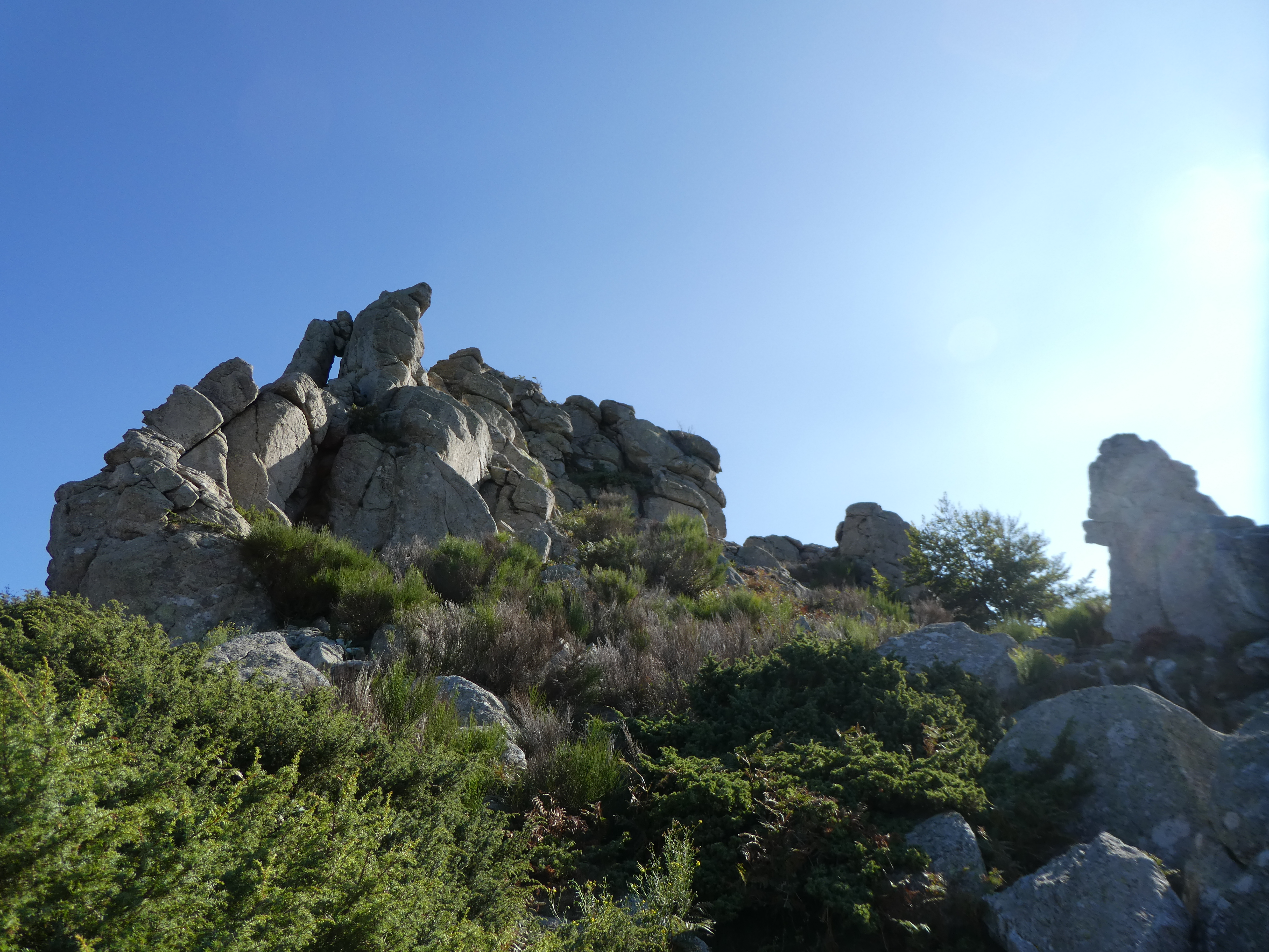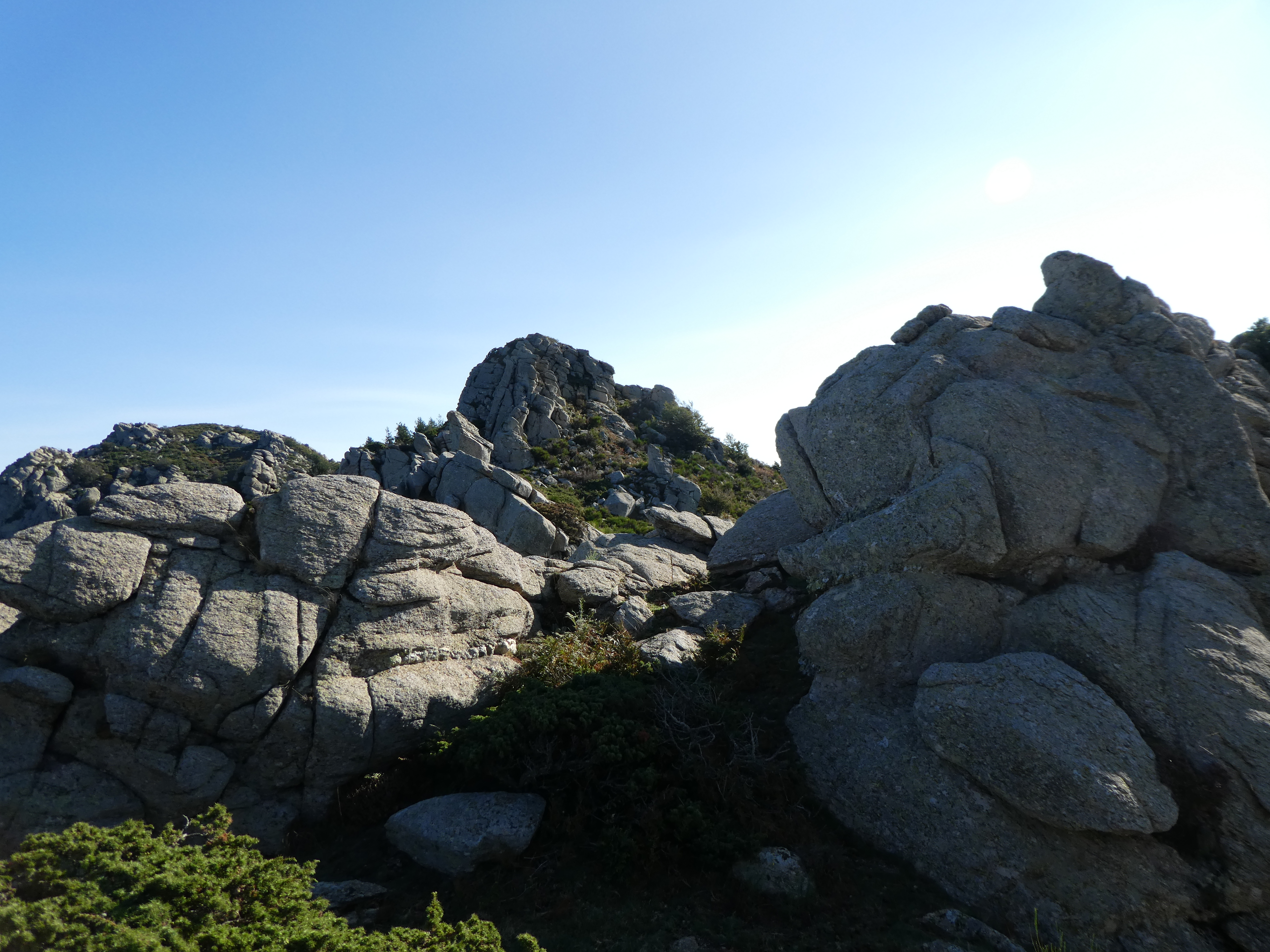 Dès que la face Nord-Est du Roc de la Sentinella est atteinte (25 mètres après avoir atteint la base du sommet), monter au point culminant du piton rocheux par les gros blocs rocheux direction Roc de la Sentinella