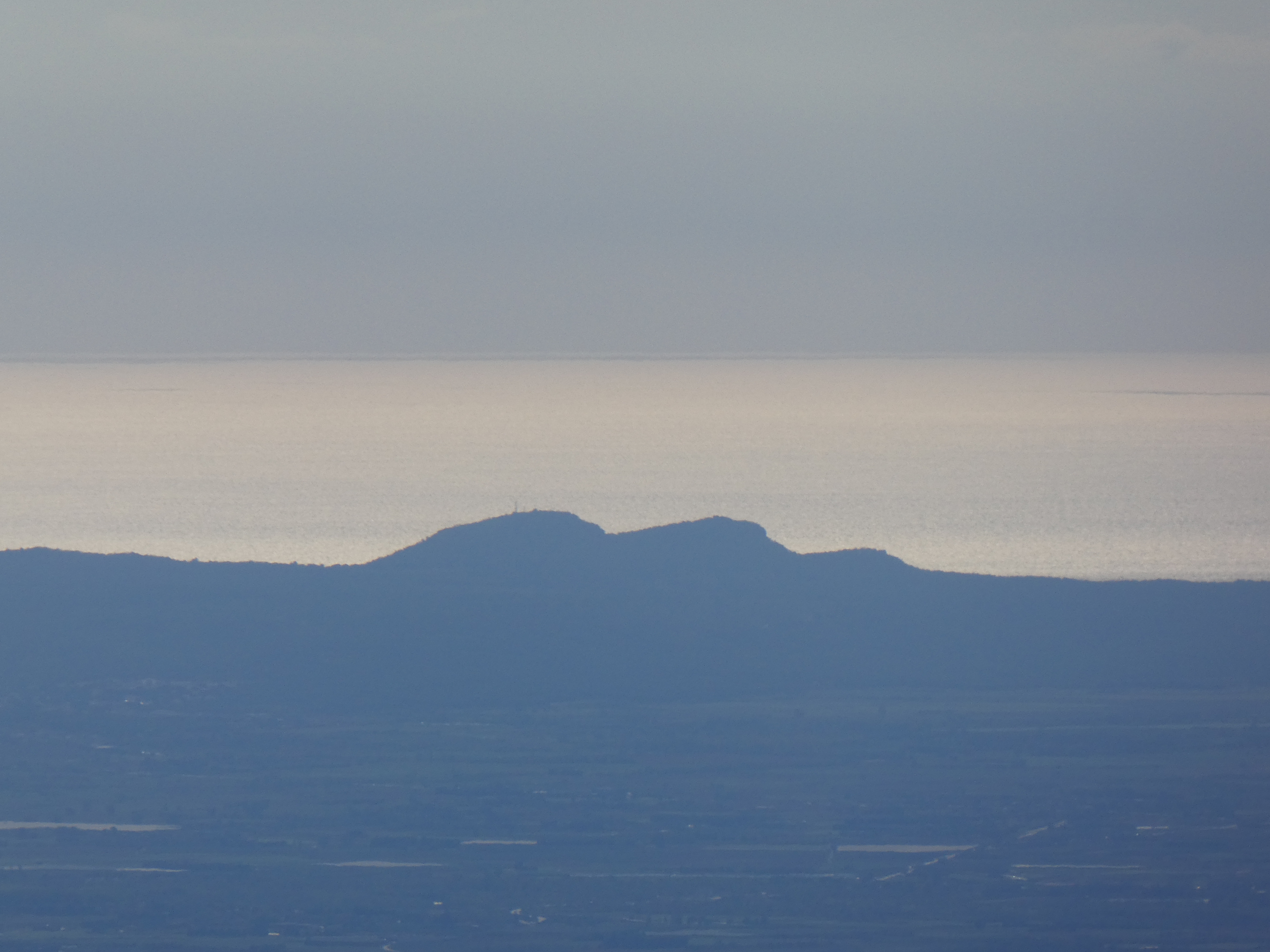 Zoom sur la Mare de Déu del Mont (1124 m) à gauche et la Rocacorba (893 m) à droite