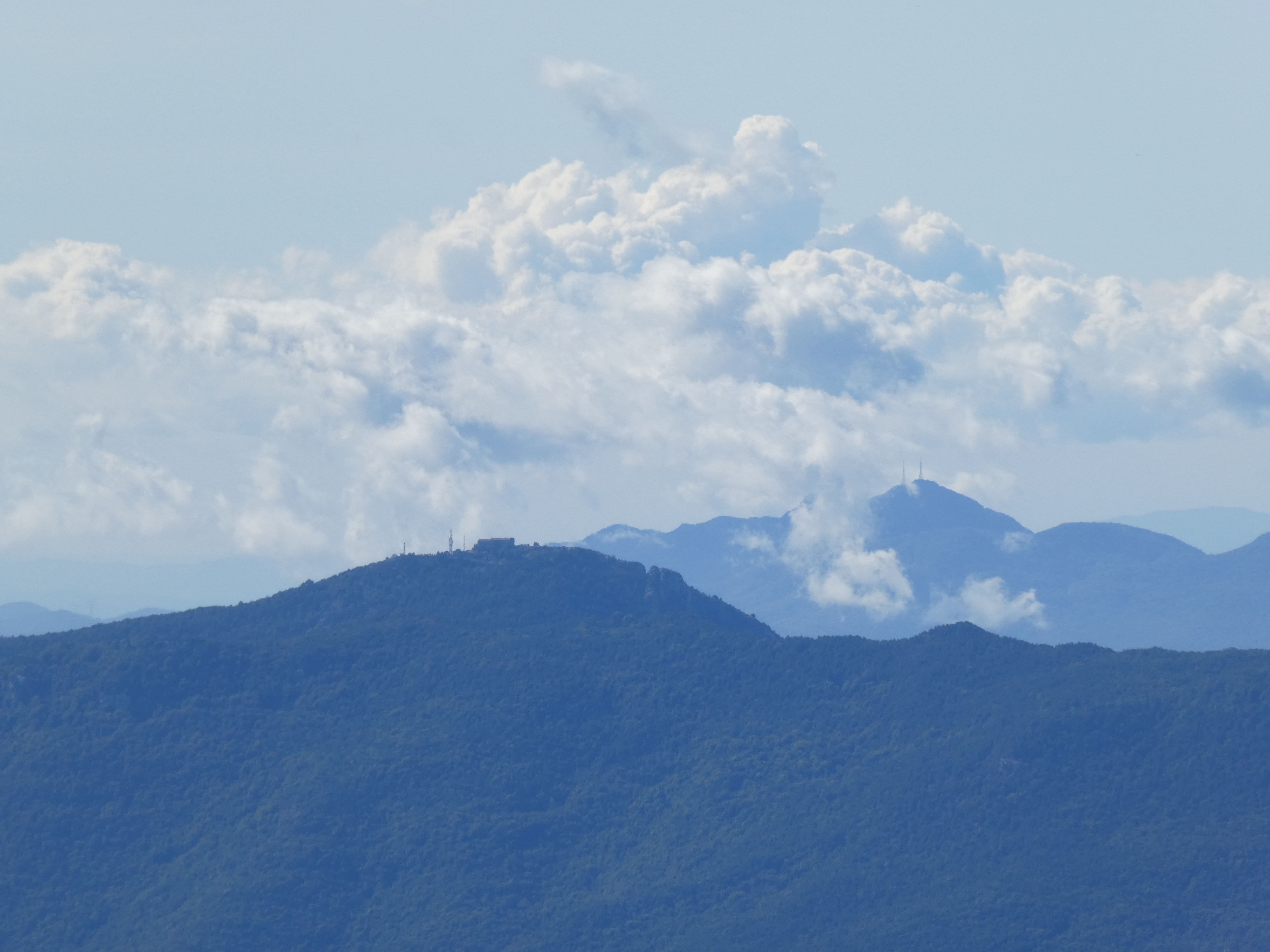 Zoom sur Sant Gregori (1091 m) partiellement dans les nuages