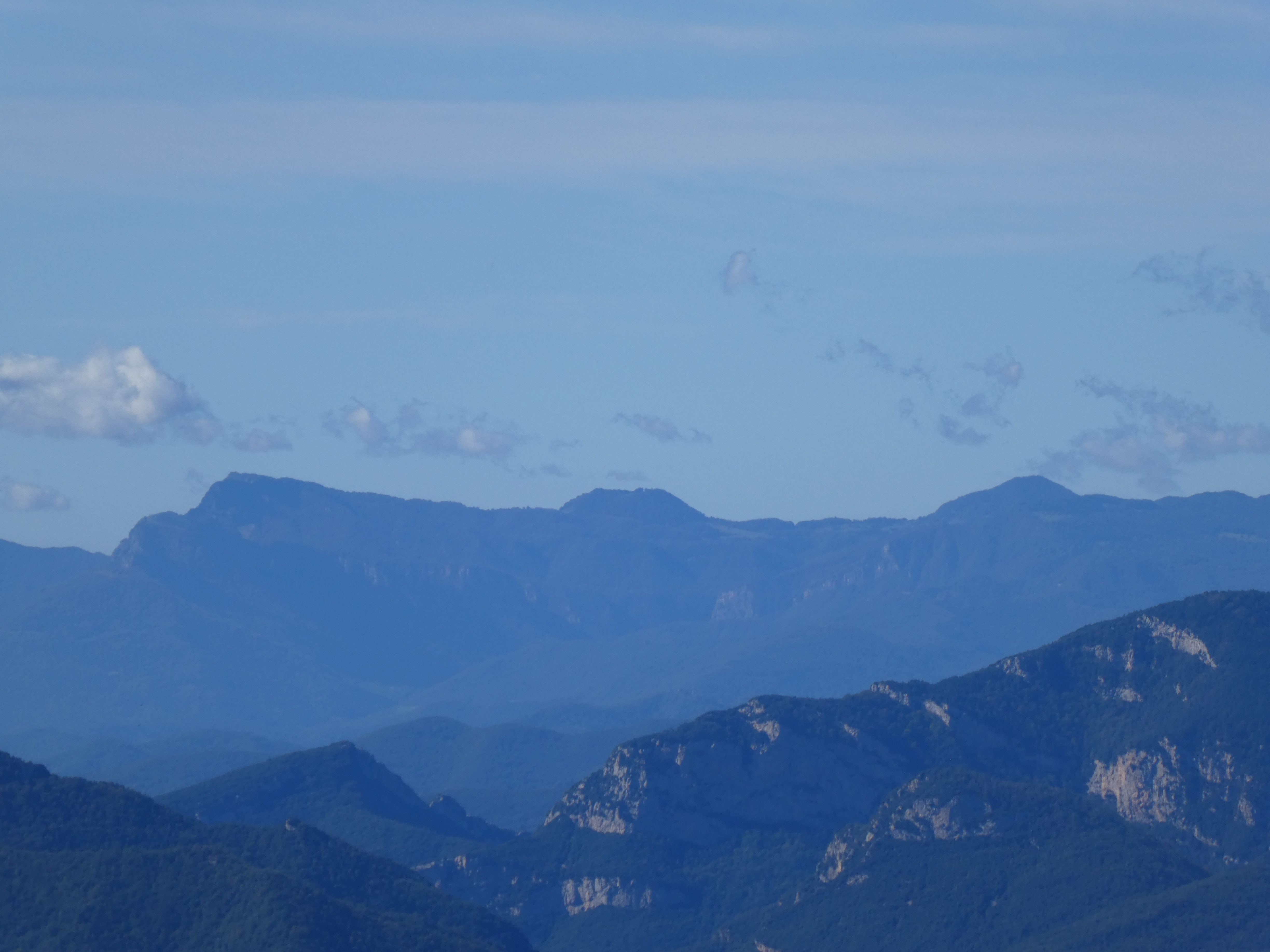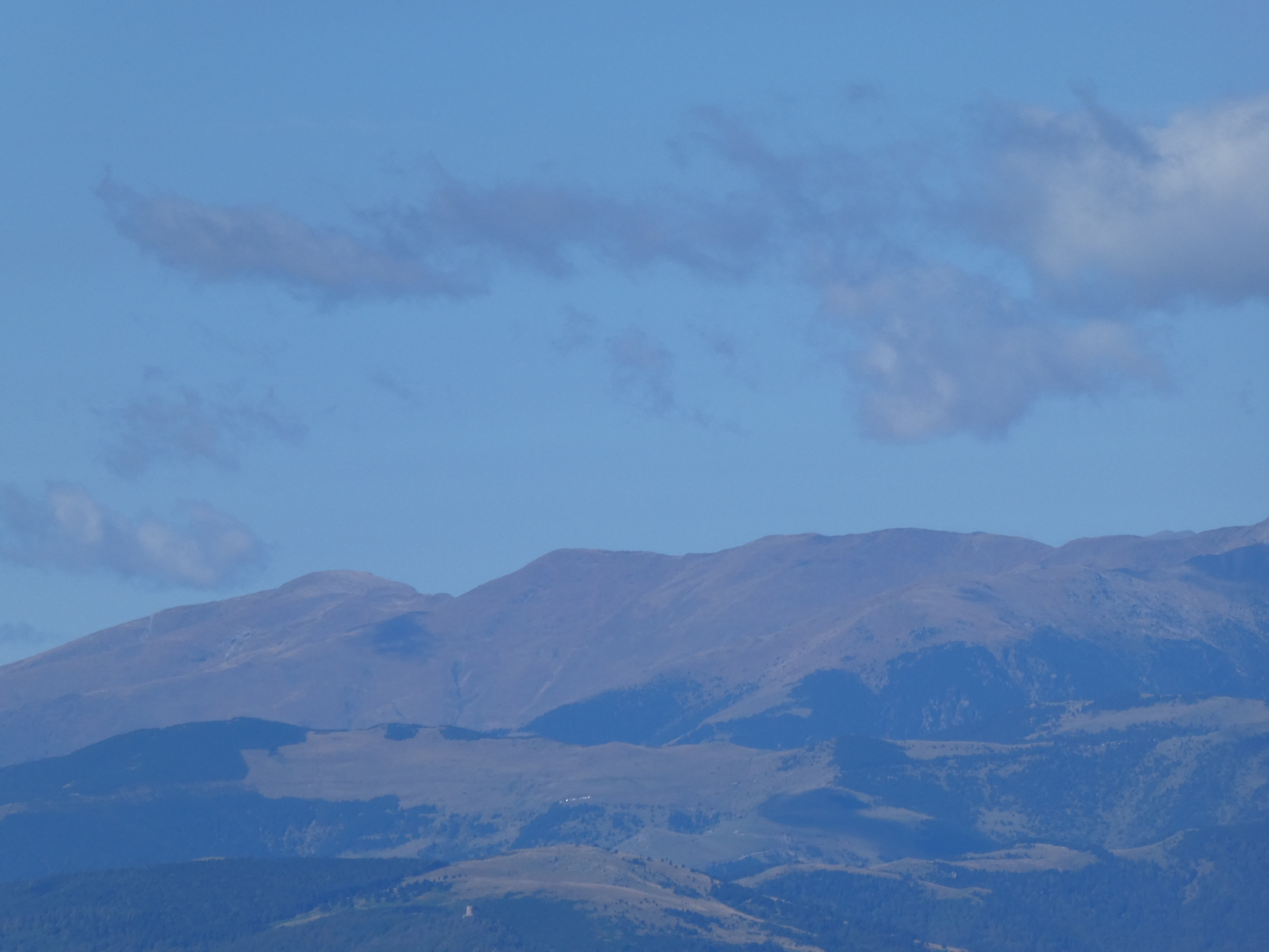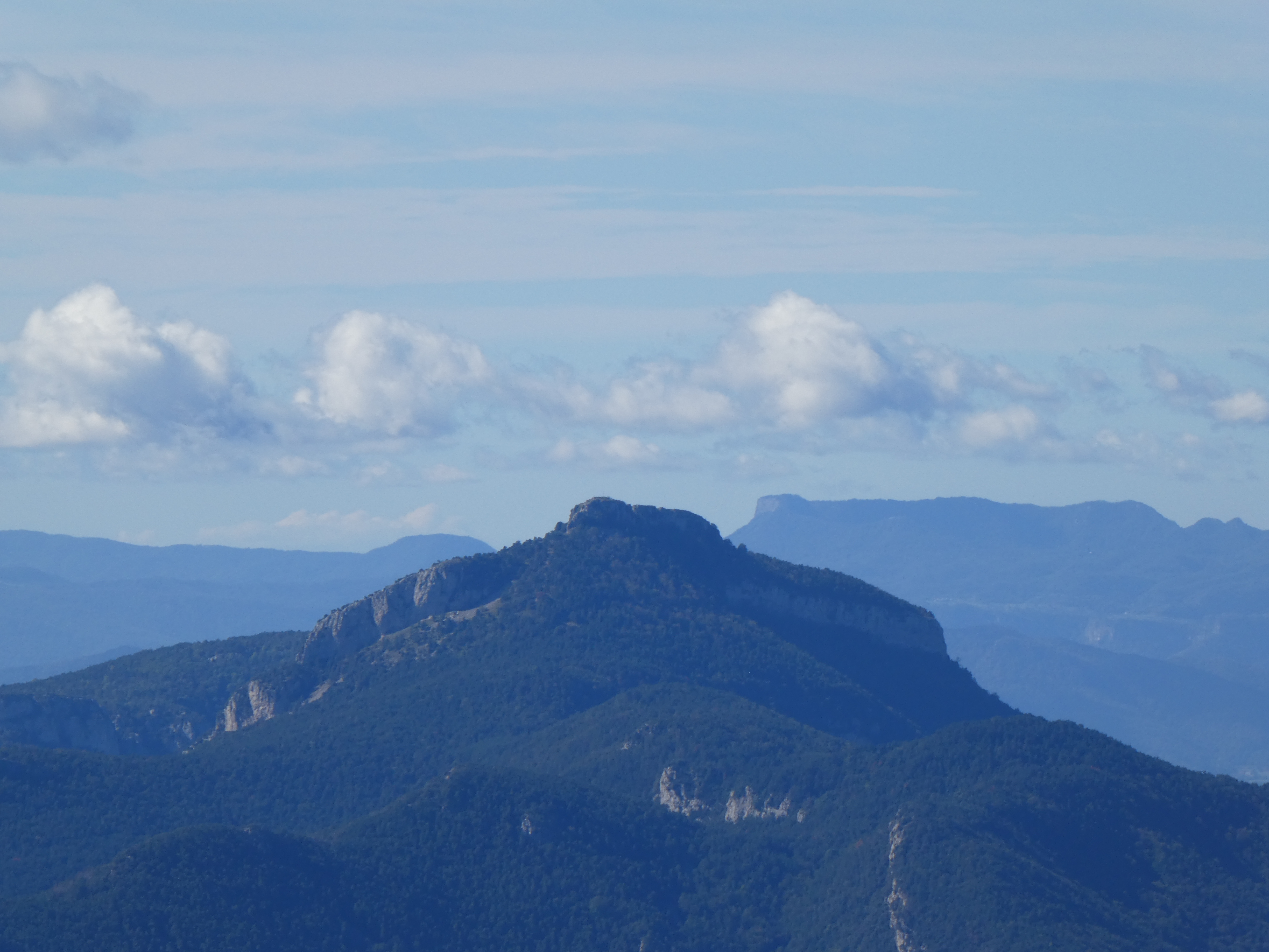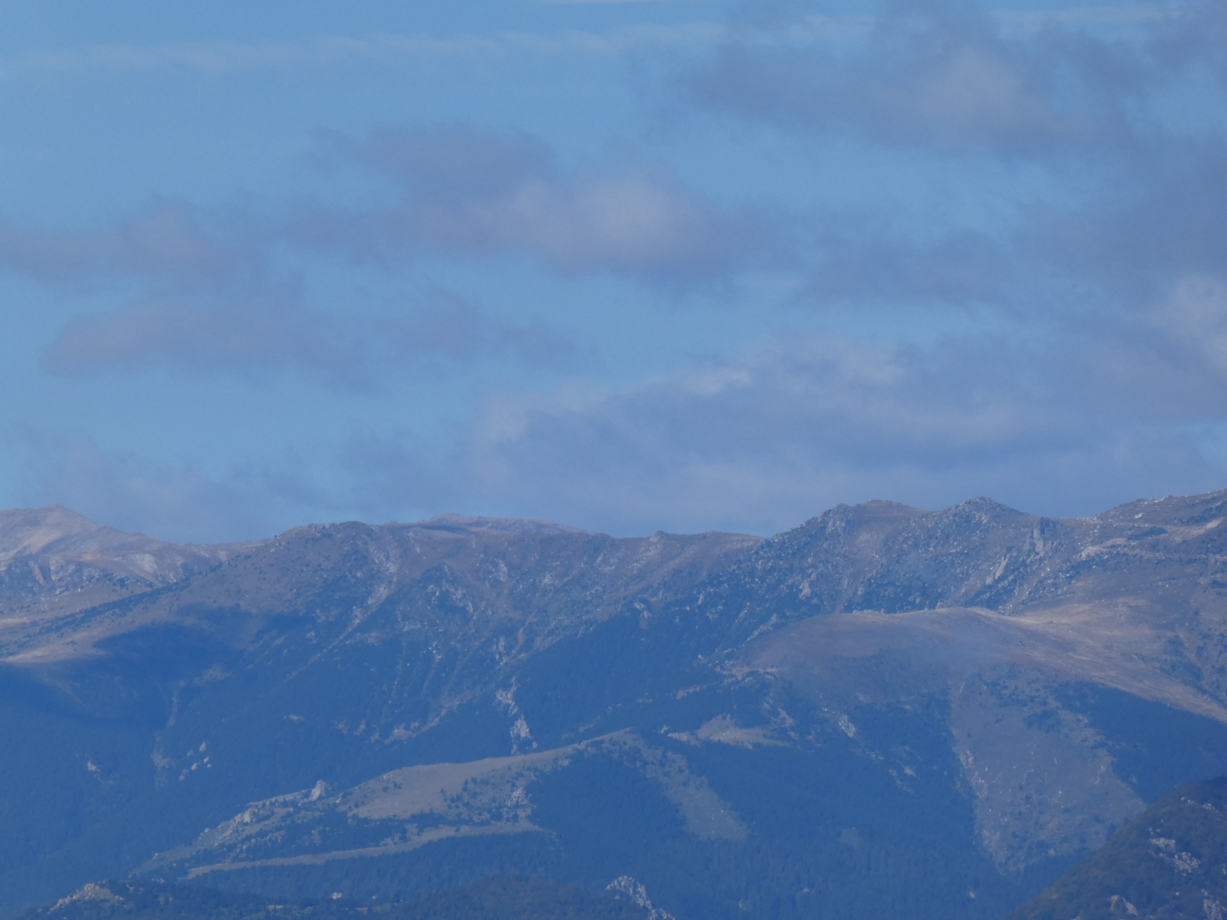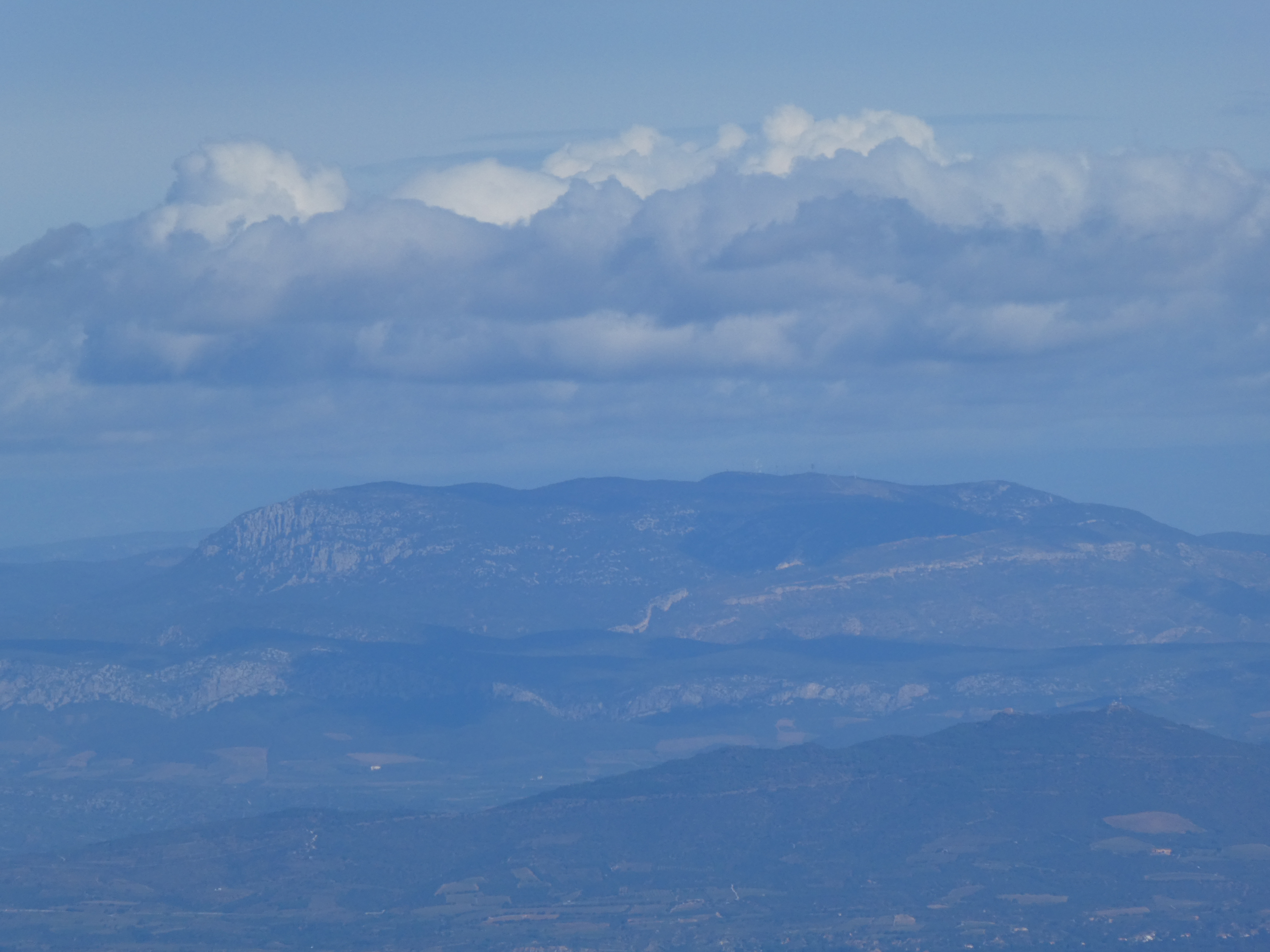 Zoom sur Santa Magdalena de Cambrils (1547 m) à gauche, le Puig de l'Obiol (1544 m) au centre-gauche et Milany (1529 m) à droite