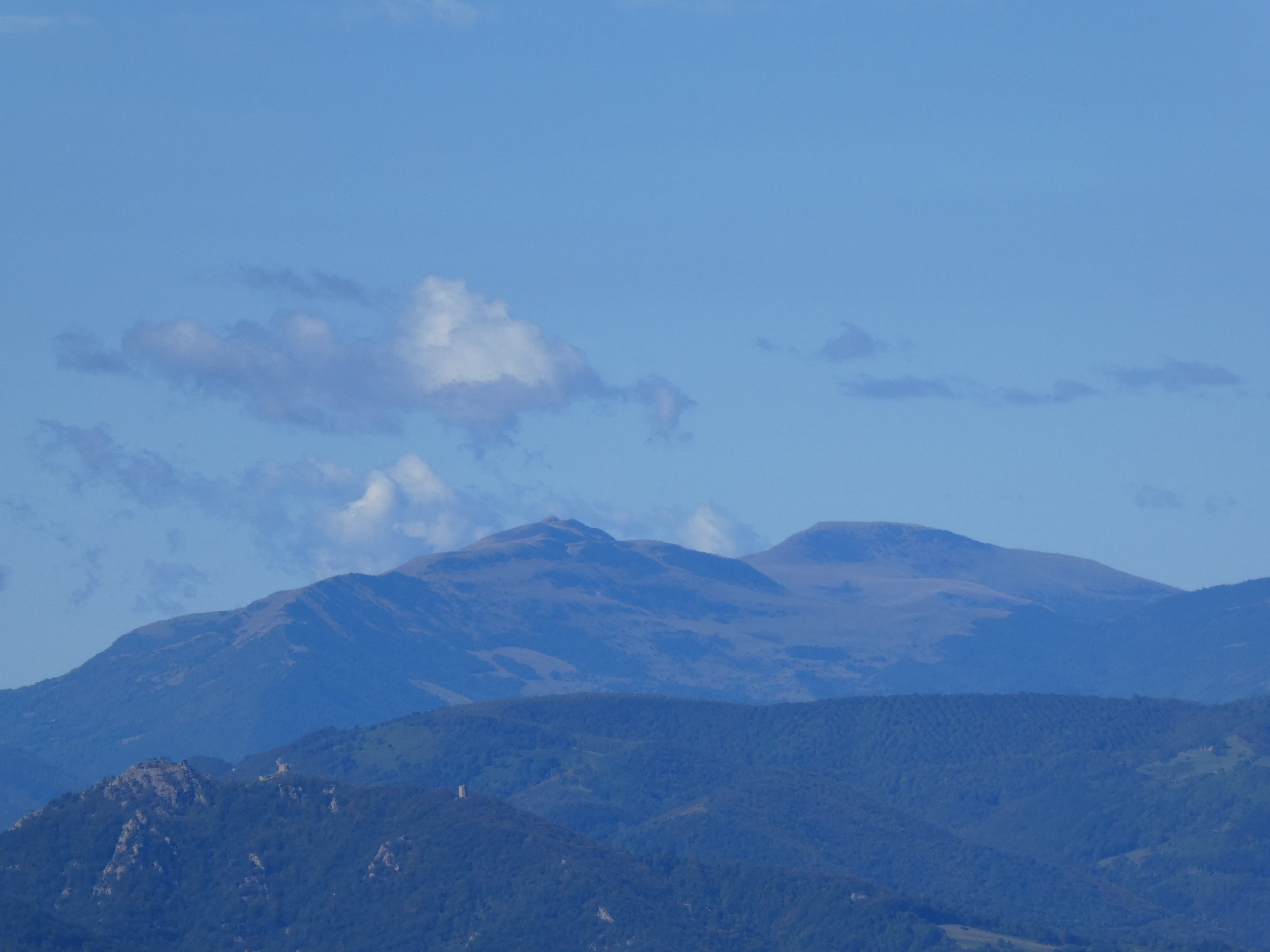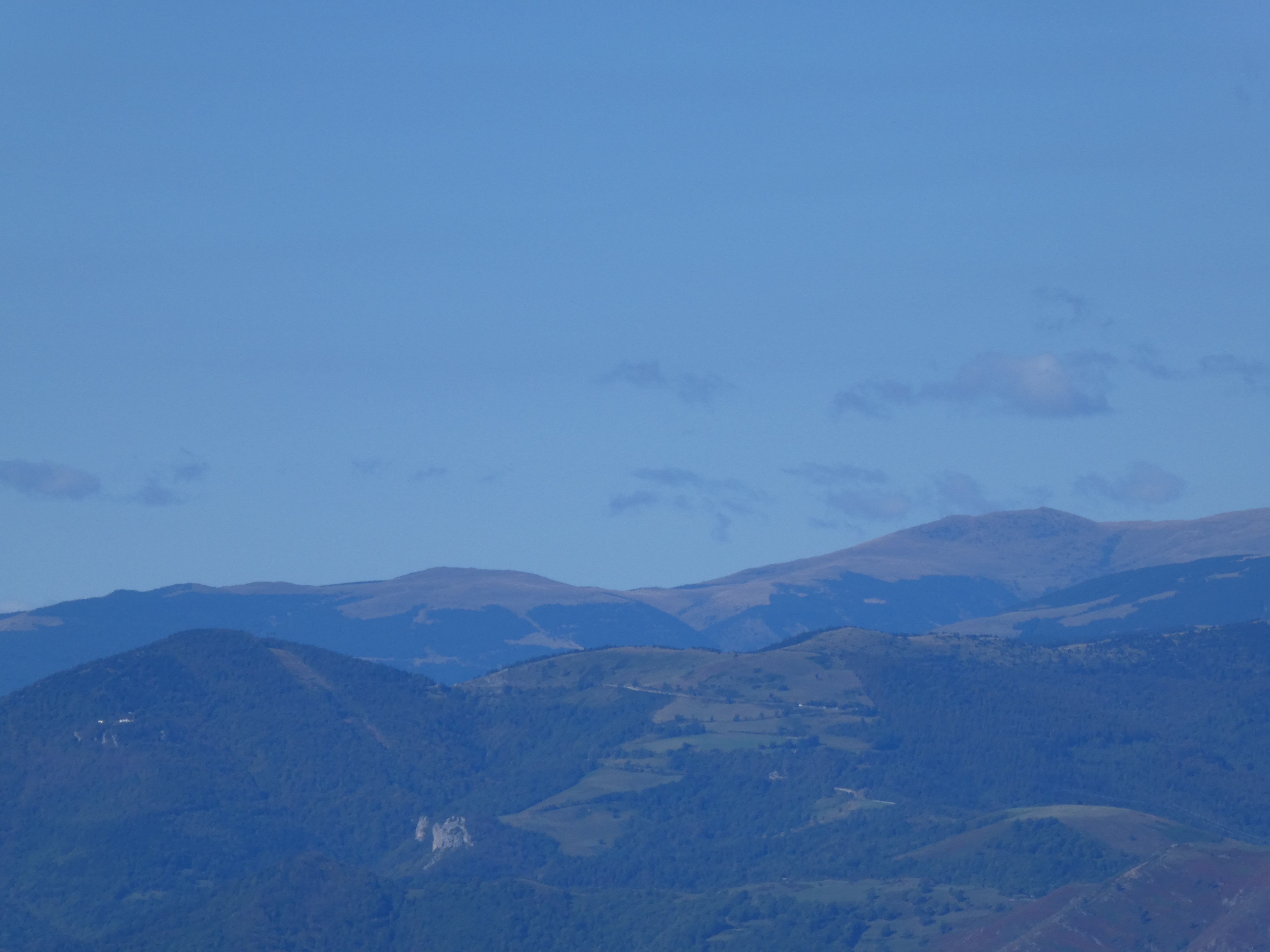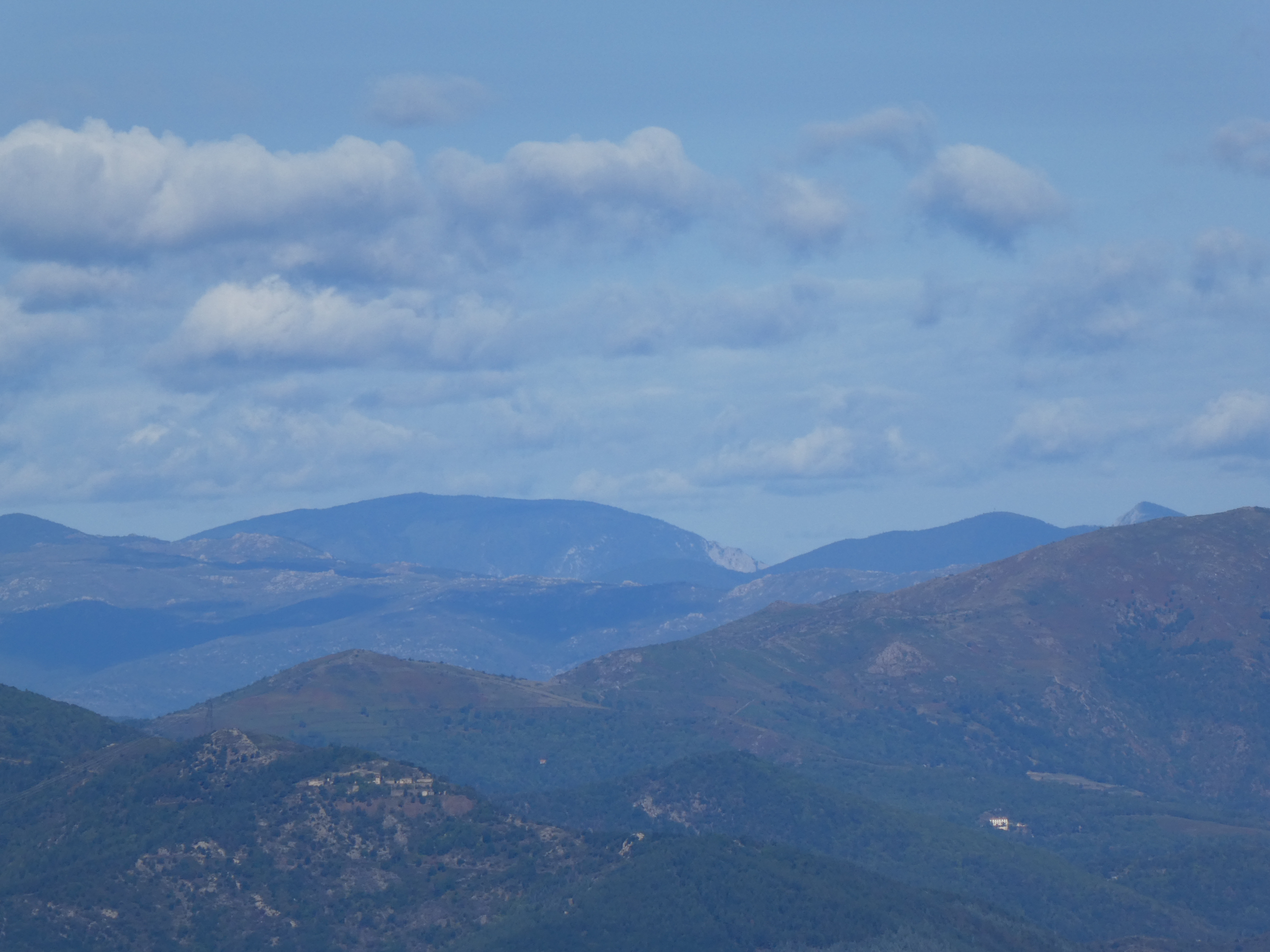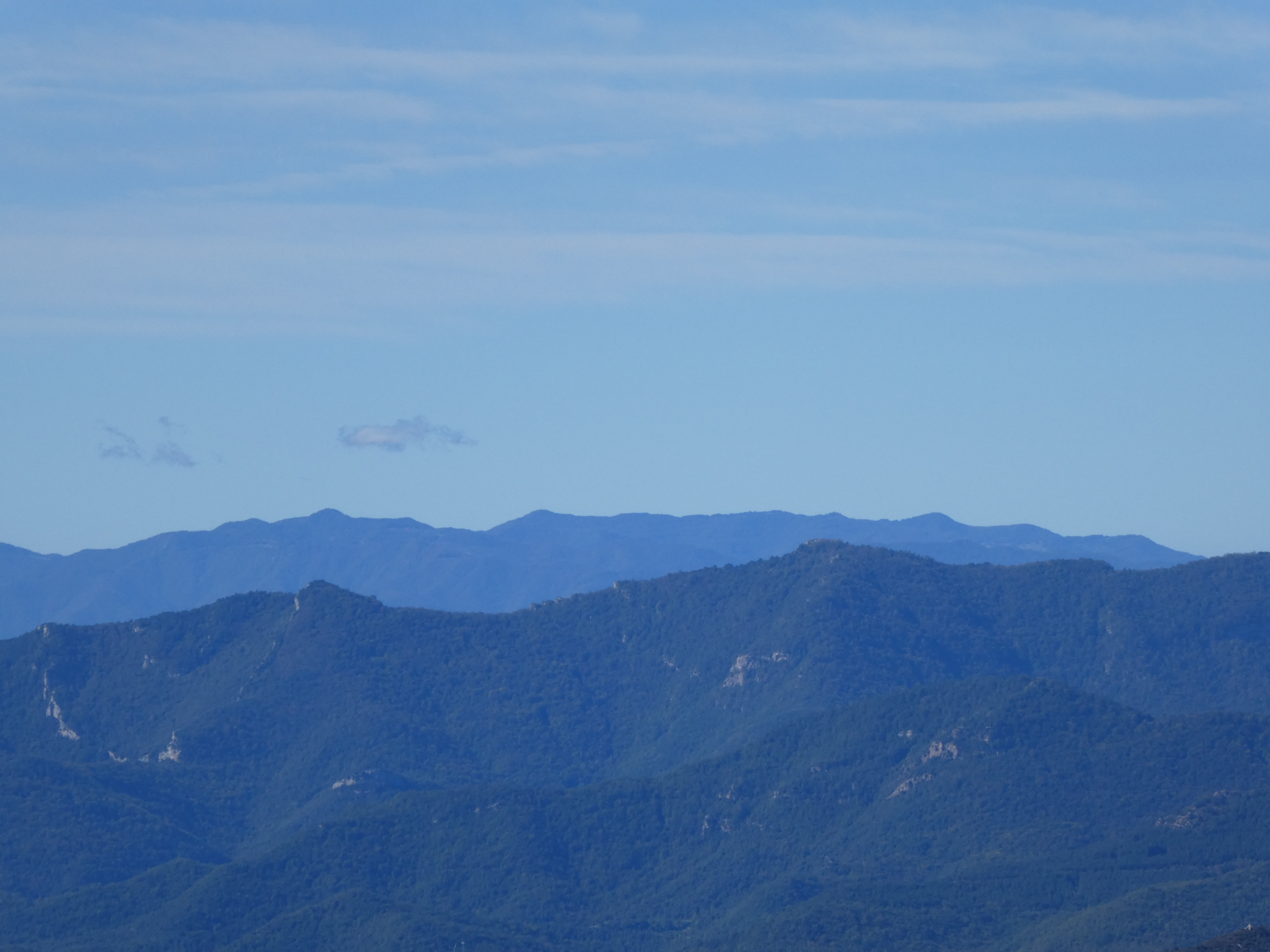 Zoom sur Santa Magdalena de Cambrils (1547 m) à gauche, le Puig de l'Obiol (1544 m) au centre-gauche et Milany (1529 m) à droite