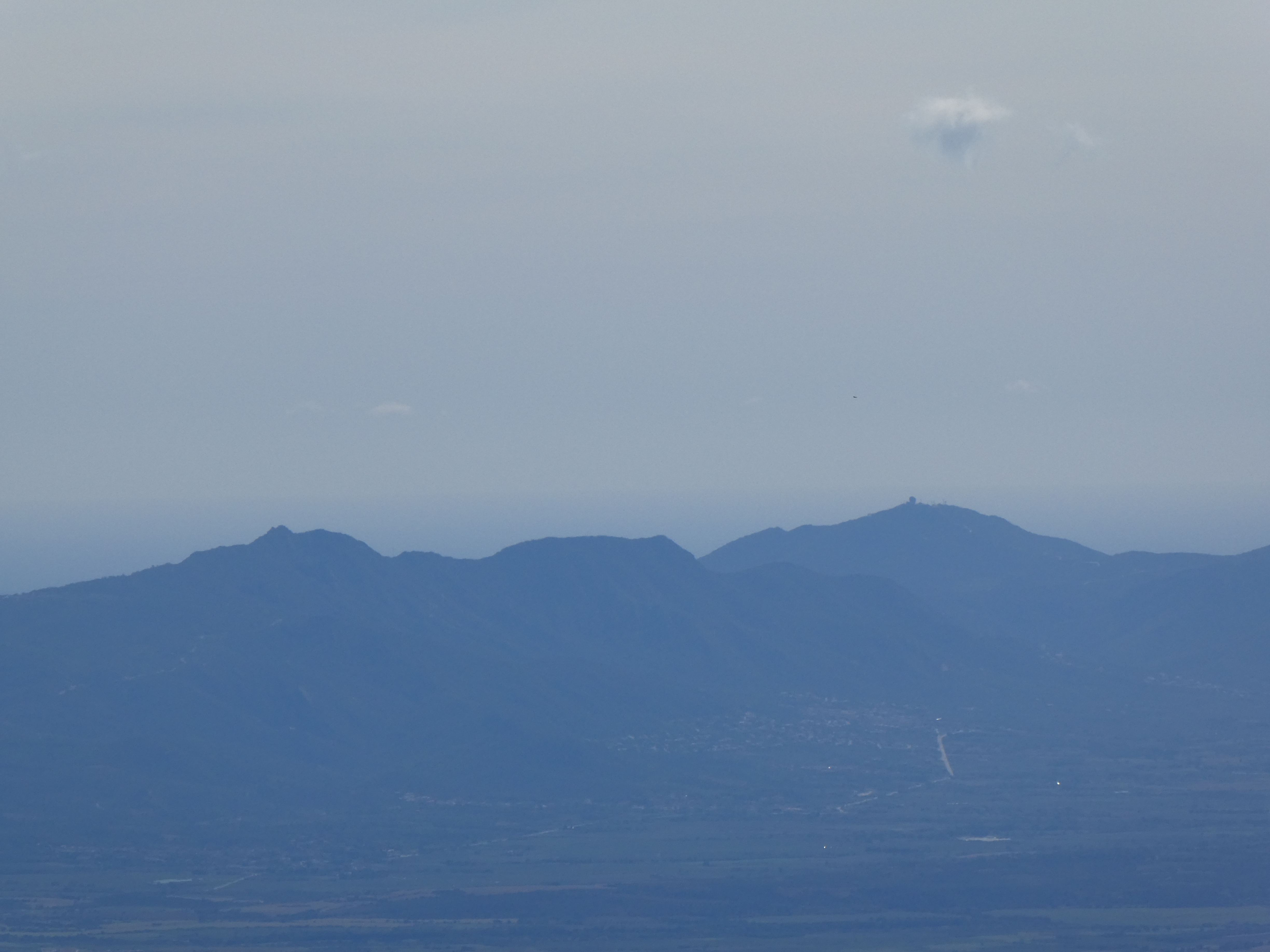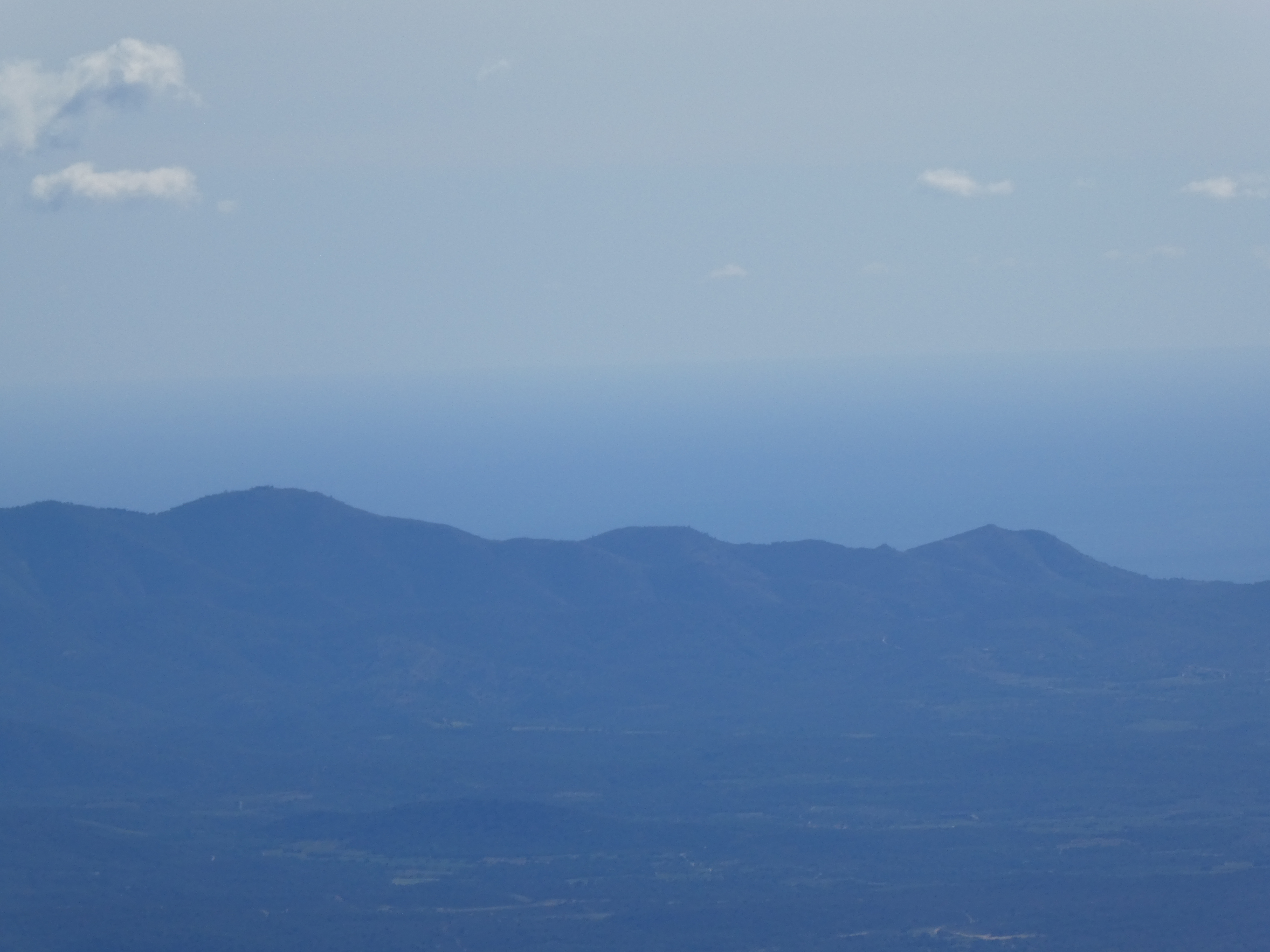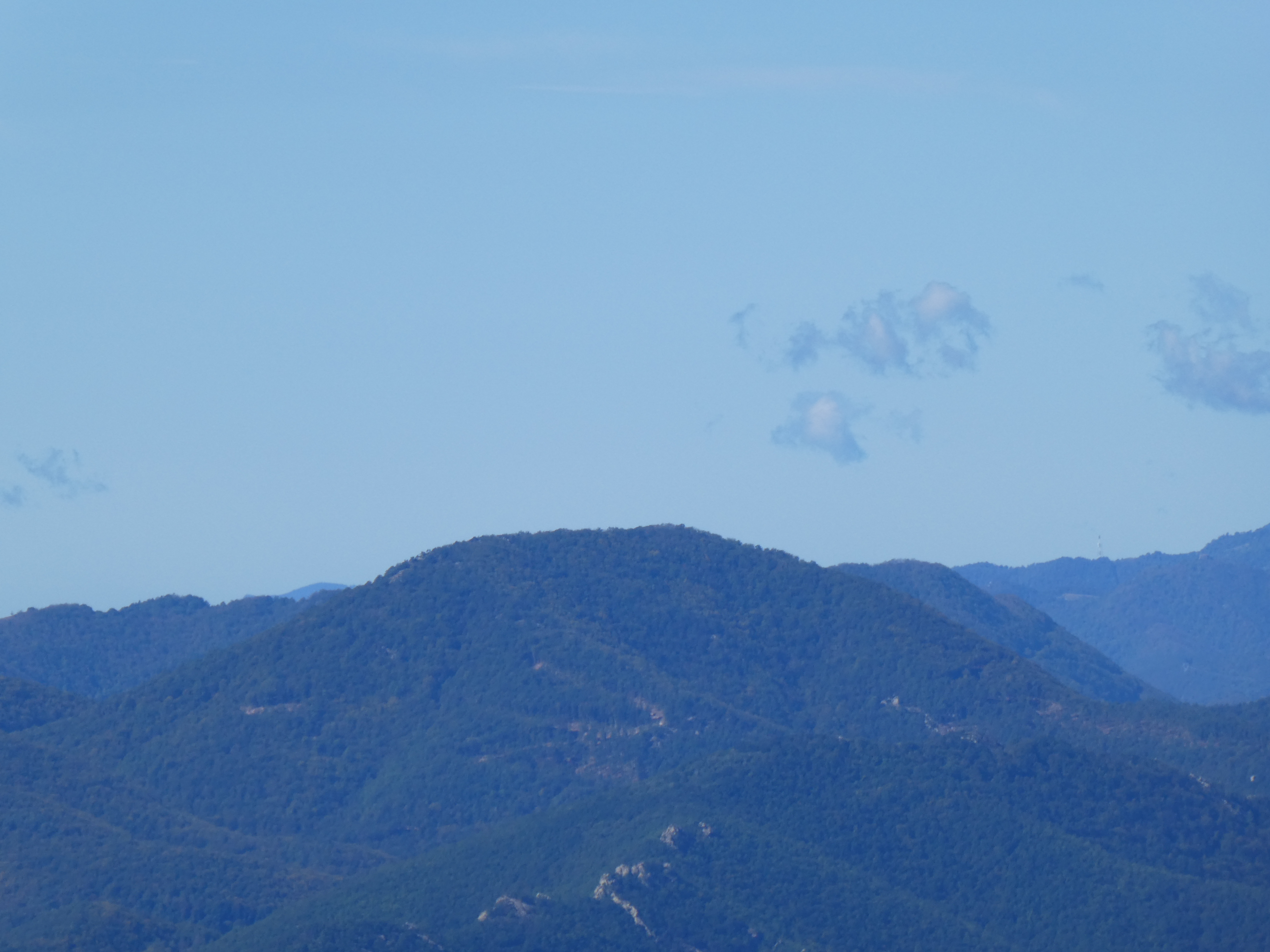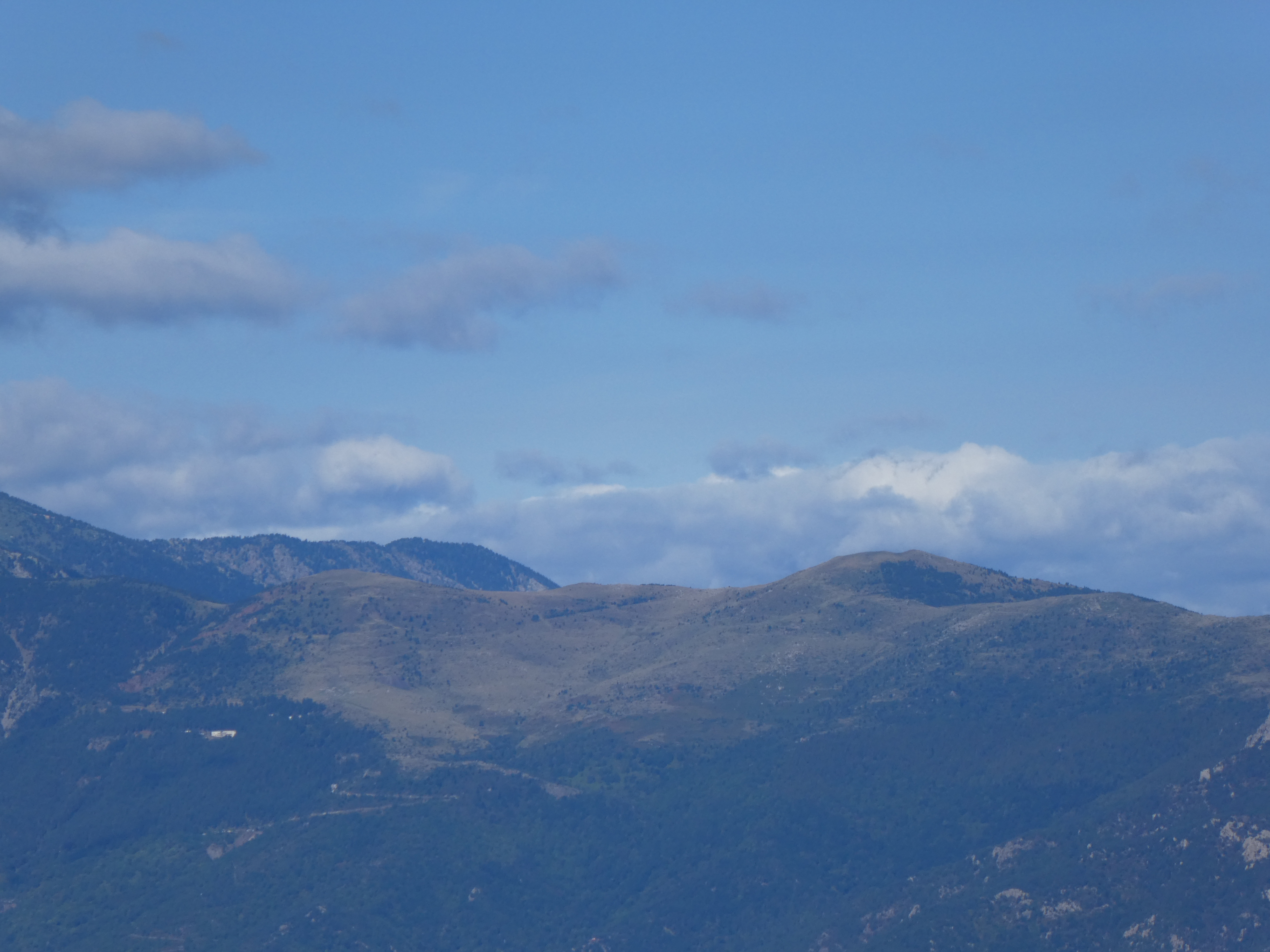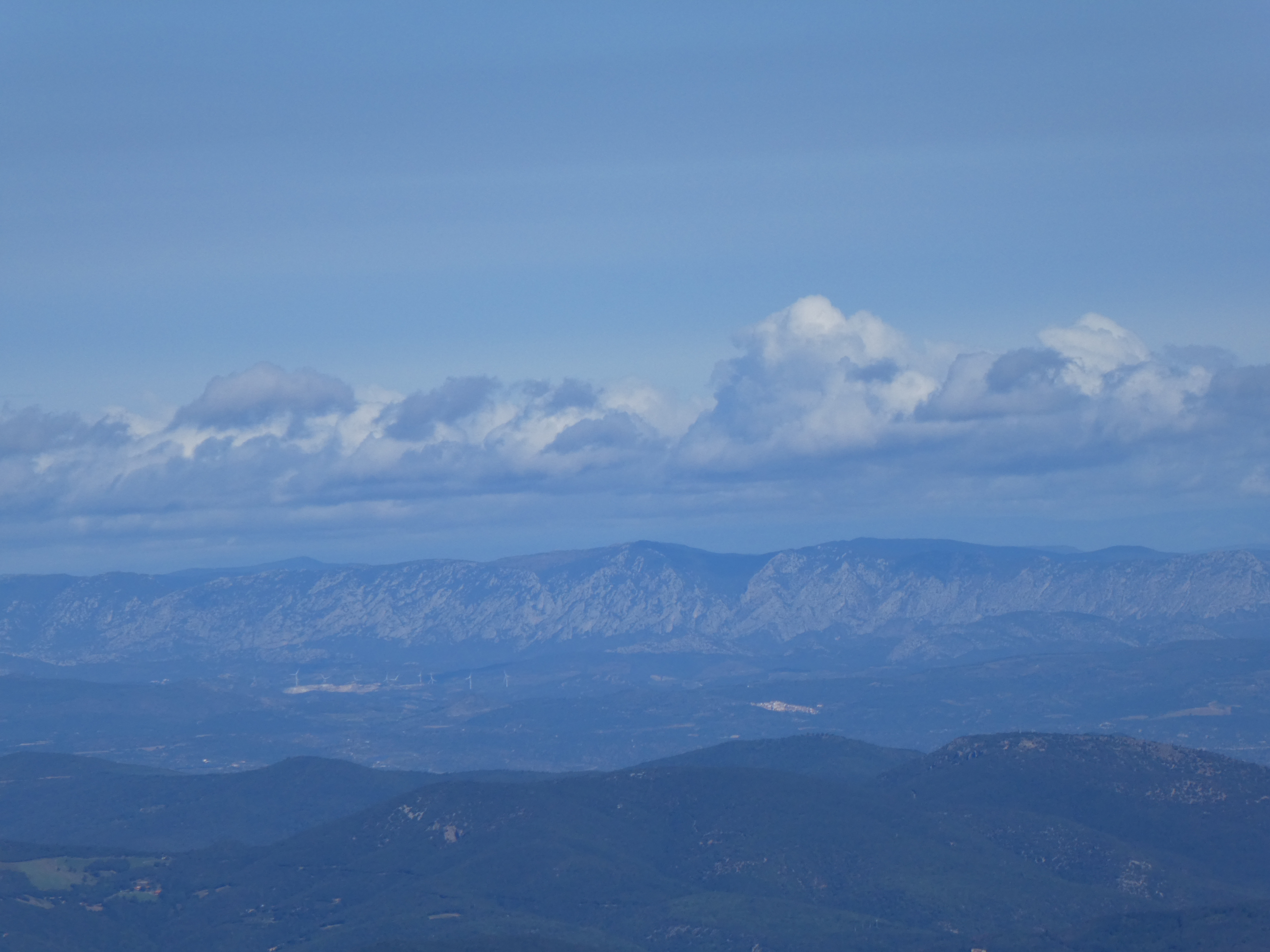 Zoom sur Santa Magdalena de Cambrils (1547 m) à gauche, le Puig de l'Obiol (1544 m) au centre-gauche et Milany (1529 m) à droite