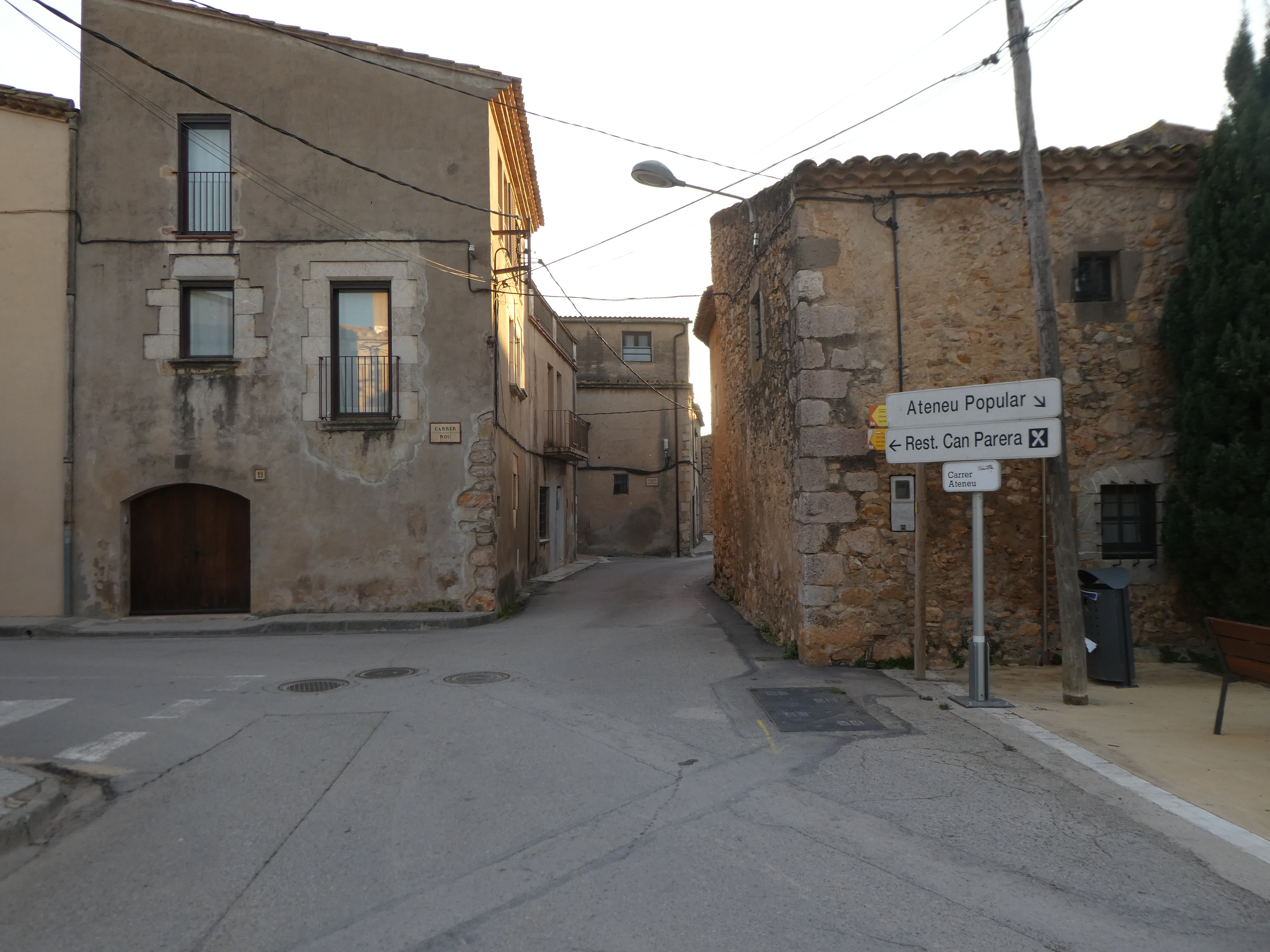 Départ Viladamat - Ajuntament (7 m) : suivre la rue partant tout droit direction l'Escala, balisé sporadiquement en jaune