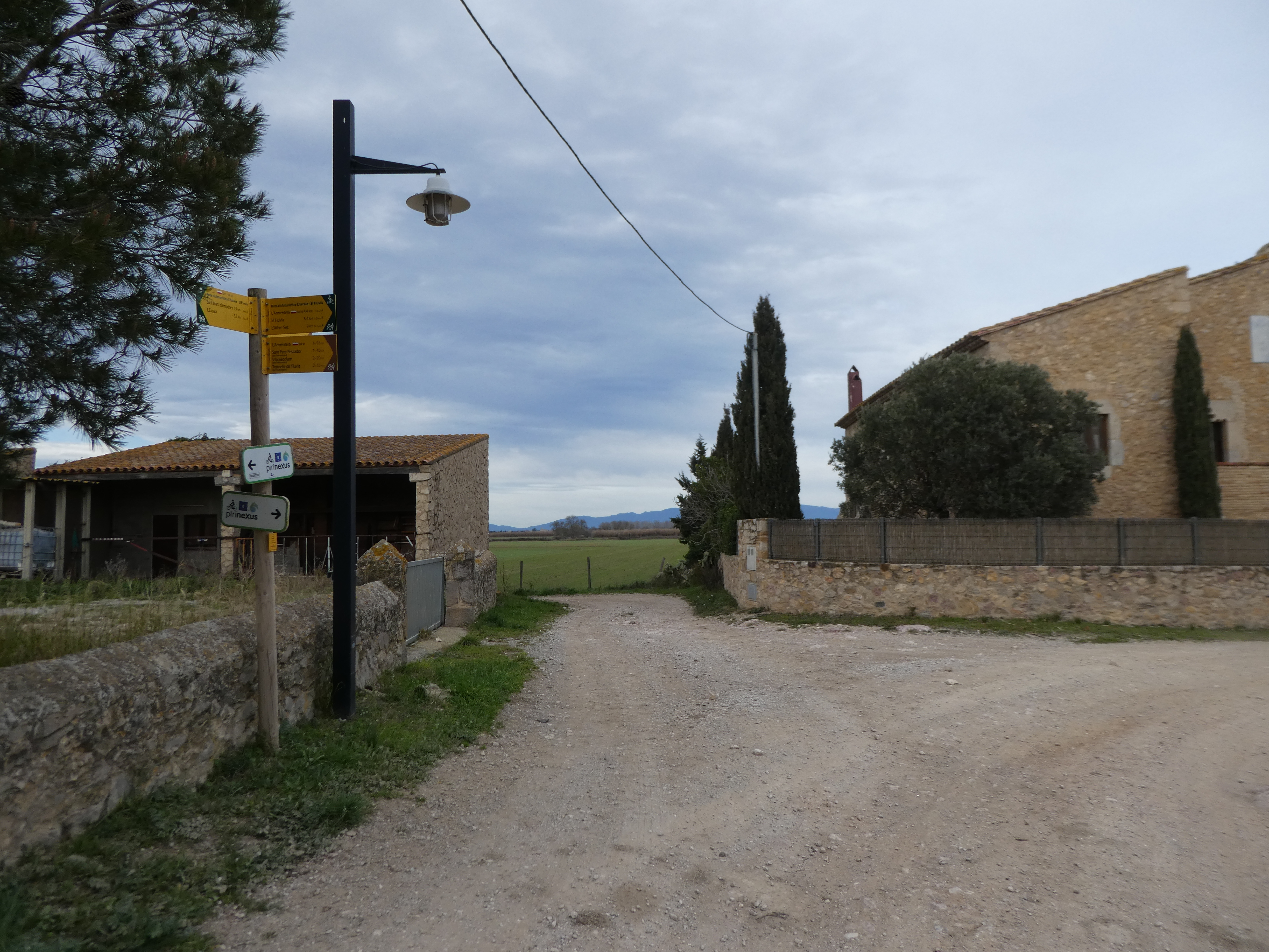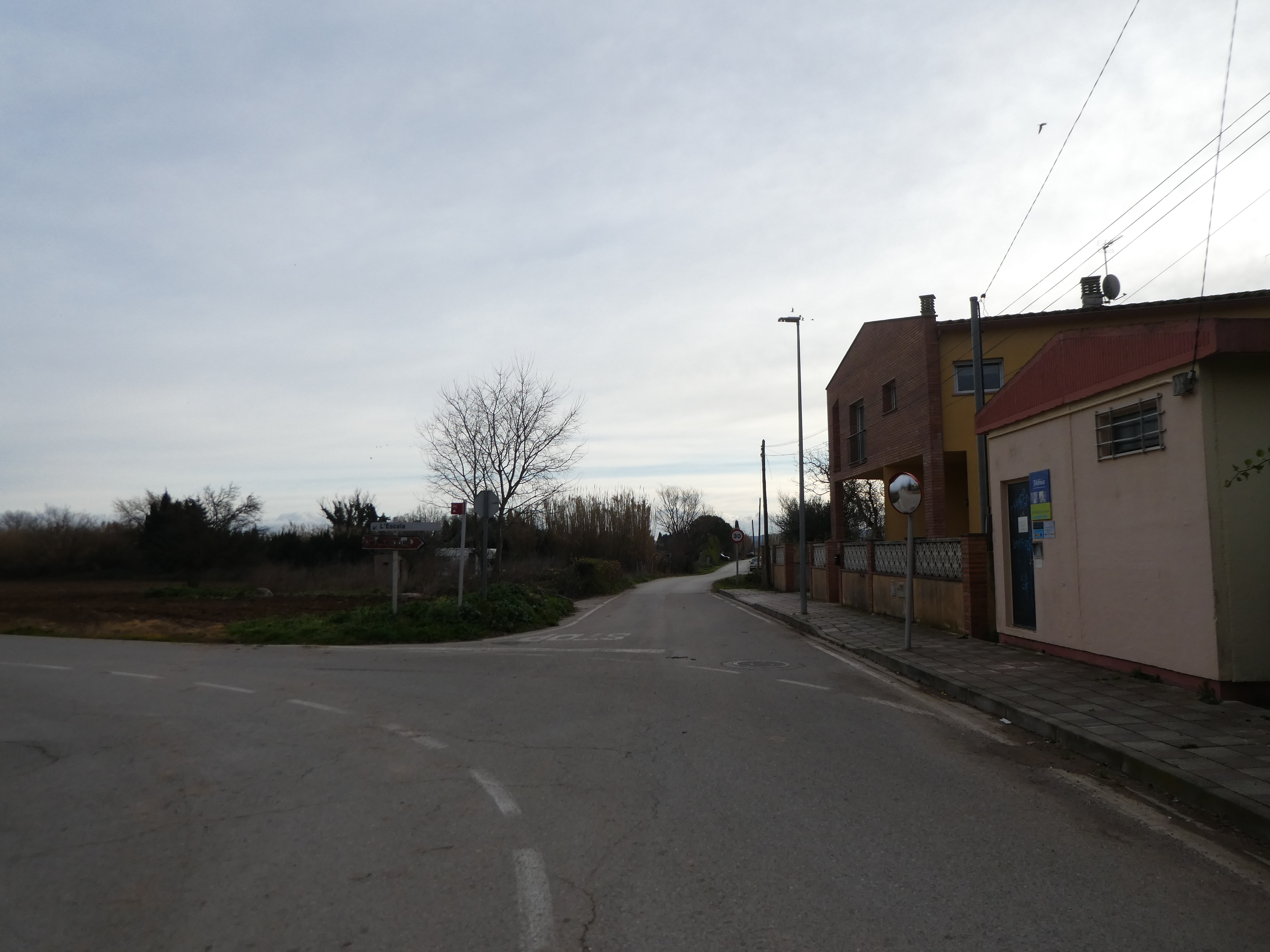 A cette intersection (100 mètres après la précédente), suivre la route partant tout droit direction l'Escala, aucun balisage dorénavant