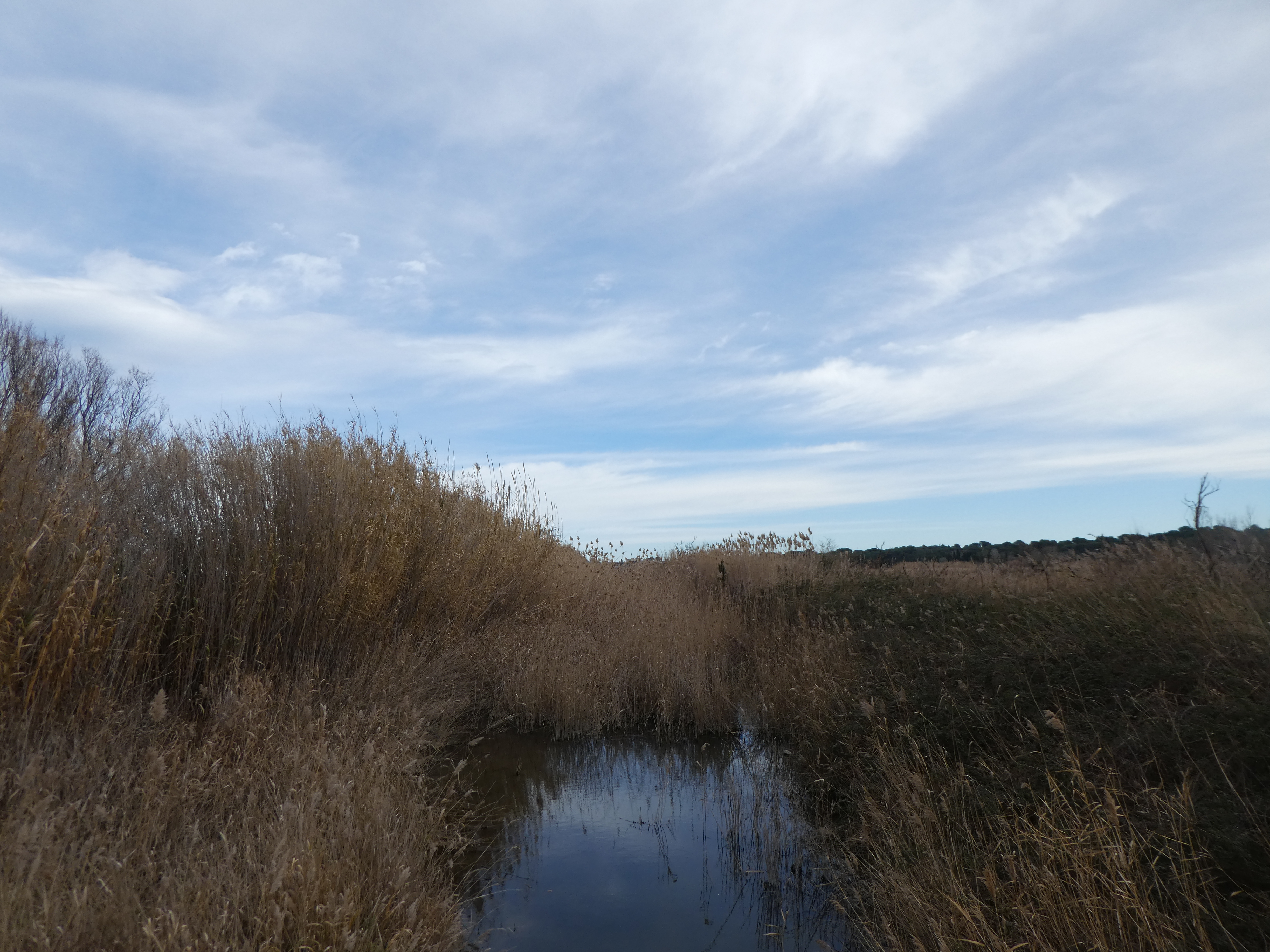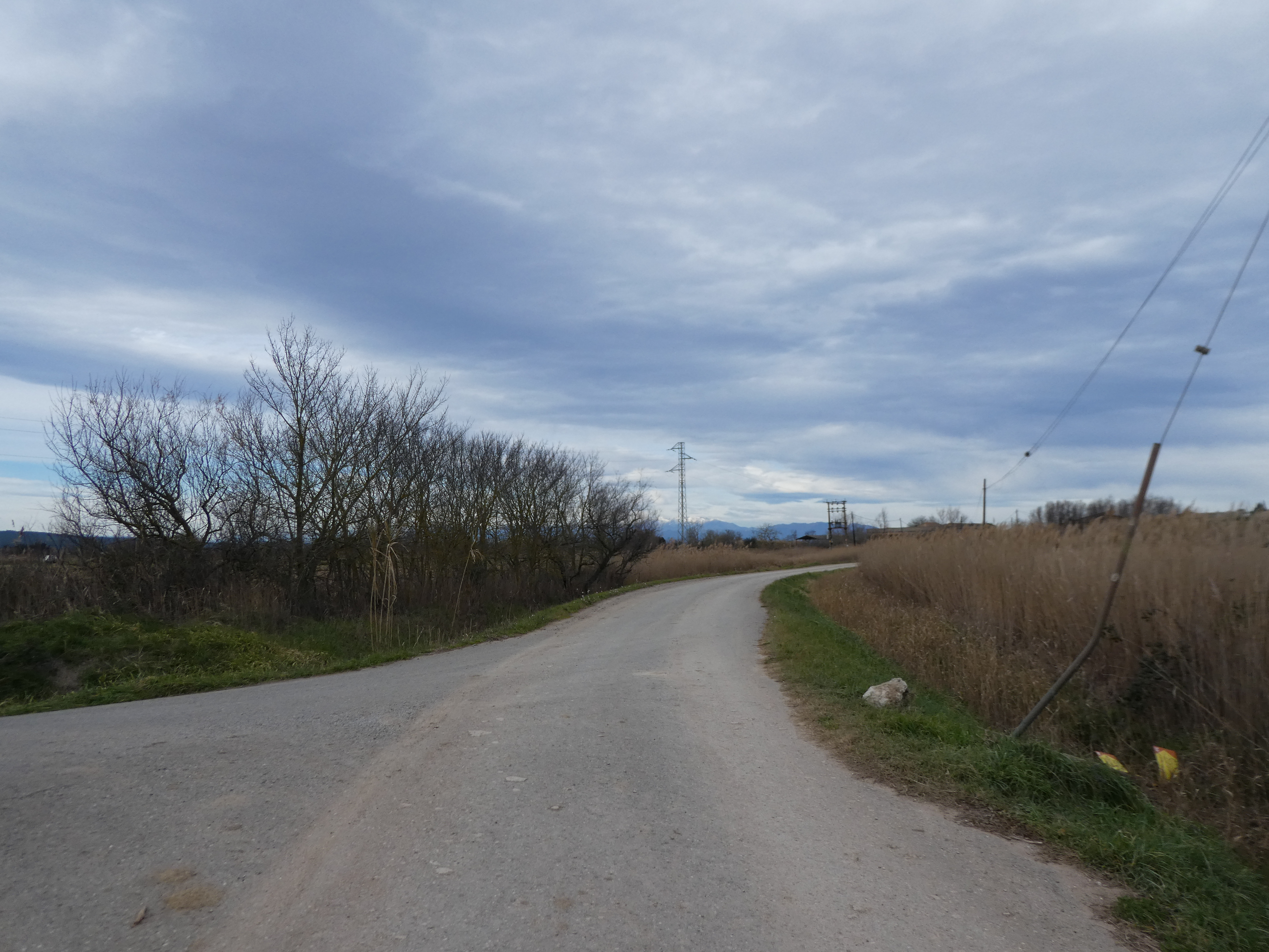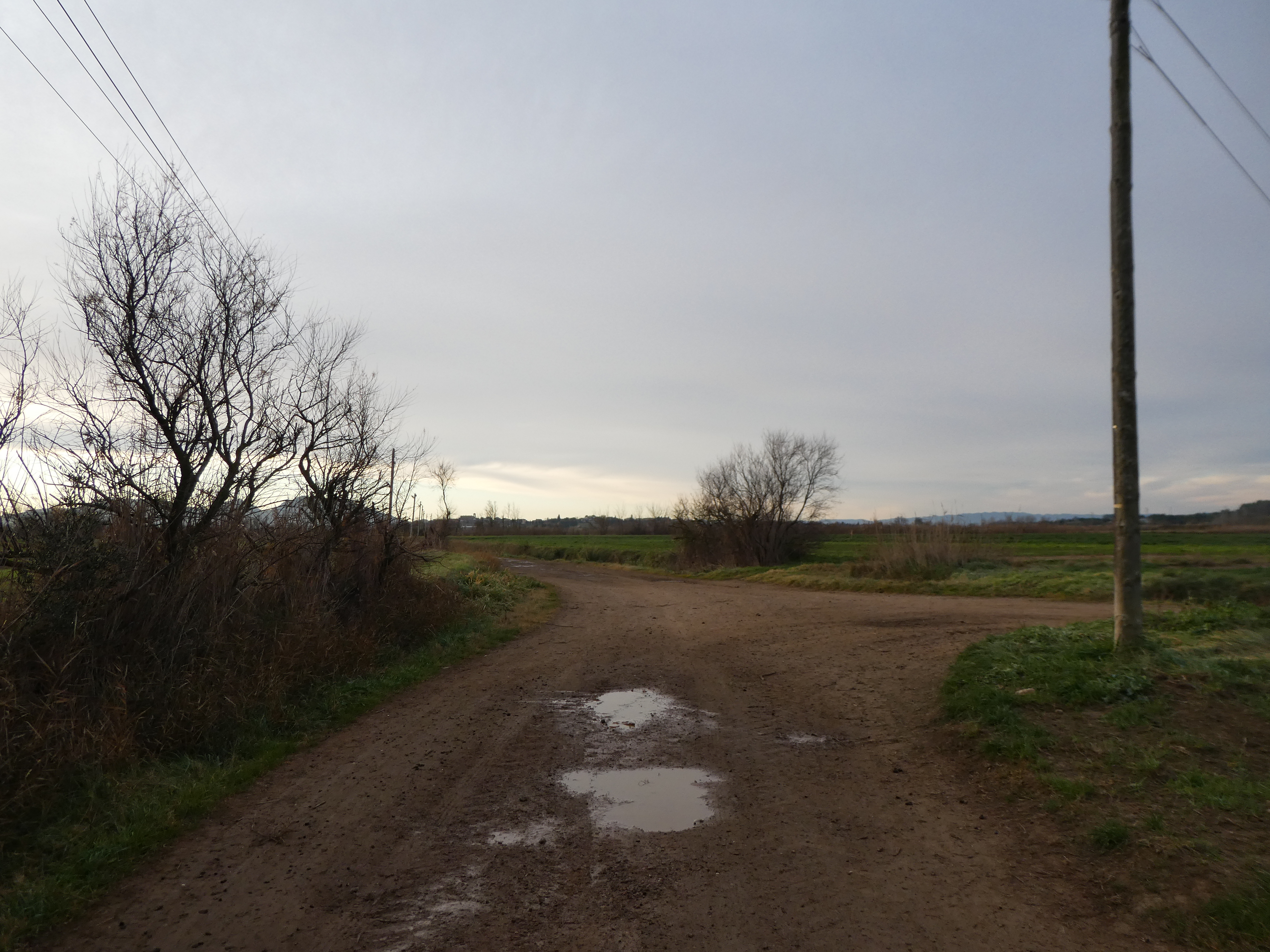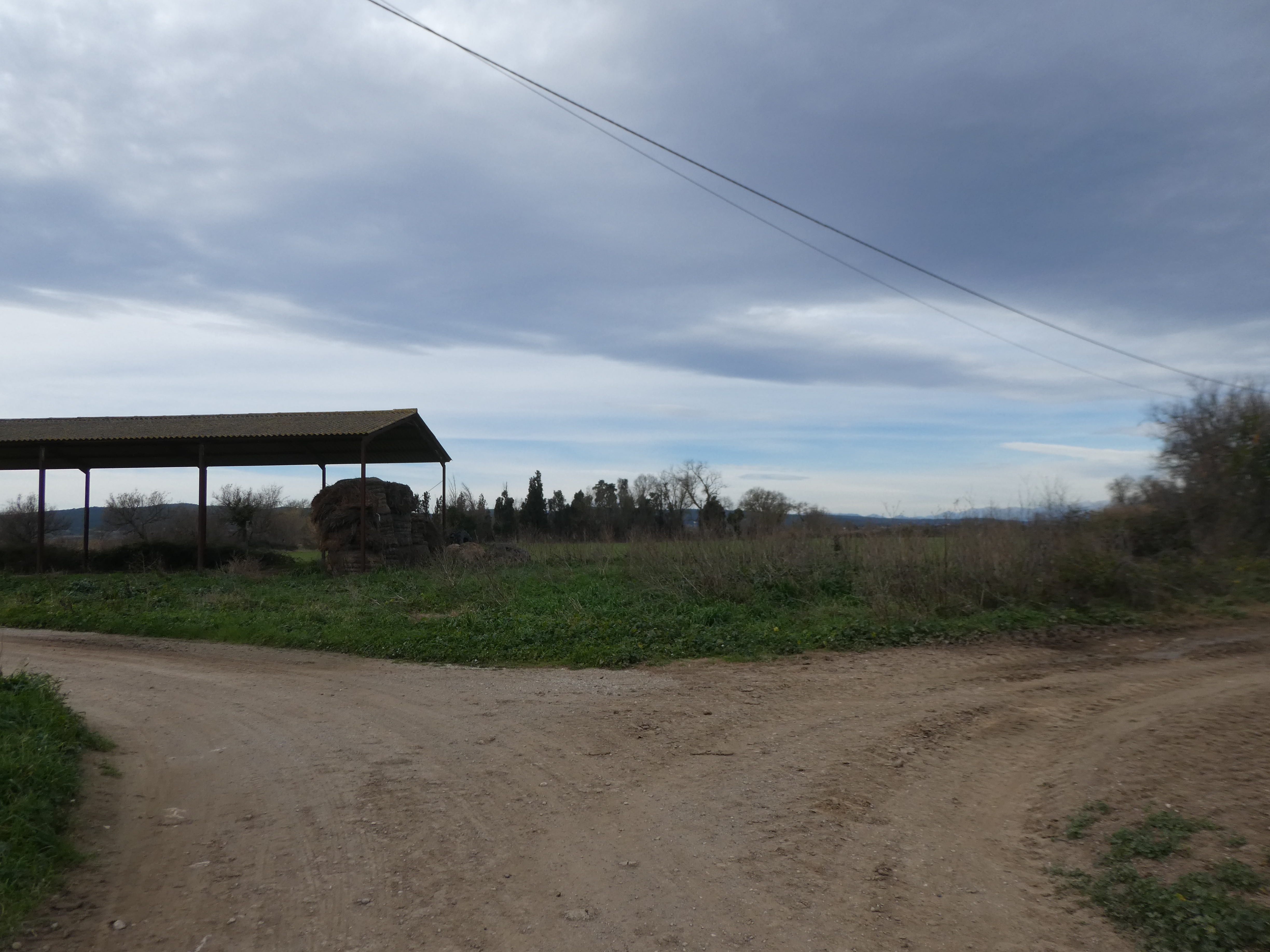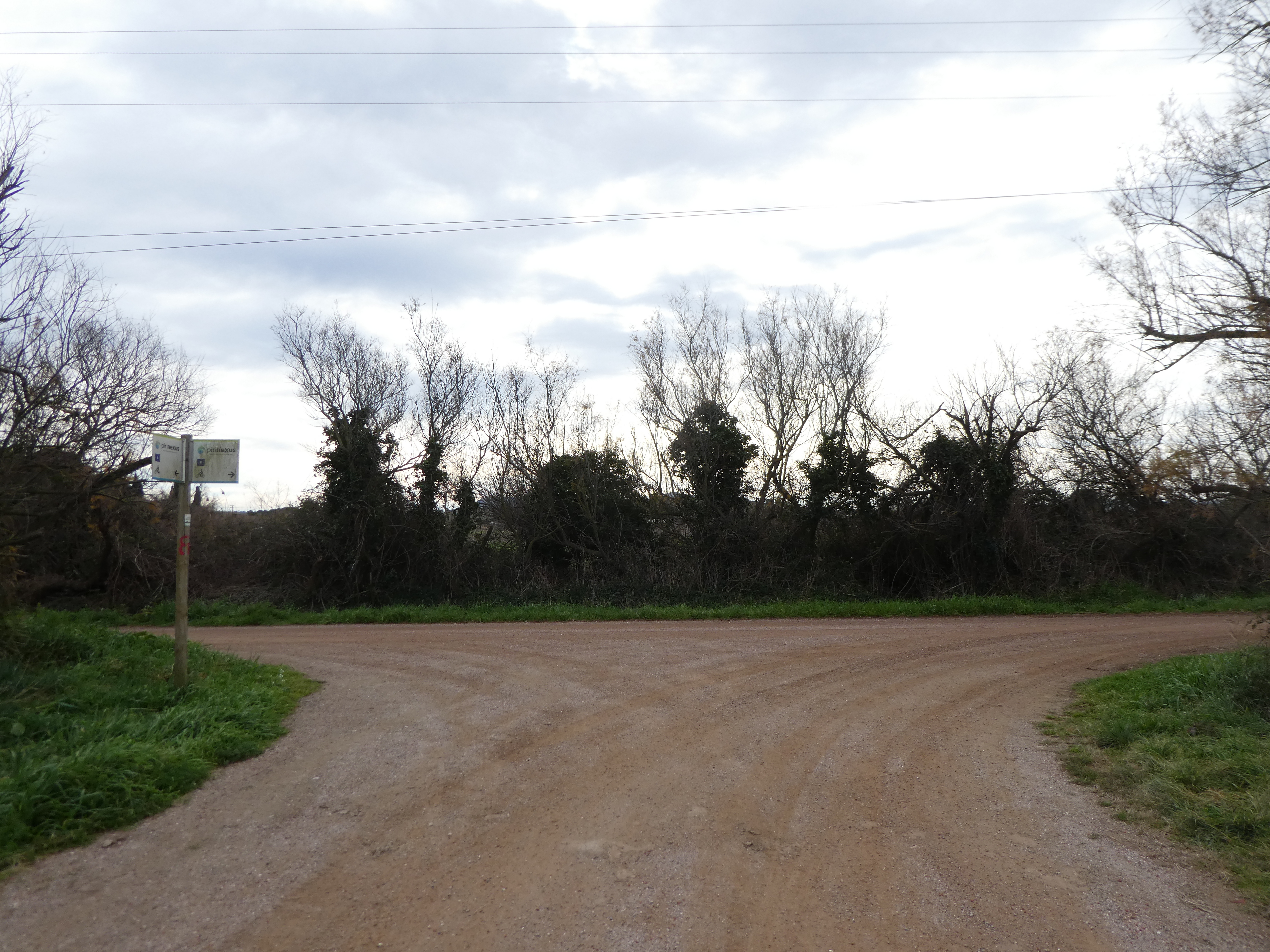 A ce croisement (150 mètres après le lieu-dit "Sant Martí d'Empúries"), traverser la route pour suivre le chemin partant sur la droite direction Cinc Claus, aucun balisage dorénavant (ce "détour" permet d'éviter de suivre la route et emprunte l'itinéraire cyclable du PirineXus)