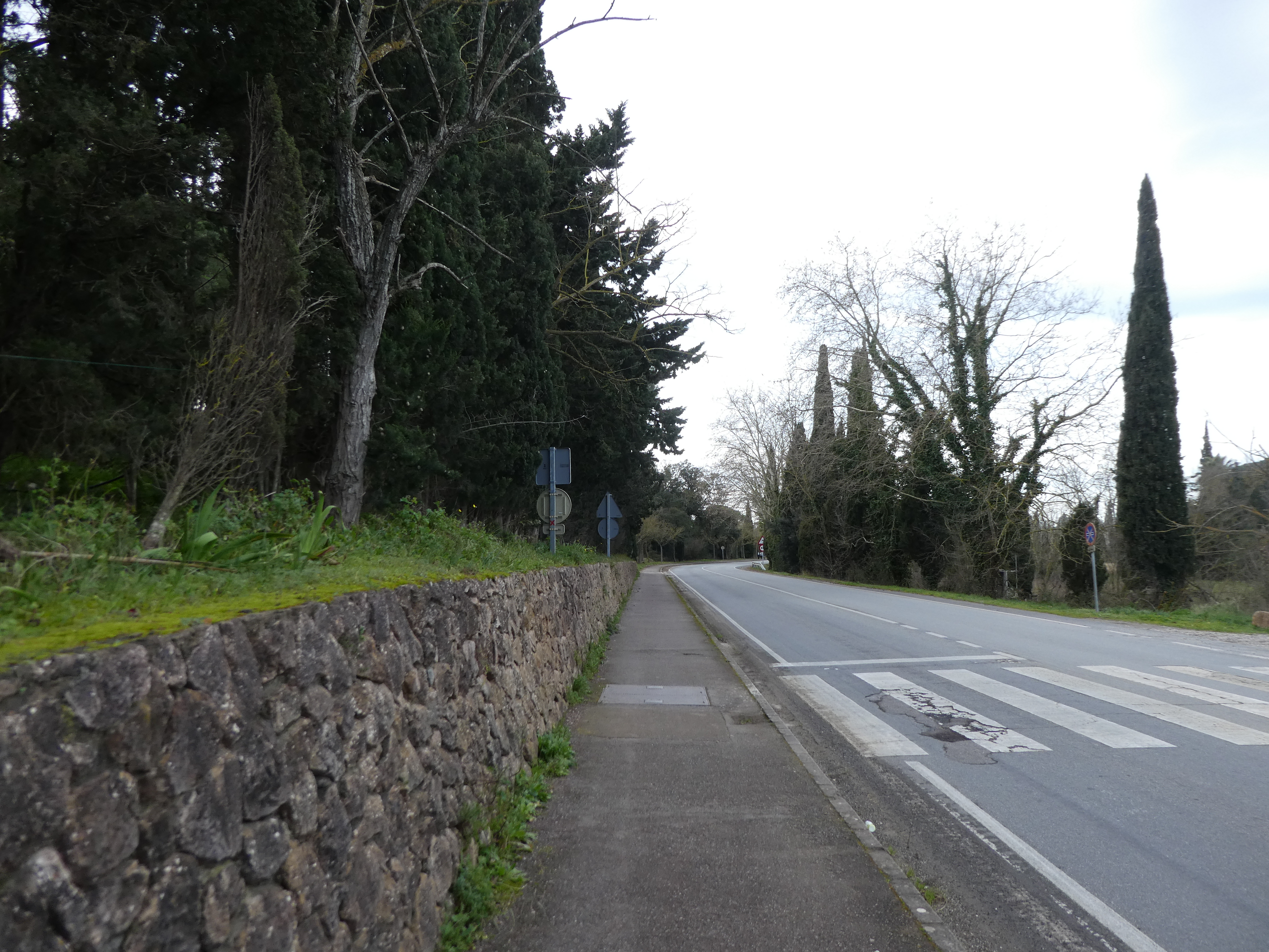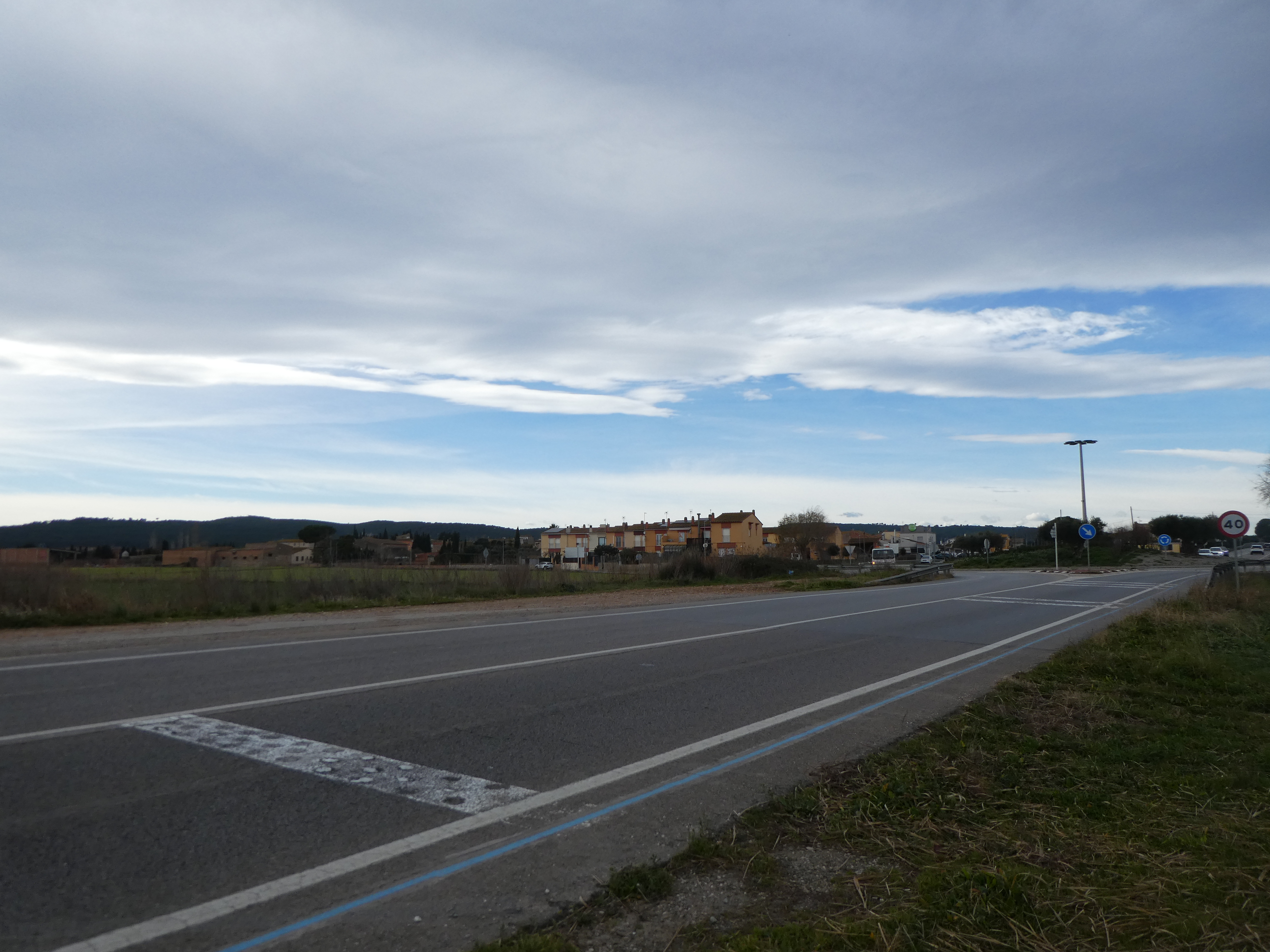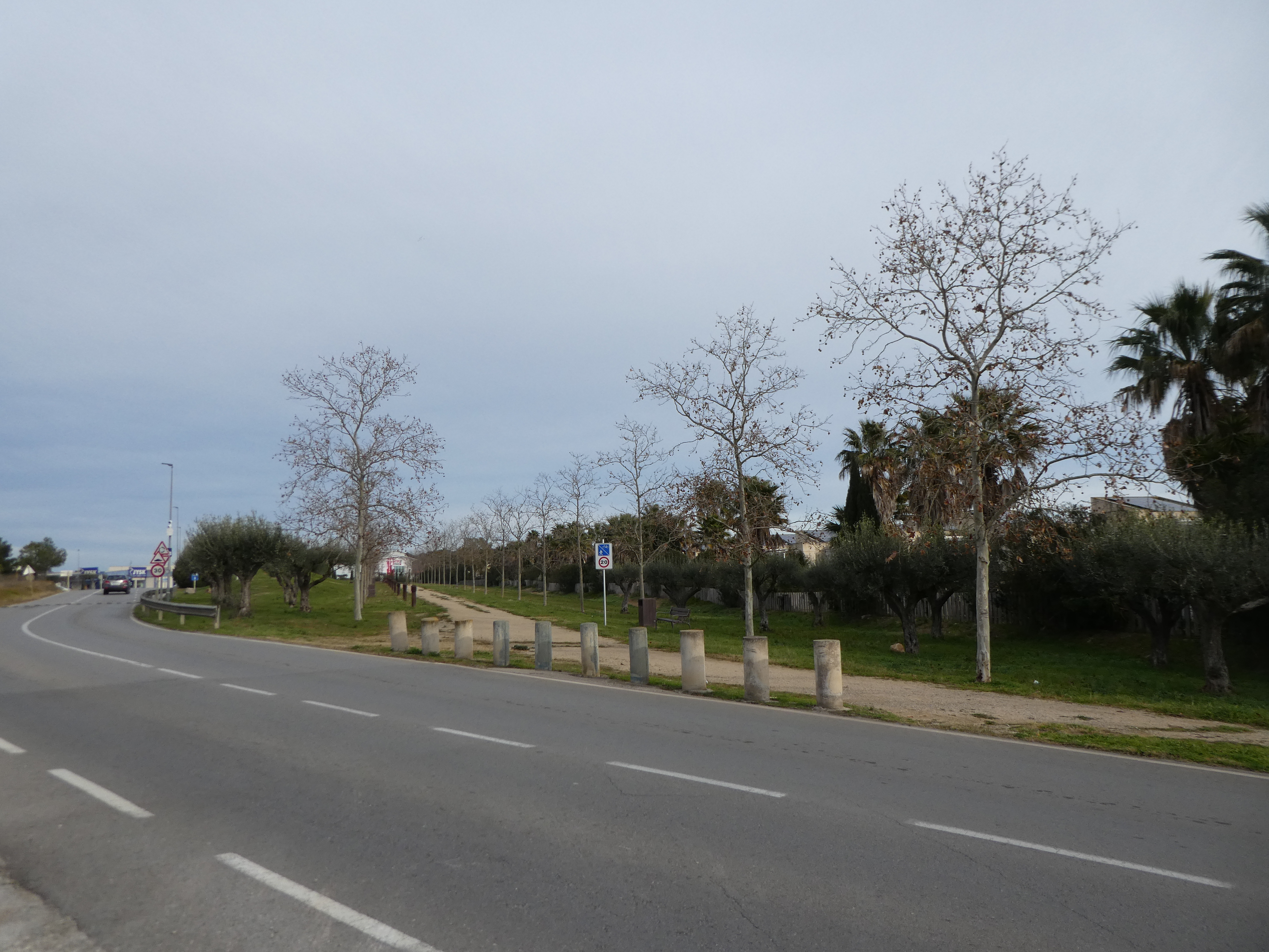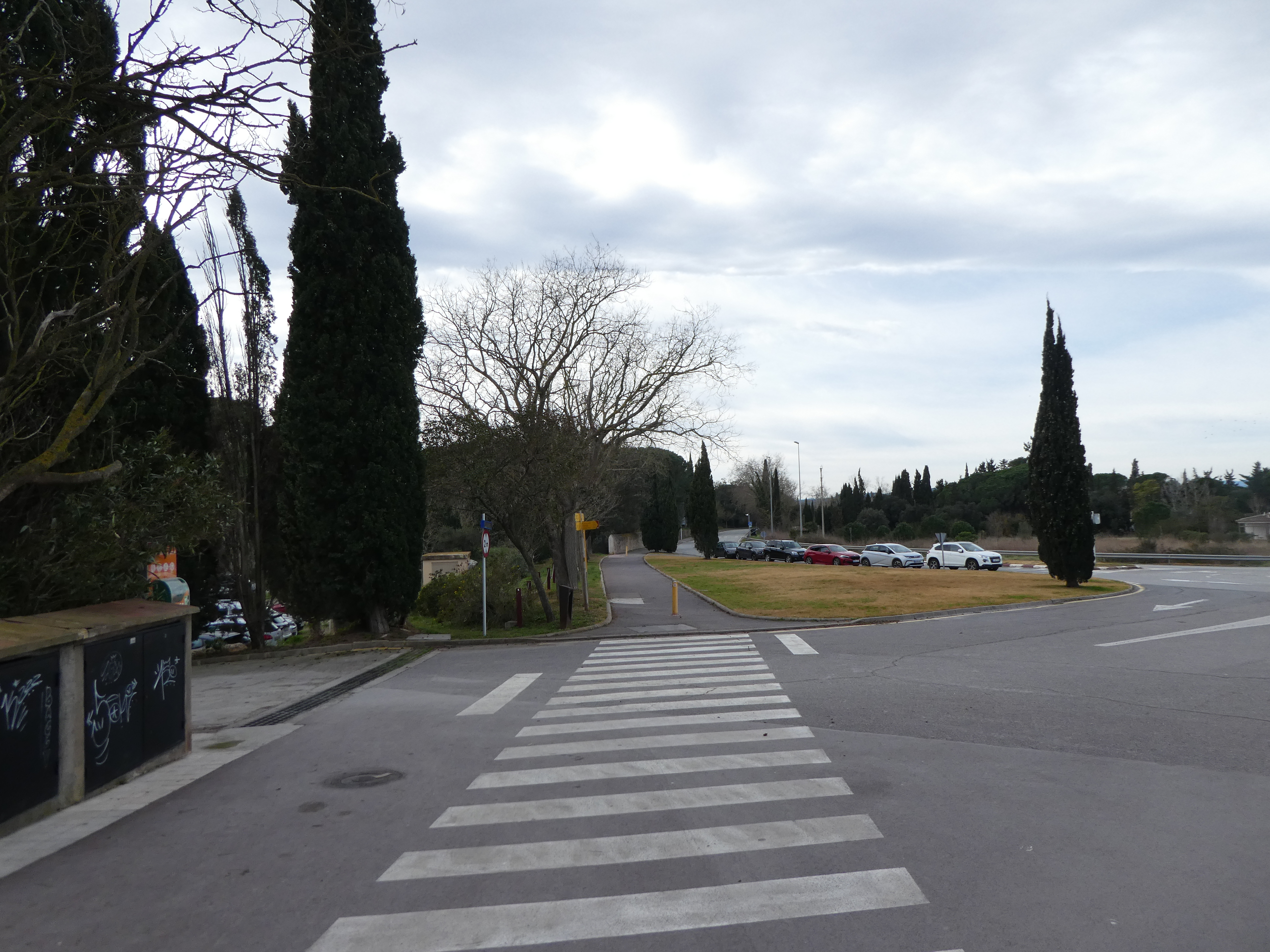 A ce croisement où la Voie Verte s'interrompt (200 mètres après le précédent rond-point), continuer à longer la route partant tout droit (Avinguda de Girona) jusqu'au prochain rond-point direction l'Escala