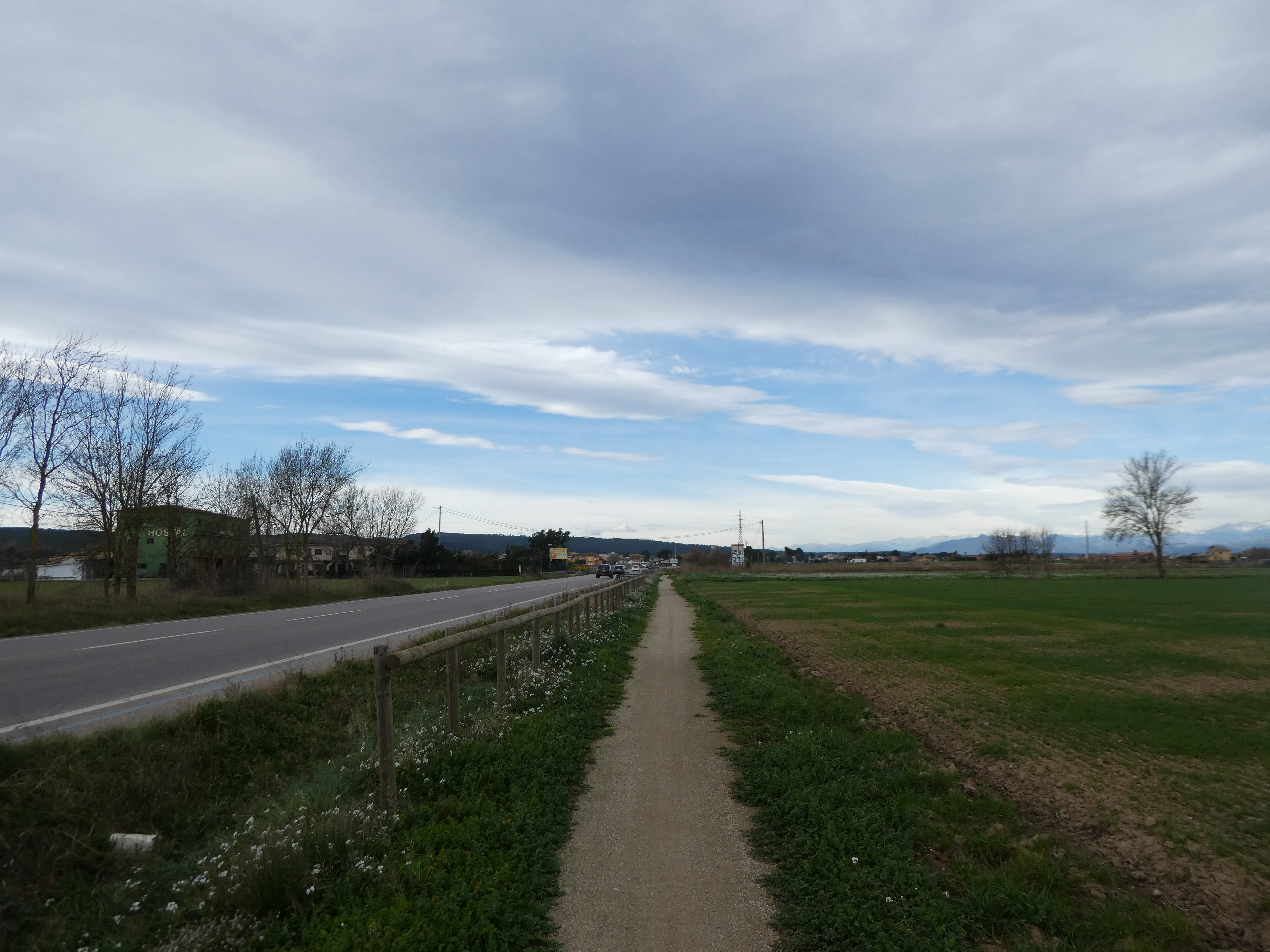 A ce croisement (800 mètres après le lieu-dit "Carretera de Viladamat a Albons"), suivre le chemin partant tout droit direction Albons, balisé sporadiquement en jaune (entrée dans la comarque du Baix Empordà)