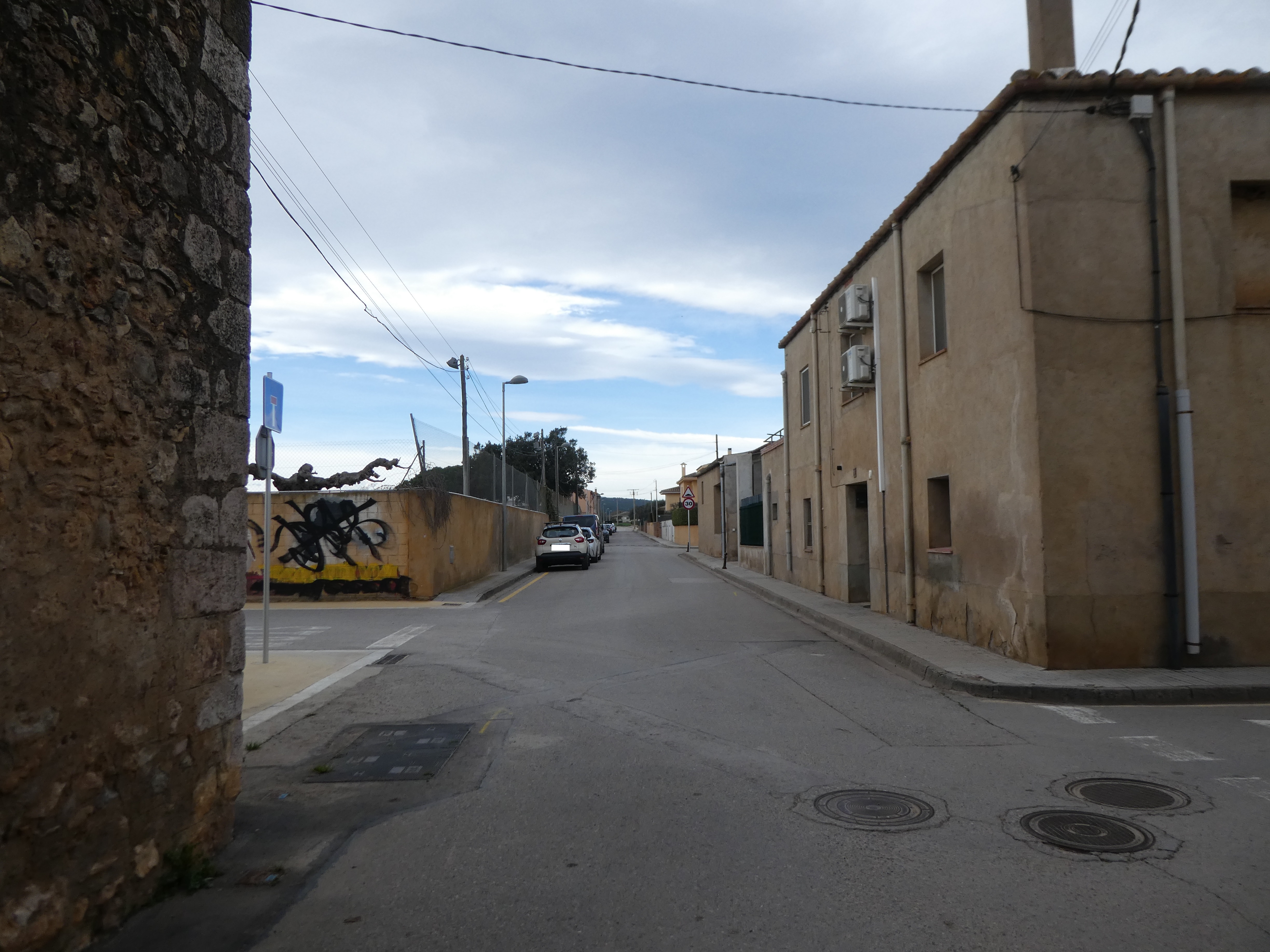 A ce croisement situé entre le Castell d'Albons et la mairie (100 mètres après la précédente intersection), suivre la ruelle partant tout droit à gauche de la mairie direction l'Escala