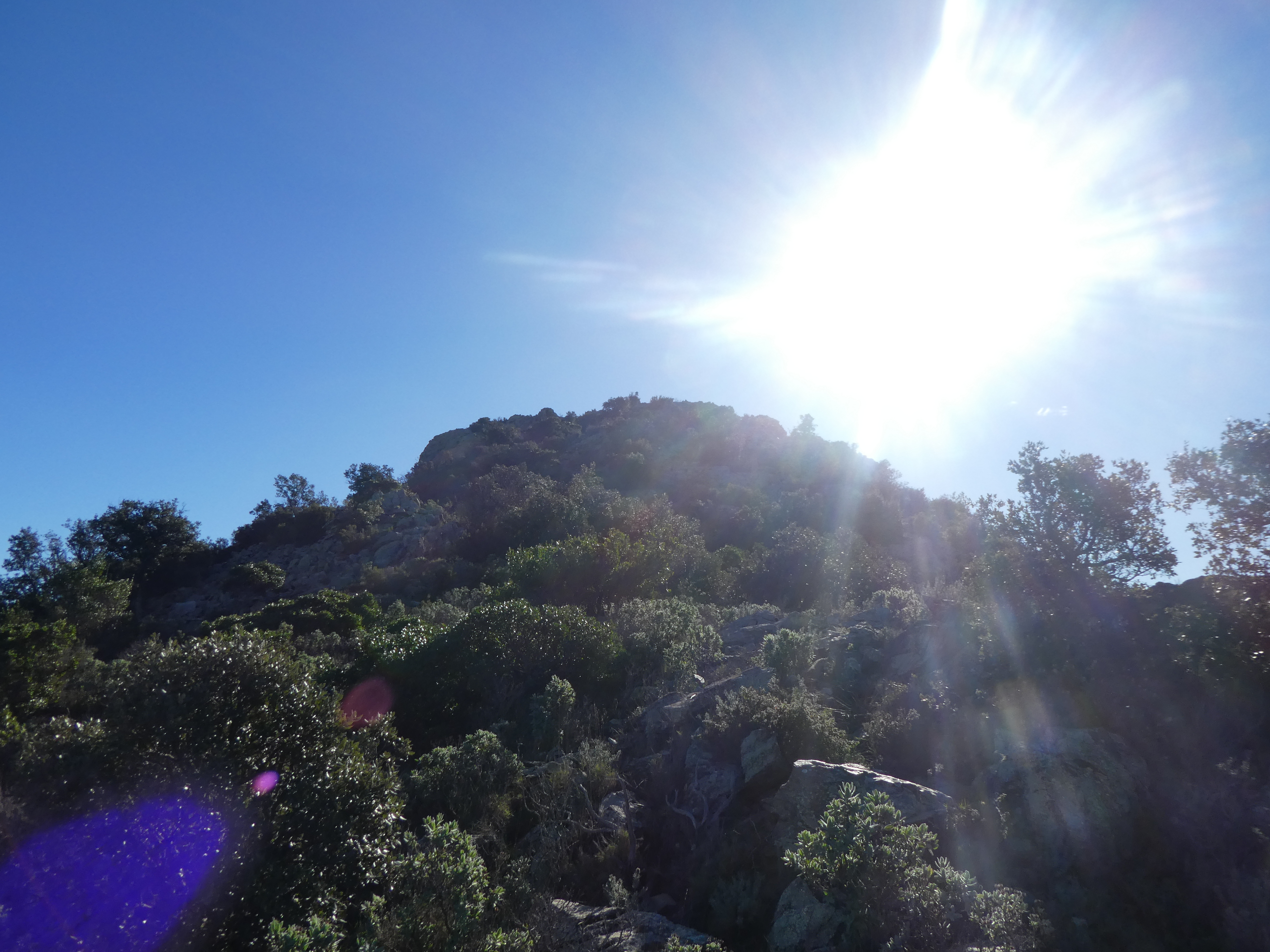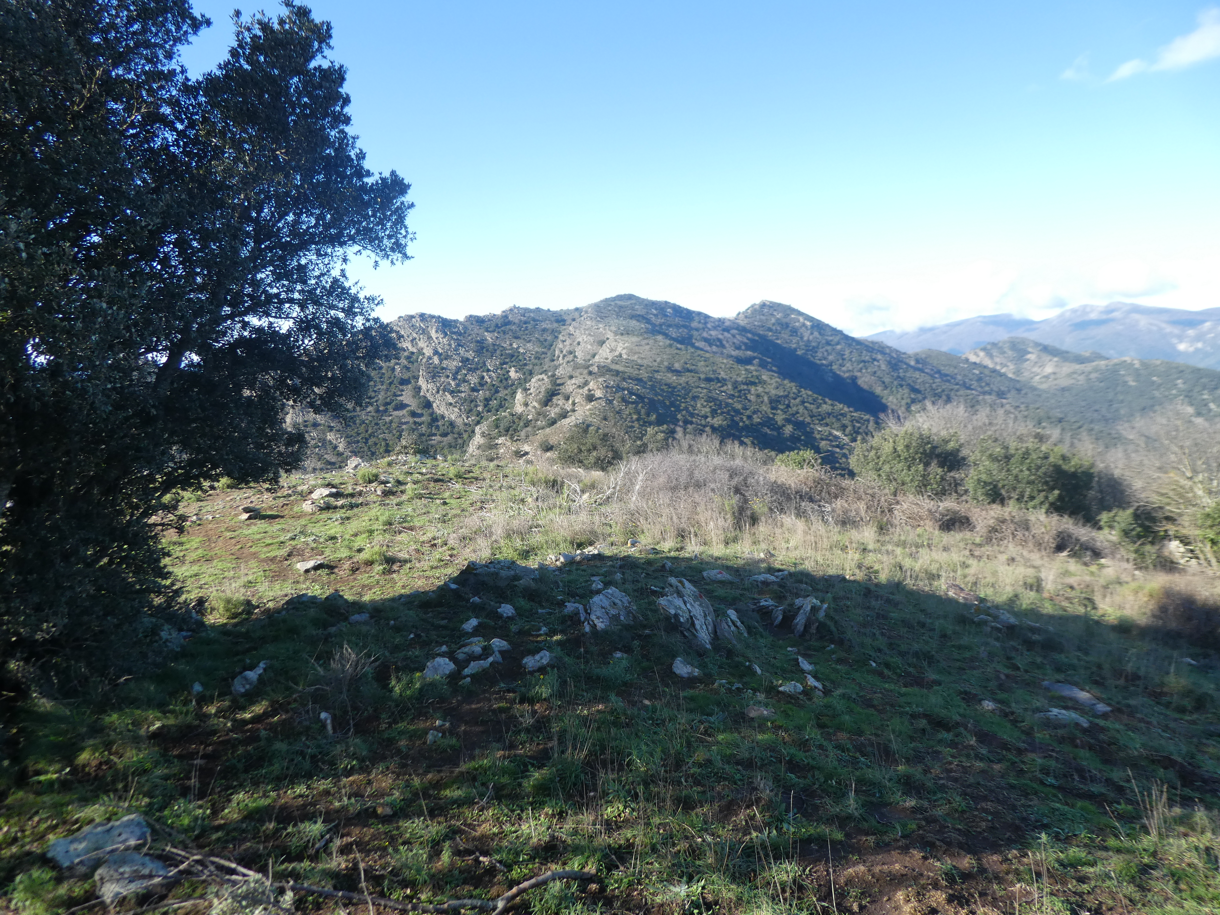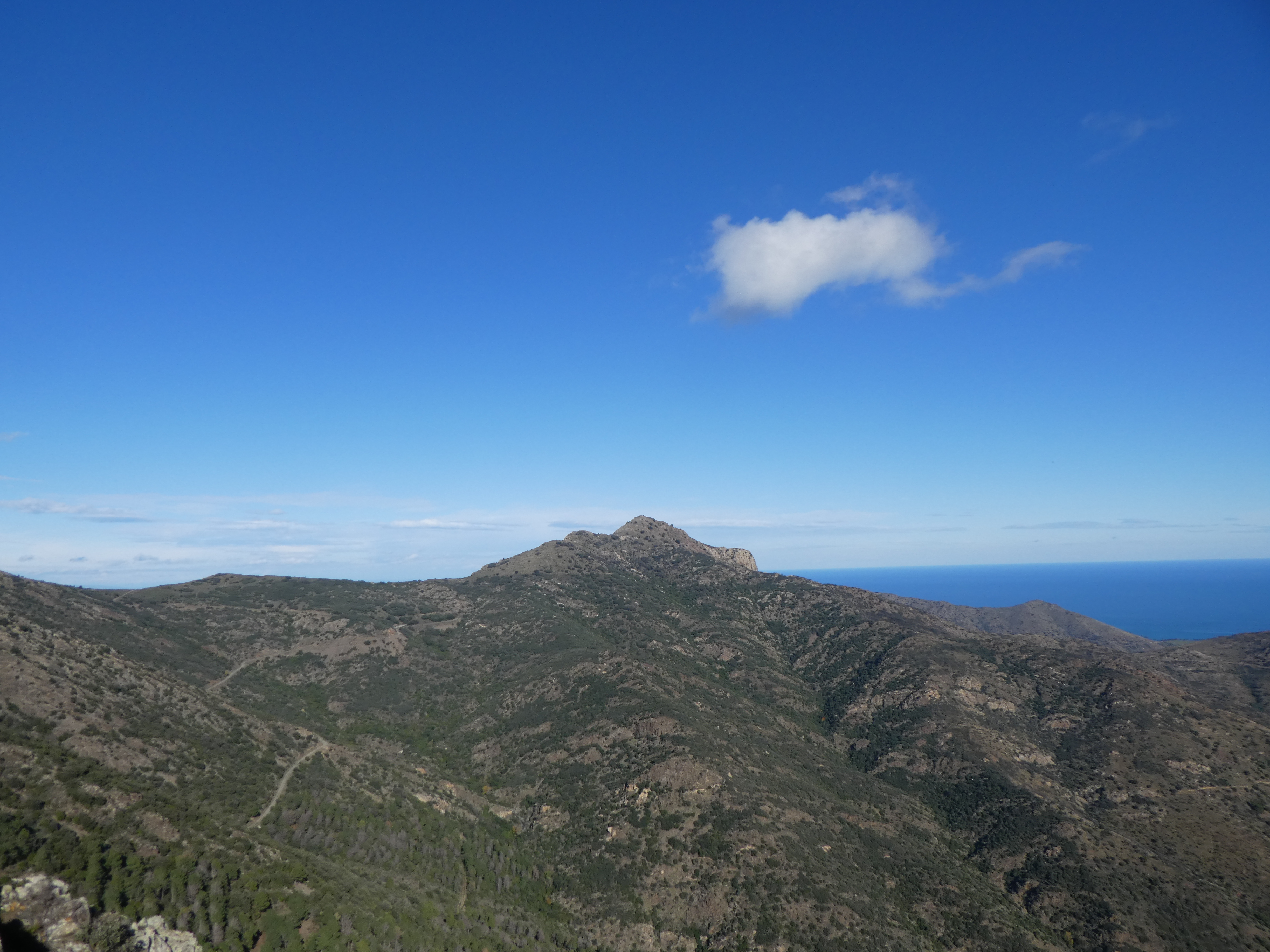 Arrivée au sommet du Puig de Tarabaus ou Puig de Taravaus (699 m) : panorama semblable à celui de la Torre Petita avec vue masquée sur les sommets du Haut-Vallespir