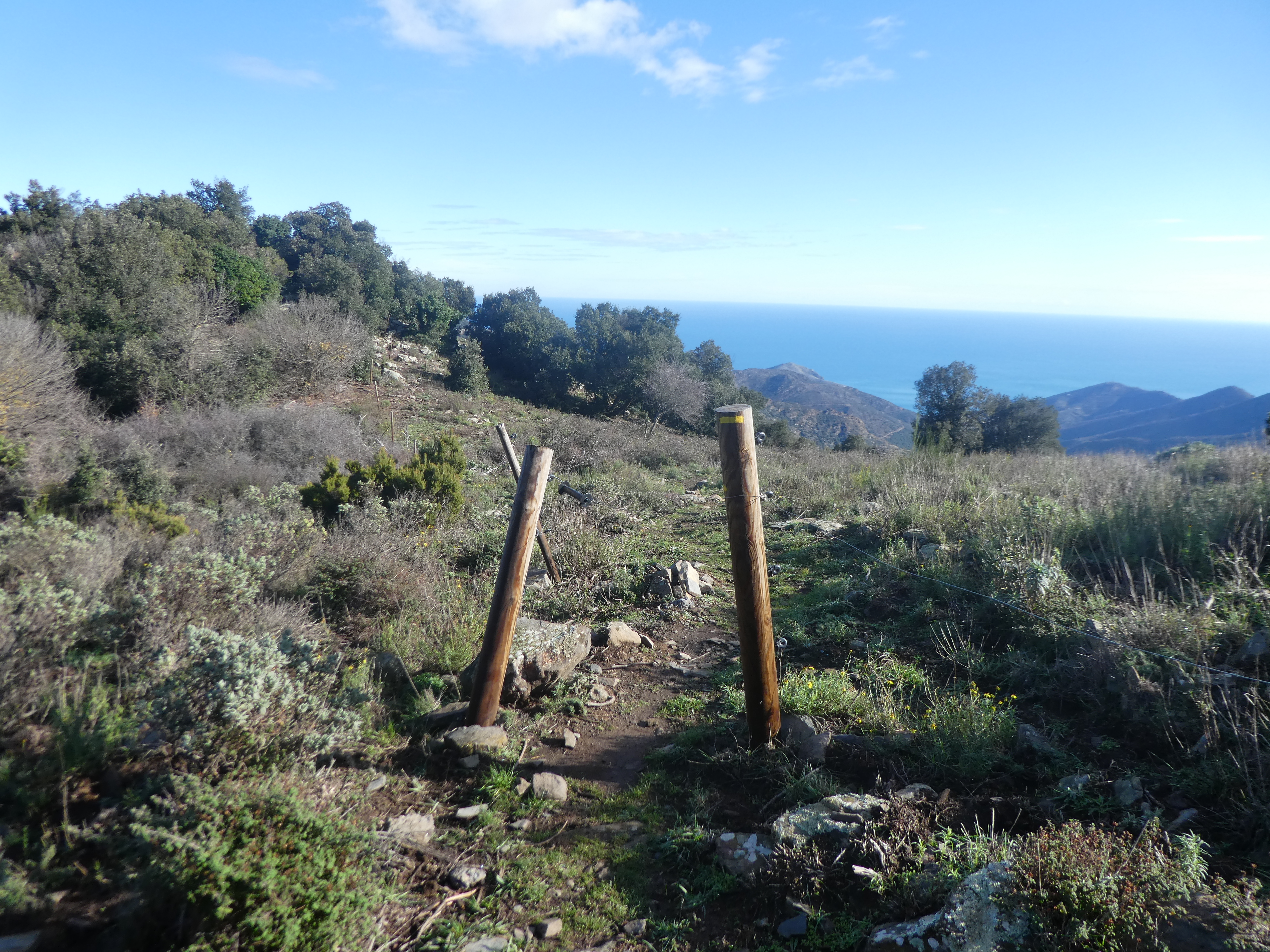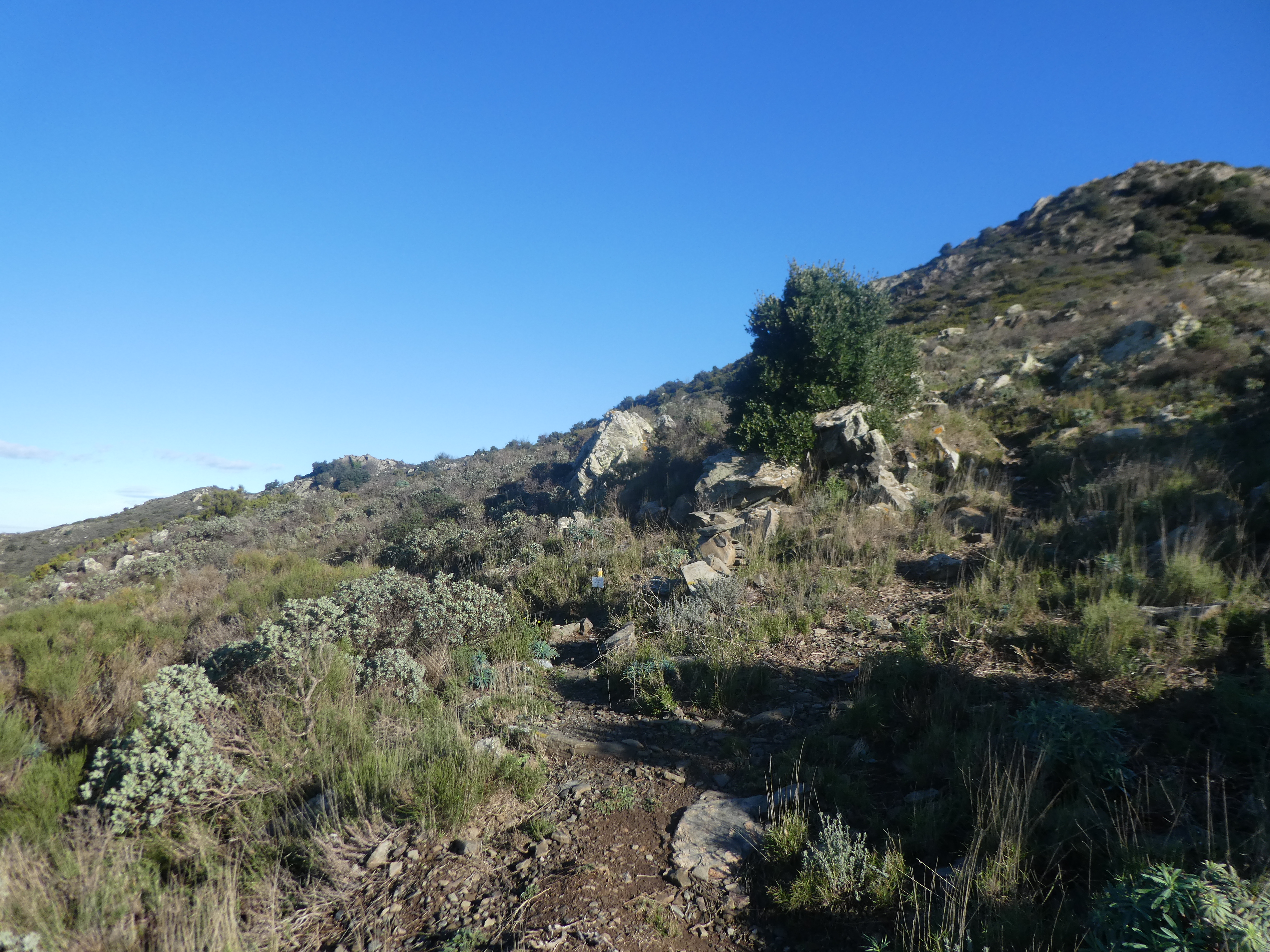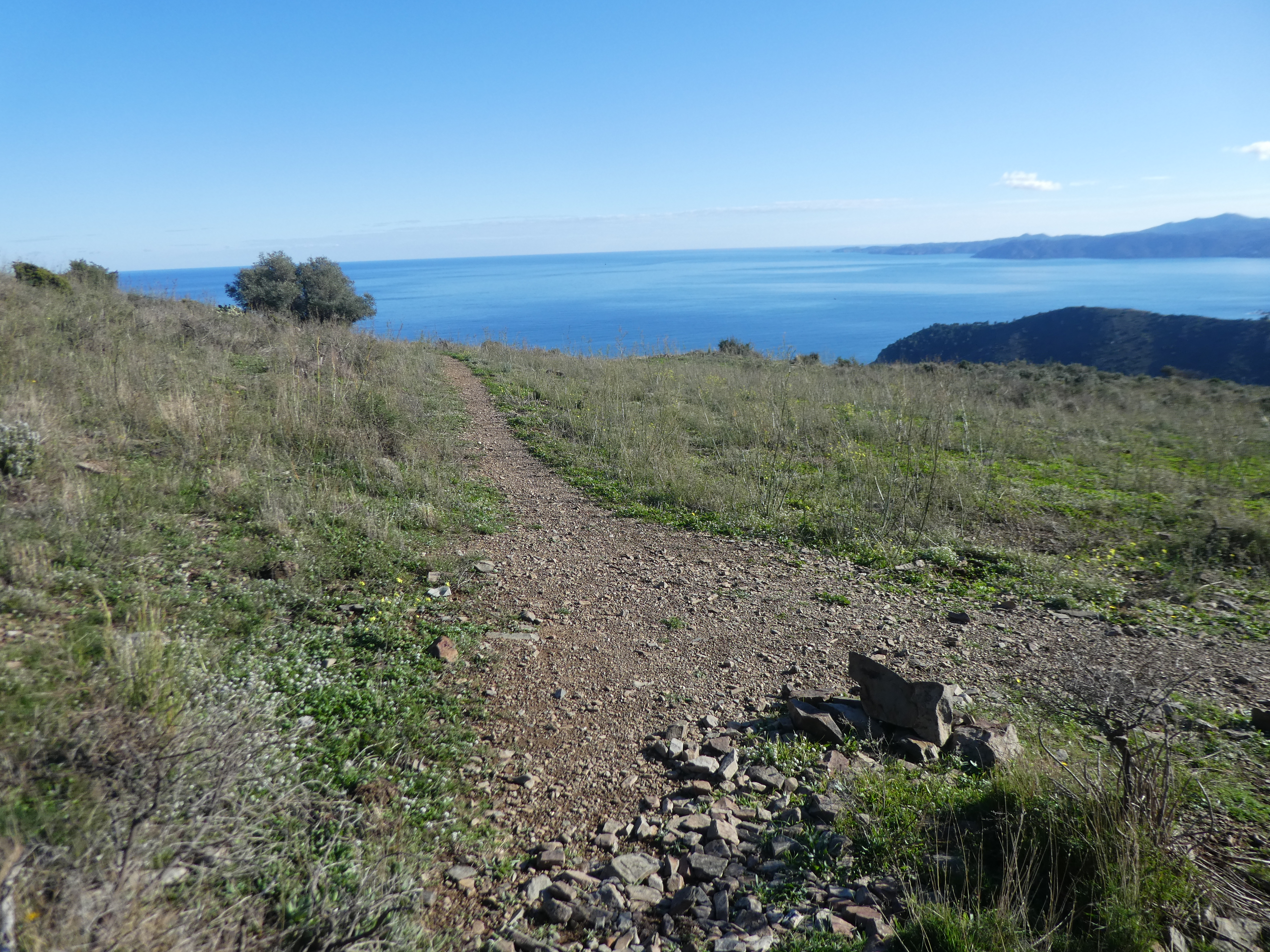 A ce croisement cairné (400 mètres après le précédent), suivre le chemin descendant sur la gauche direction Colera, balisé sporadiquement en jaune