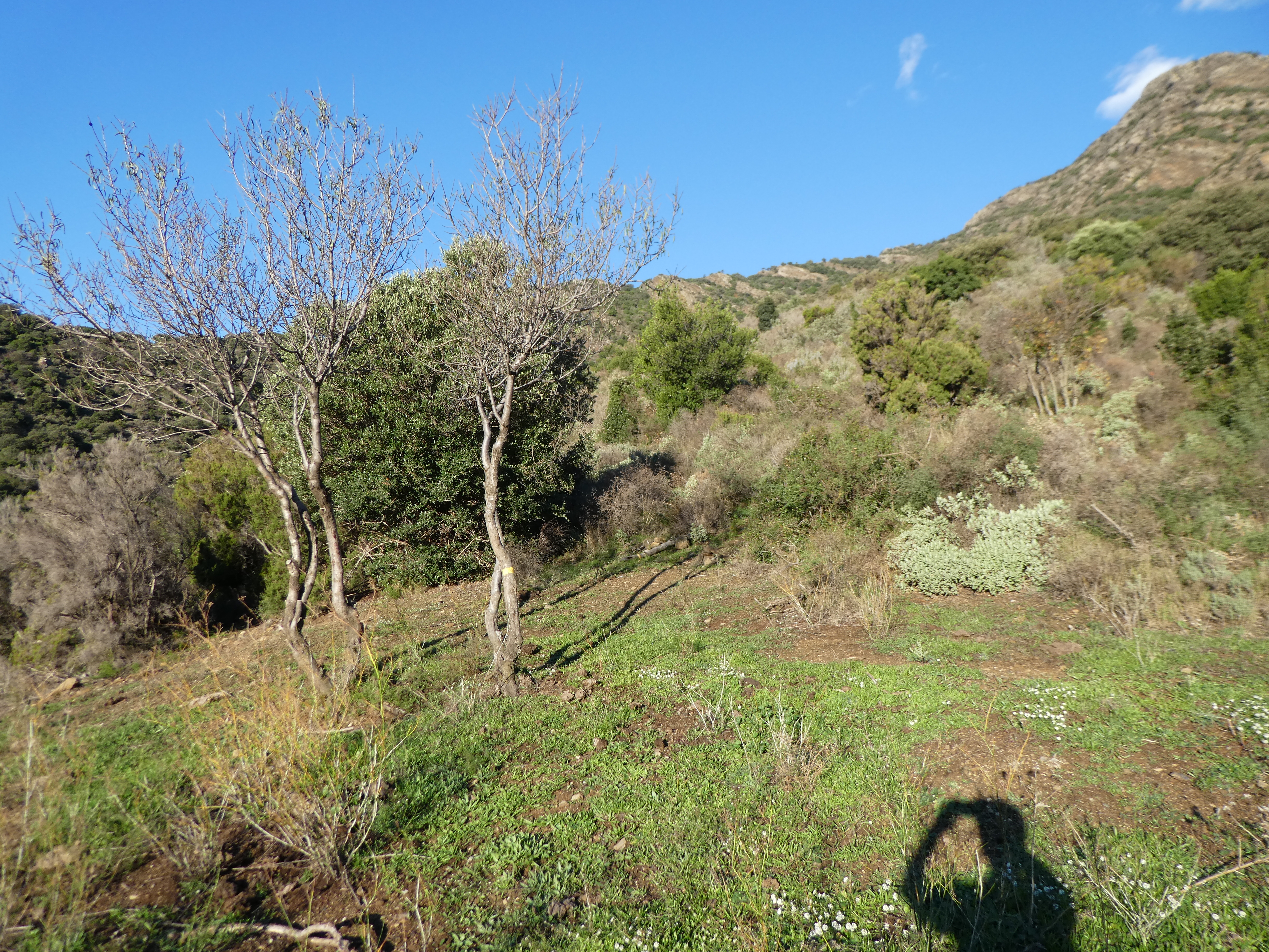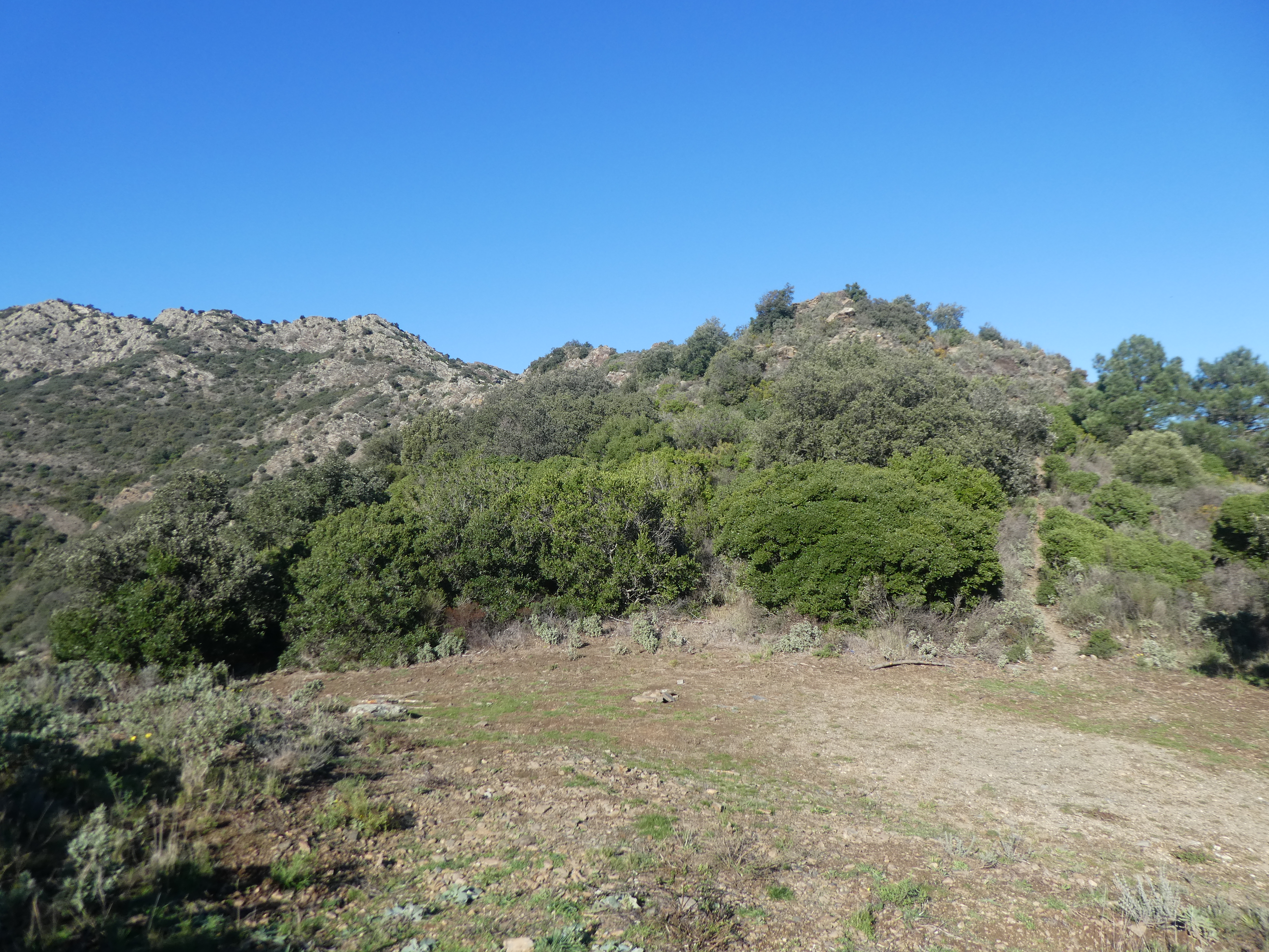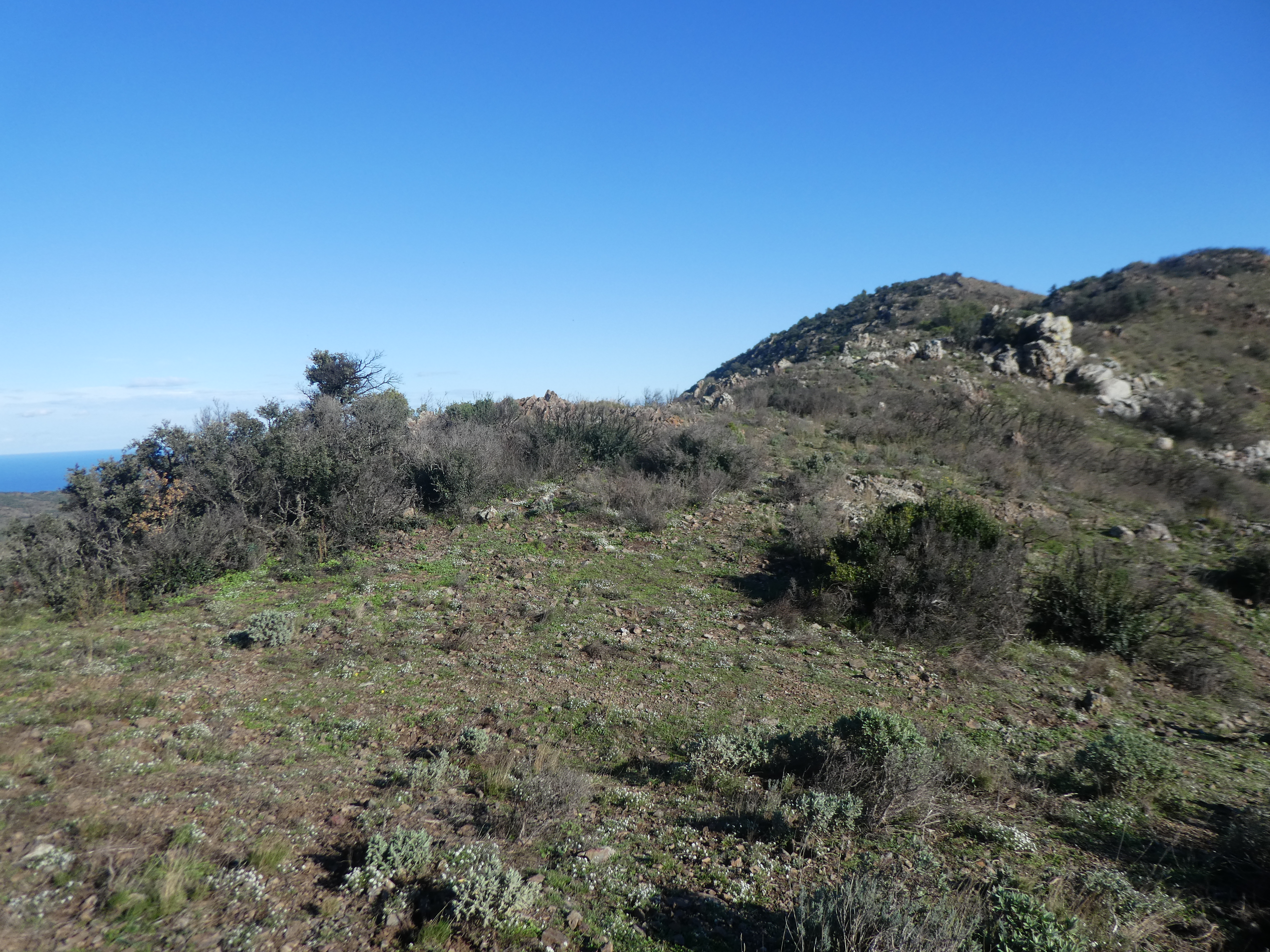 A ce croisement avec l'itinéraire de montée vers le Puig de Tarabaus (1000 mètres après le précédent), suivre ce dernier partant légèrement sur la droite direction Puig de Tarabaus, aucun balisage dorénavant (ceux qui voudraient revenir directement sur Colera, continuer à suivre le sentier balisé en jaune partant tout droit vers le Coll de Tarabaus)
