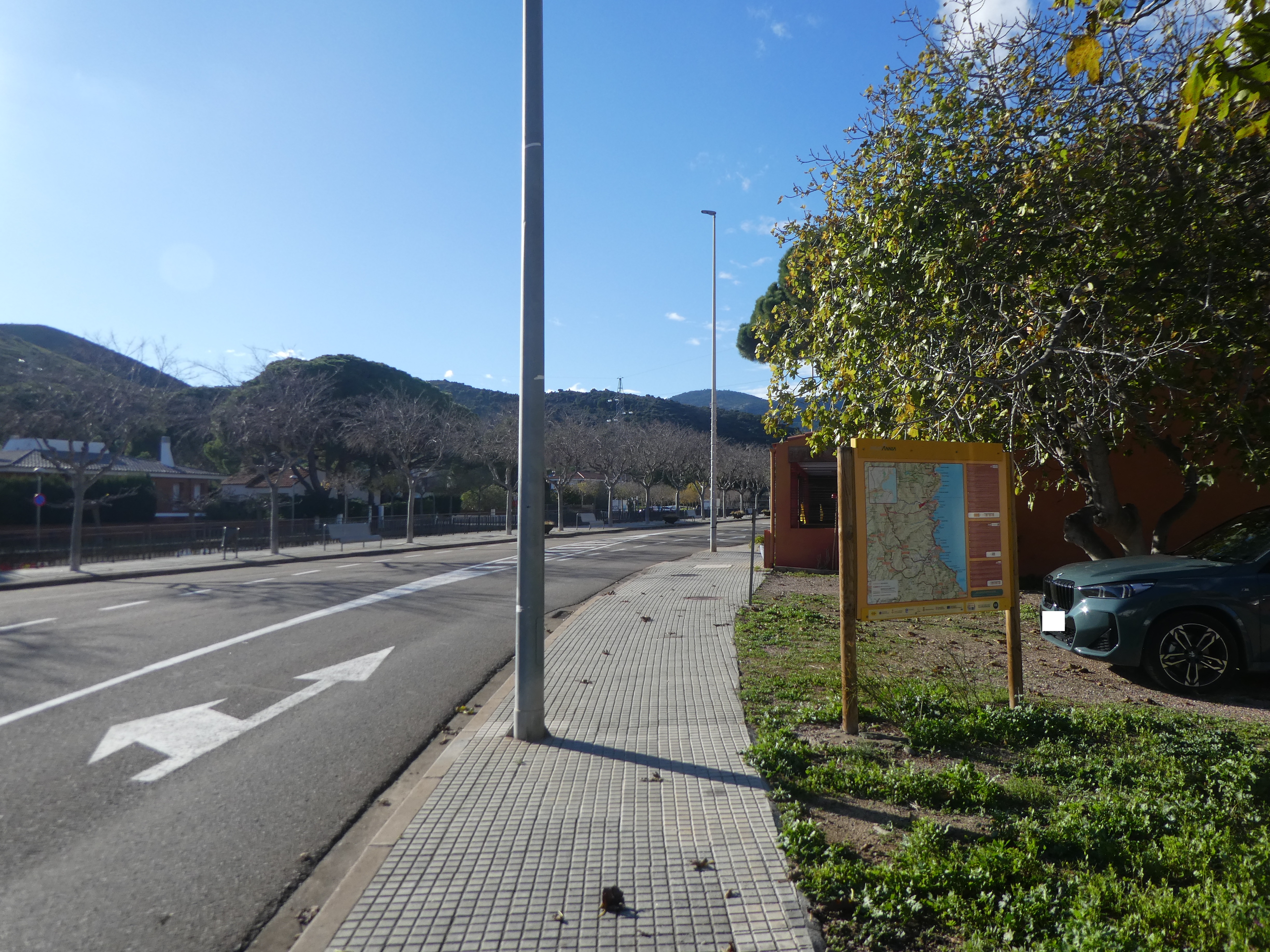 A cette intersection marquée par la présence d'un panneau directionnel routier (300 mètres après le précédent croisement mentionné), suivre la rue partant sur la droite (Carrer de Francesc Robera) direction Colera - Parc Tramuntana, aucun balisage dorénavant