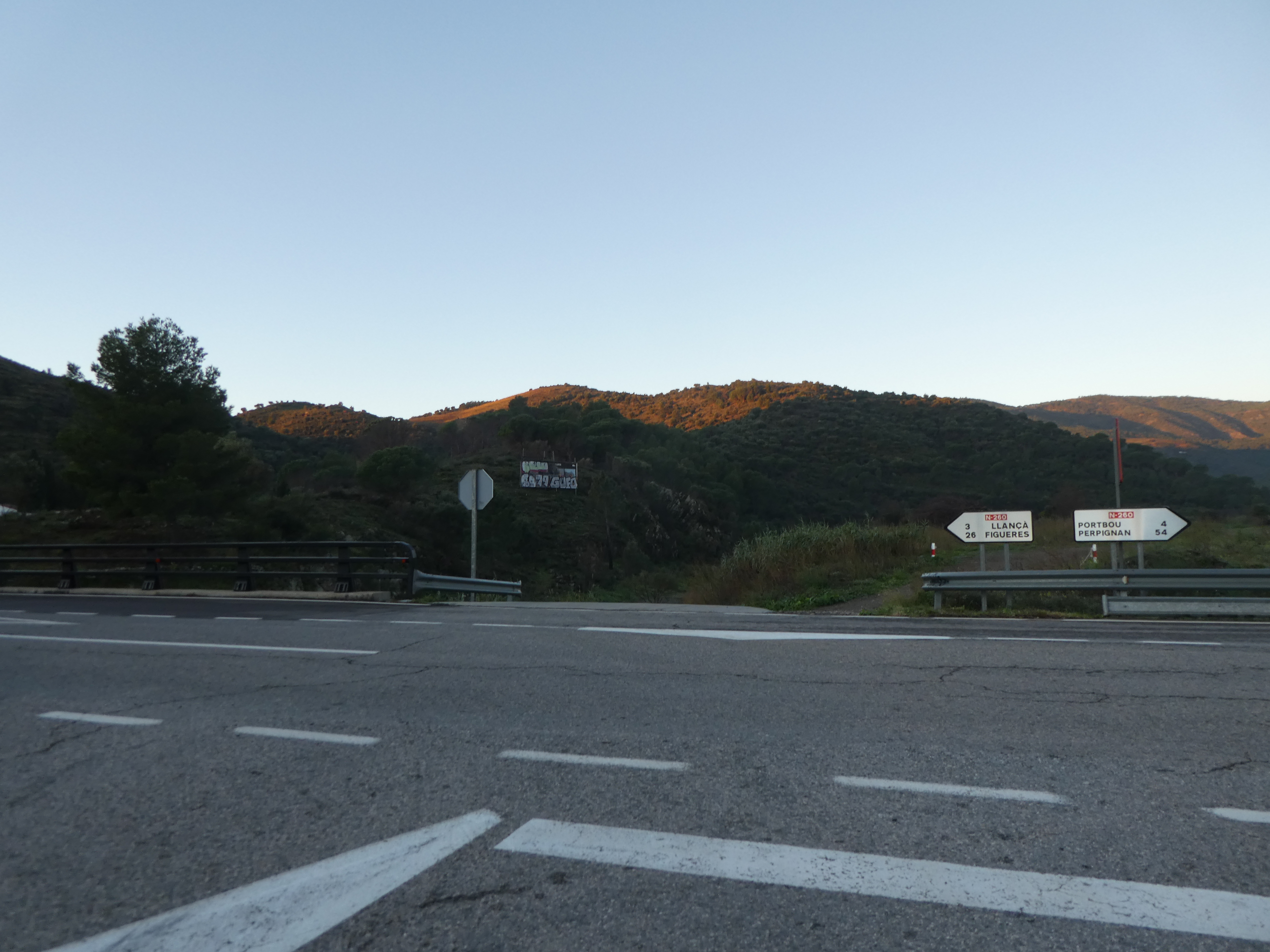 A ce croisement avec la N-260 situé à l'entrée de Colera marqué par la présence d'un panneau directionnel (1000 mètres après le précédent), suivre la rue descendant tout droit en face de la route direction Colera, balisé en rouge et blanc, et sporadiquement en jaune