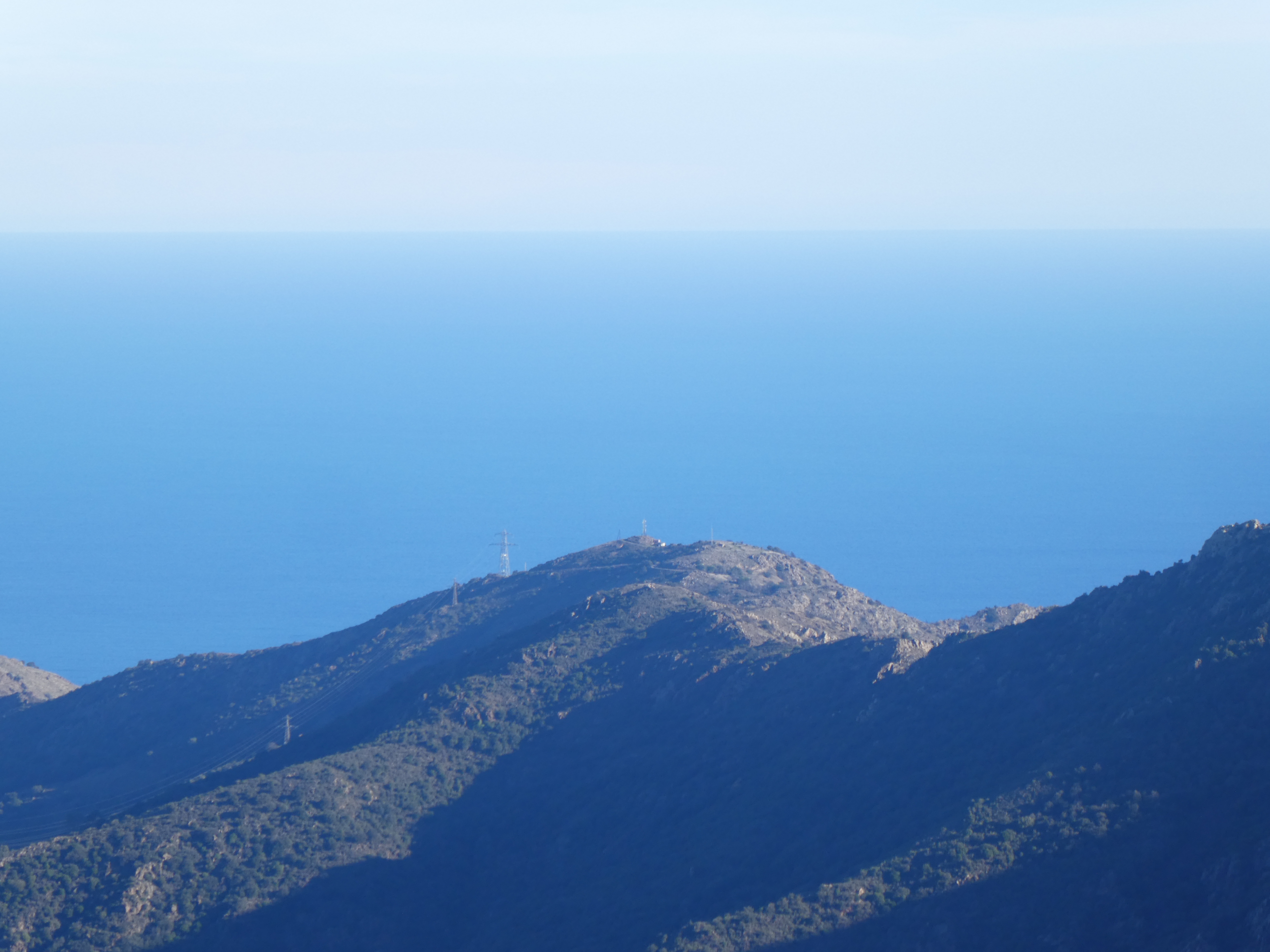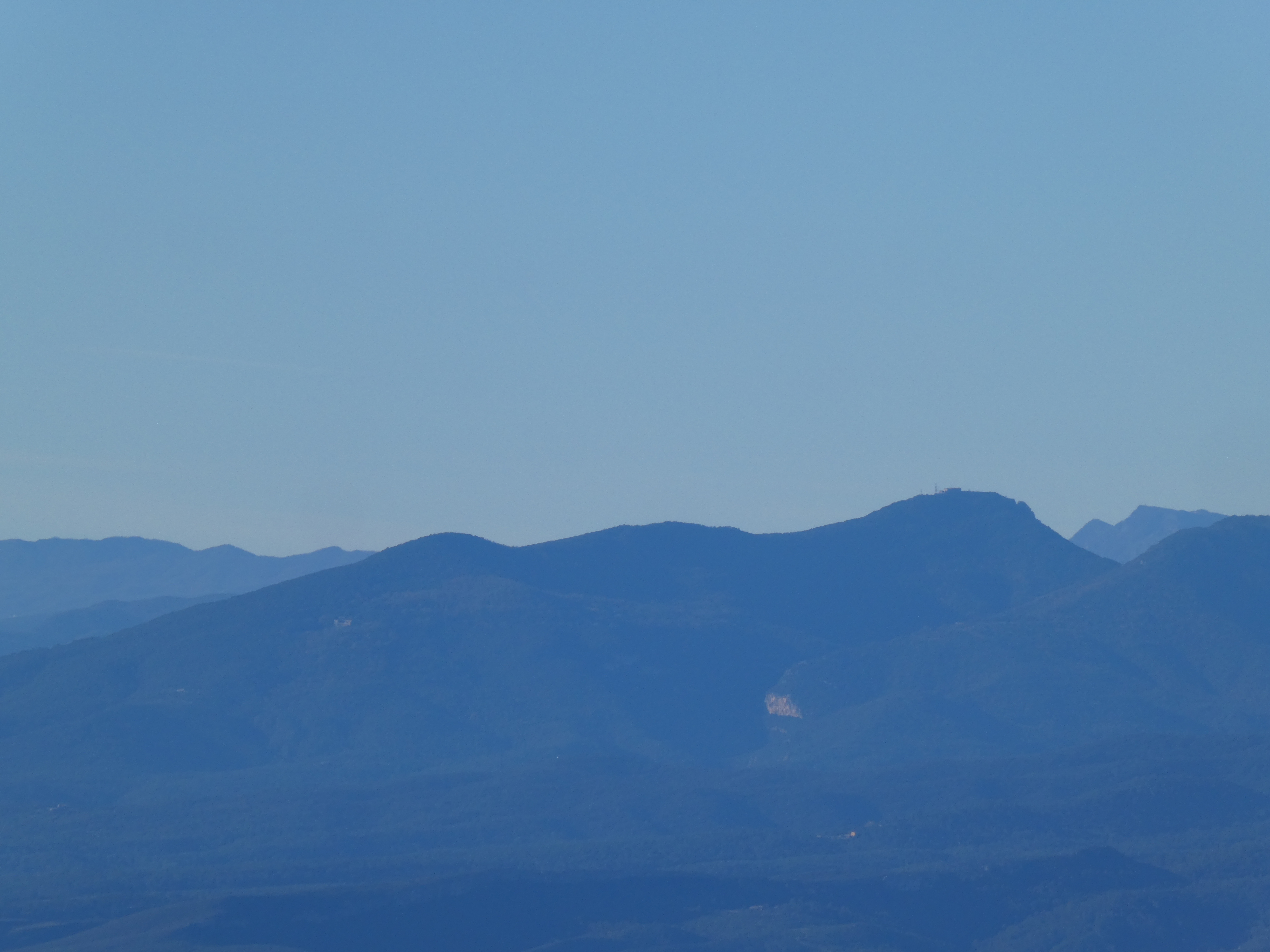 Zoom sur le Puig de la Bicoca (1445 m) à gauche et Santa Magdalena de Cambrils (1547 m) au centre-droit