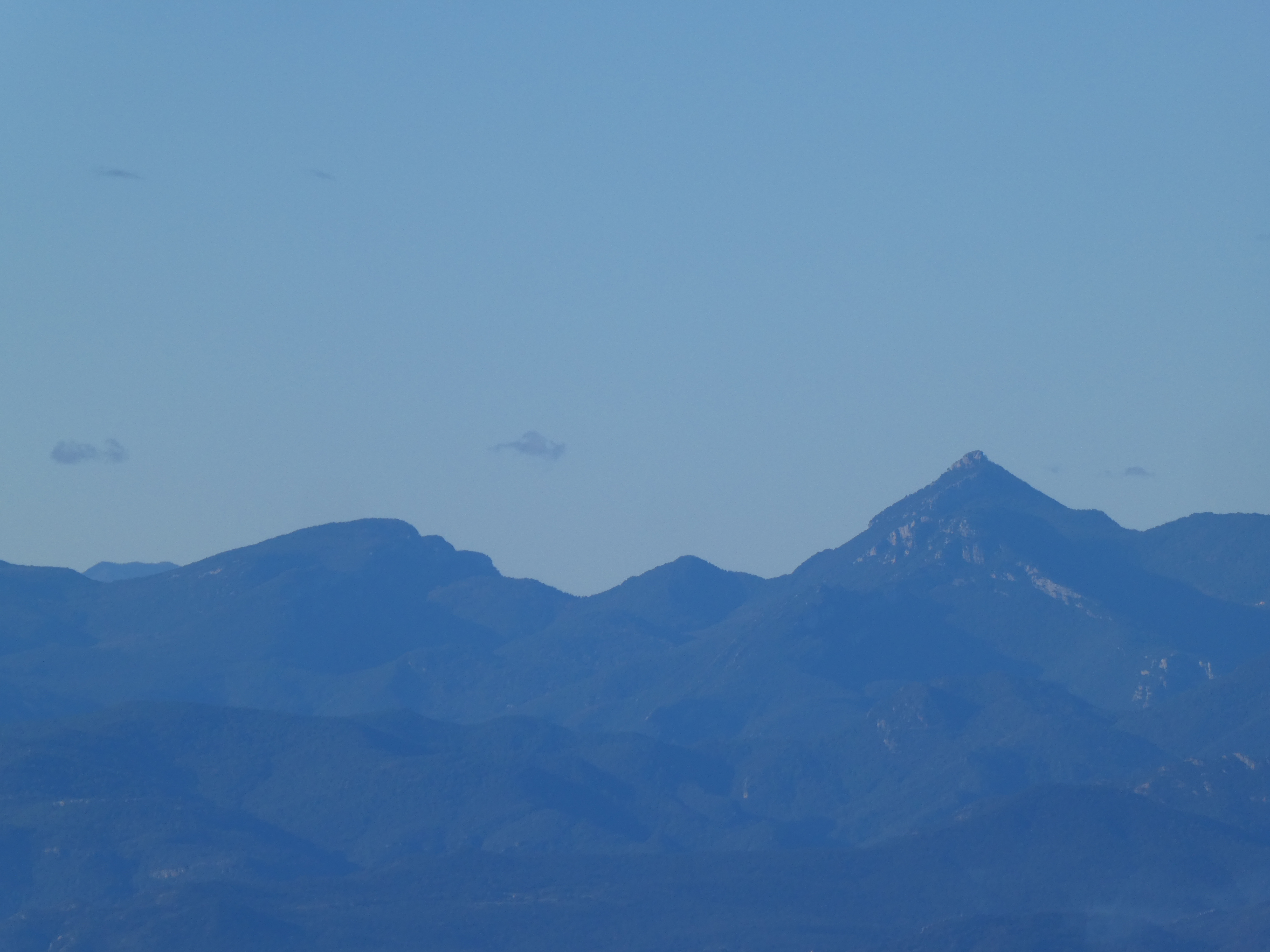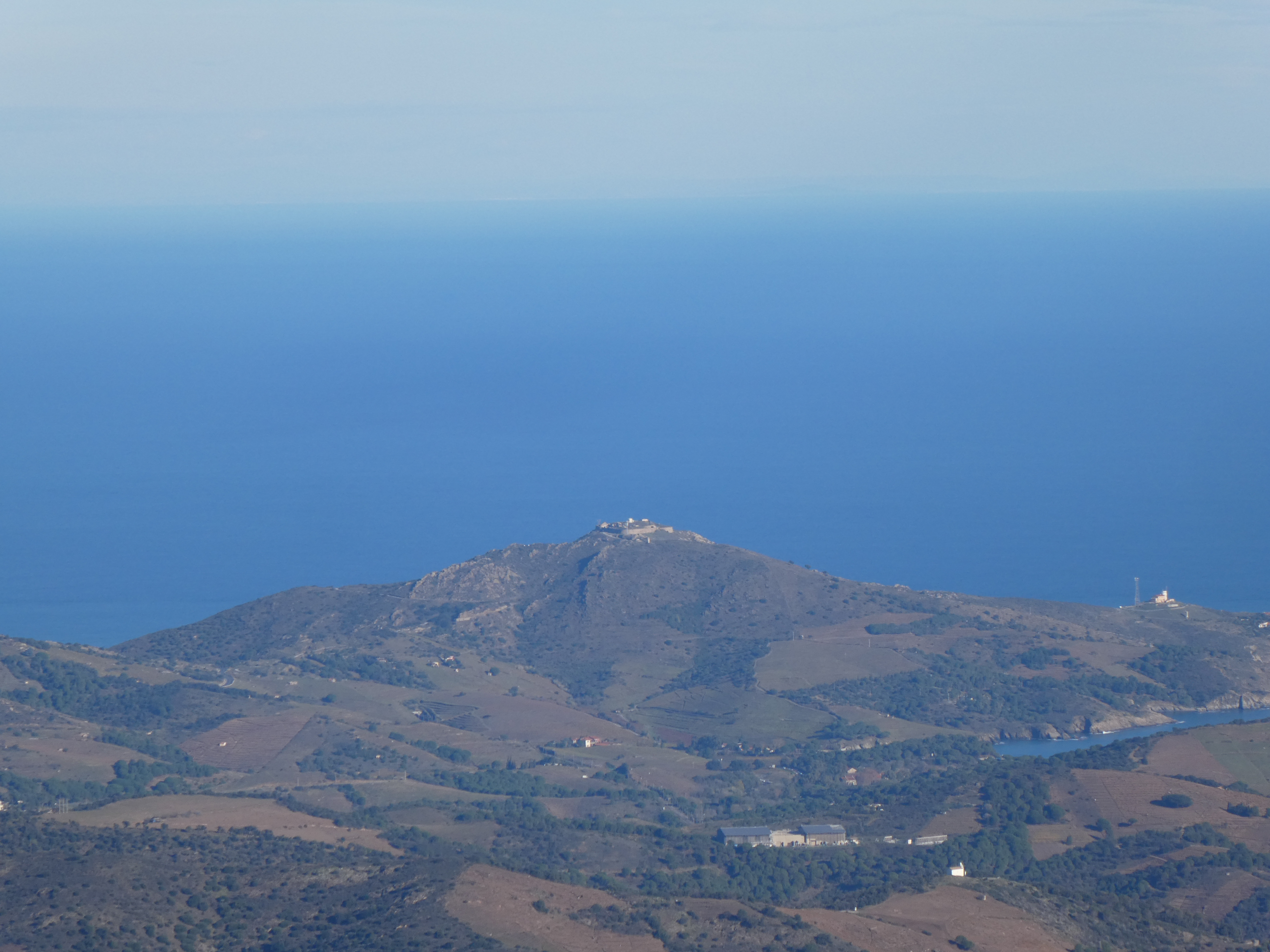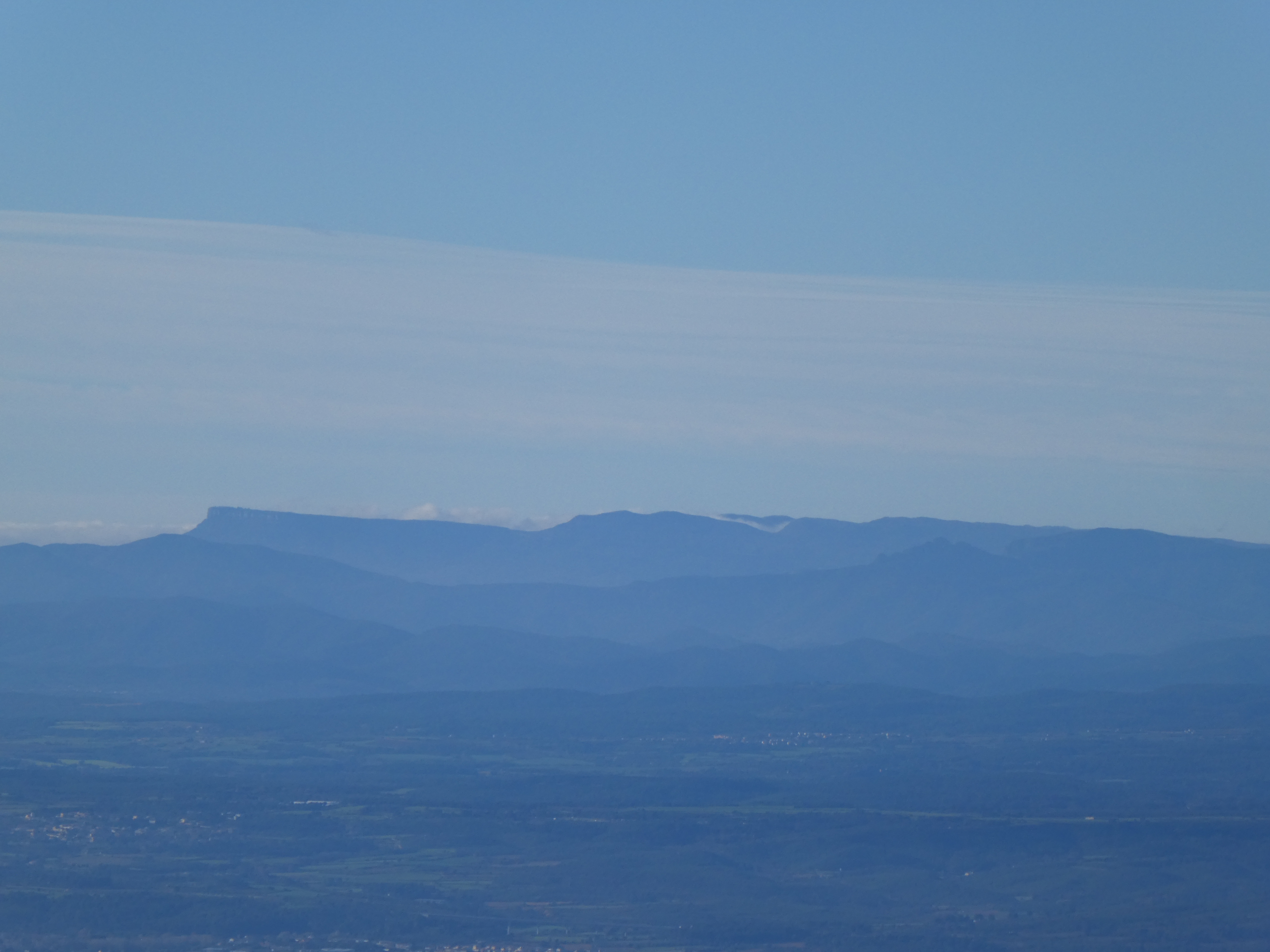 Zoom au loin sur le Puig d'Arques (532 m) situé dans le massif des Gavarres