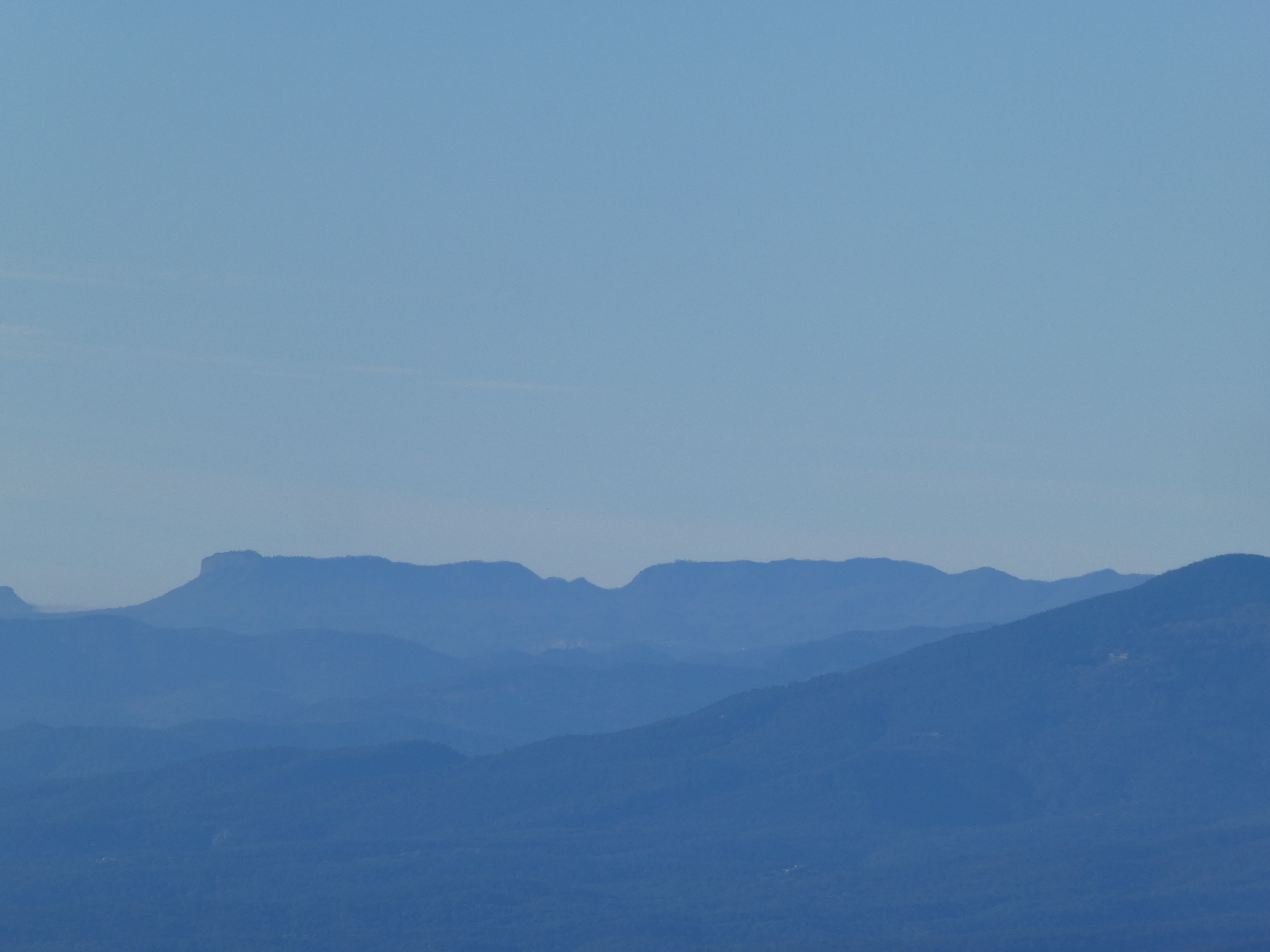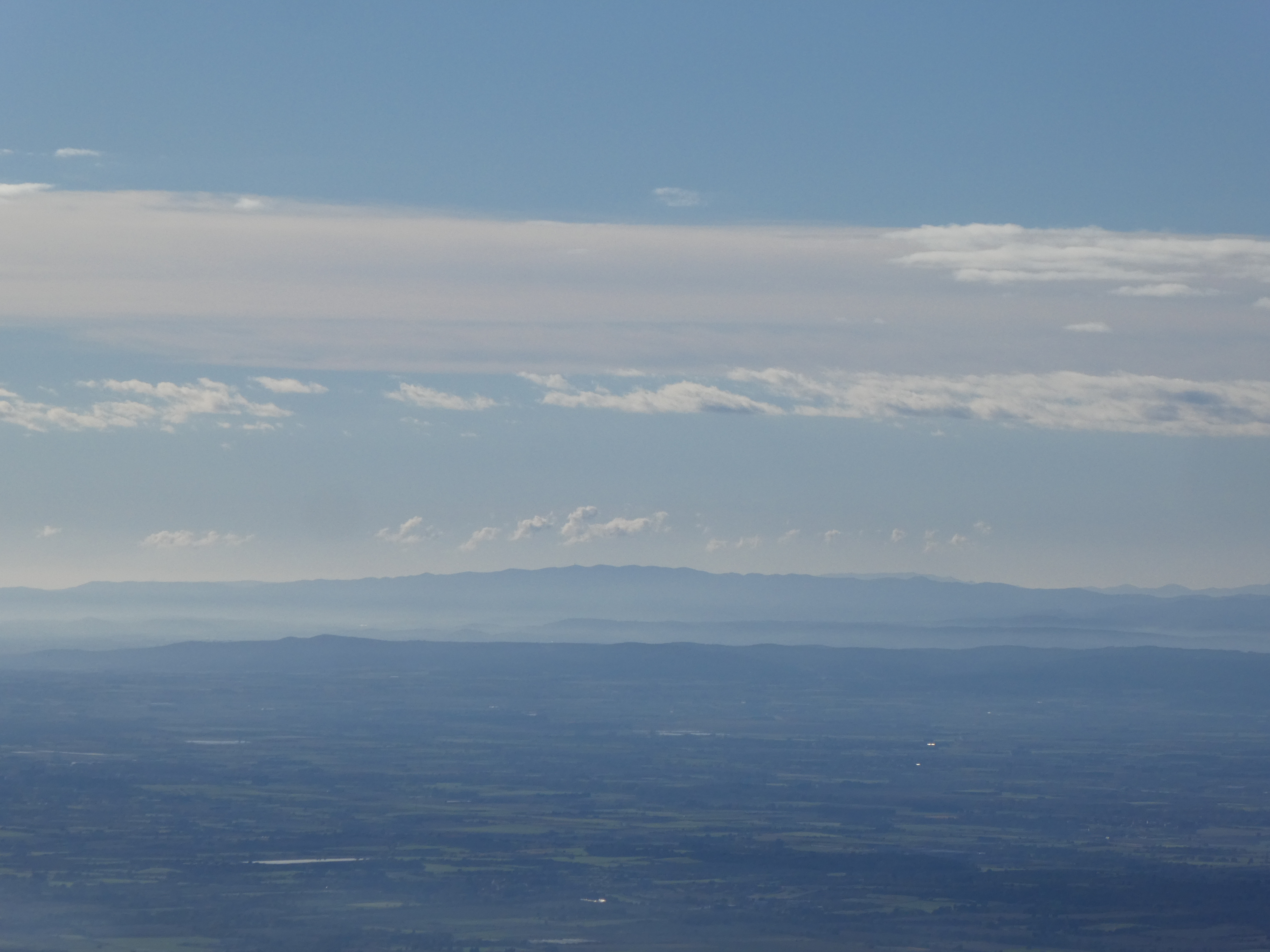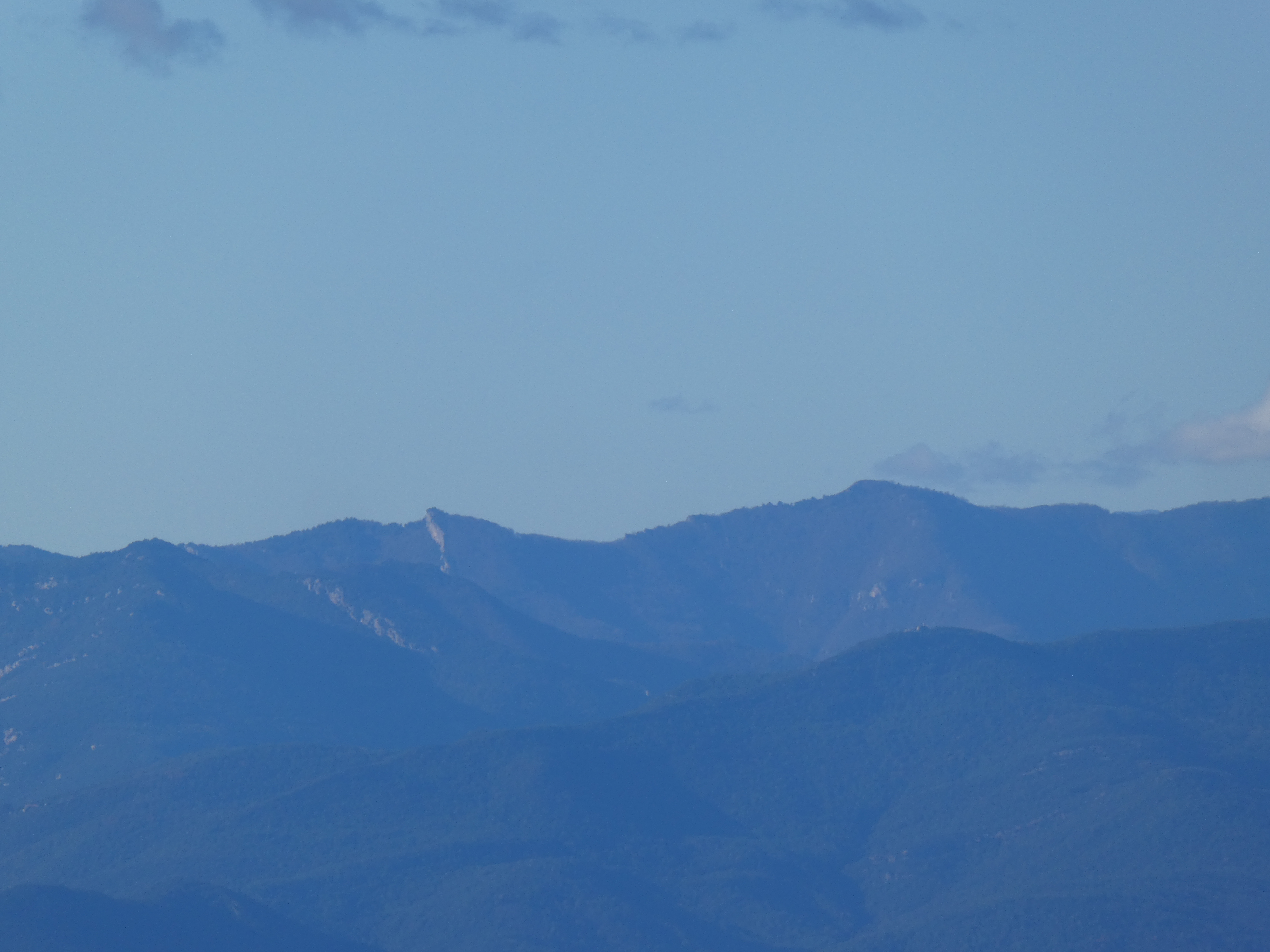 Zoom au loin sur le Puig d'Arques (532 m) situé dans le massif des Gavarres