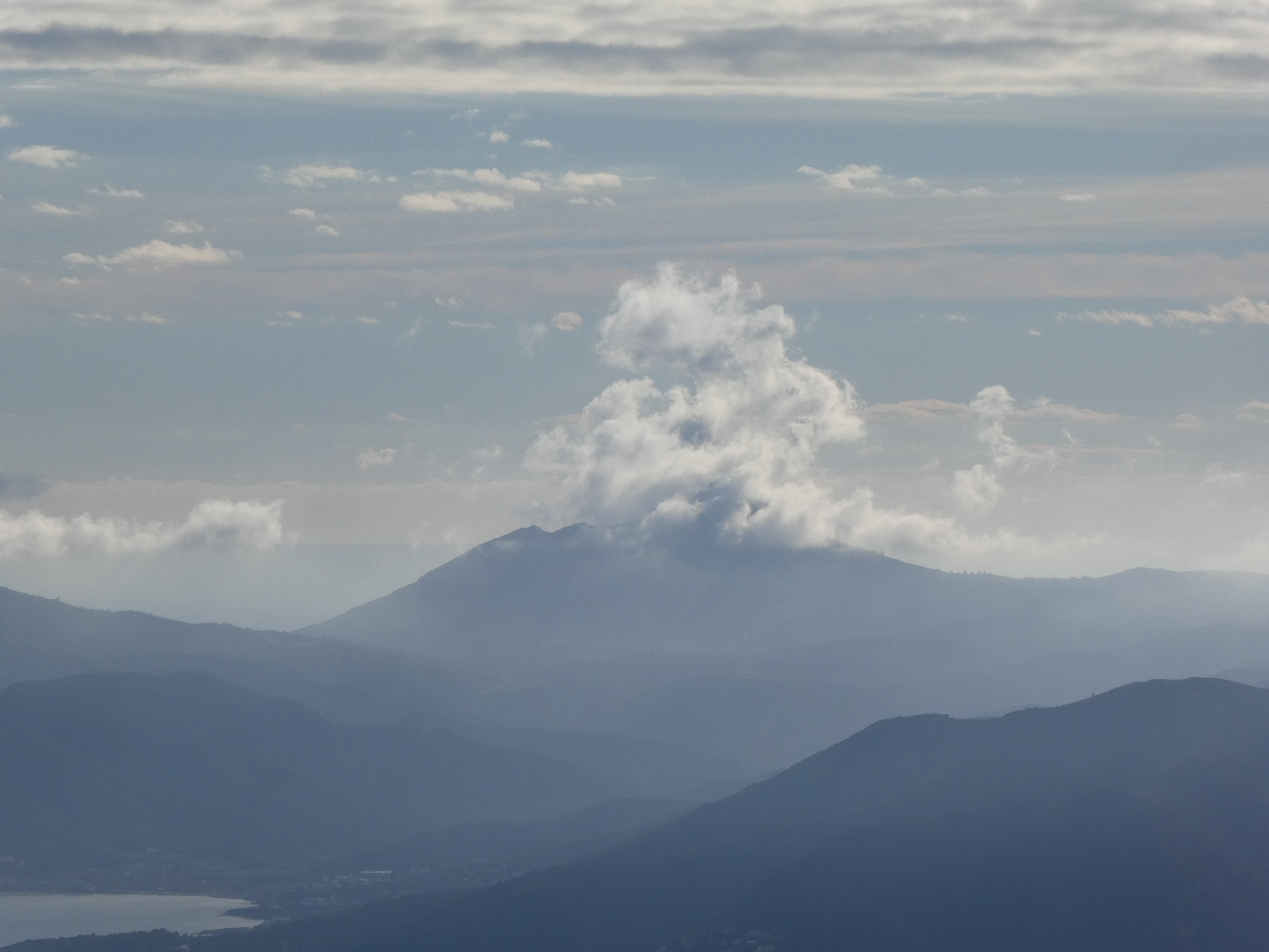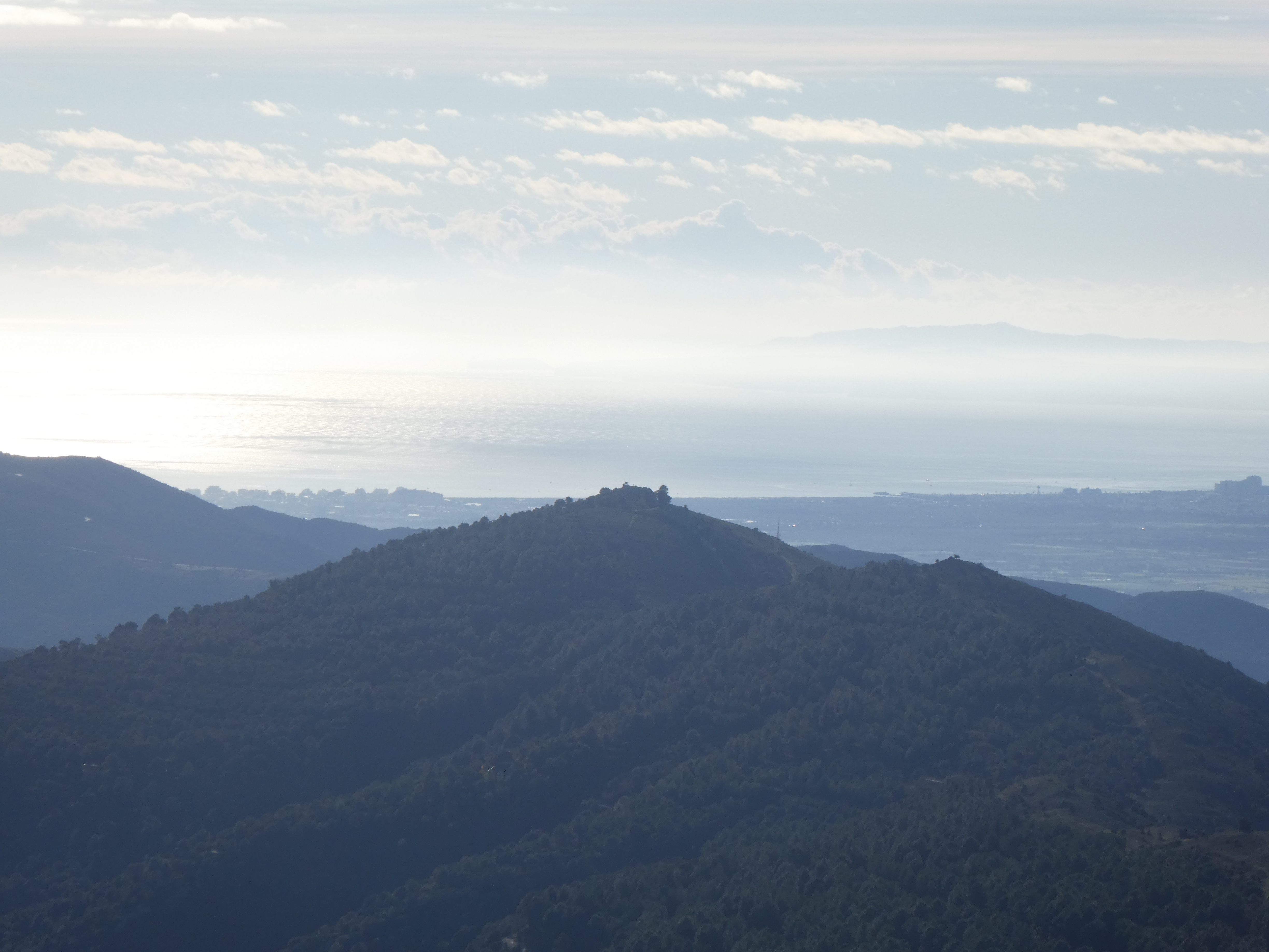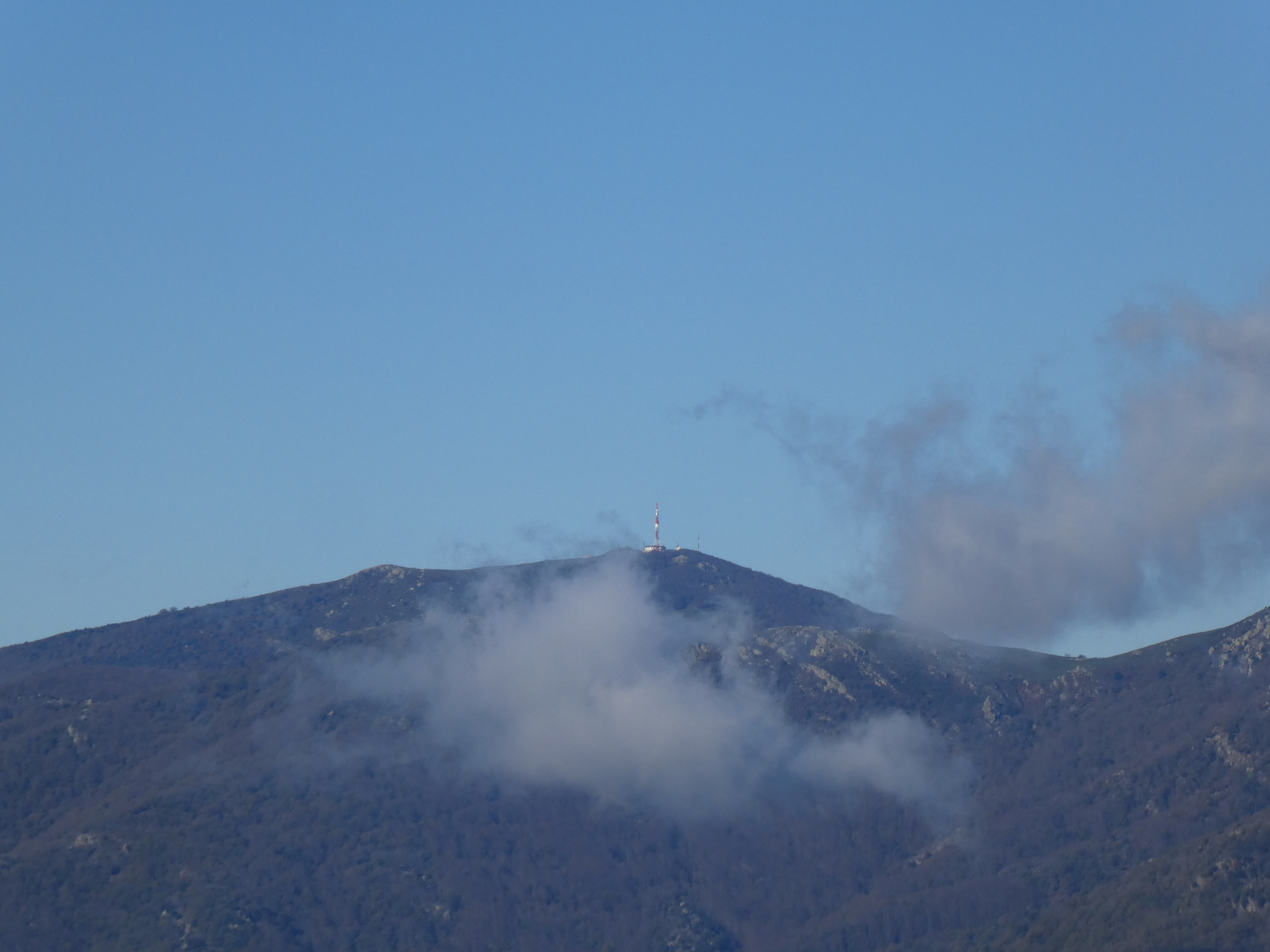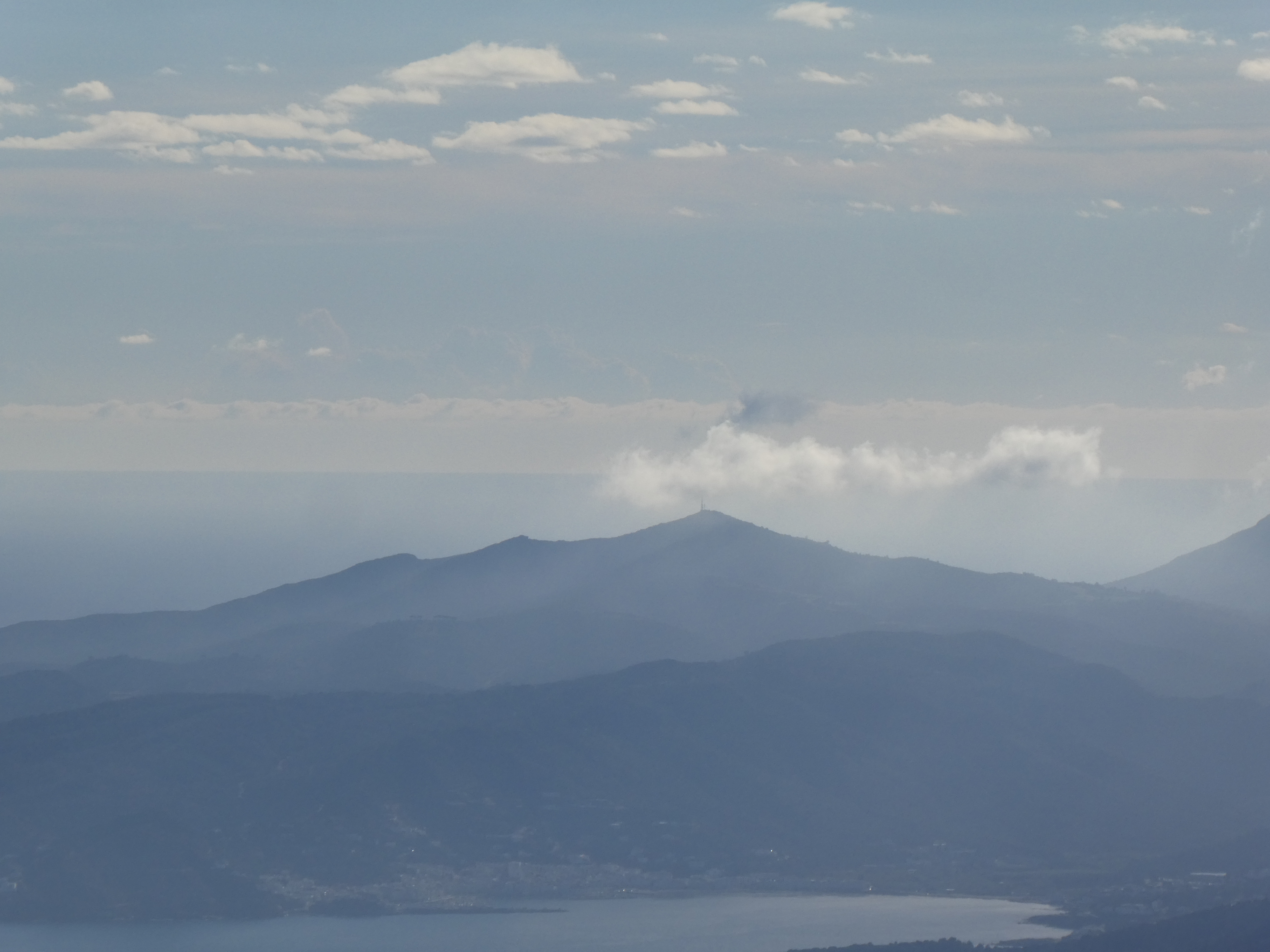 Zoom sur el Pení (608 m) partiellement masqué par les nuages