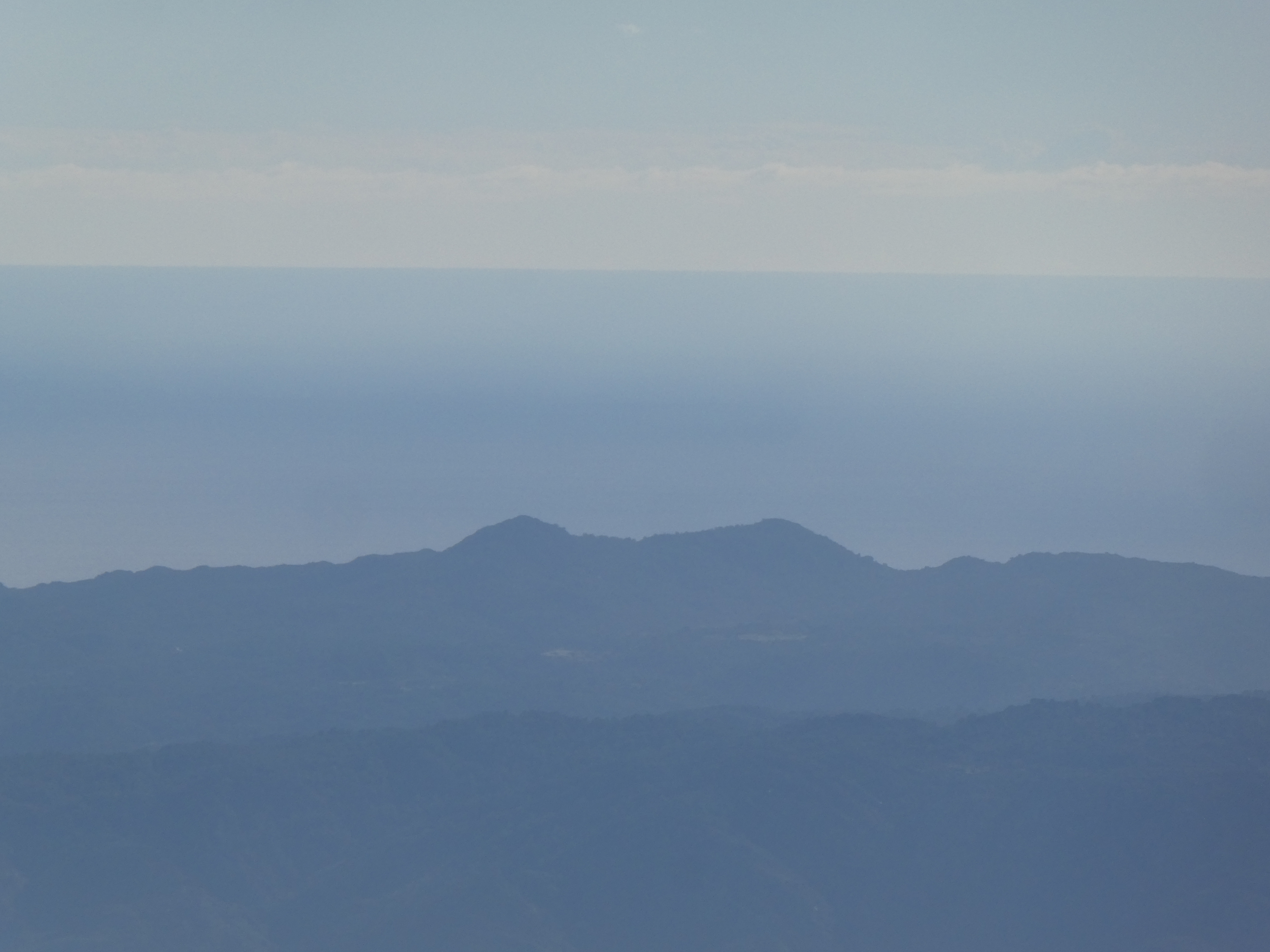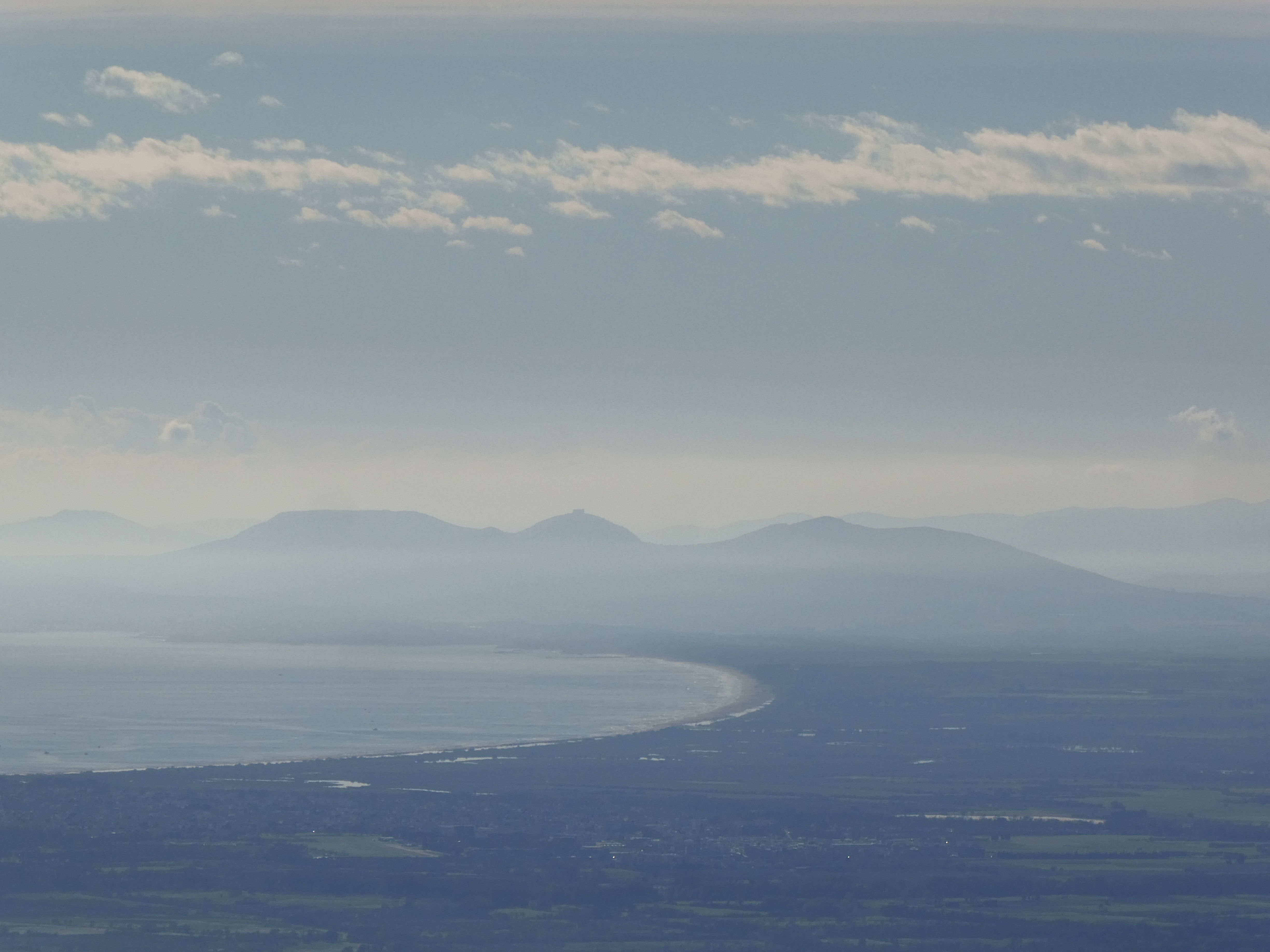 Zoom sur le massif du Montseny avec le Turó de Morou (1312 m) à gauche, les Agudes (1706 m) au centre-gauche et Matagalls (1697 m) à droite