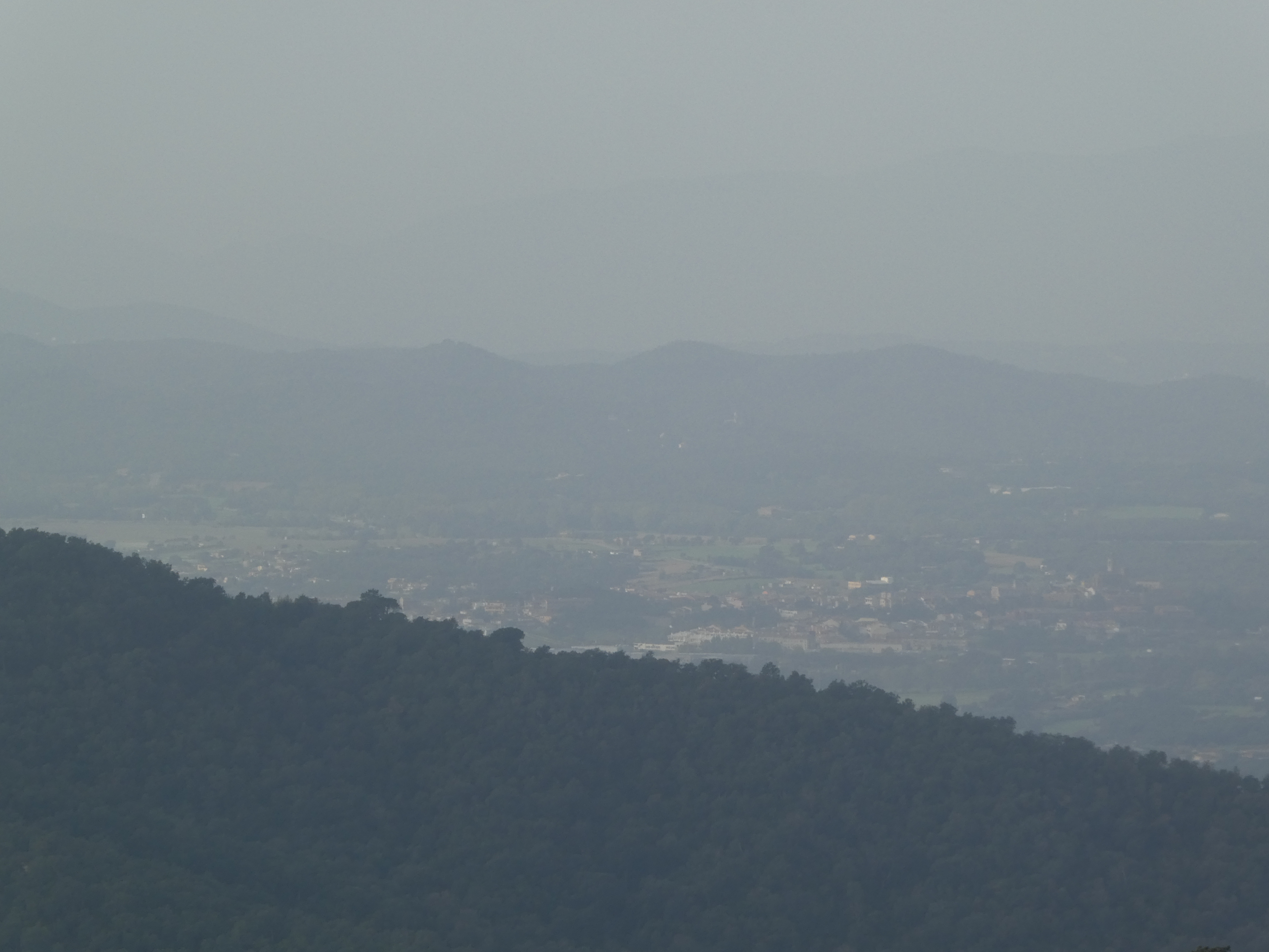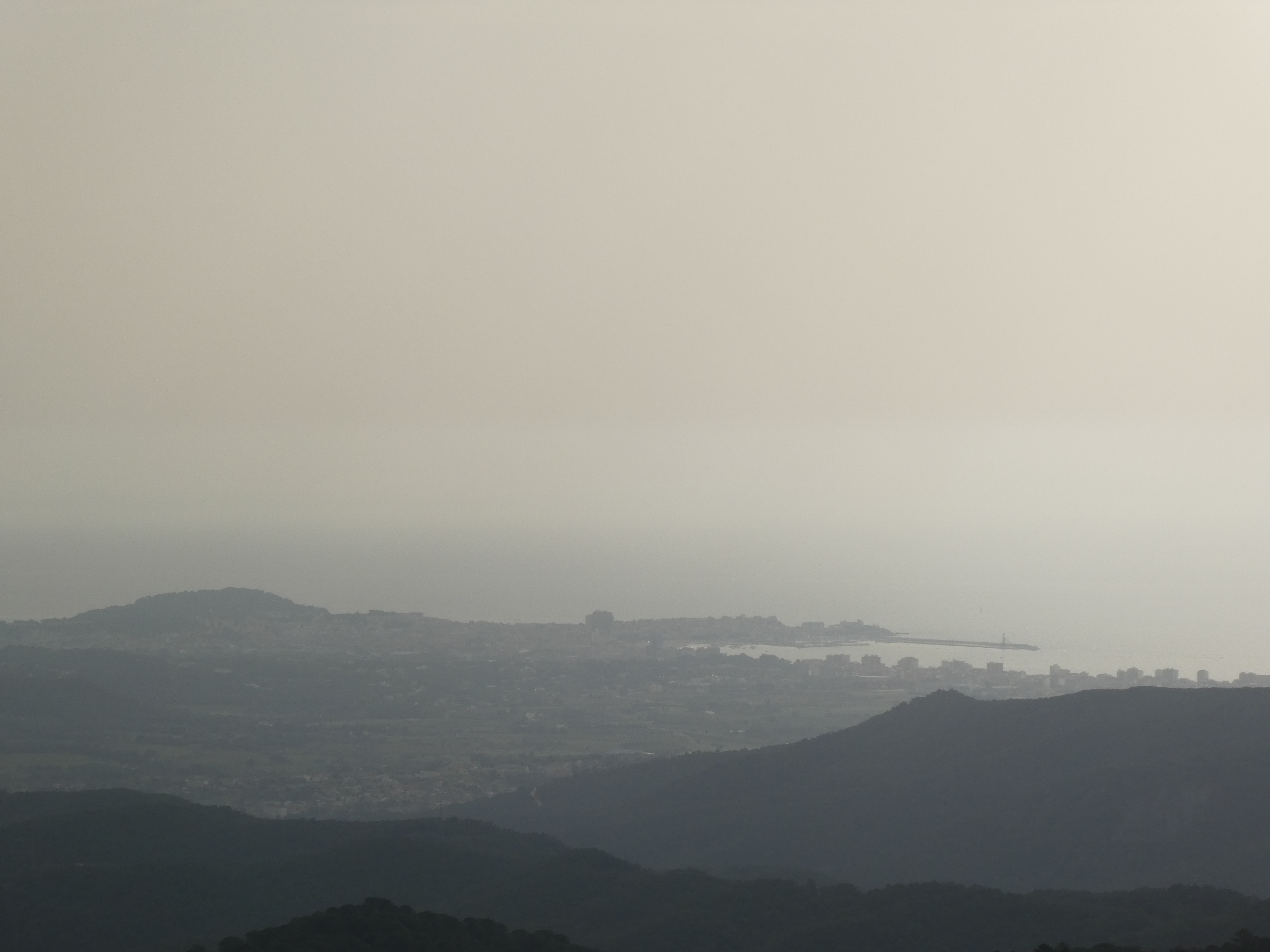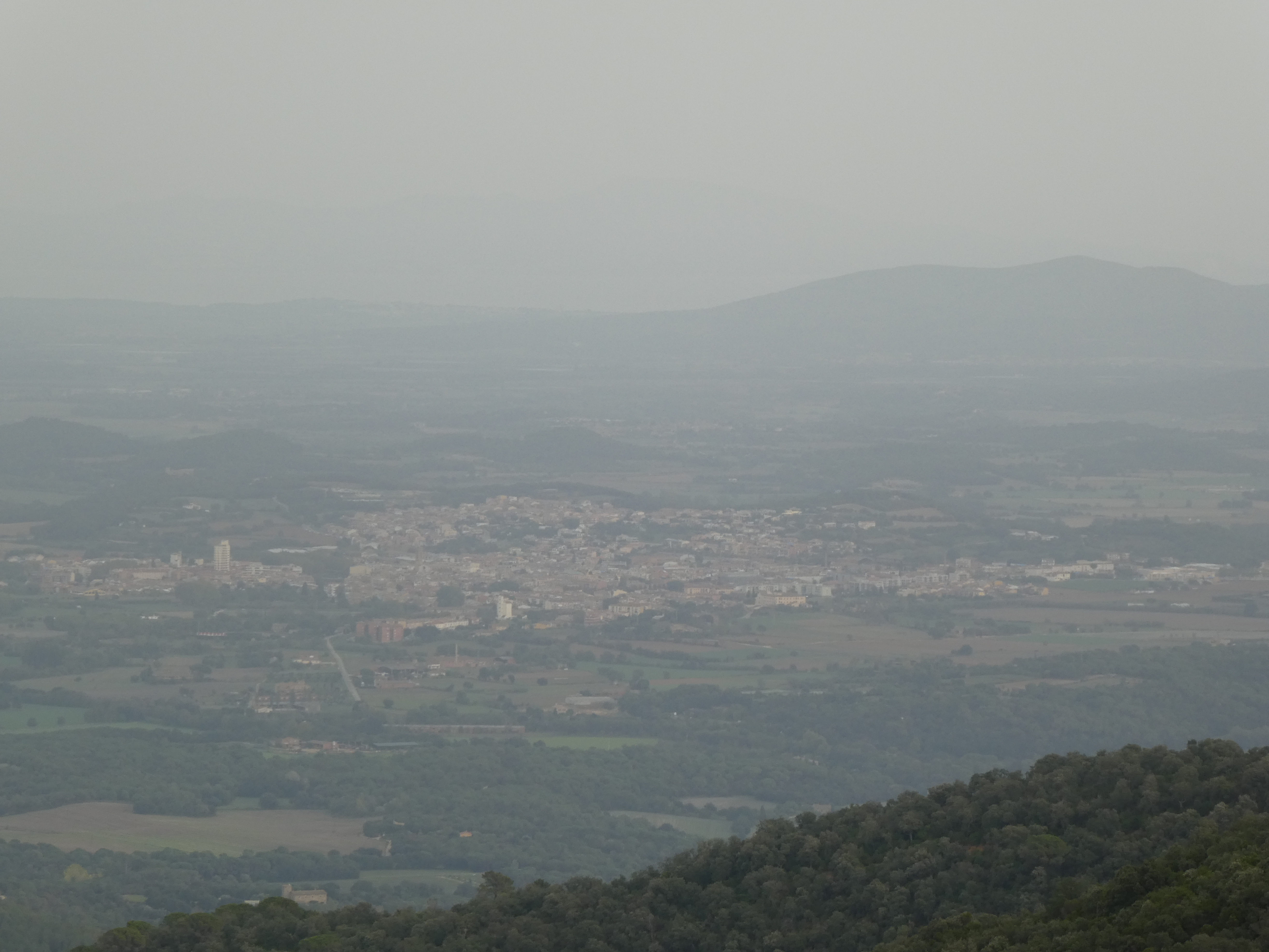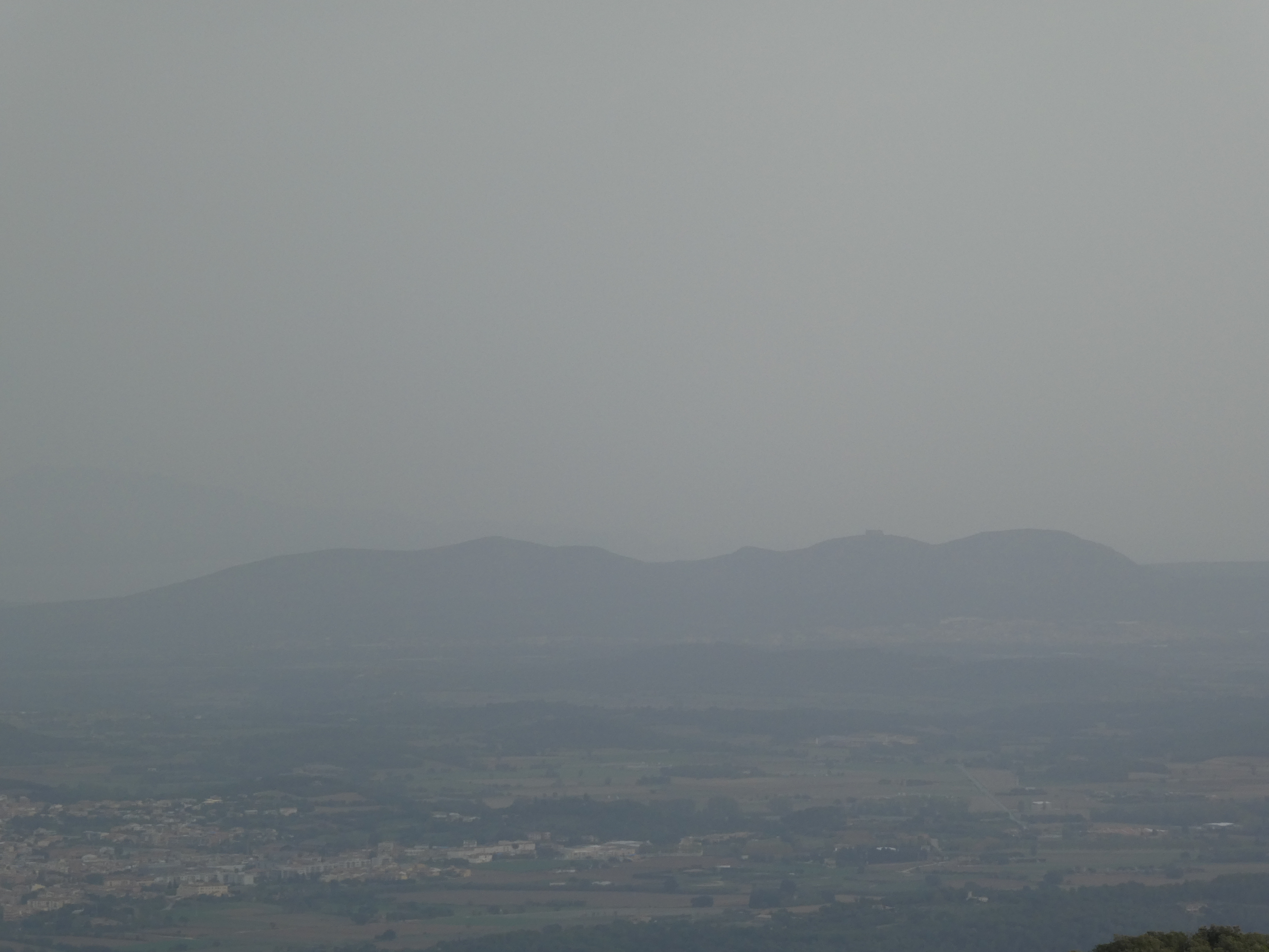 Vue en direction de la plaine de Montgrí ... et la présence de sable dans l'atmosphère apporté par le flux de Sud depuis plusieurs jours !
