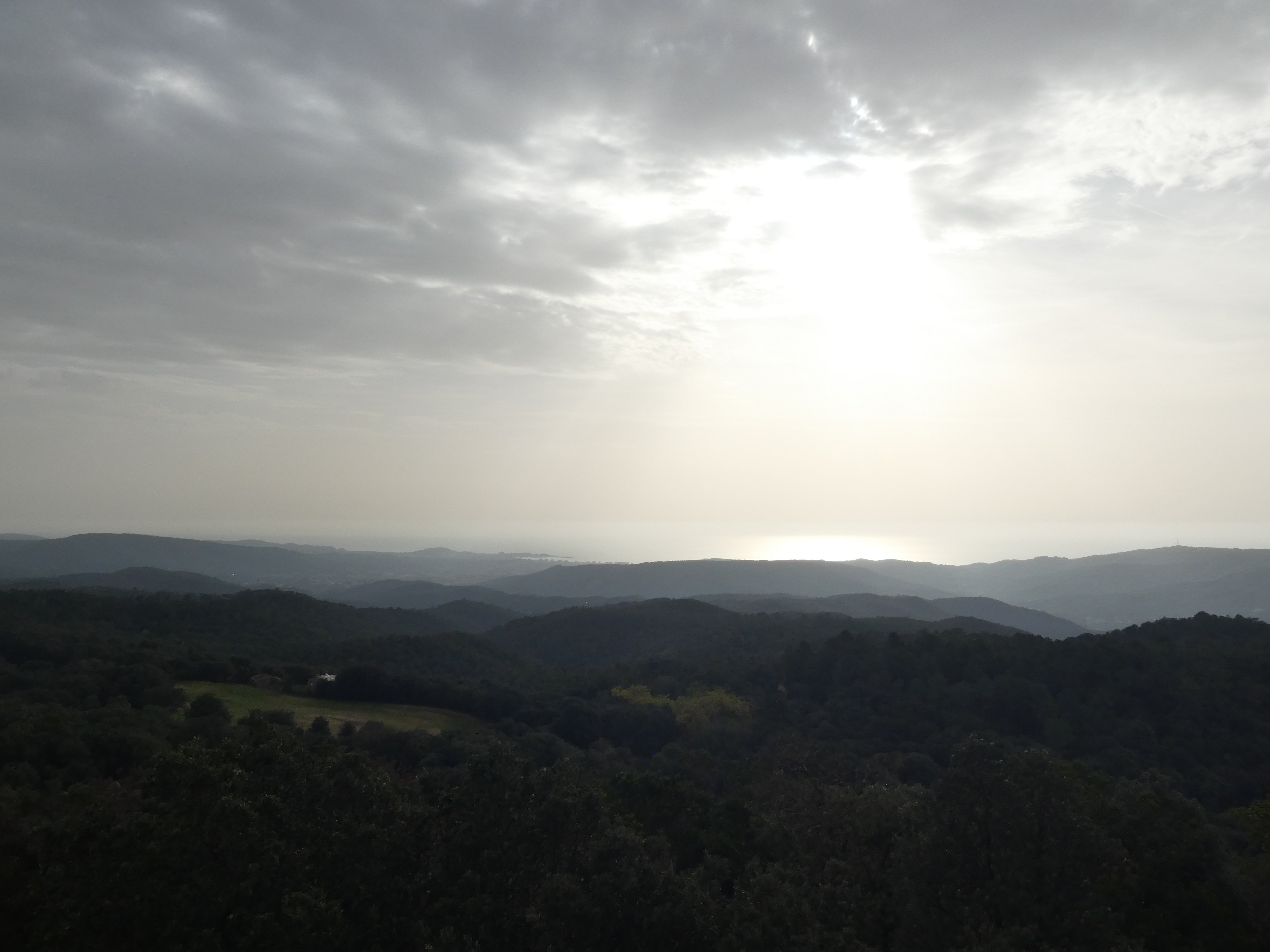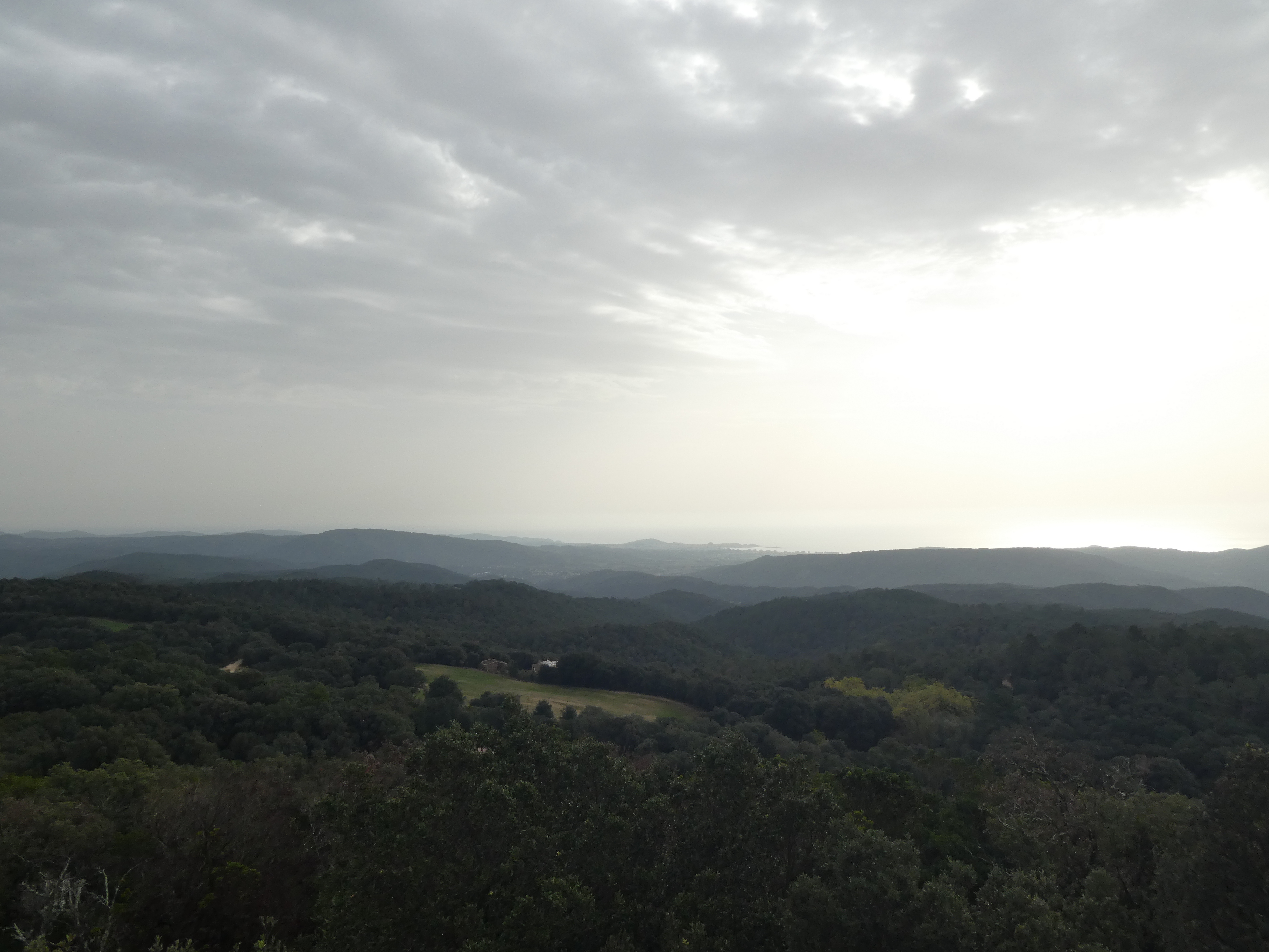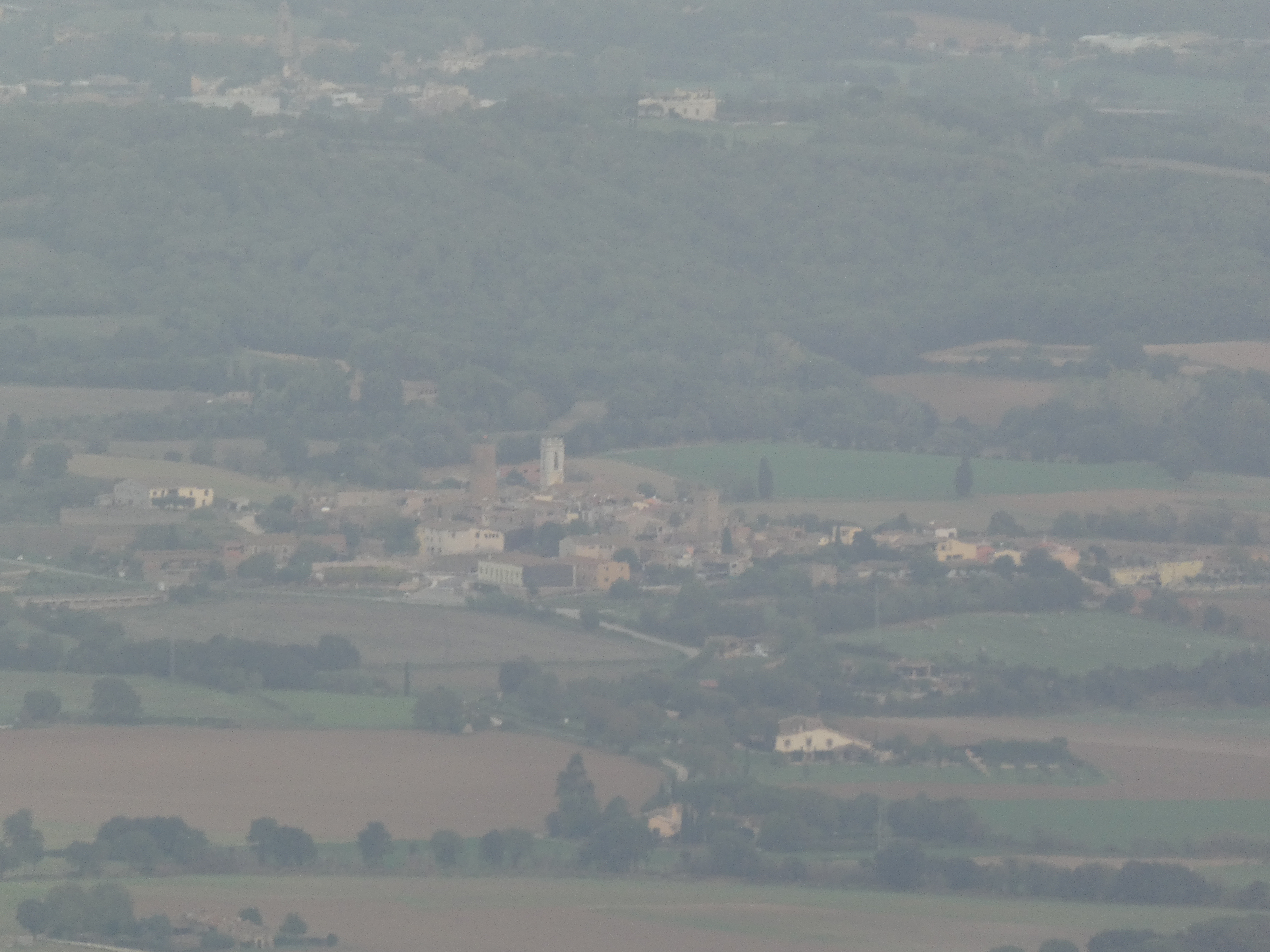 Vue en direction de la plaine de Montgrí ... et la présence de sable dans l'atmosphère apporté par le flux de Sud depuis plusieurs jours !