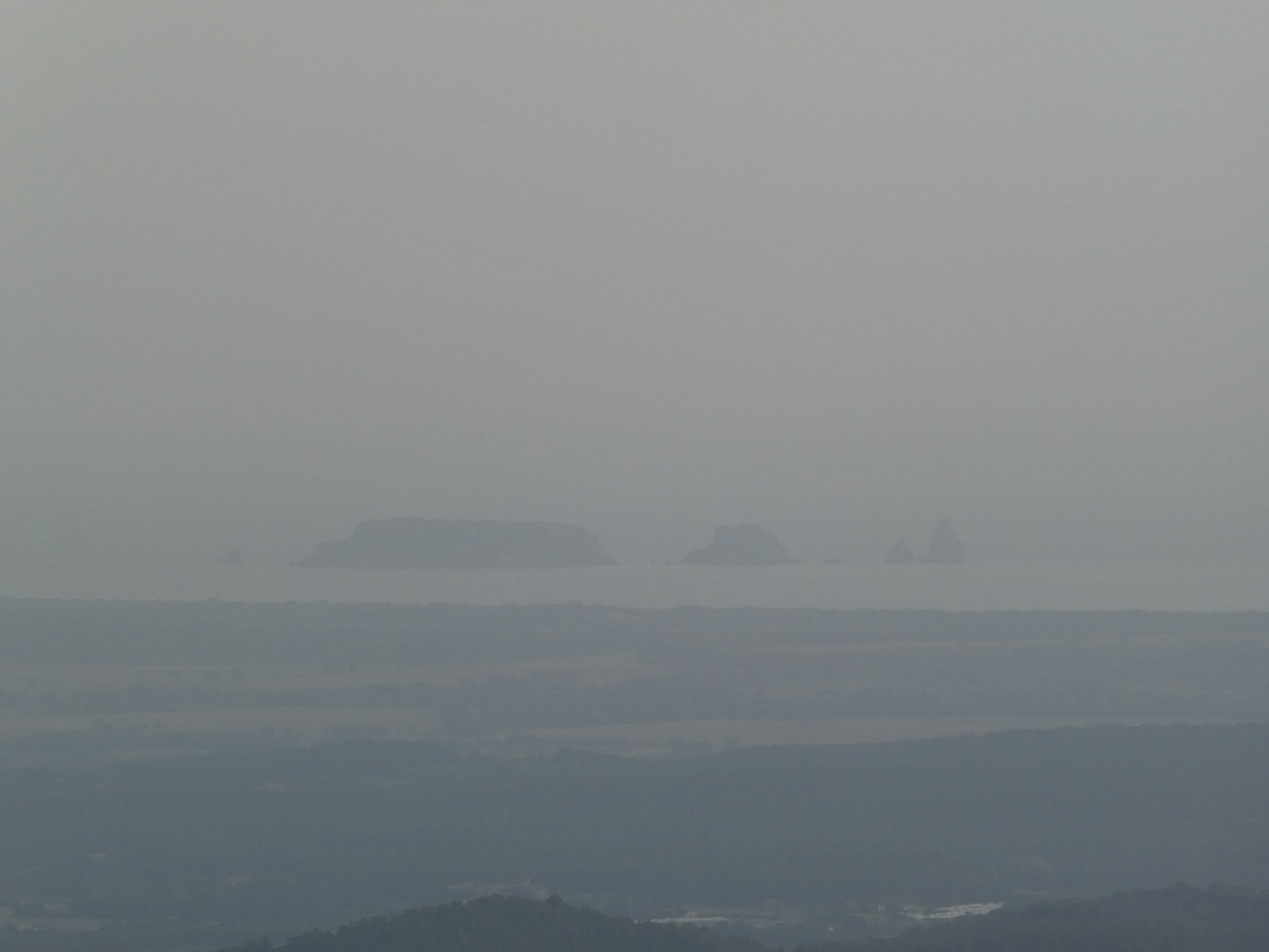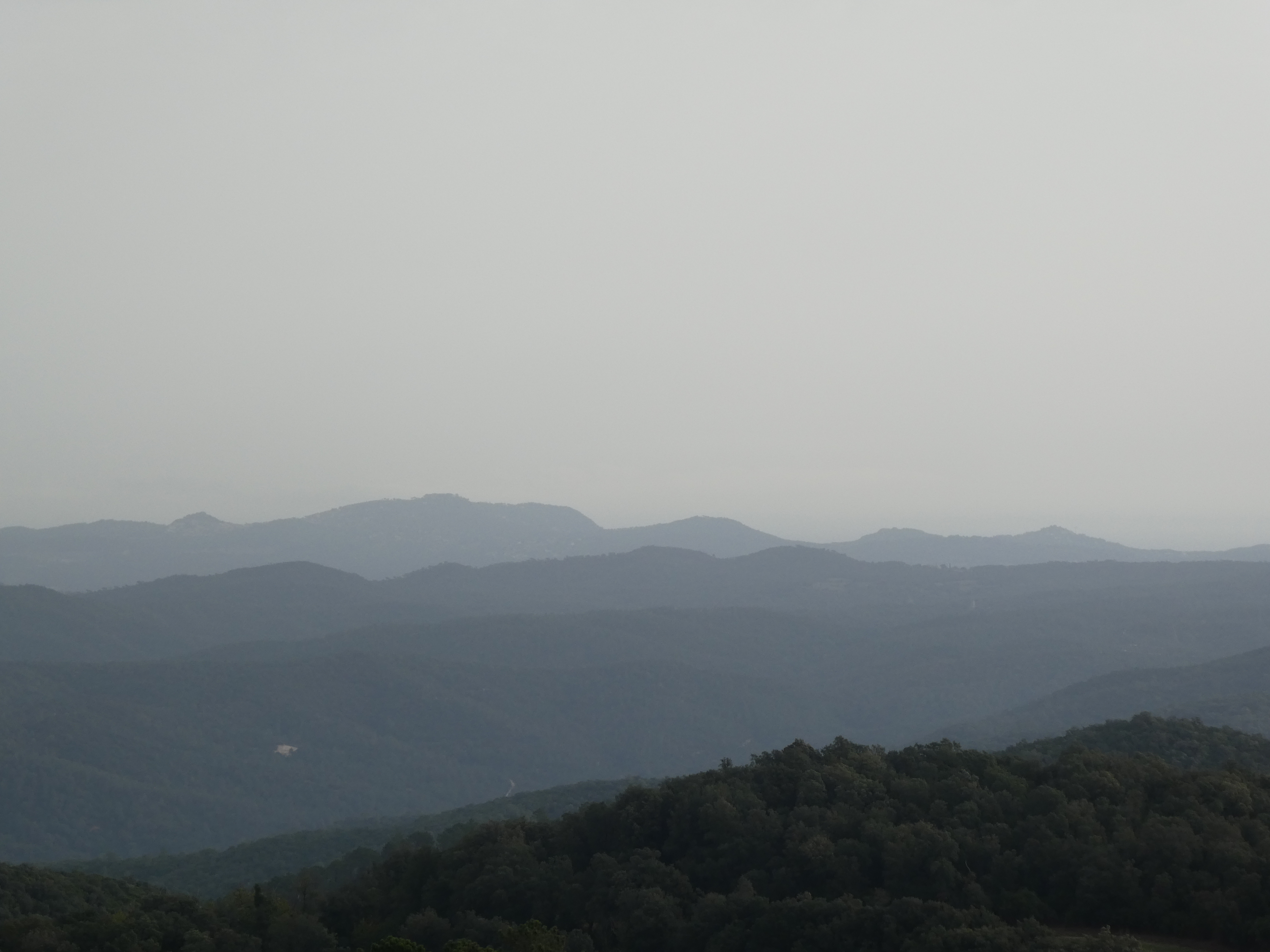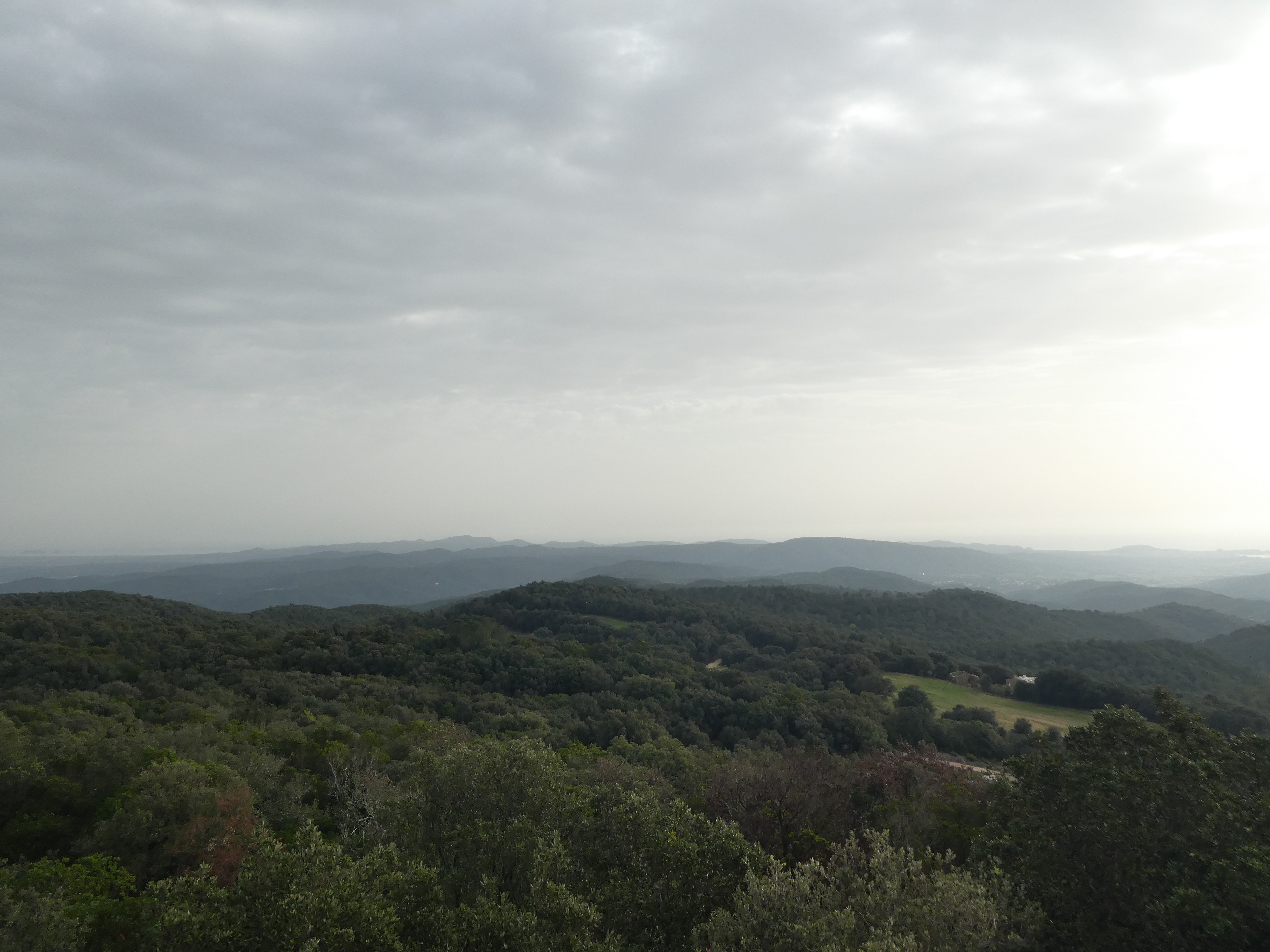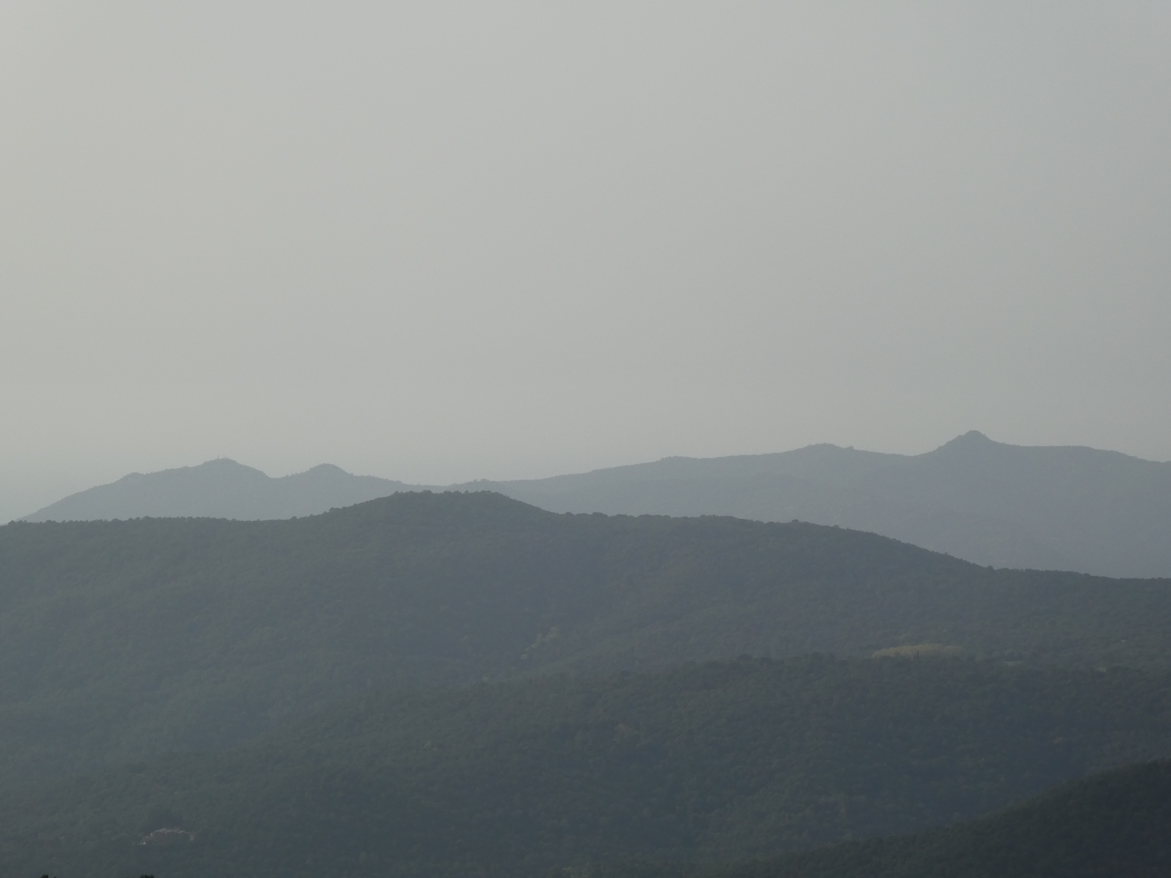 Vue en direction de la plaine de Montgrí ... et la présence de sable dans l'atmosphère apporté par le flux de Sud depuis plusieurs jours !