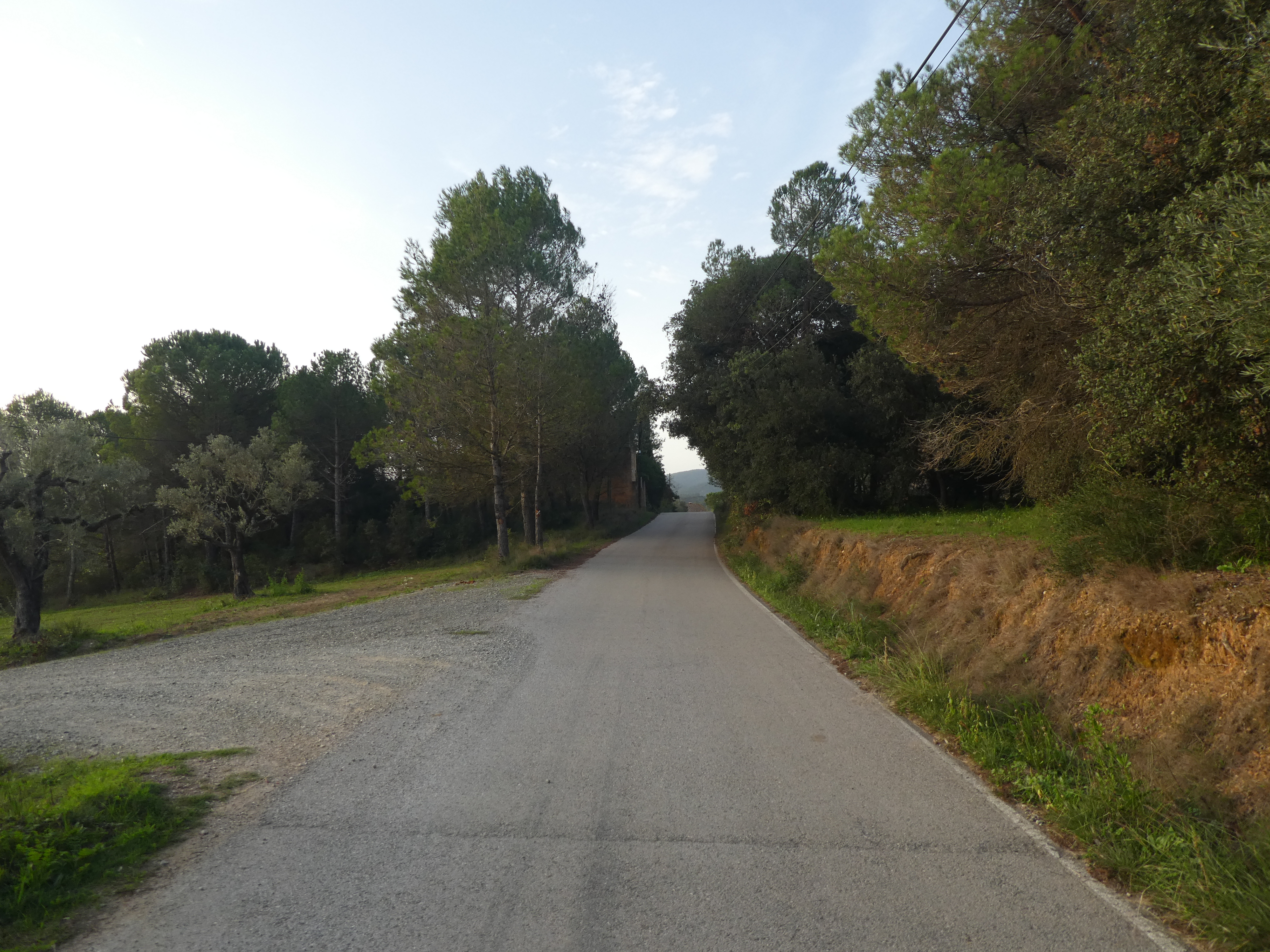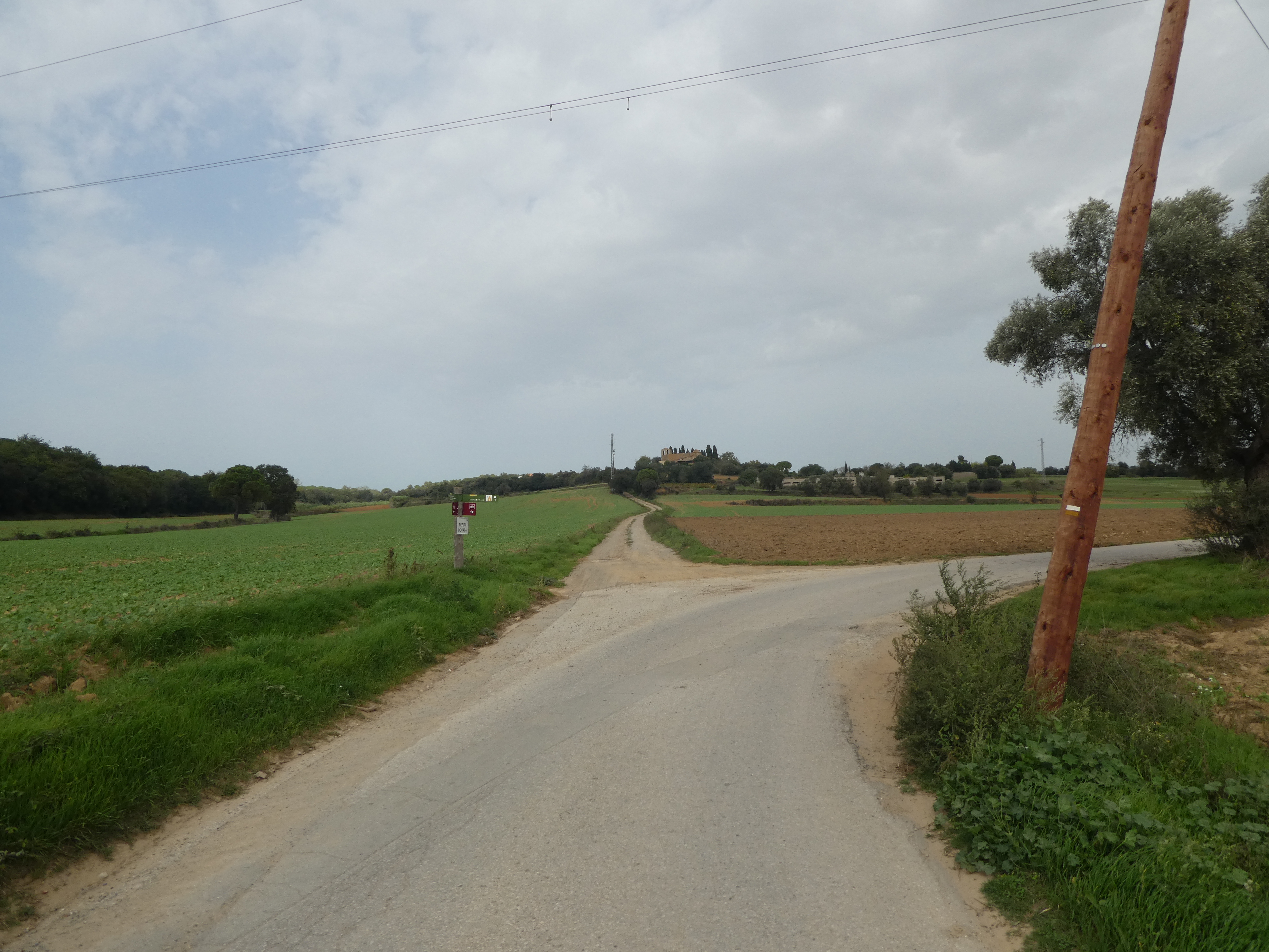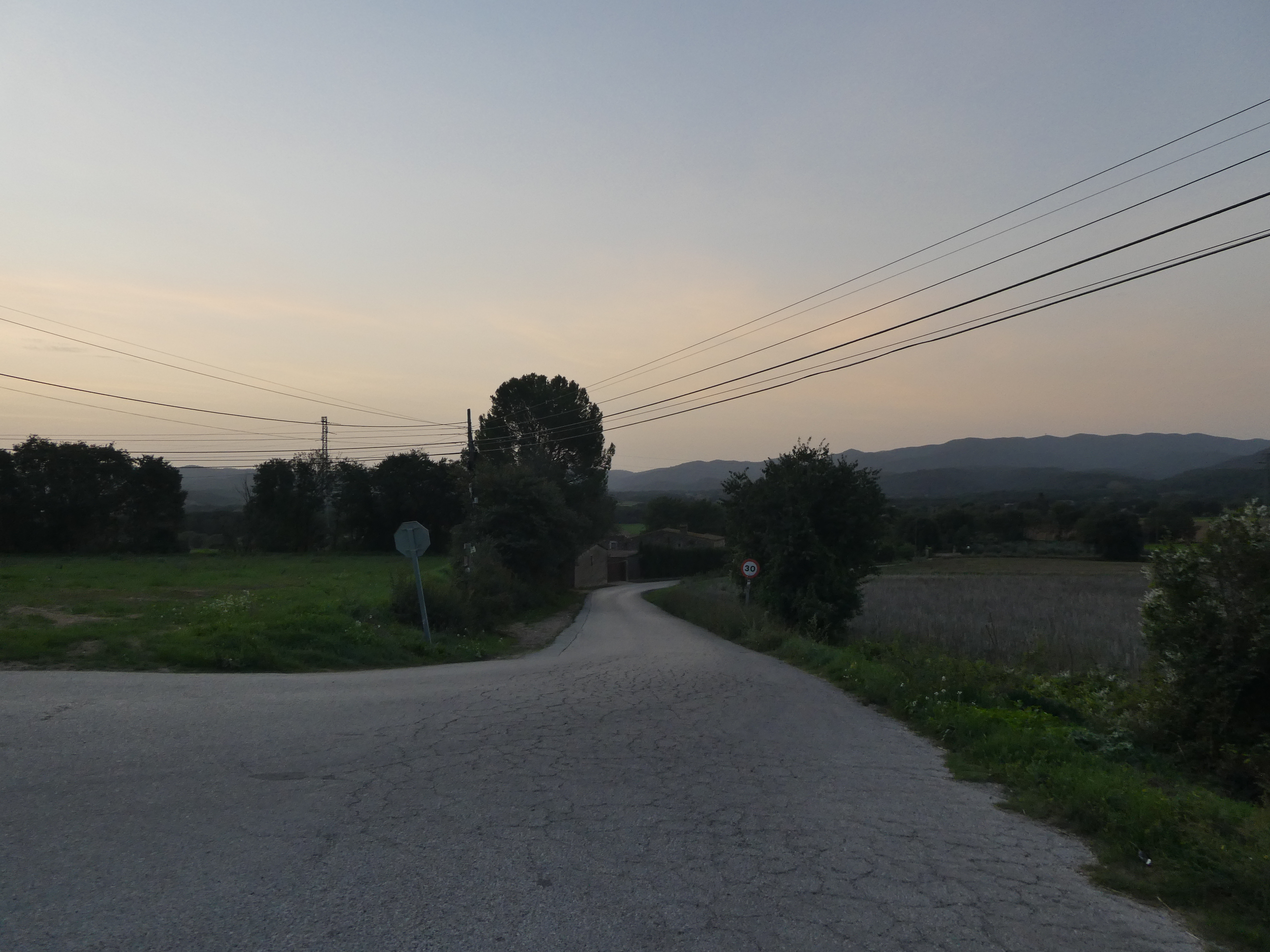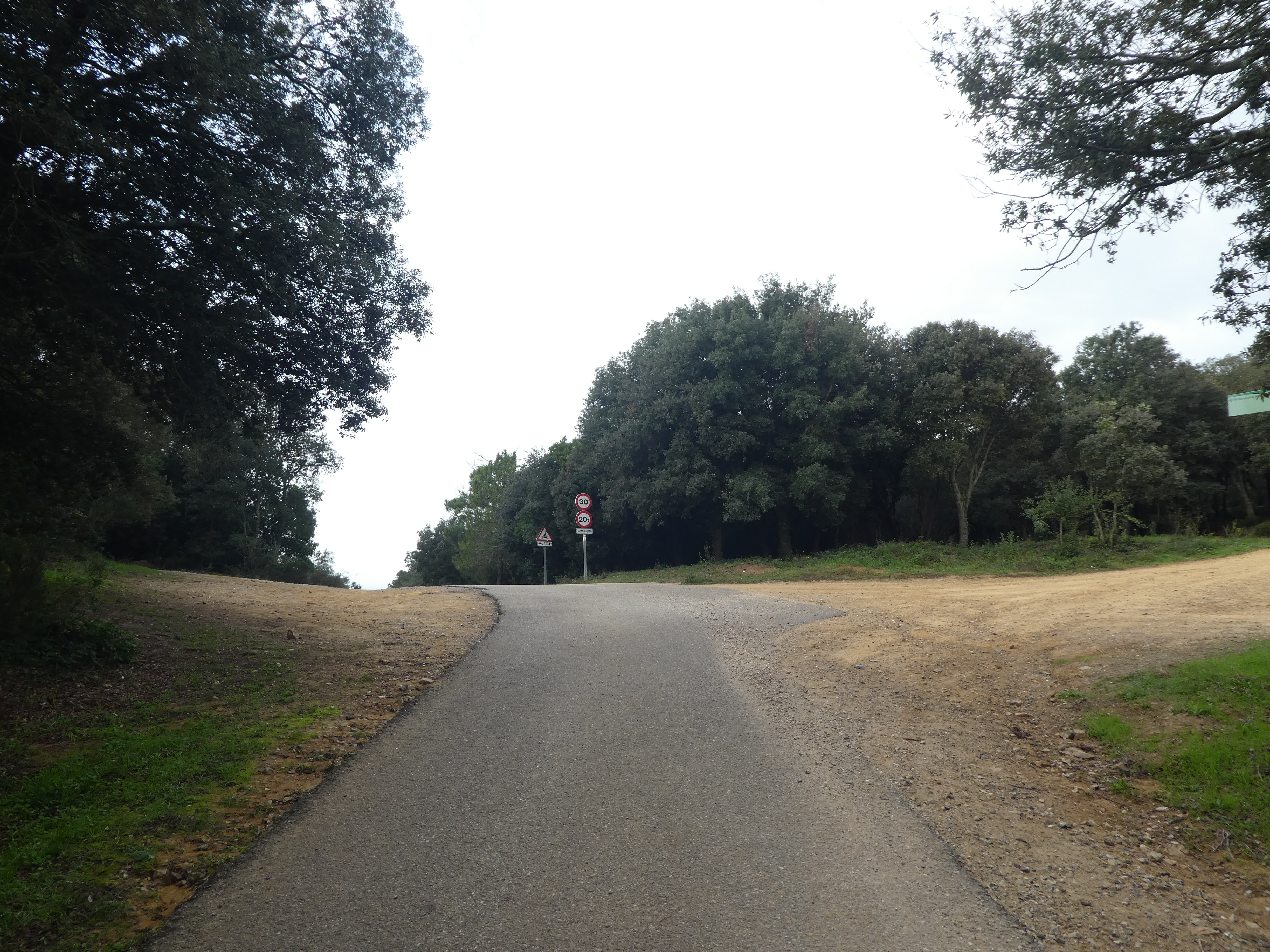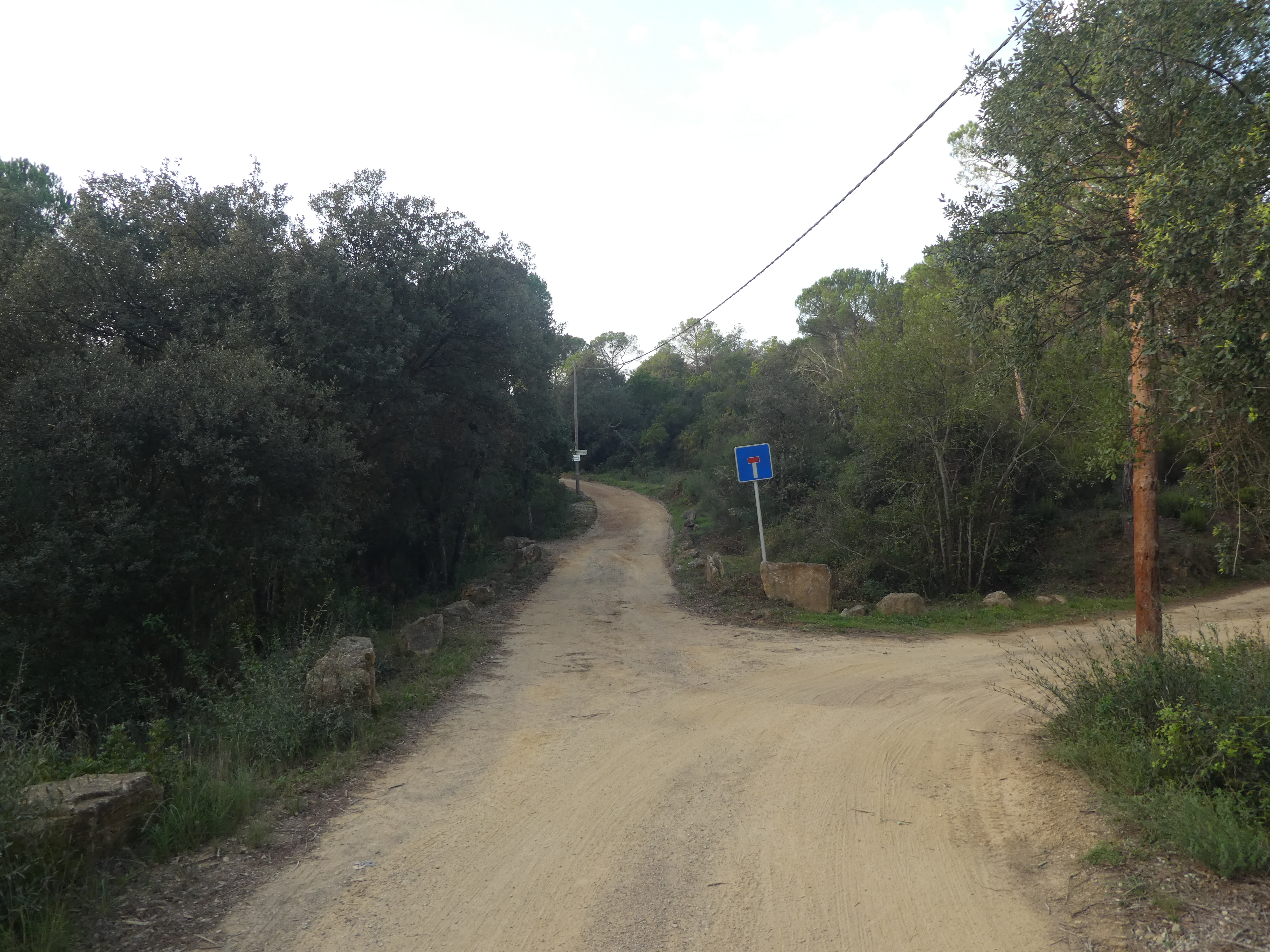 A cette intersection marquée par la présence d'un panneau directionnel (100 mètres après le précédent croisement), suivre la route montant tout droit direction Sant Miquel de Cruïlles, aucun balisage dorénavant
