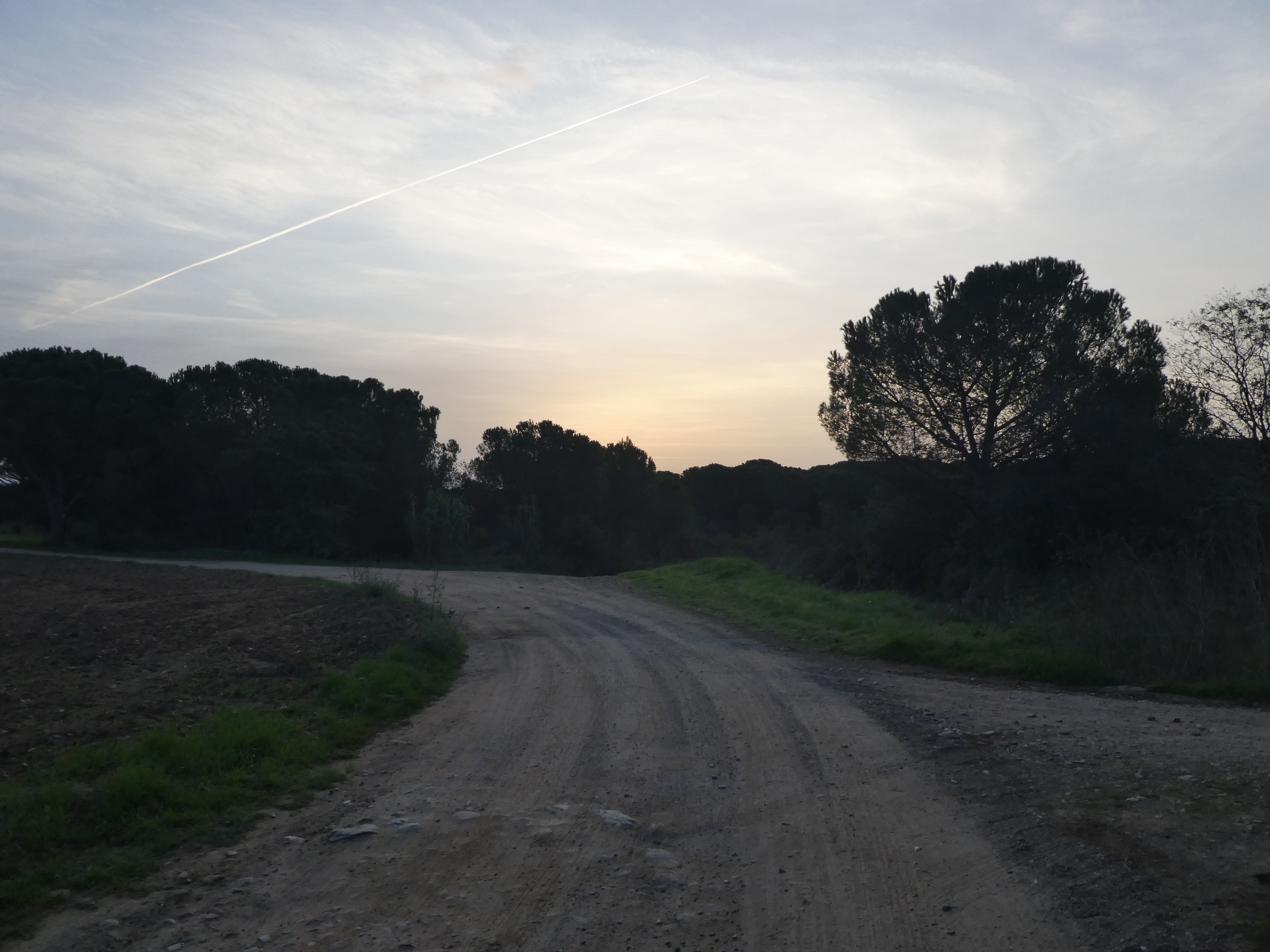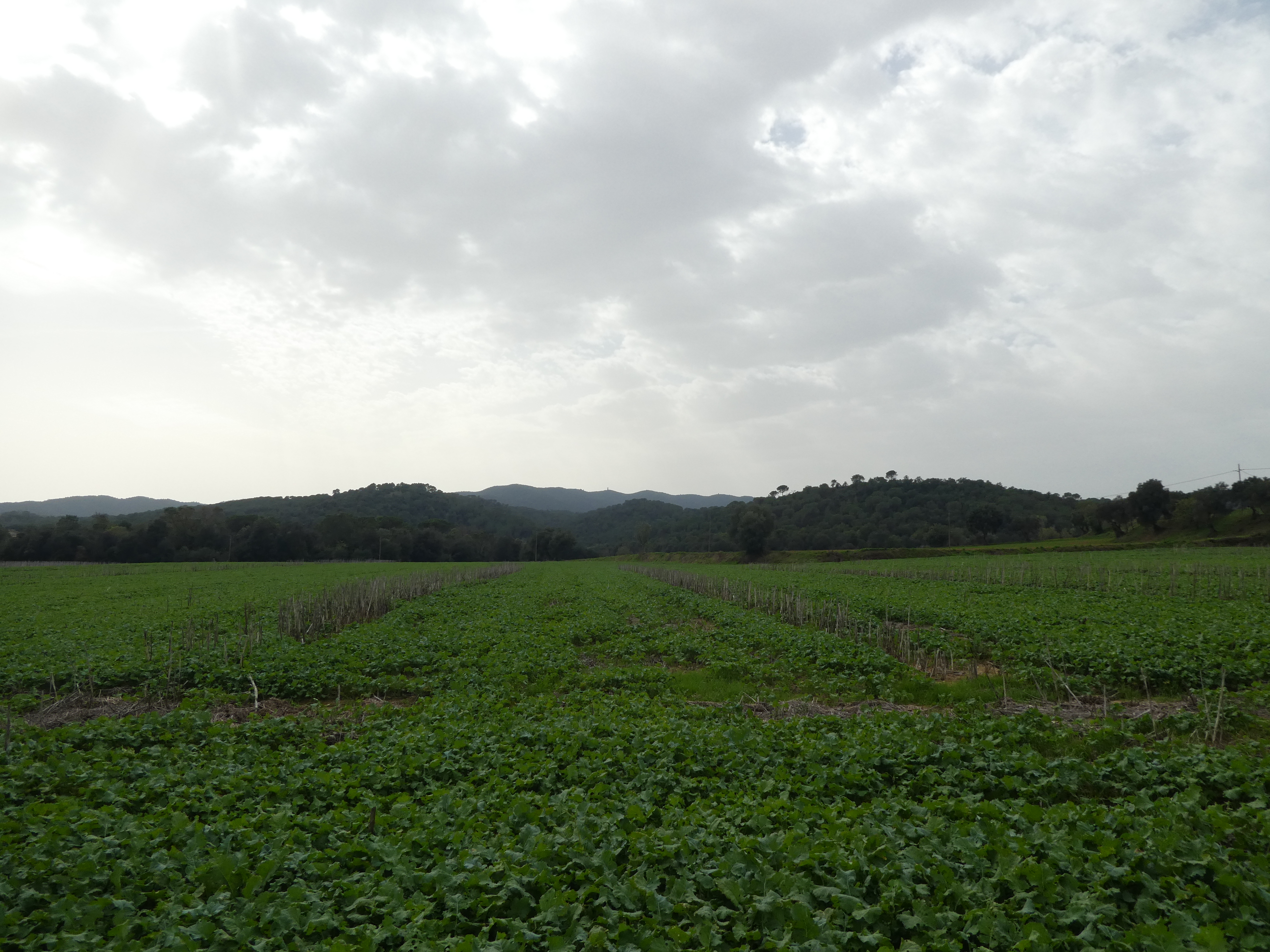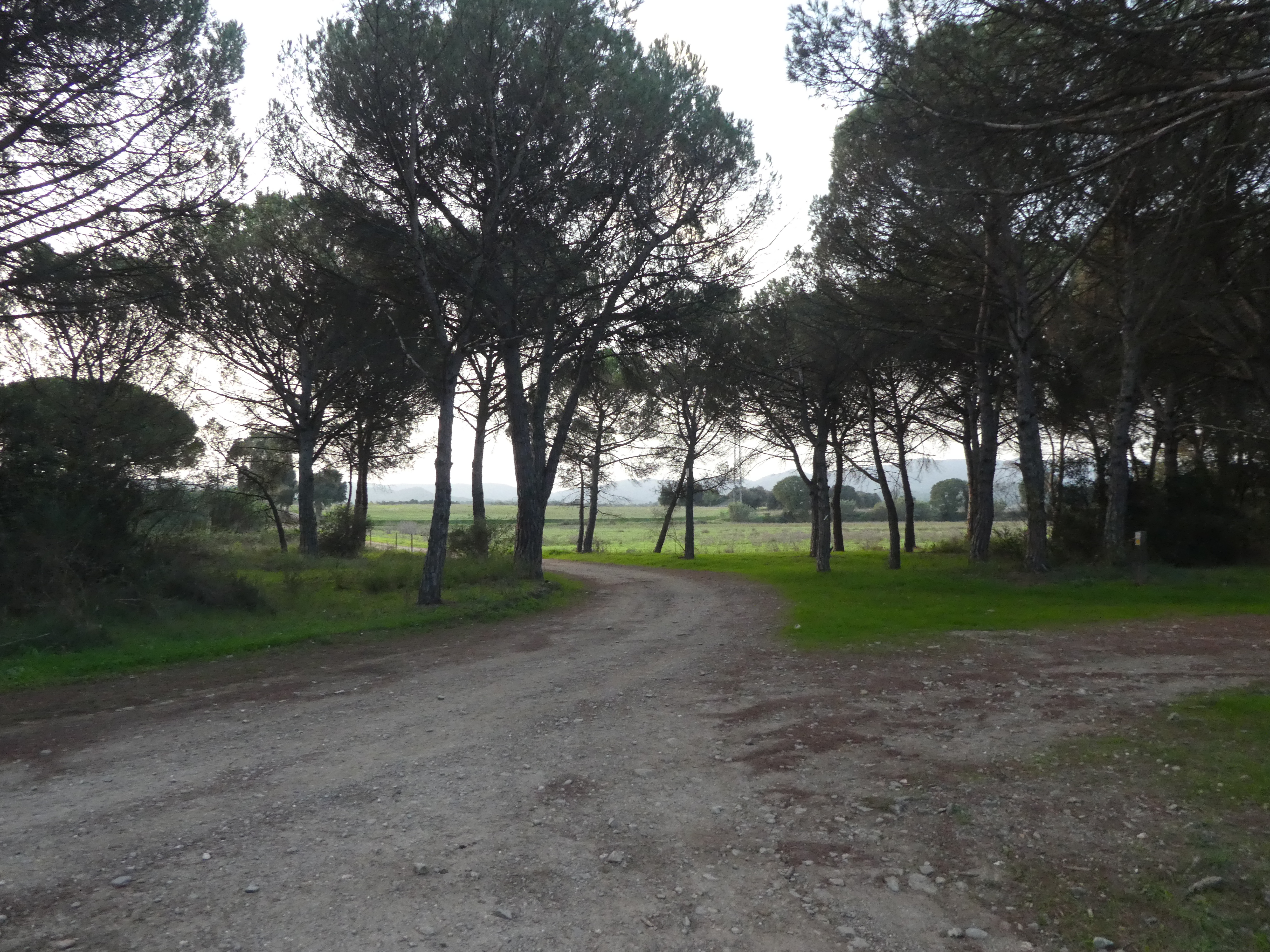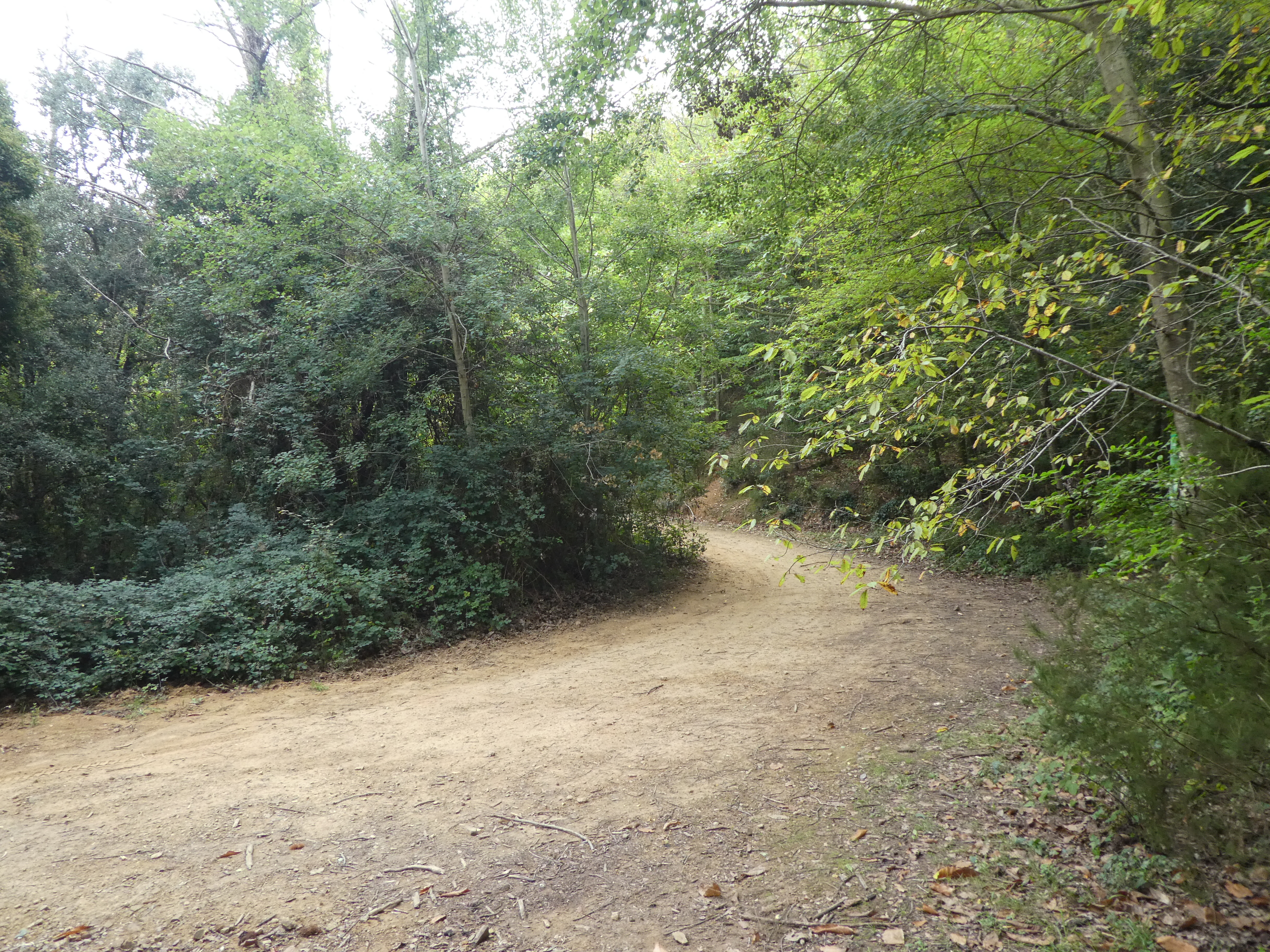 A ce croisement avec une large piste située au niveau du lieu-dit "Can Llobet" (3800 mètres après le précédent), suivre cette dernière sur la droite direction la Bisbal d'Empordà, balisé en jaune et blanc