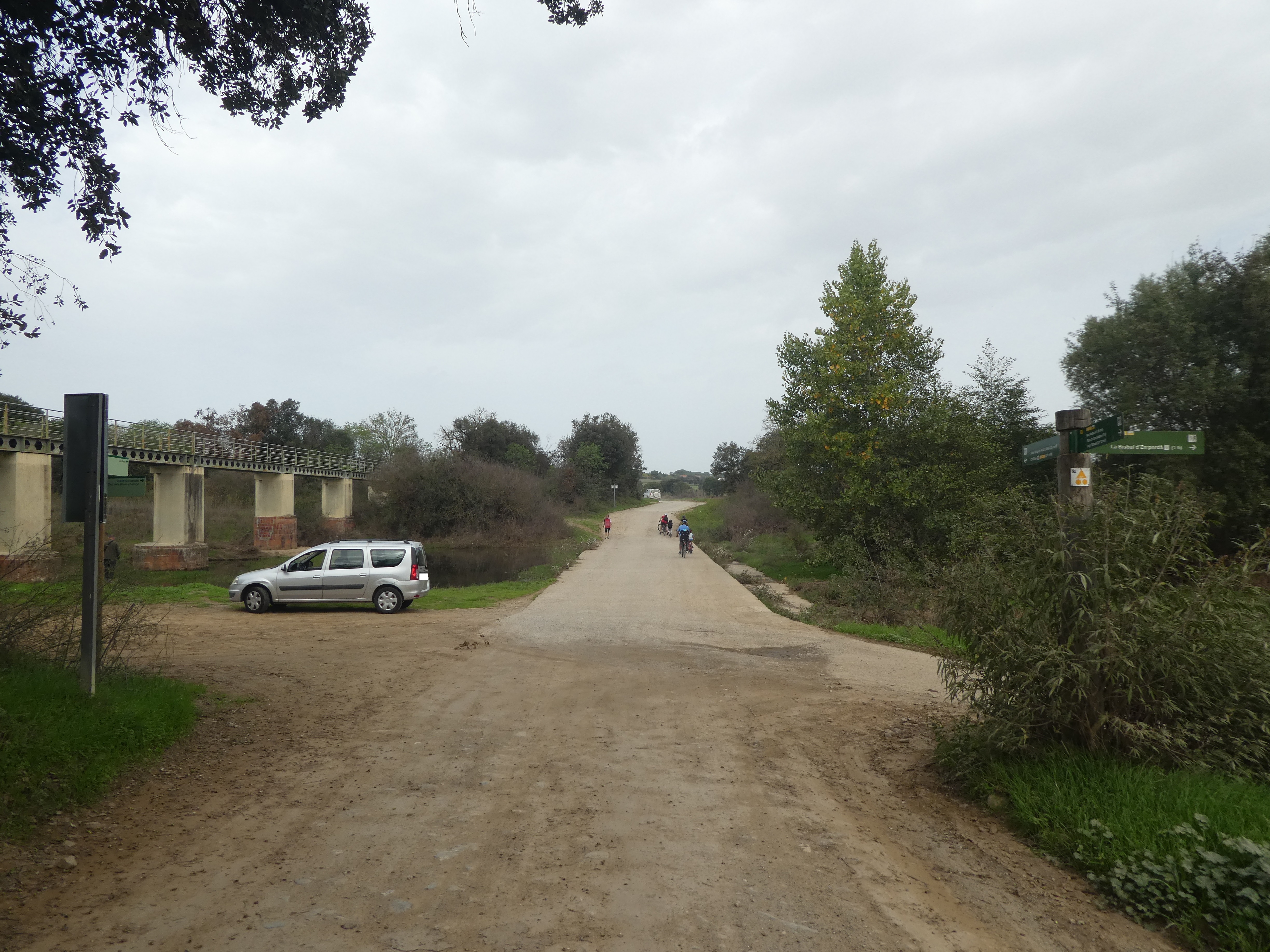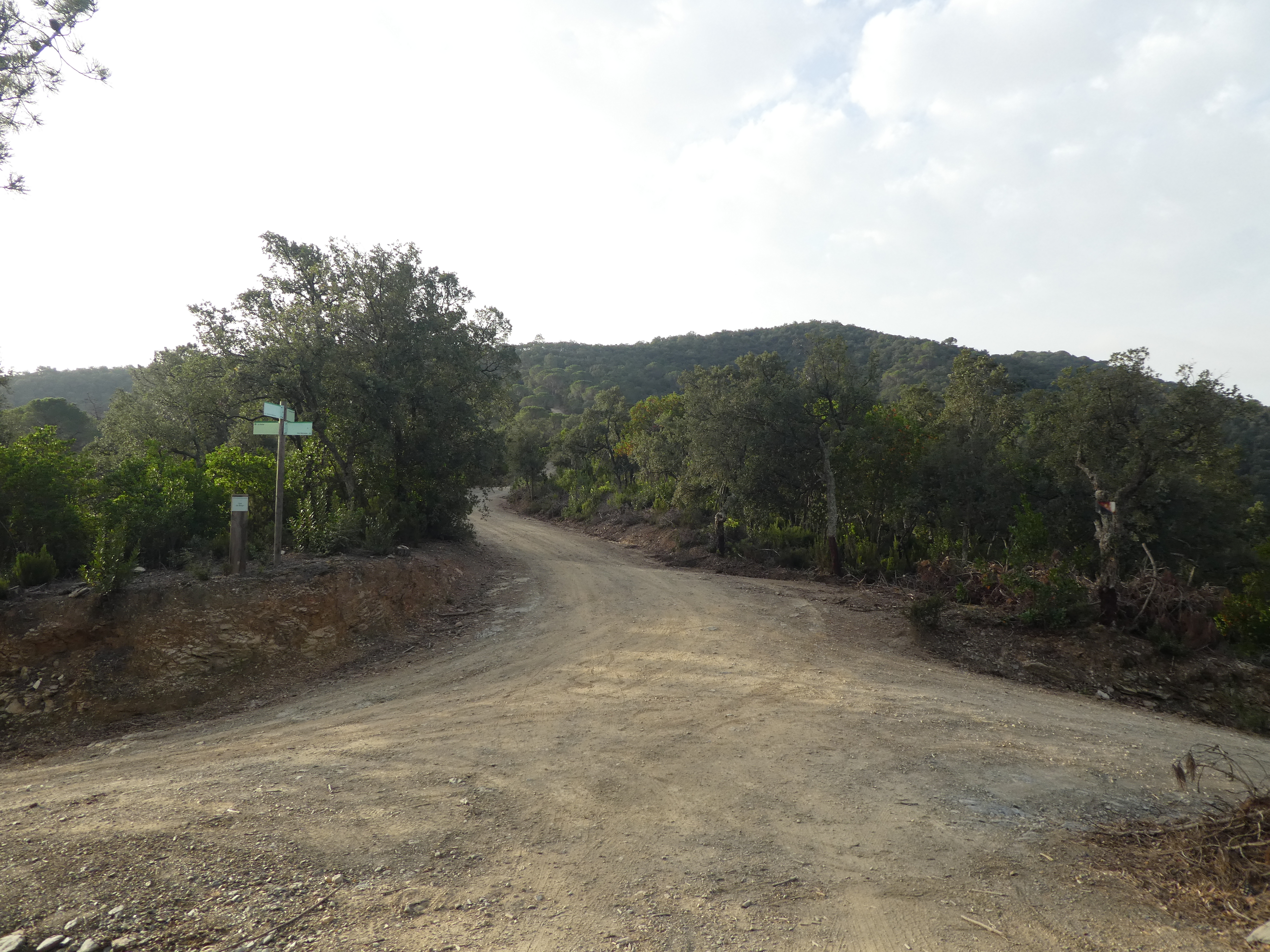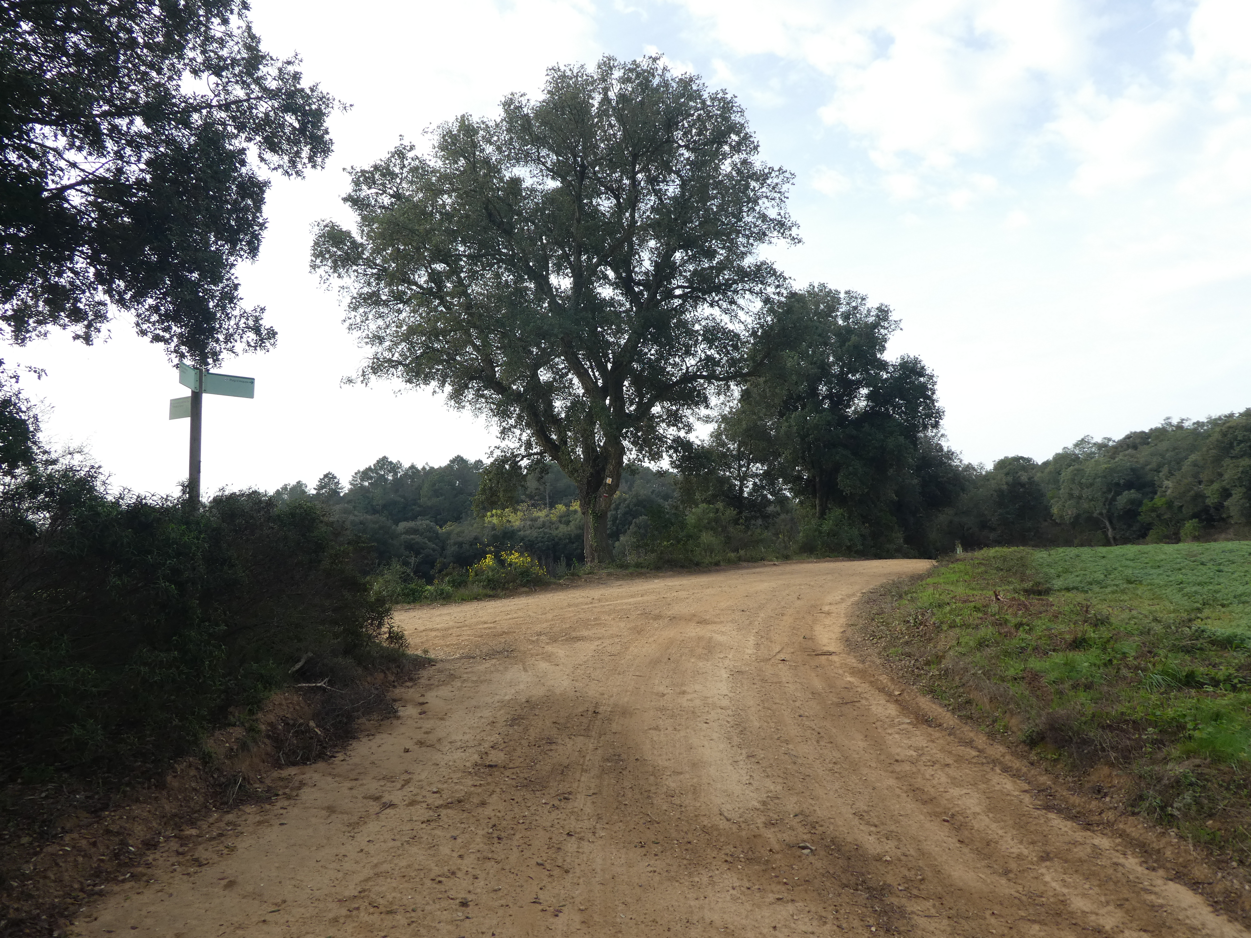 A ce croisement marqué par la présence d'un panneau directionnel (400 mètres après le précédent), suivre la piste partant sur la droite direction la Bisbal d'Empordà, balisé en jaune et blanc