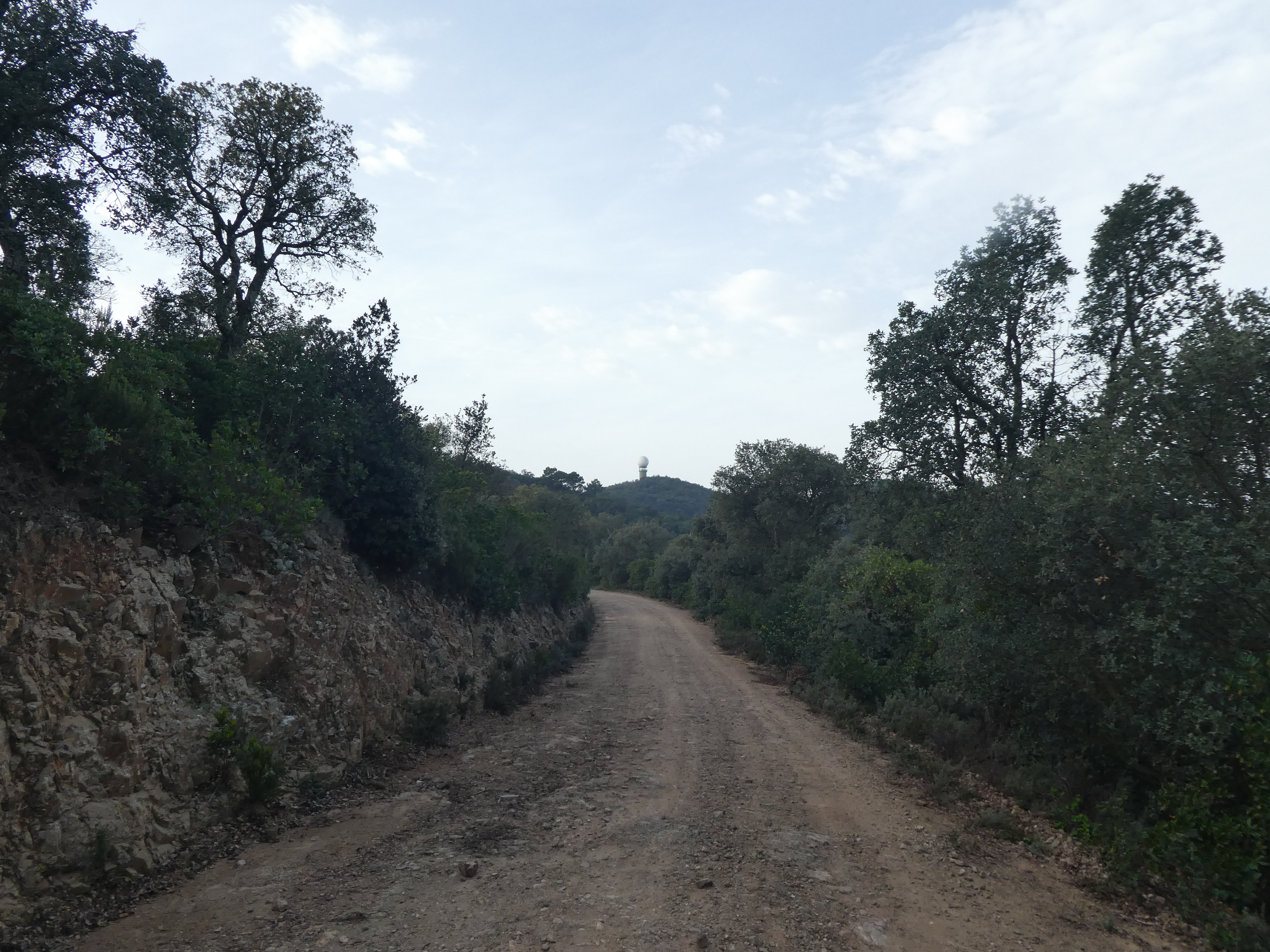 A ce croisement situé au niveau du radar météorologique du Puig d'Arques (150 mètres après le précédent), suivre le chemin partant sur la droite vers le belvédère direction Puig d'Arques, balisé uniquement en jaune et blanc dorénavant