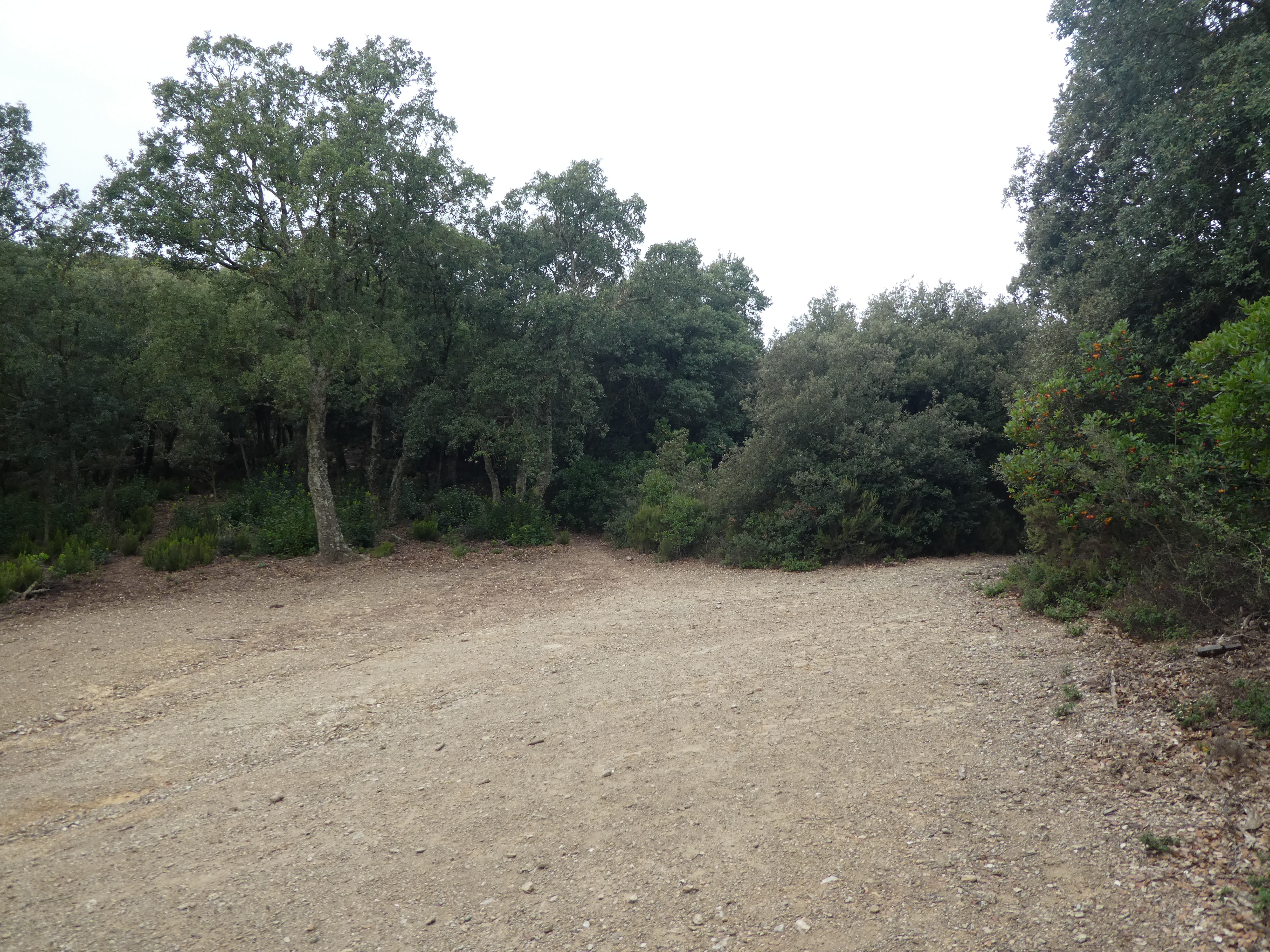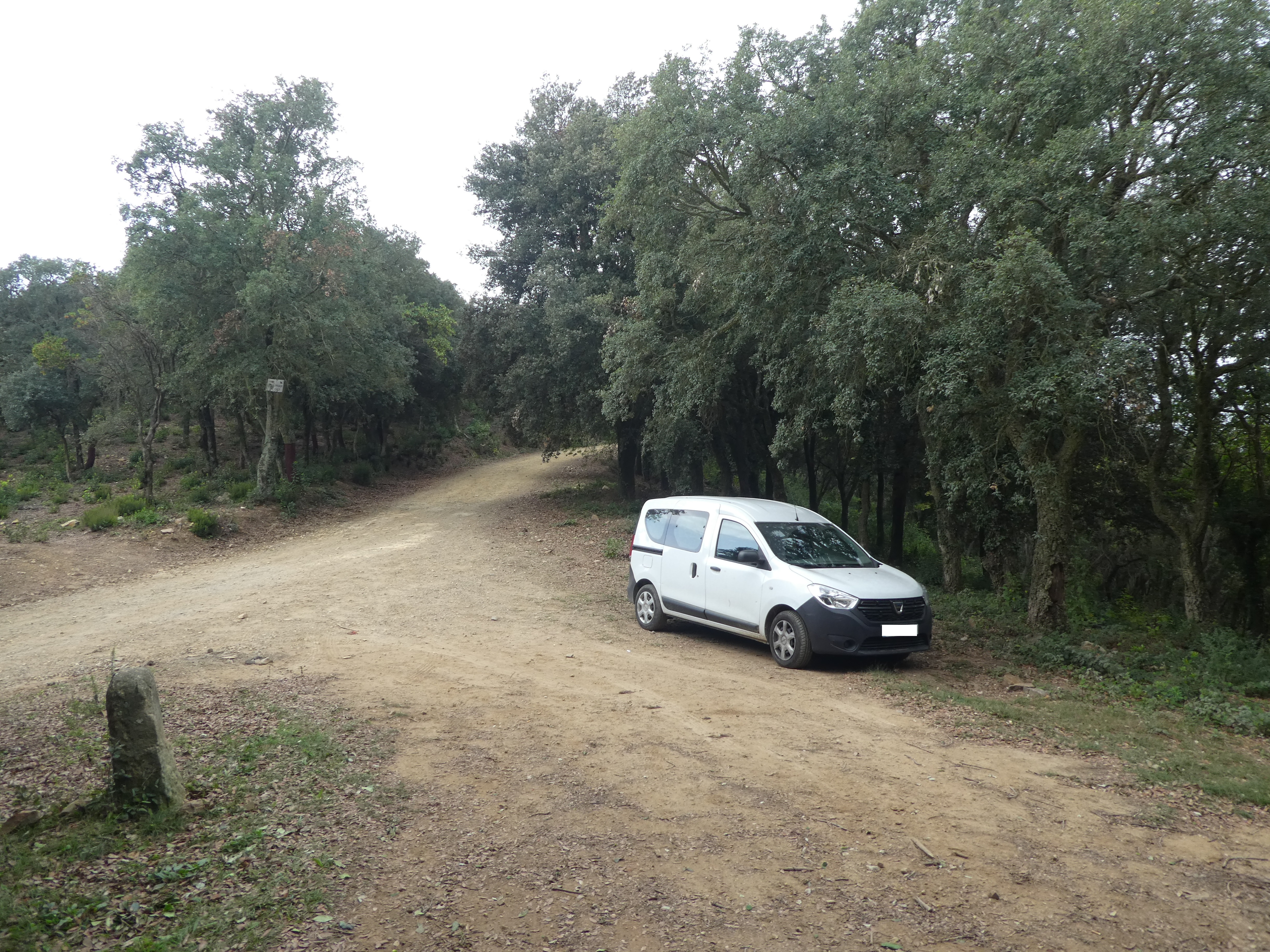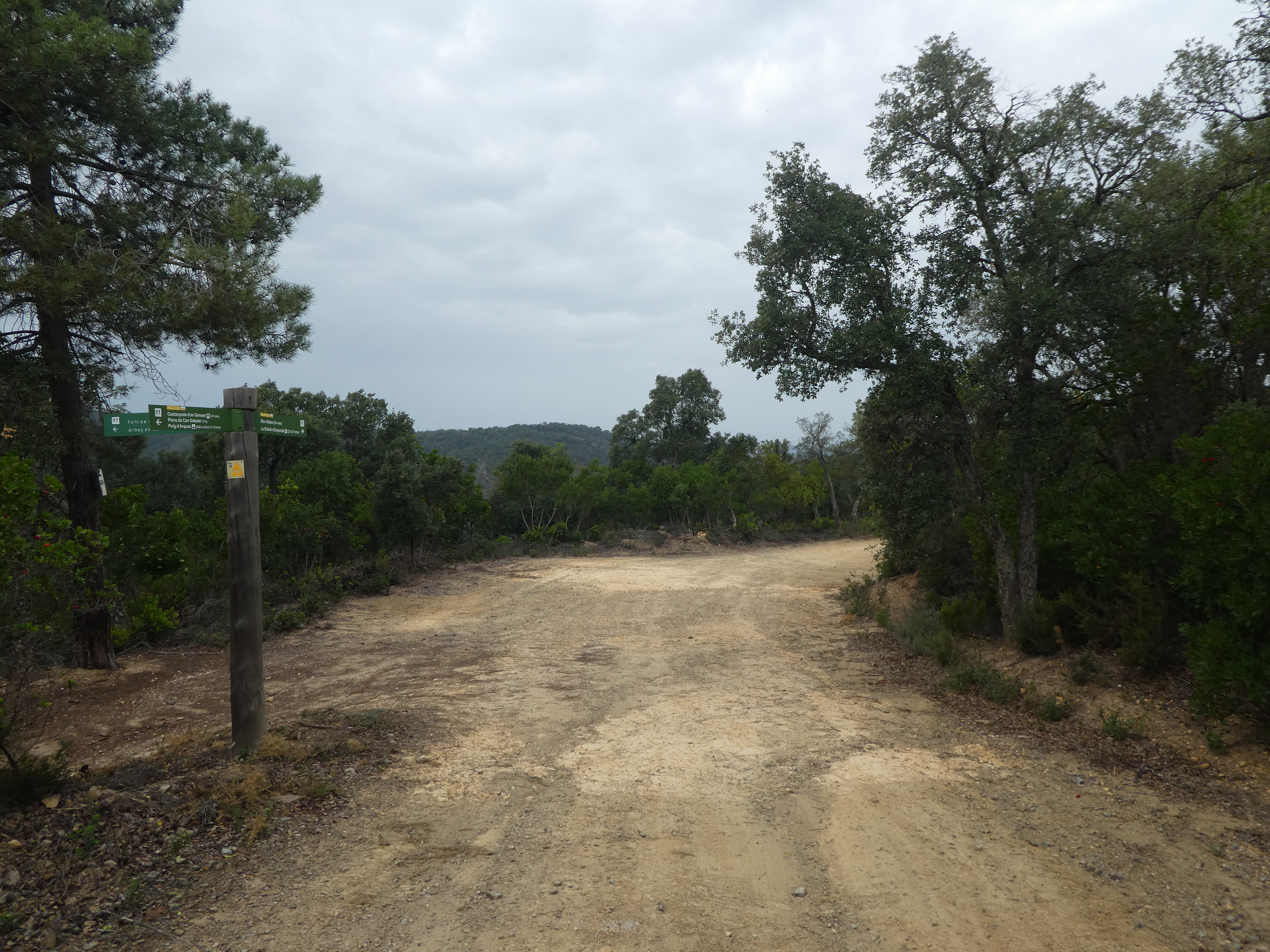 A ce croisement avec le GR92-1 (200 mètres après avoir quitté le sommet secondaire du Puig d'Arques), suivre le chemin partant sur la droite vers la Castanyeda d'en Genoer direction la Bisbal d'Empordà, aucun balisage dorénavant
