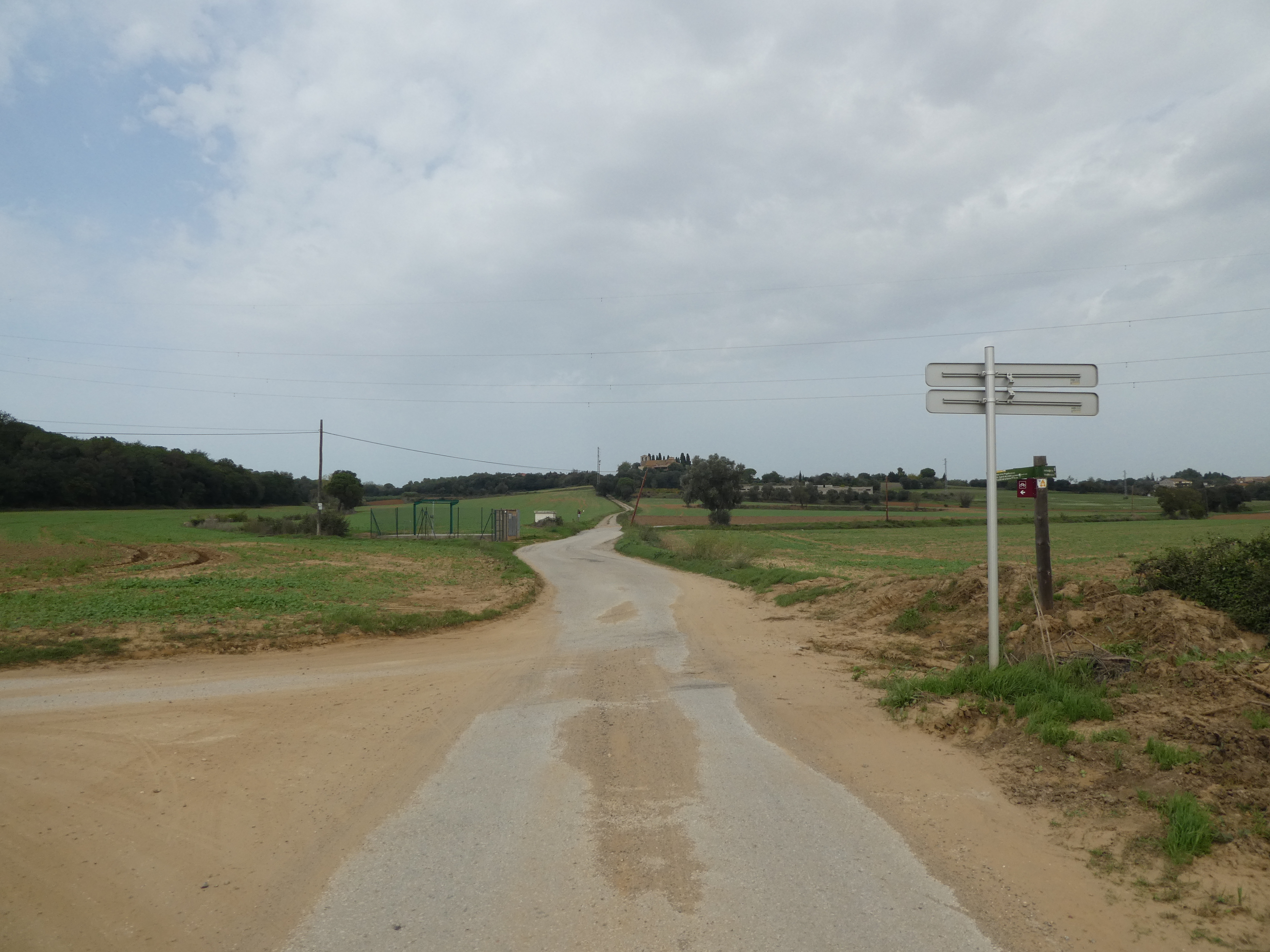 A ce croisement situé au niveau du lieu-dit "Palanca de Cruïlles" marqué par la présence d'un panneau directionnel (600 mètres après le précédent), suivre la piste partant tout droit direction Sant Miquel de Cruïlles, aucun balisage dorénavant
