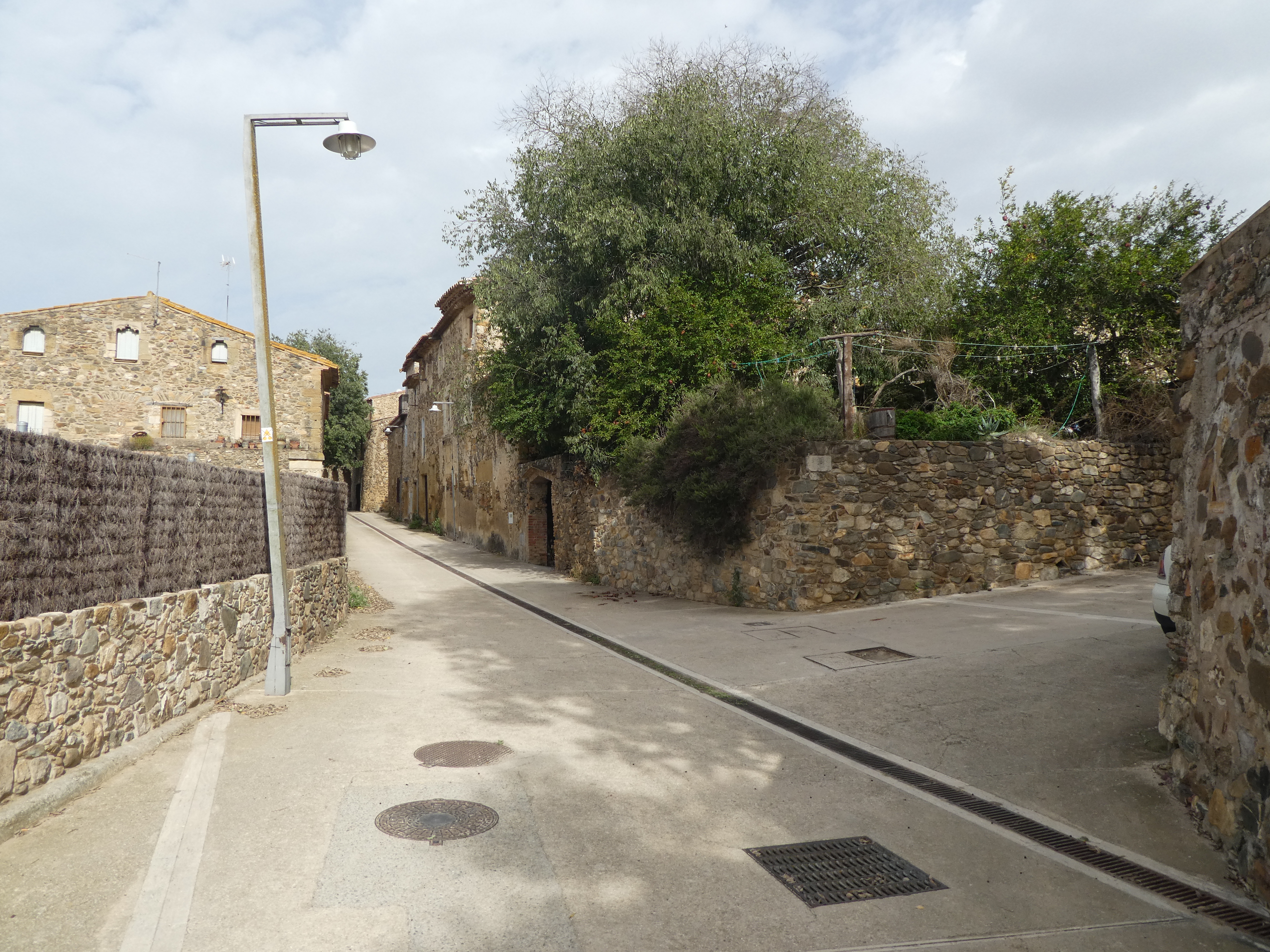 A cette intersection située à l'entrée du hameau de Sant Miquel de Cruïlles (600 mètres après la précédente), suivre la rue partant sur la droite direction Cruïlles